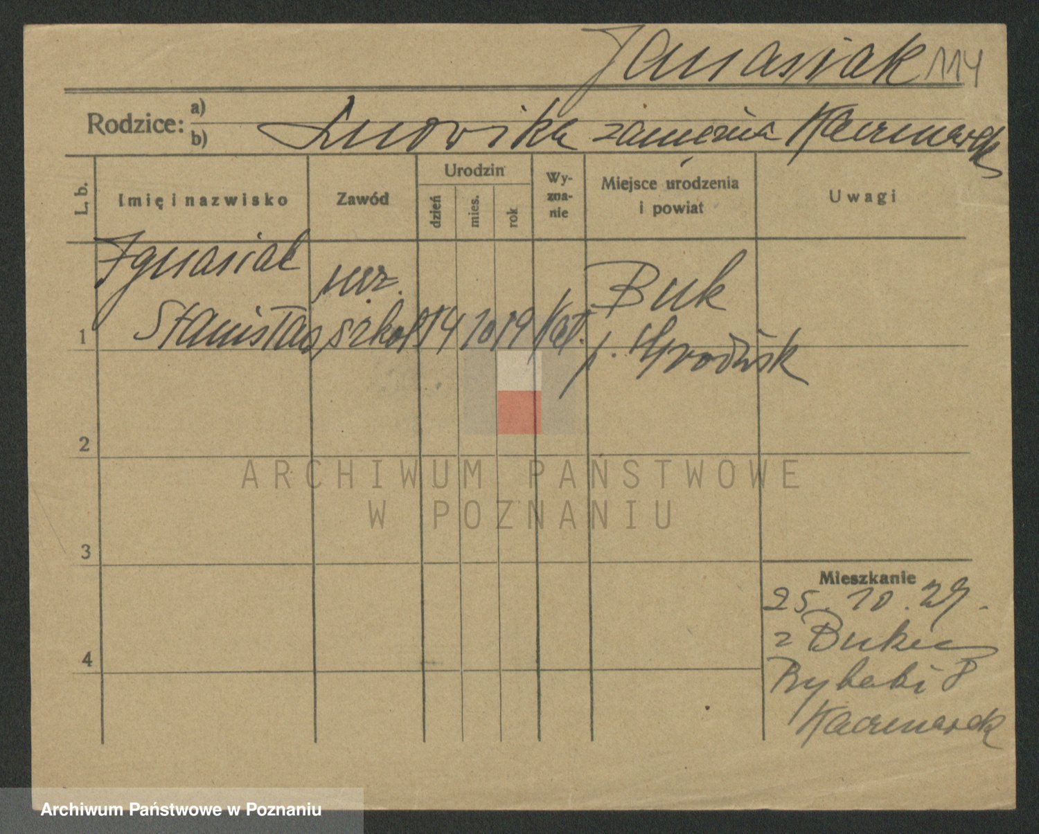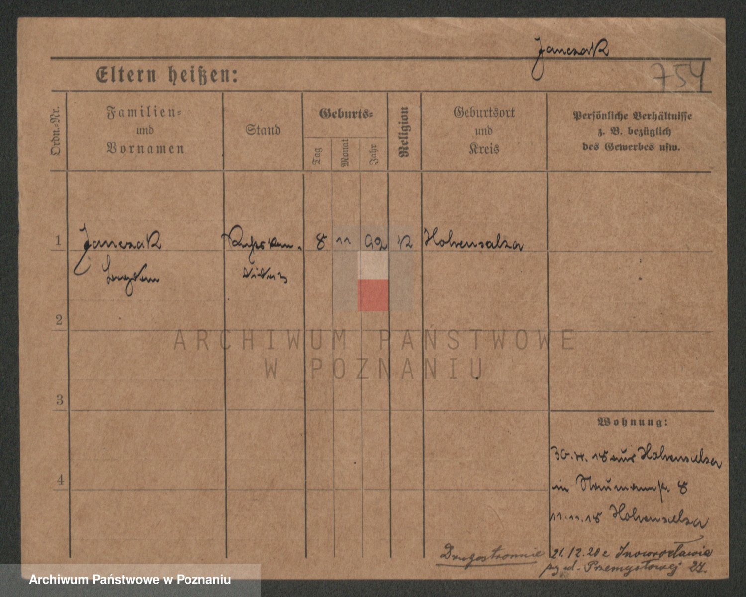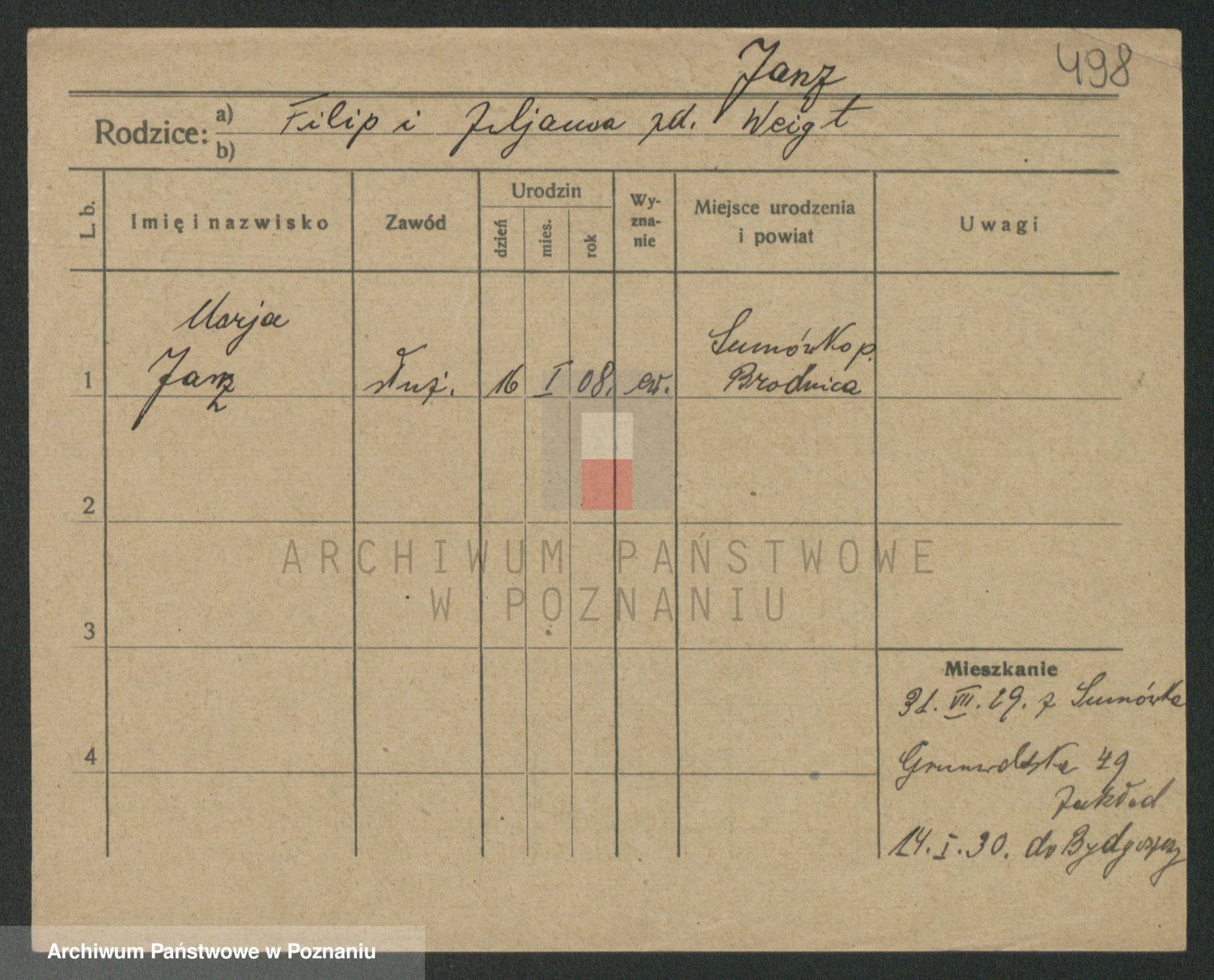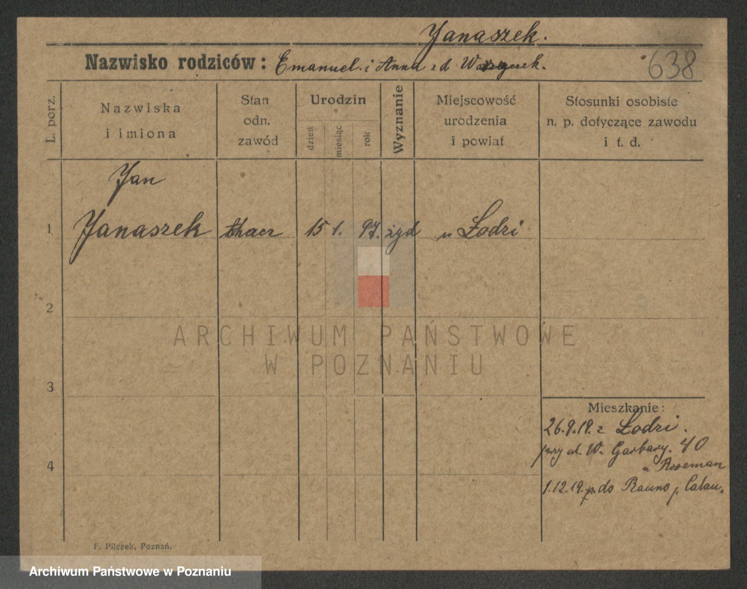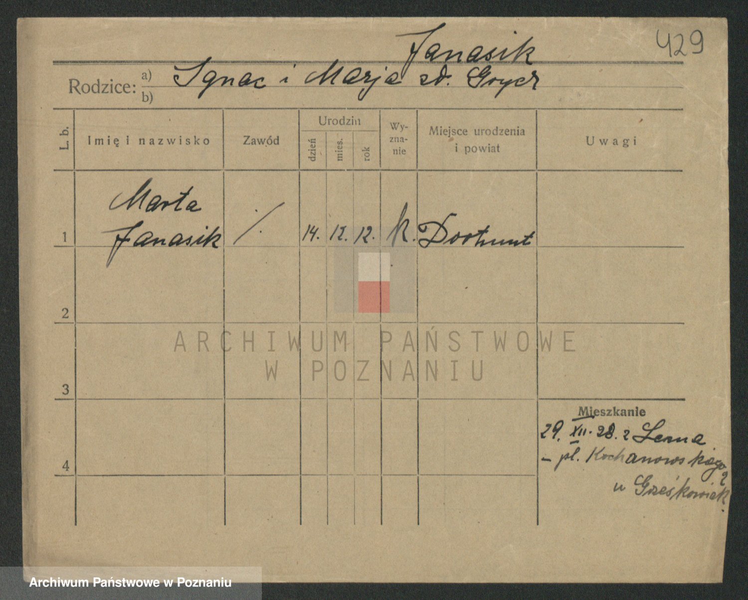 Podgląd karty osobowej dostępny jest po kliknięciu na nazwisko lub ikonkę karty. Można dokonywać powiększenia (ikony na górze) lub przechodzić między kolejnymi skanami (strzałki po bokach).