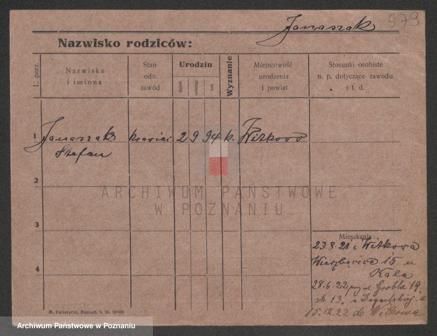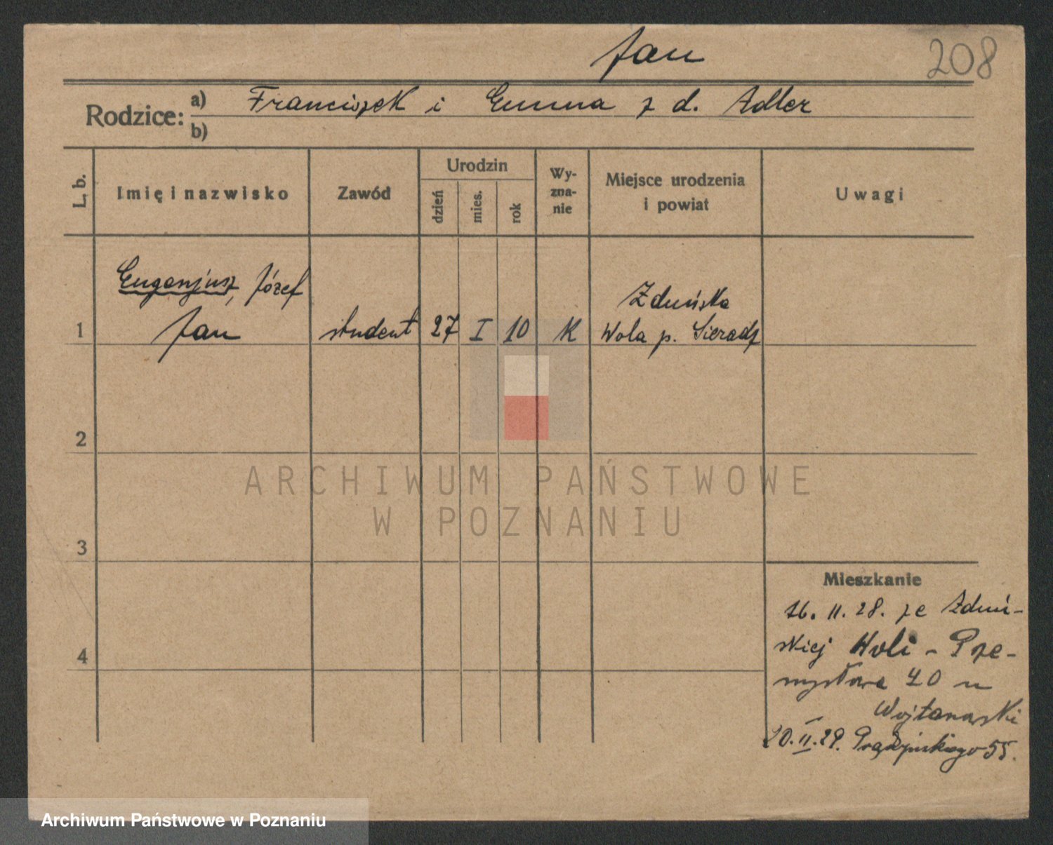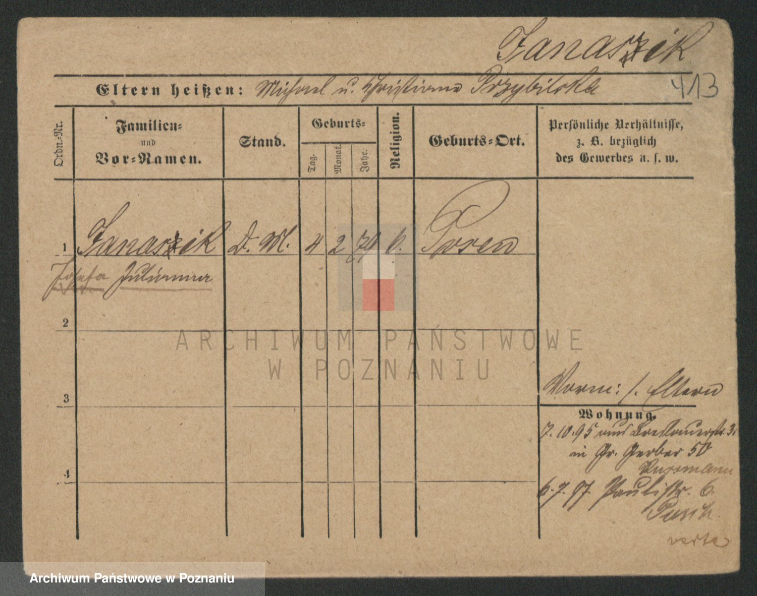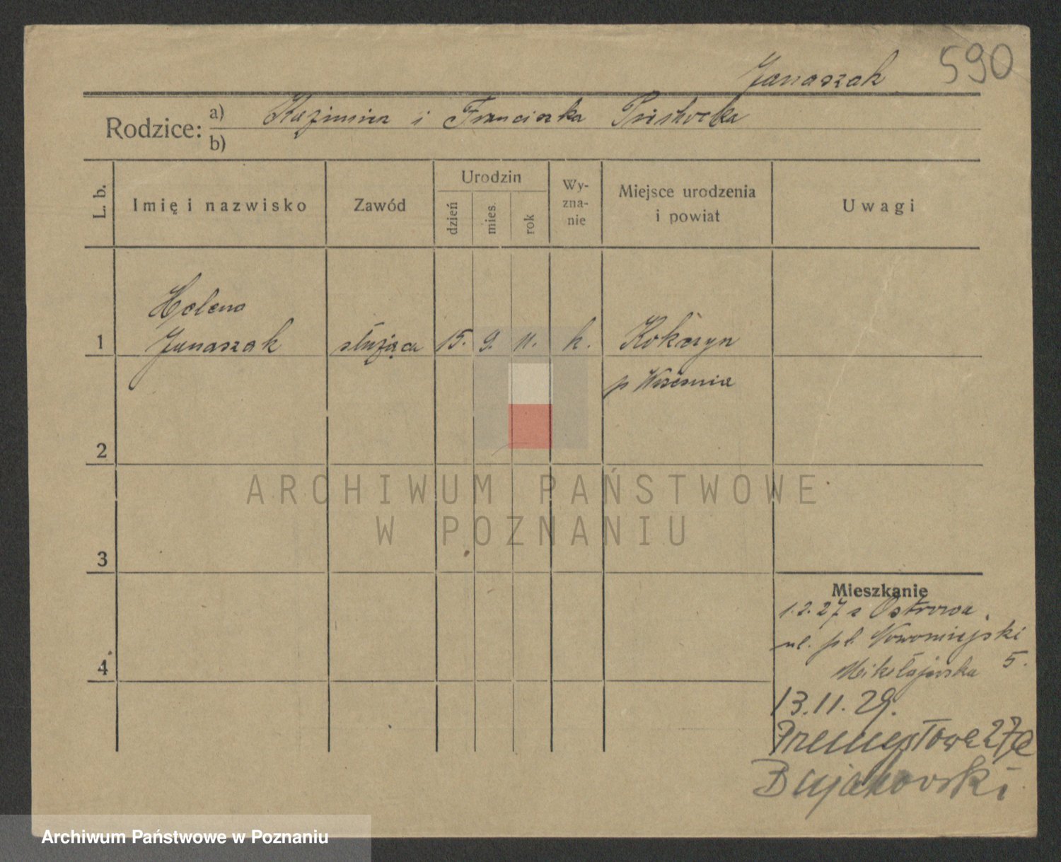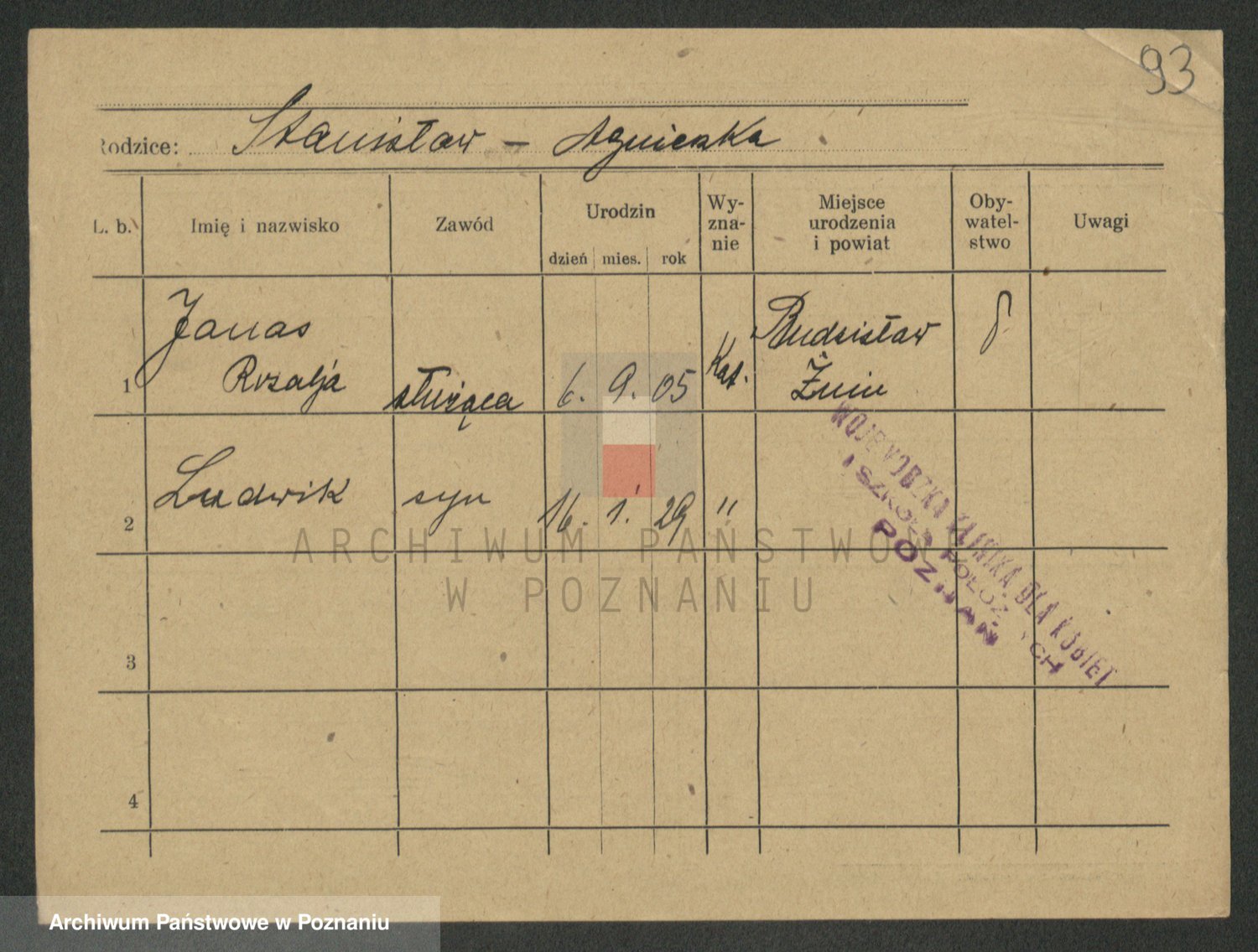 Podgląd karty osobowej dostępny jest po kliknięciu na nazwisko lub ikonkę karty. Można dokonywać powiększenia (ikony na górze) lub przechodzić między kolejnymi skanami (strzałki po bokach).