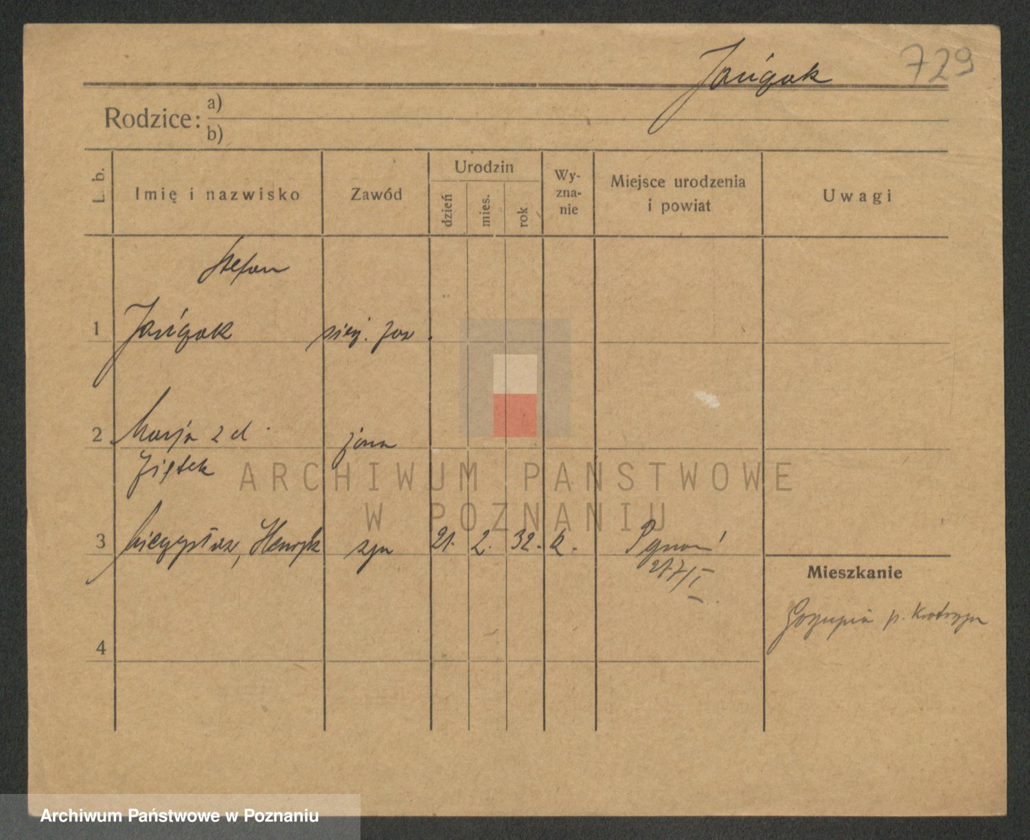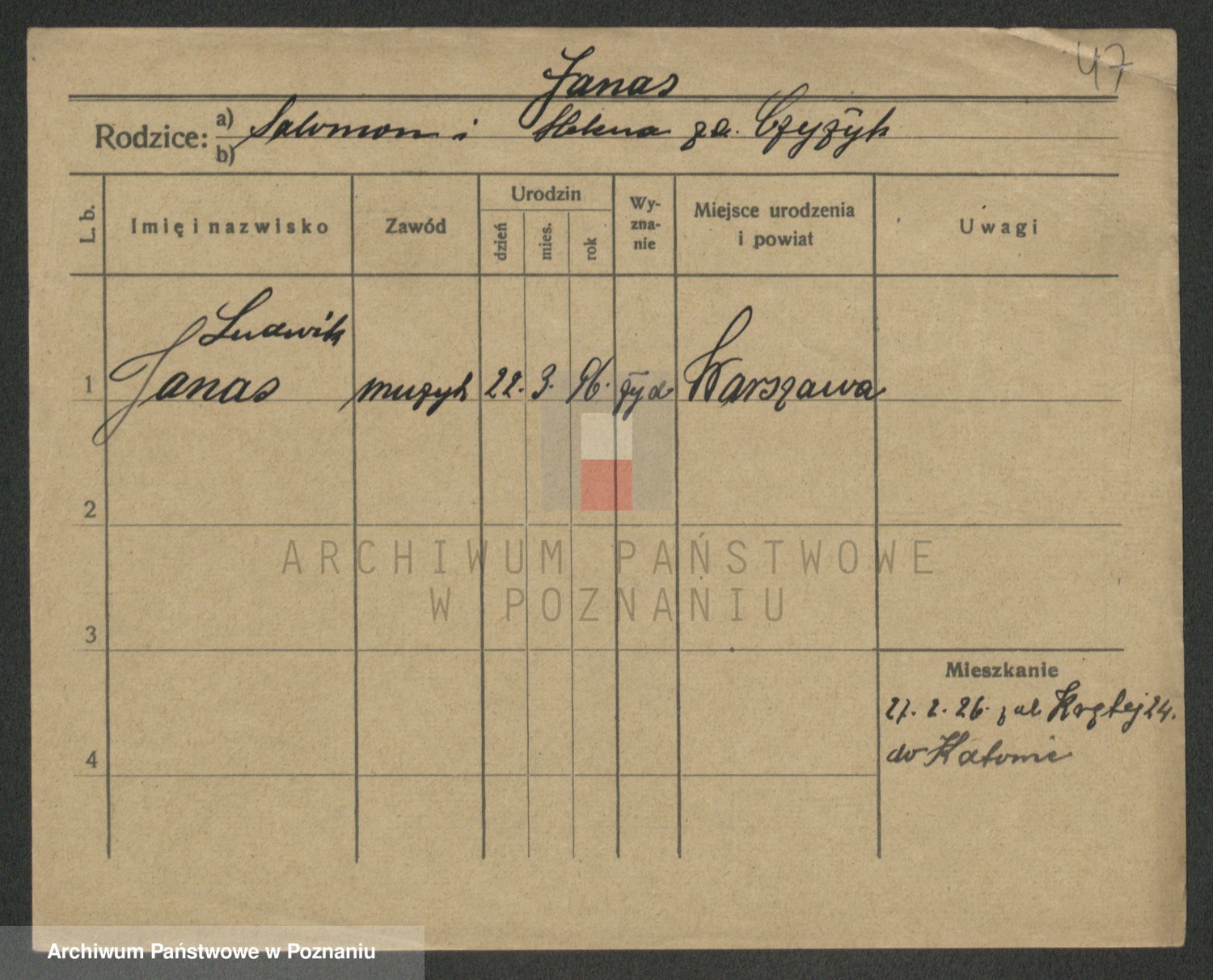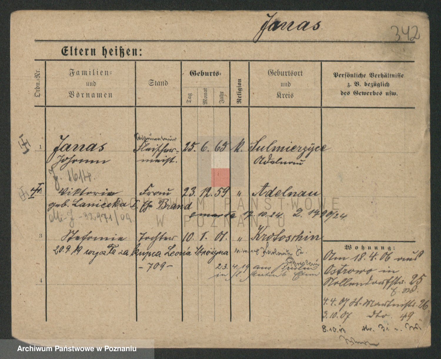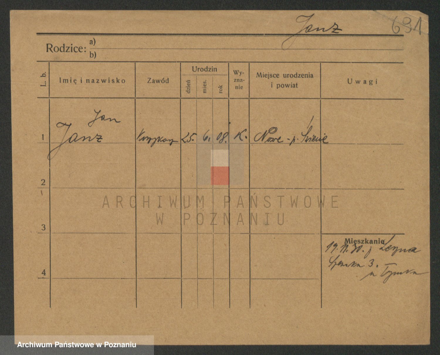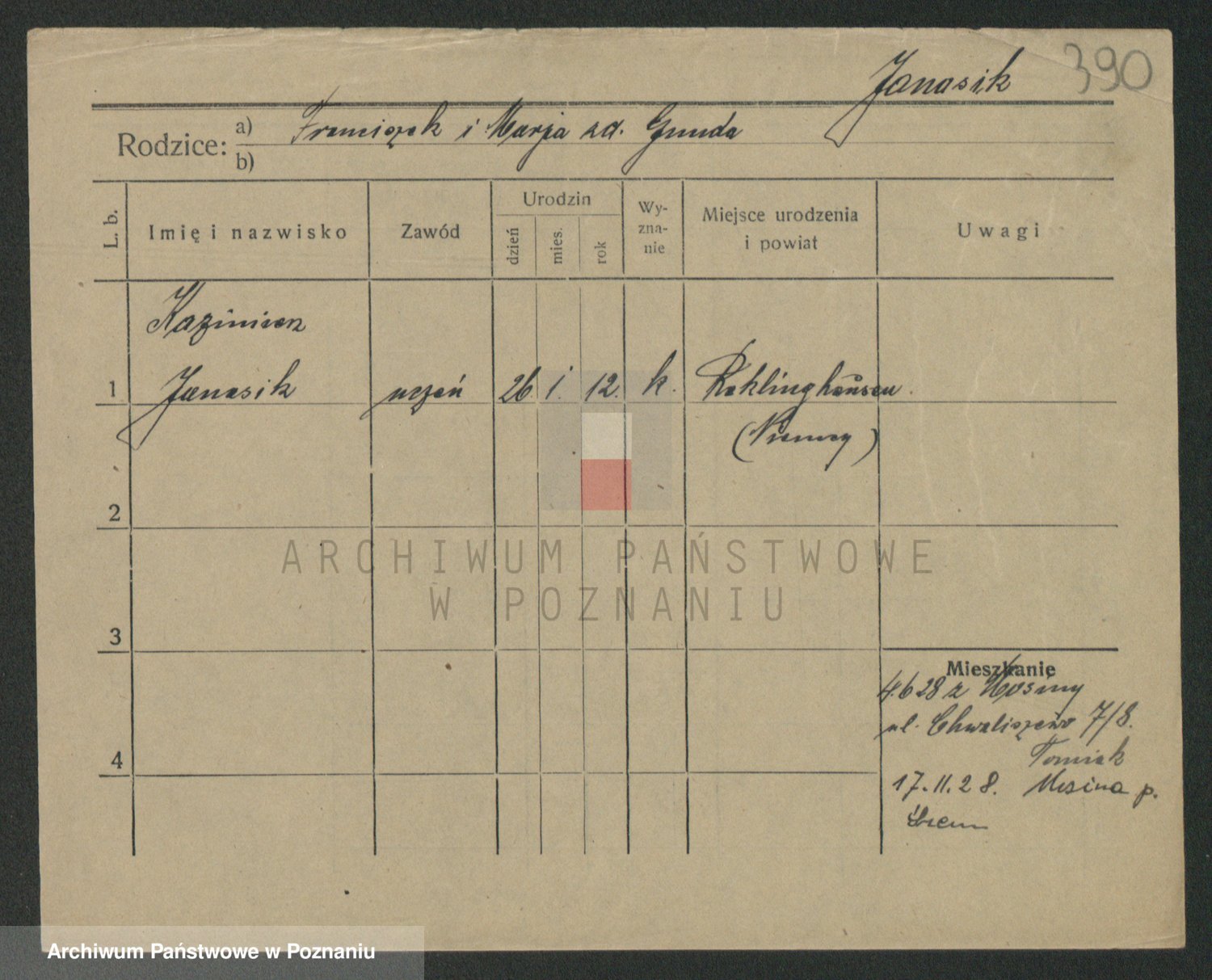 Podgląd karty osobowej dostępny jest po kliknięciu na nazwisko lub ikonkę karty. Można dokonywać powiększenia (ikony na górze) lub przechodzić między kolejnymi skanami (strzałki po bokach).