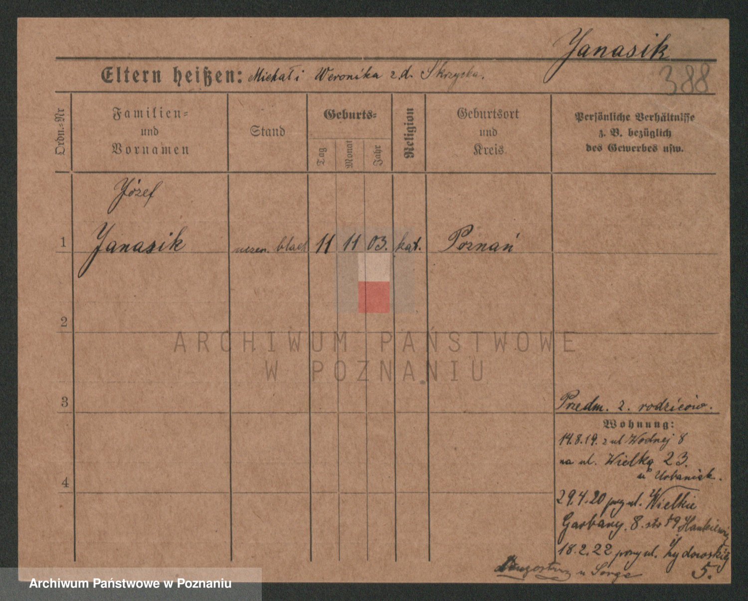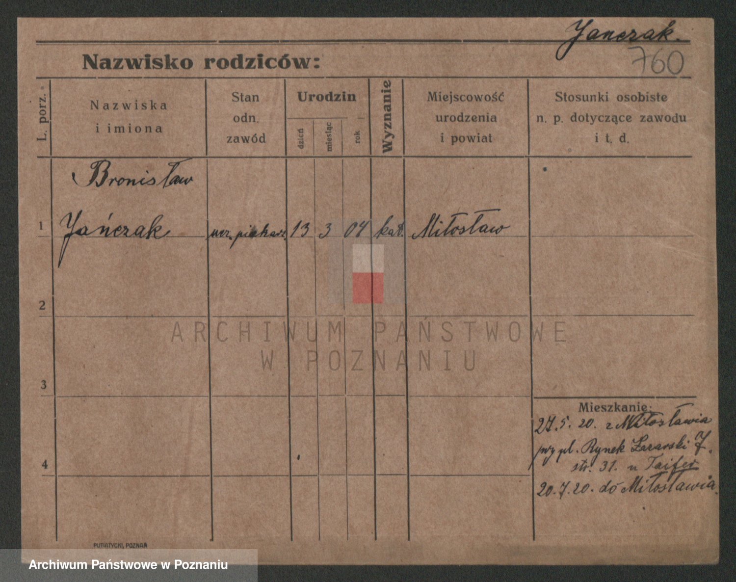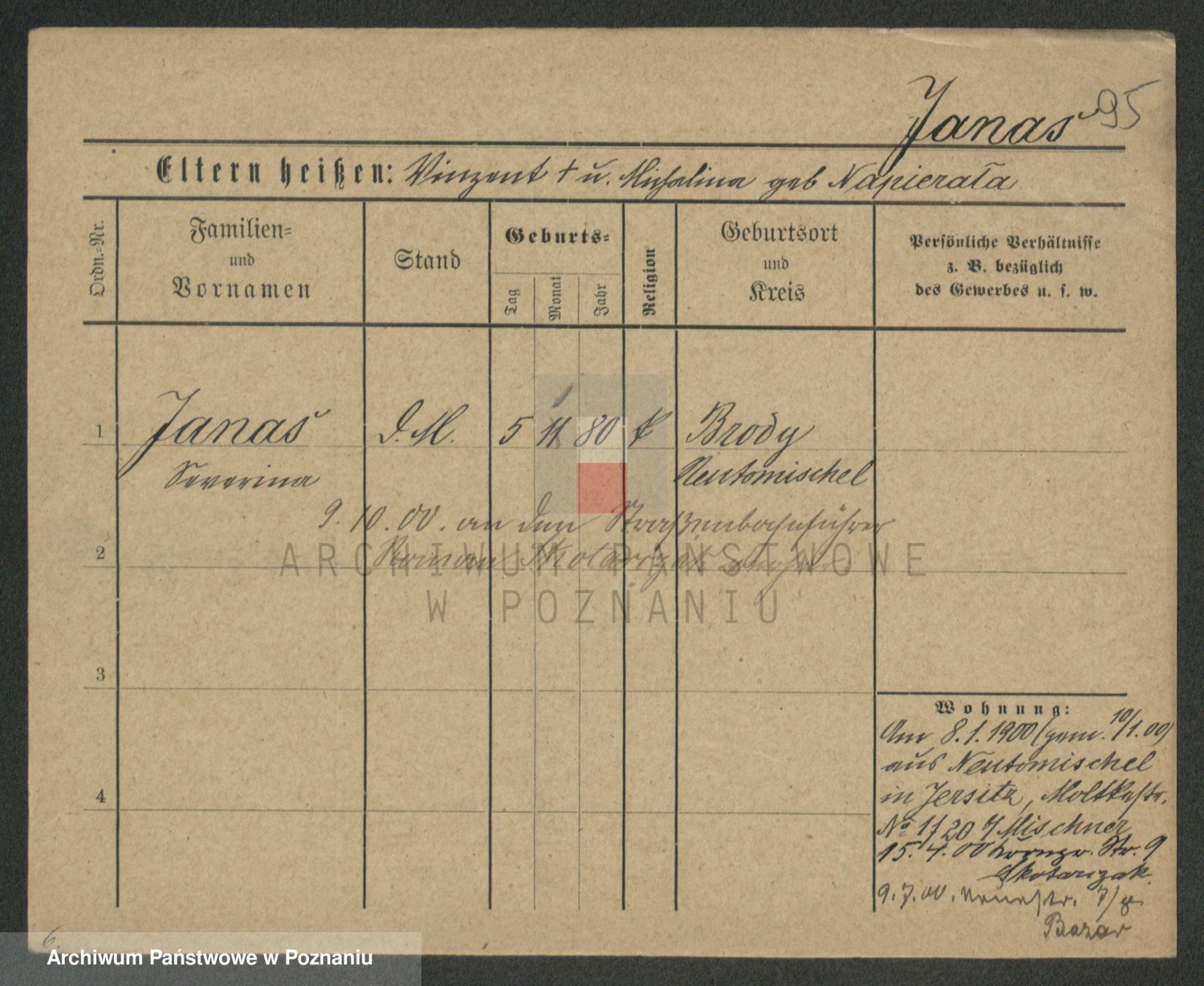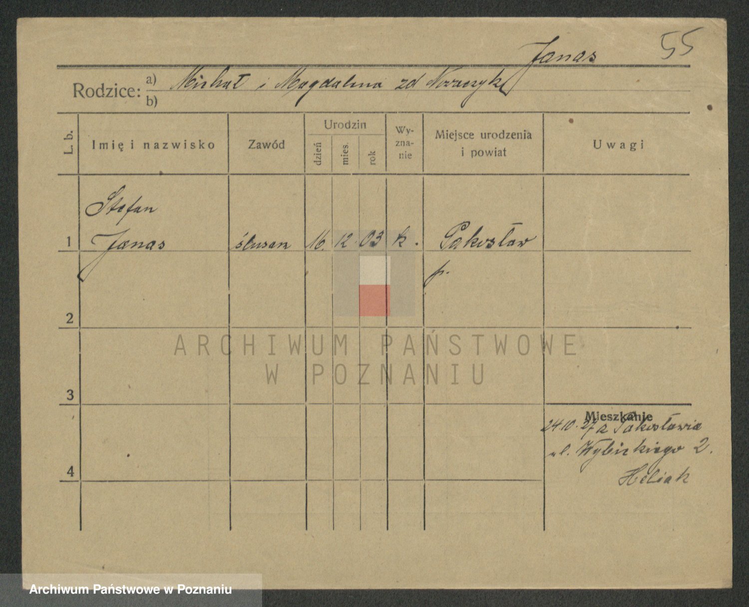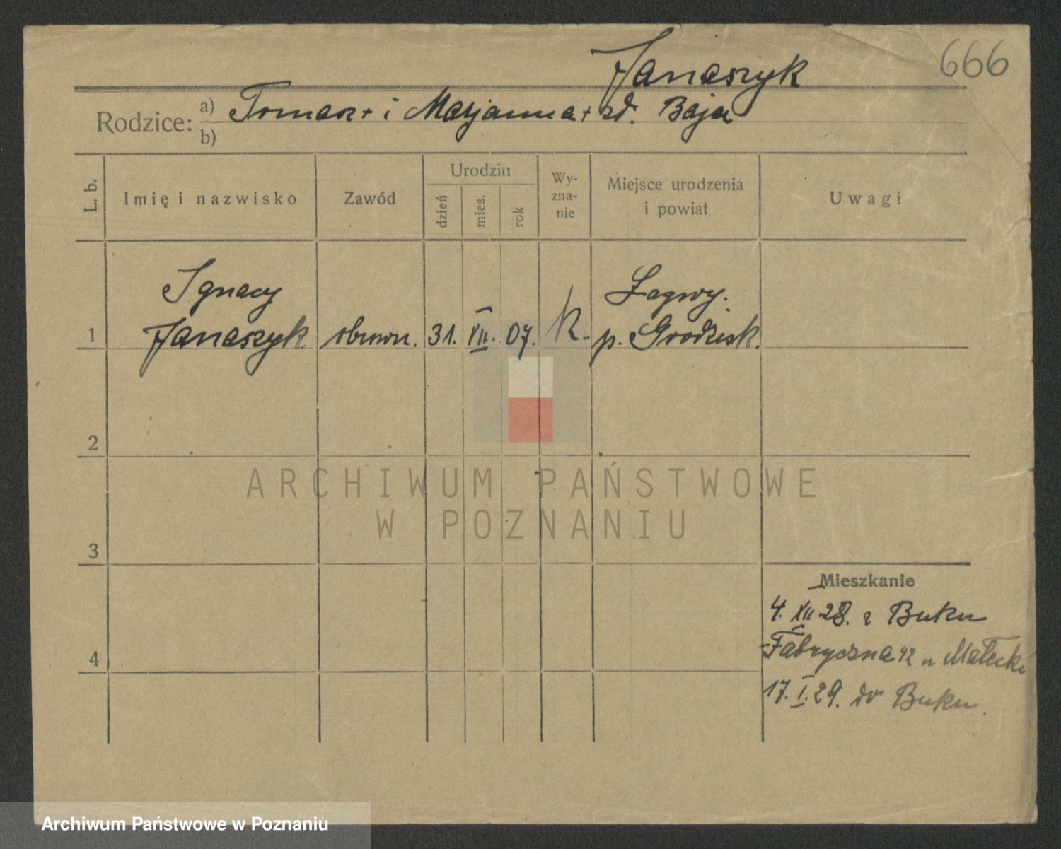 Podgląd karty osobowej dostępny jest po kliknięciu na nazwisko lub ikonkę karty. Można dokonywać powiększenia (ikony na górze) lub przechodzić między kolejnymi skanami (strzałki po bokach).