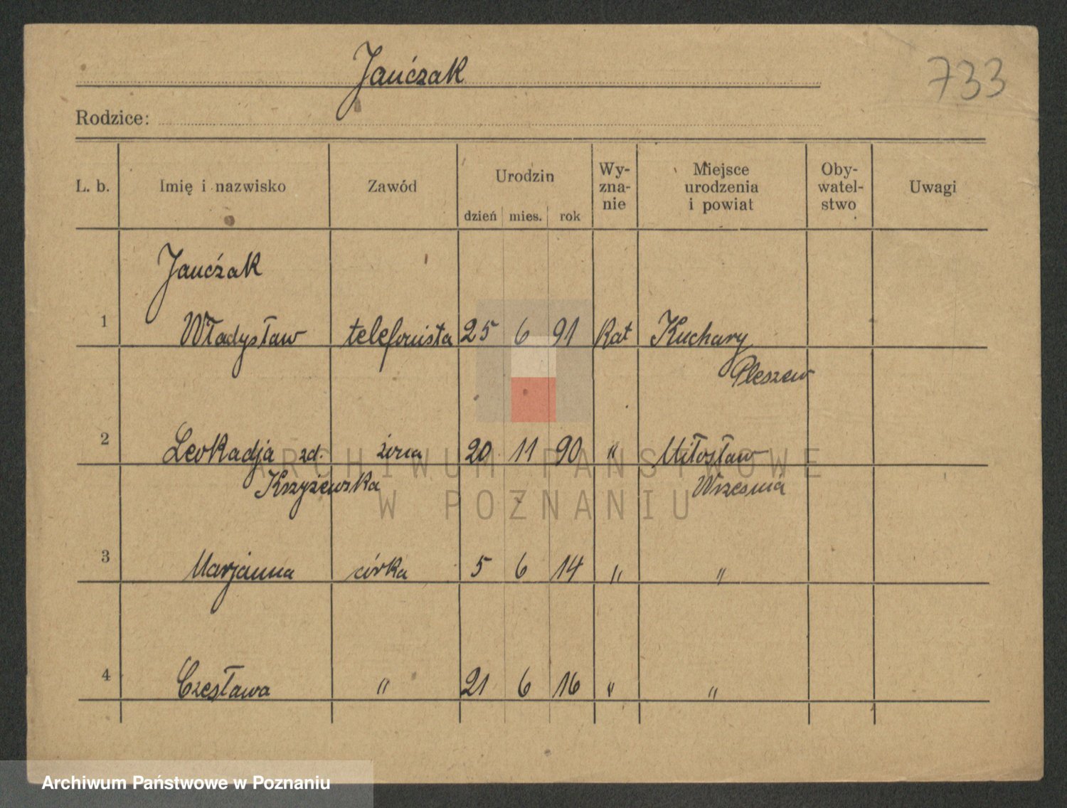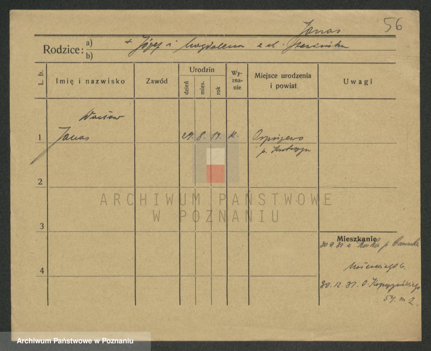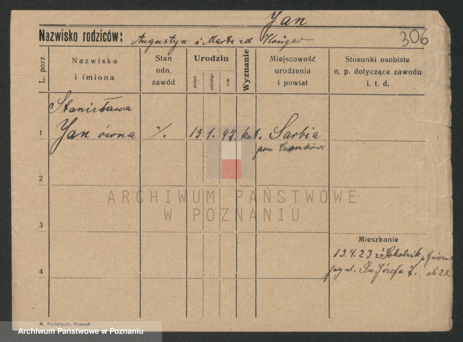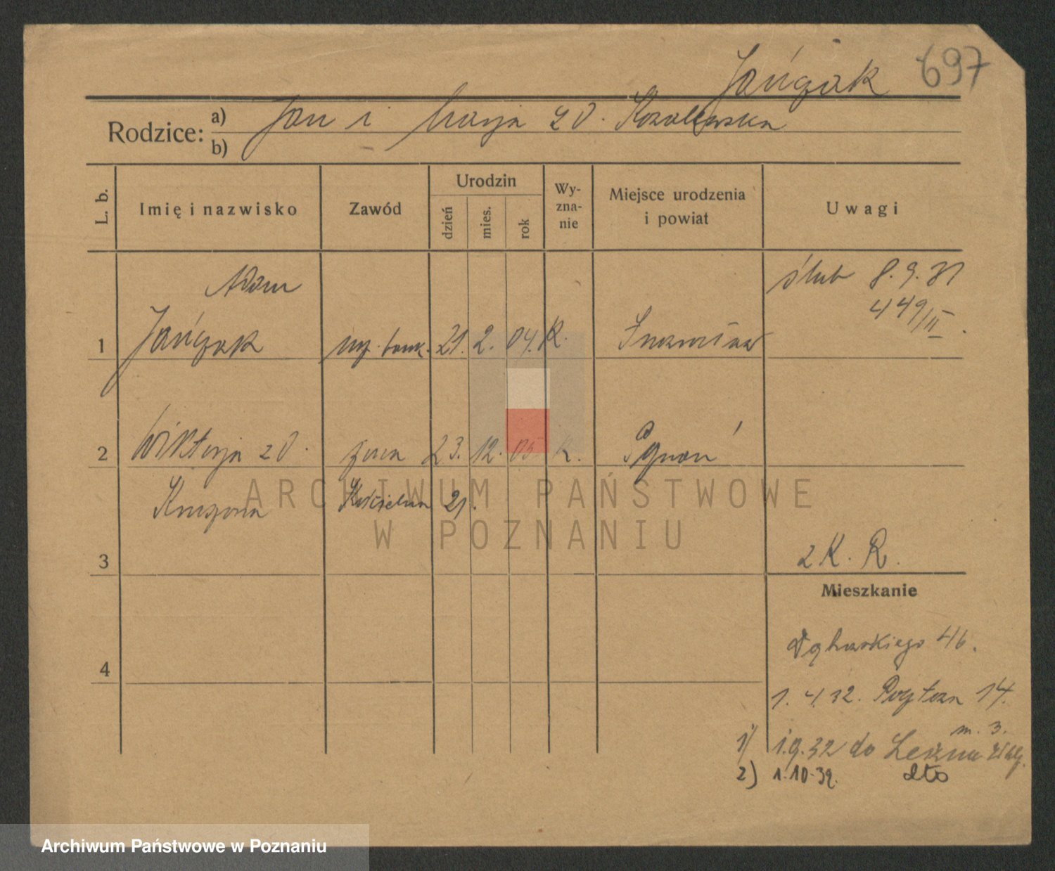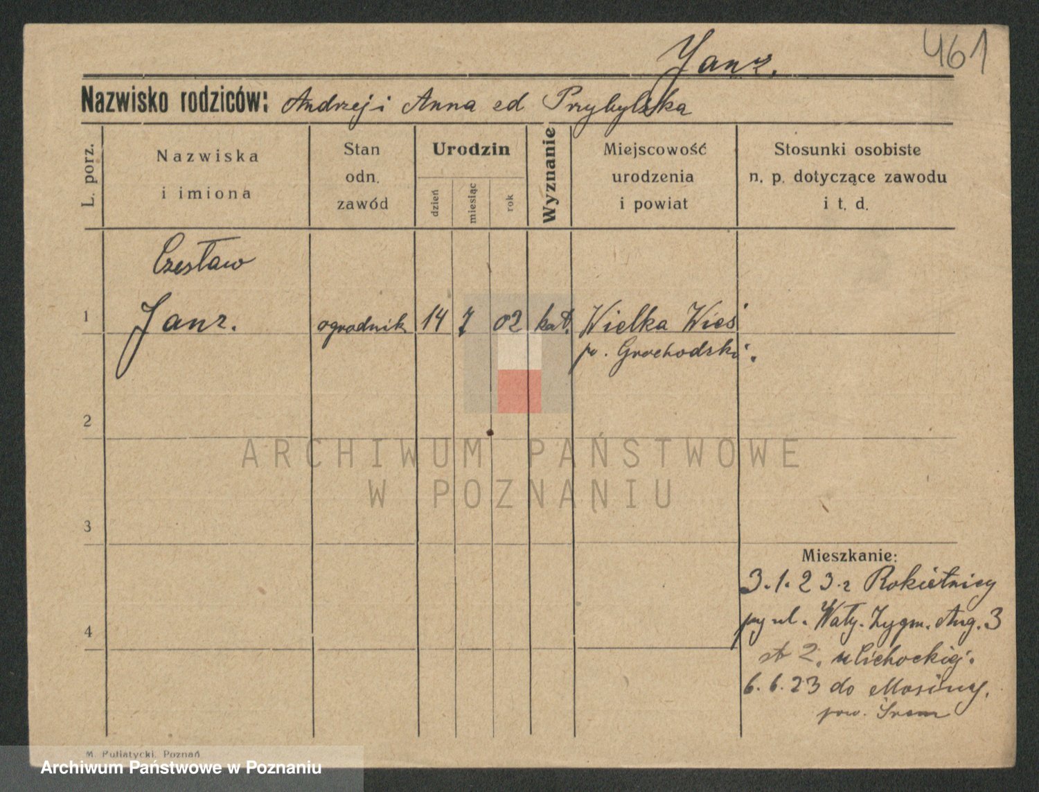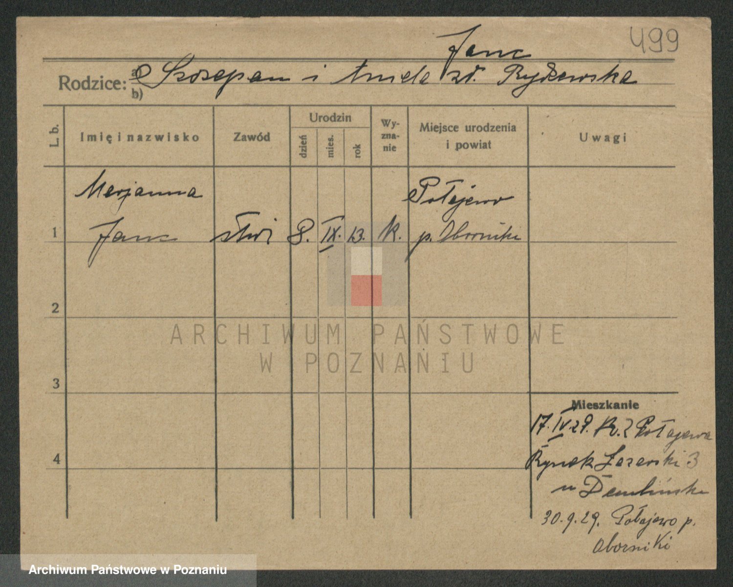 Podgląd karty osobowej dostępny jest po kliknięciu na nazwisko lub ikonkę karty. Można dokonywać powiększenia (ikony na górze) lub przechodzić między kolejnymi skanami (strzałki po bokach).