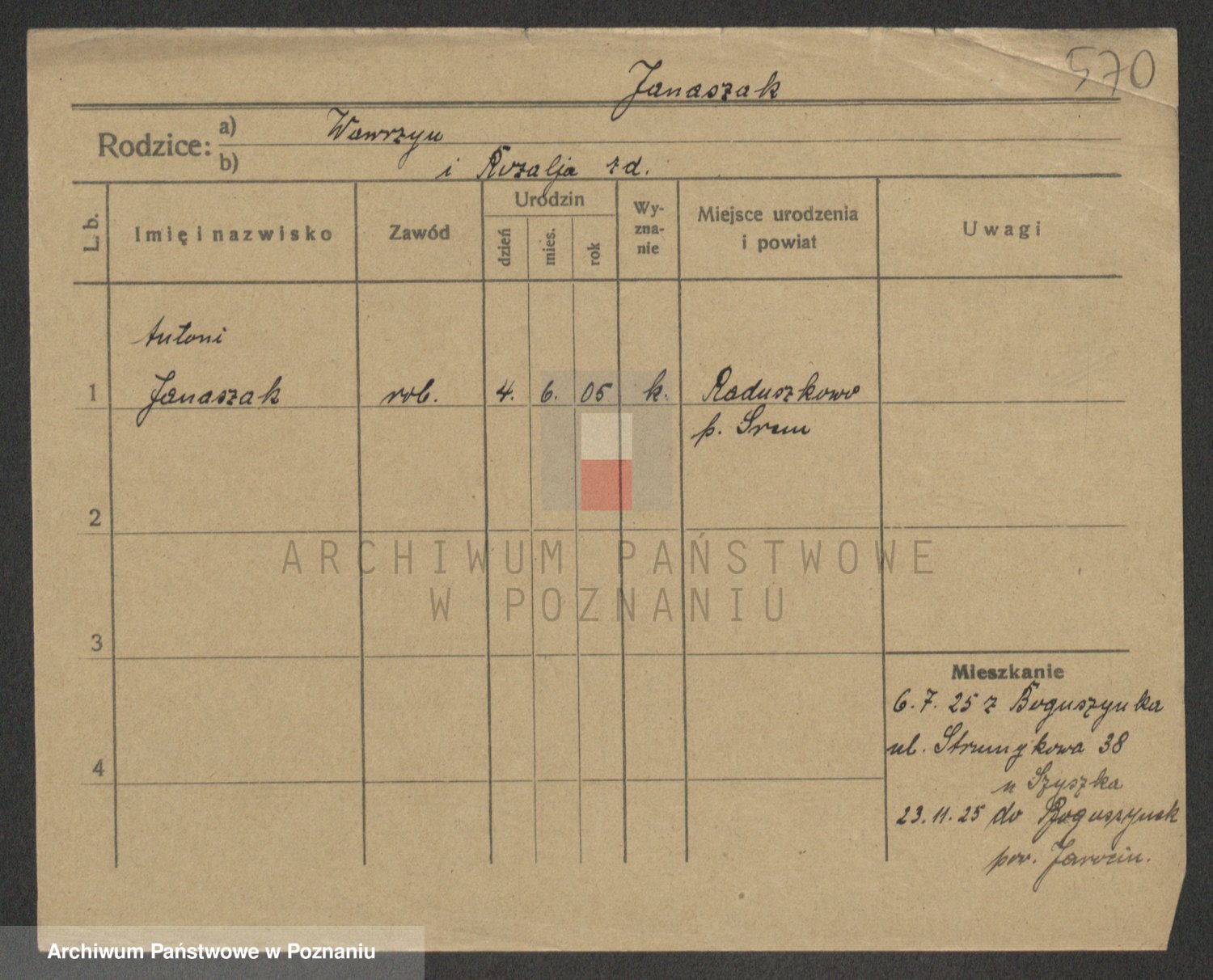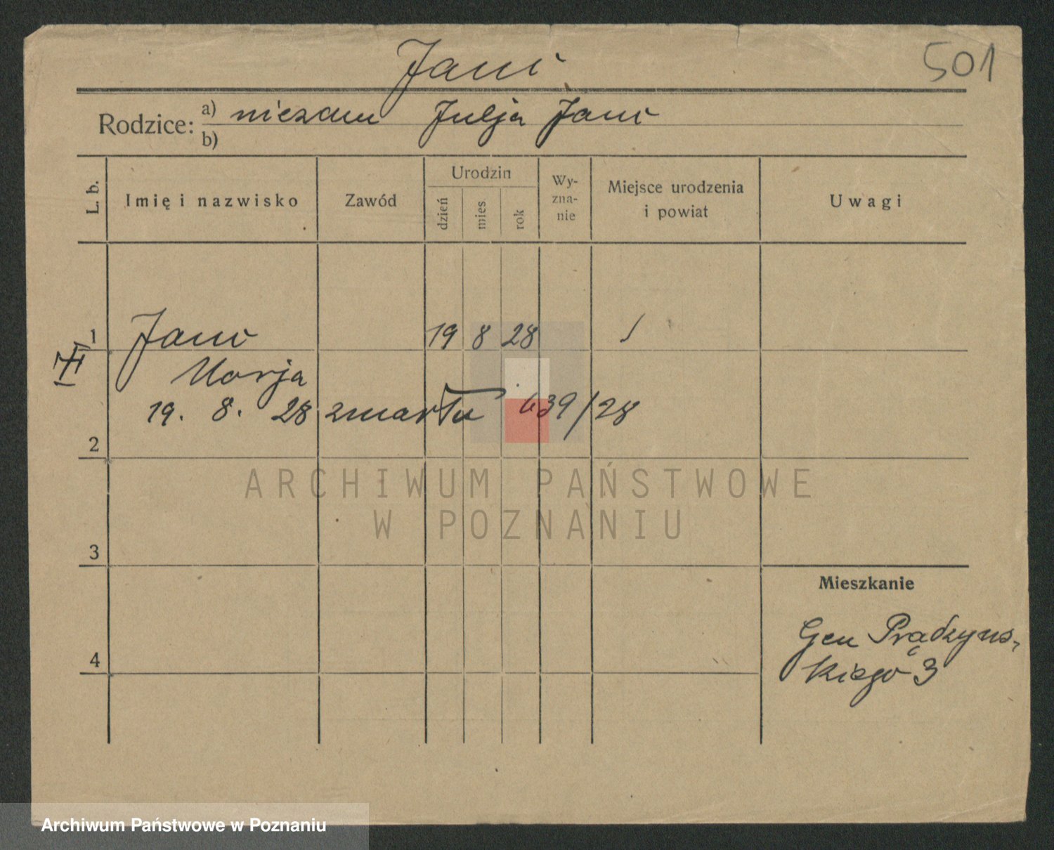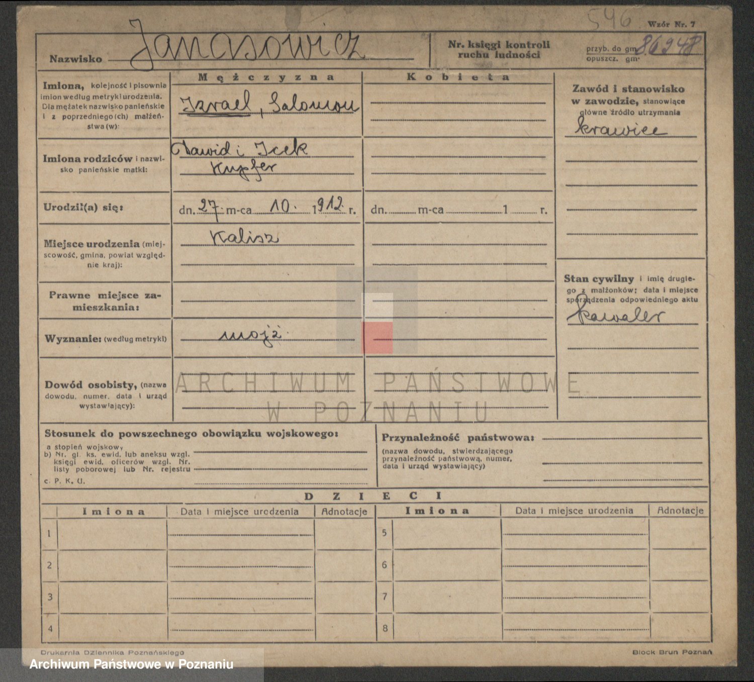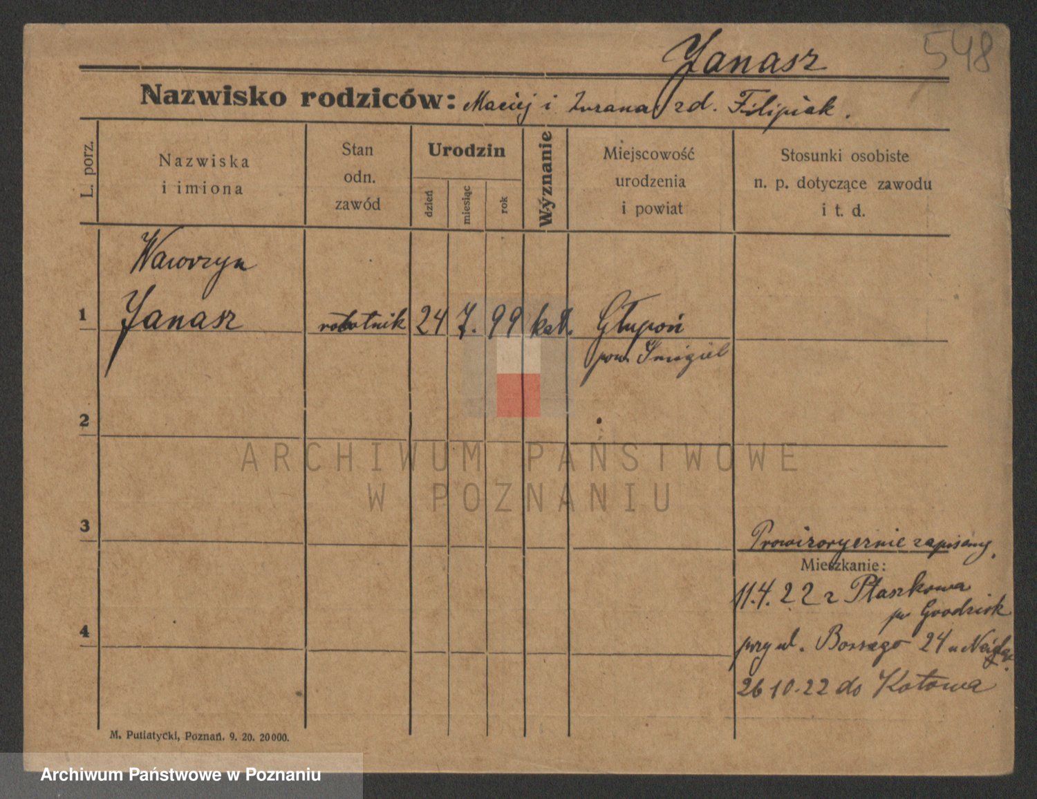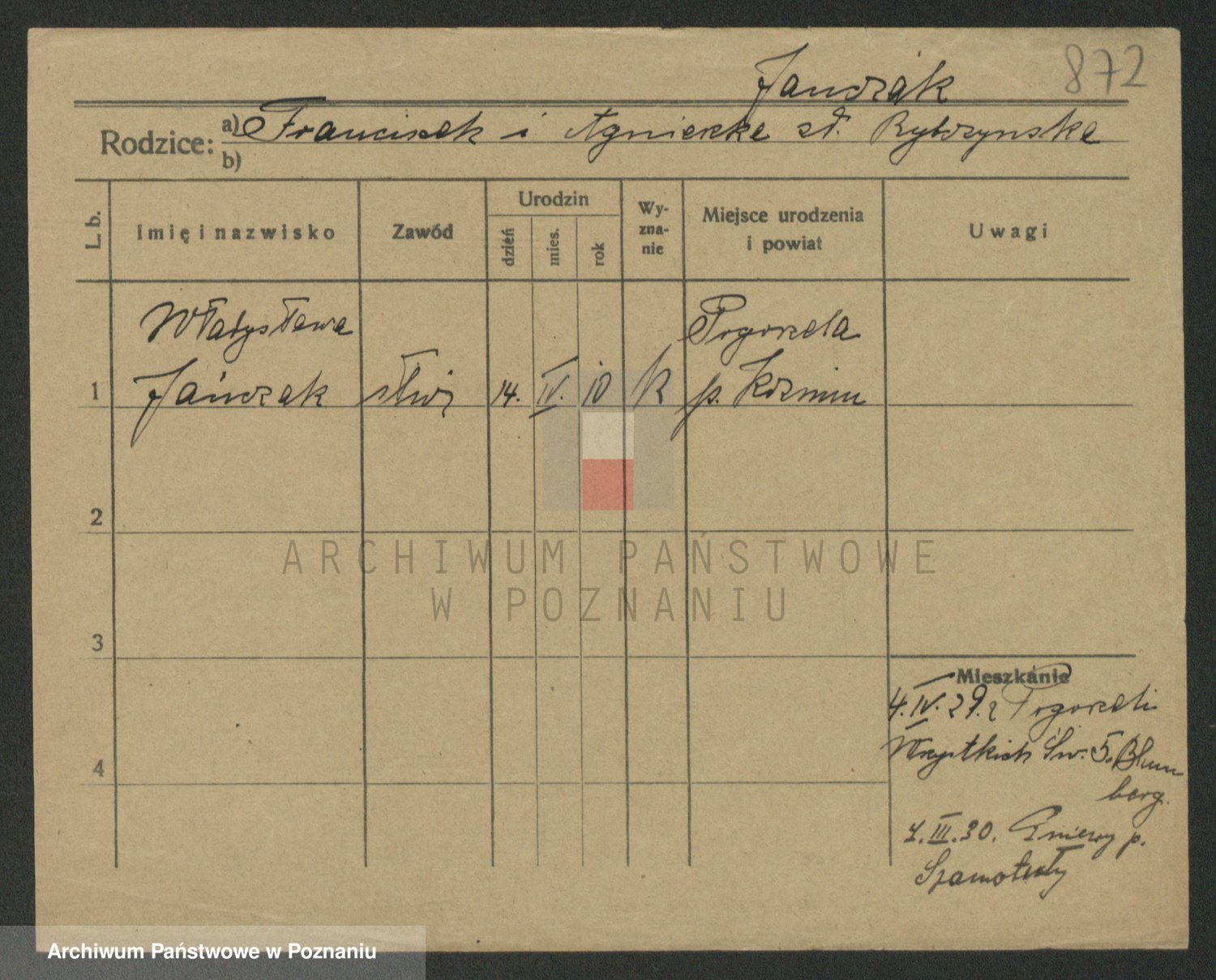 Podgląd karty osobowej dostępny jest po kliknięciu na nazwisko lub ikonkę karty. Można dokonywać powiększenia (ikony na górze) lub przechodzić między kolejnymi skanami (strzałki po bokach).