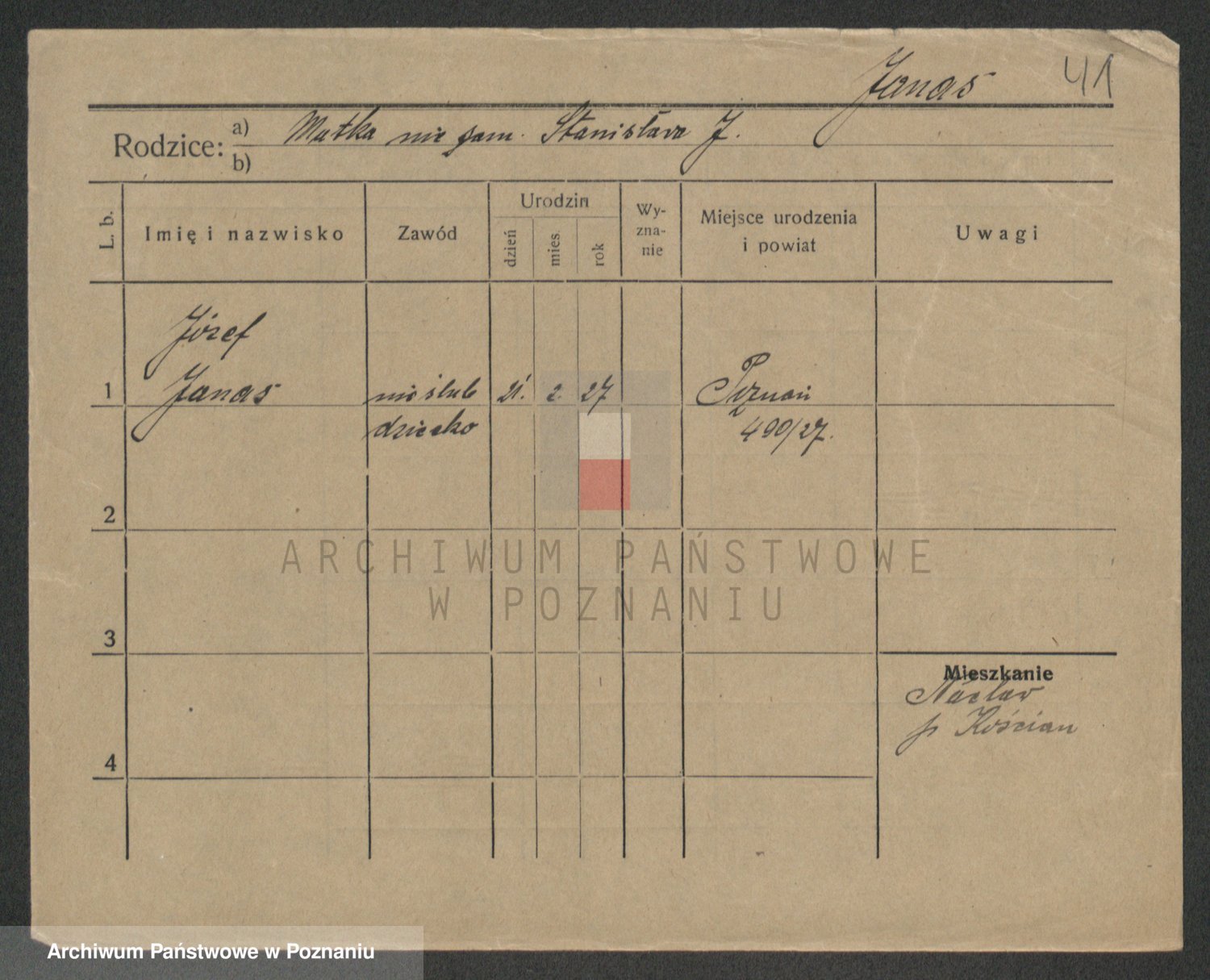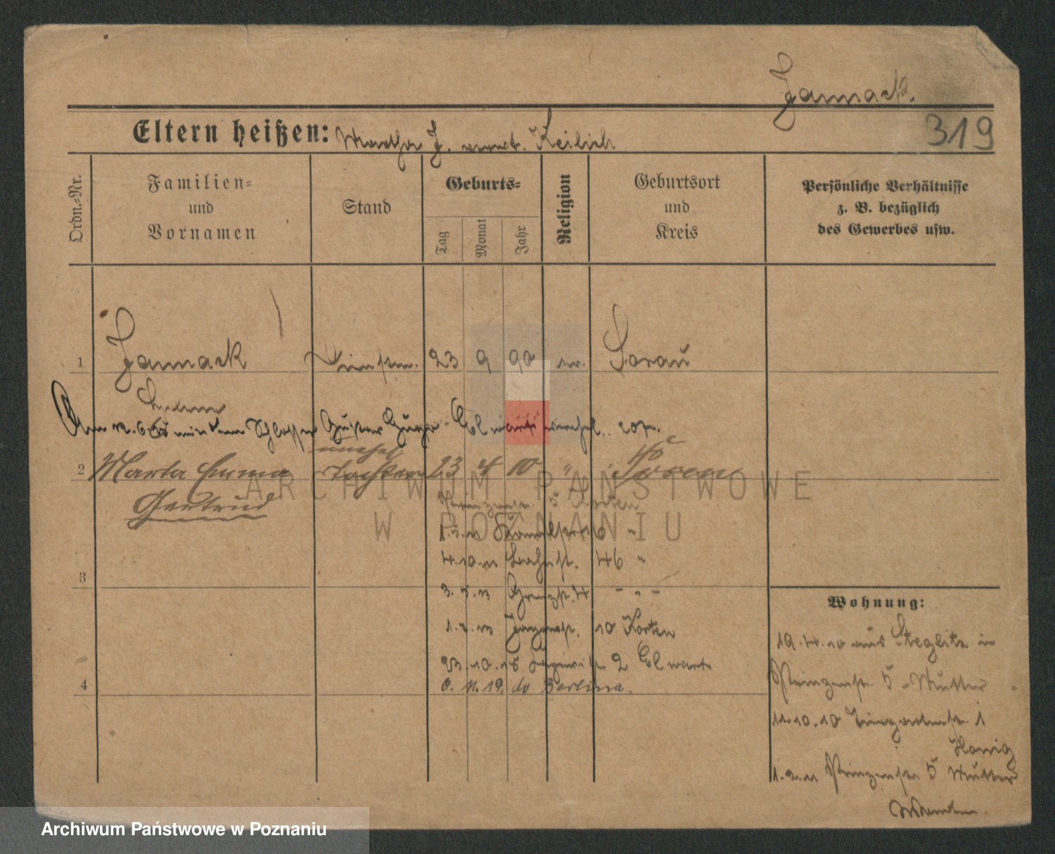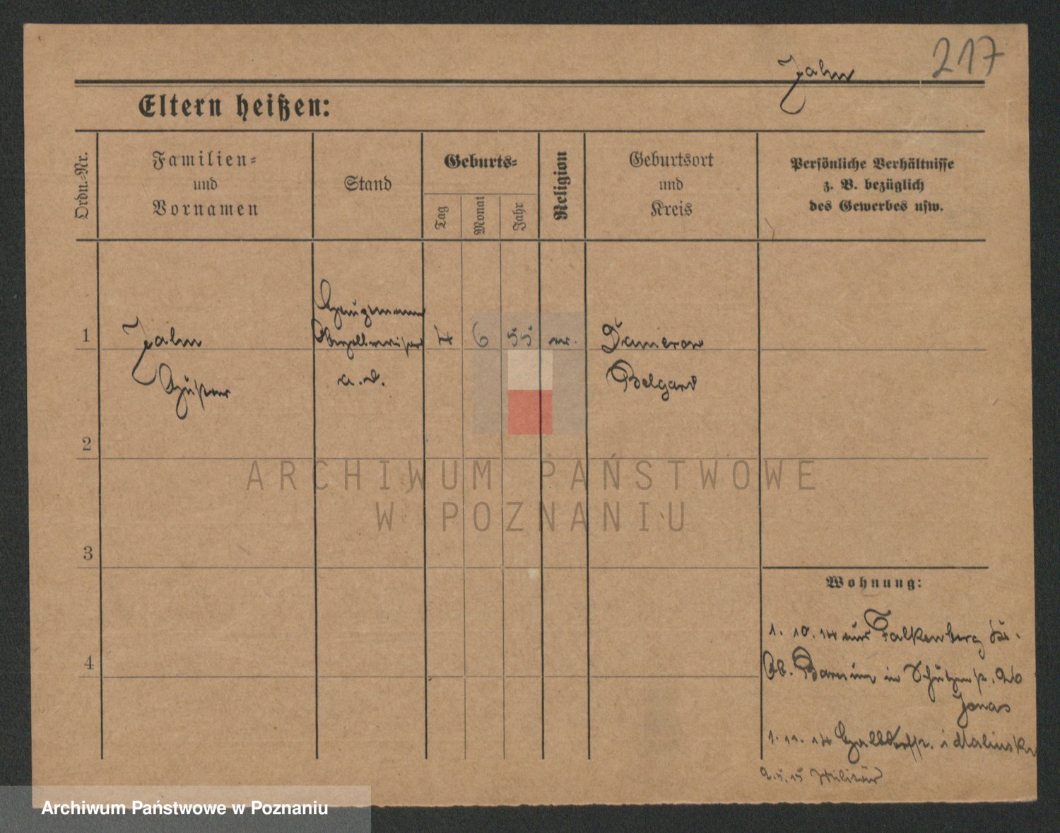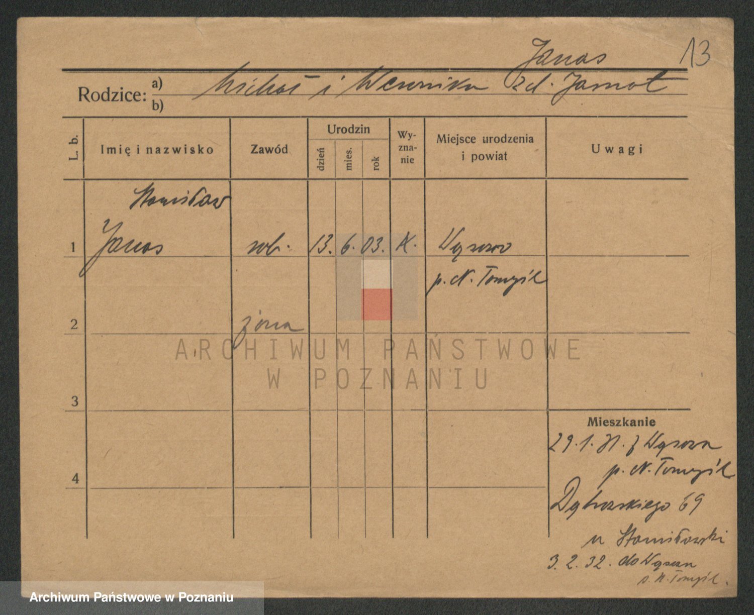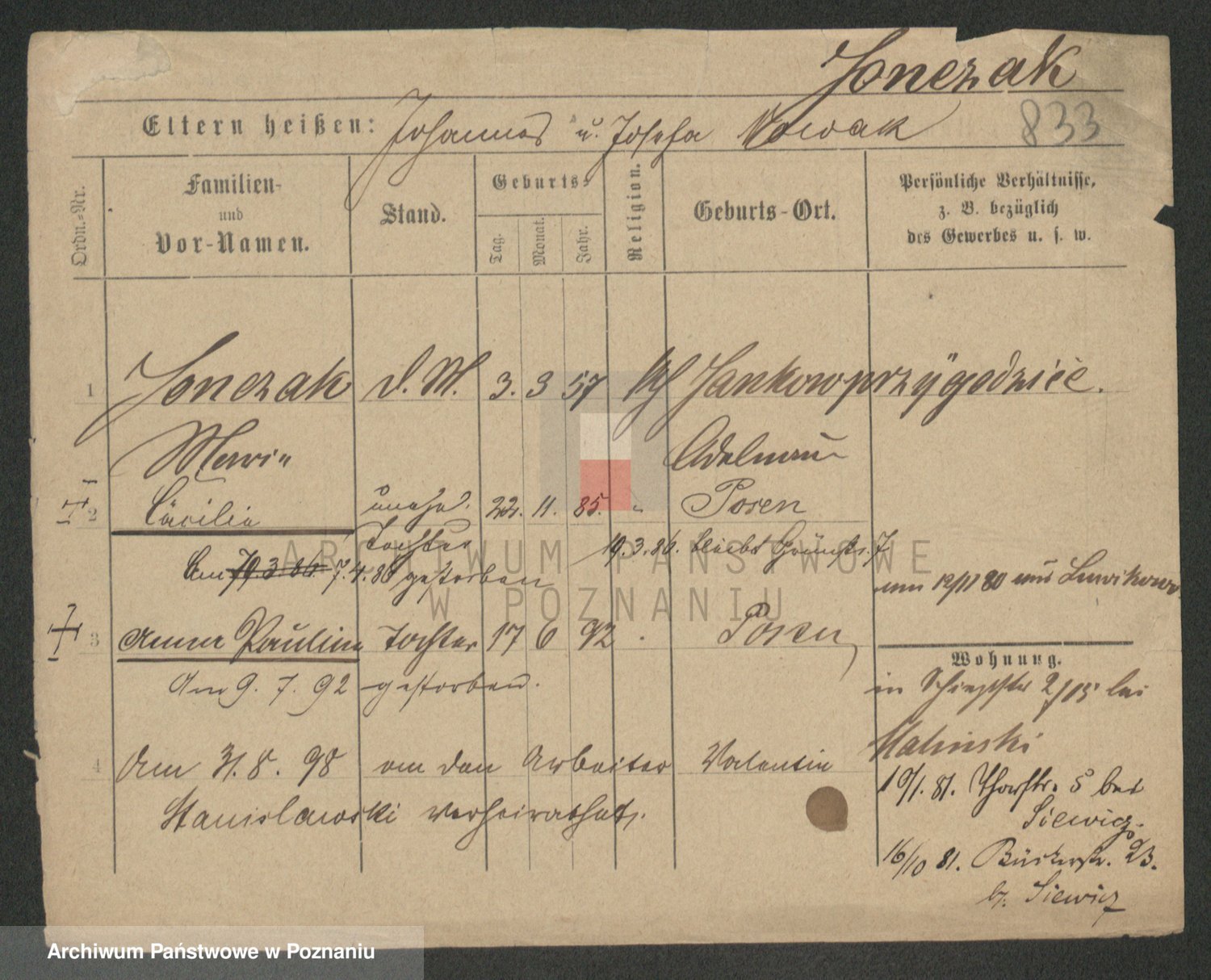 Podgląd karty osobowej dostępny jest po kliknięciu na nazwisko lub ikonkę karty. Można dokonywać powiększenia (ikony na górze) lub przechodzić między kolejnymi skanami (strzałki po bokach).