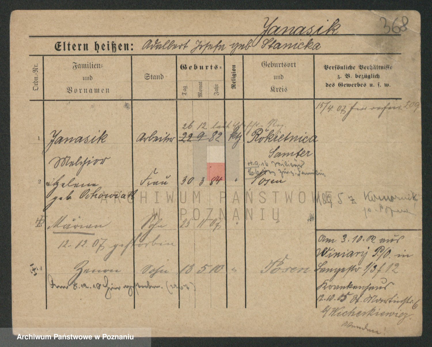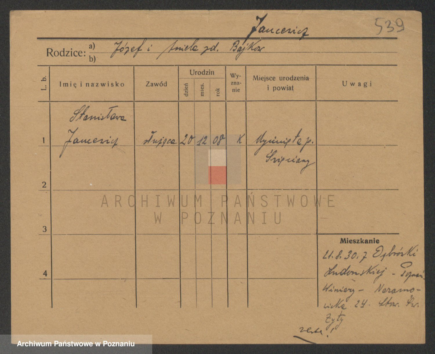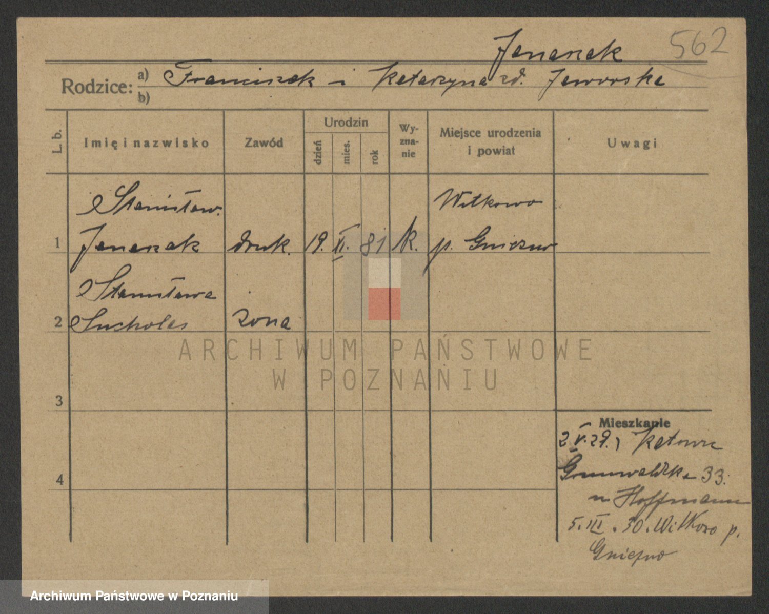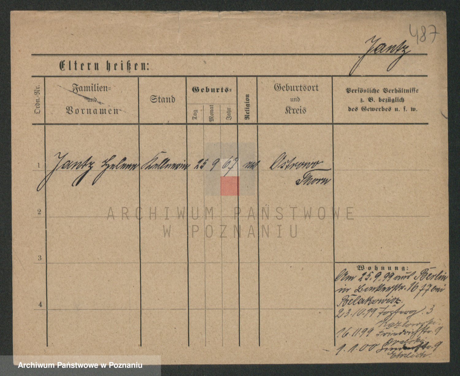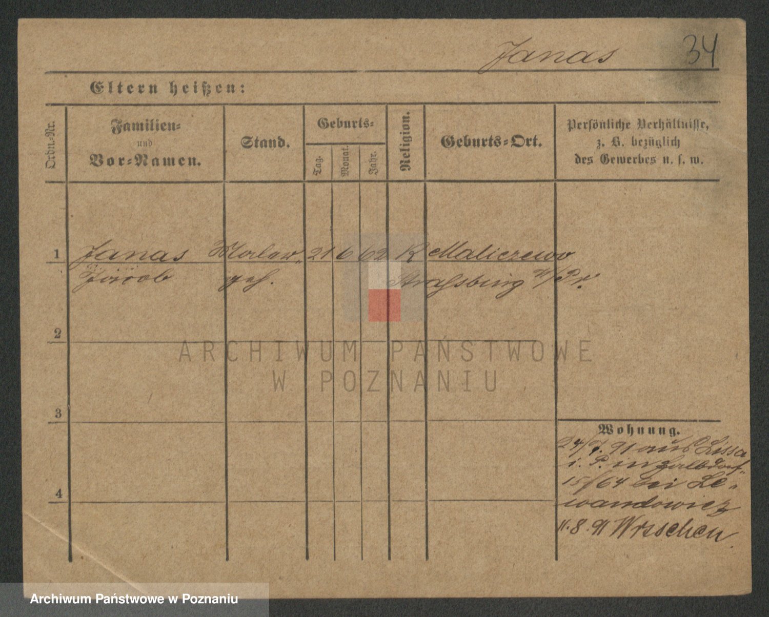 Podgląd karty osobowej dostępny jest po kliknięciu na nazwisko lub ikonkę karty. Można dokonywać powiększenia (ikony na górze) lub przechodzić między kolejnymi skanami (strzałki po bokach).