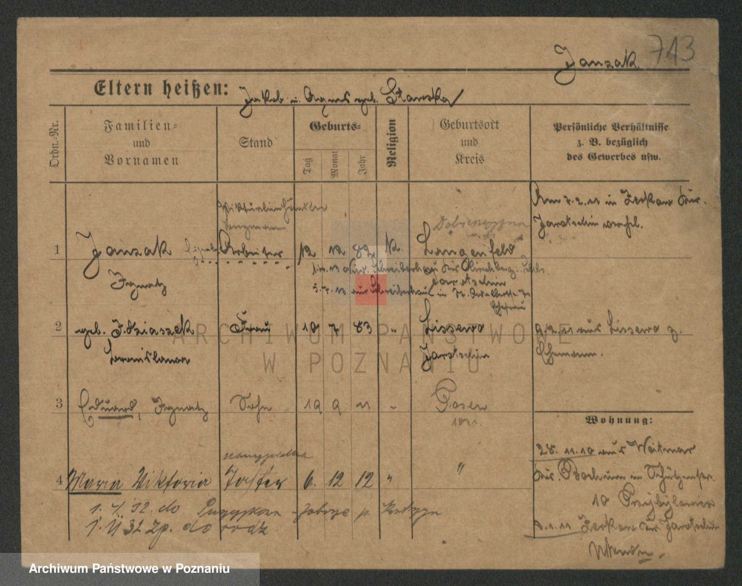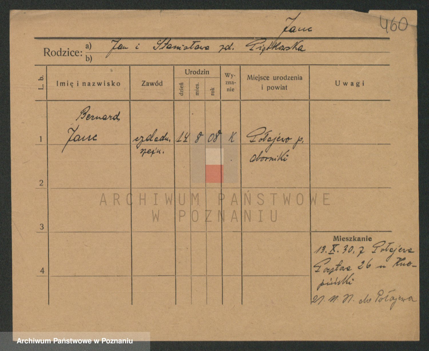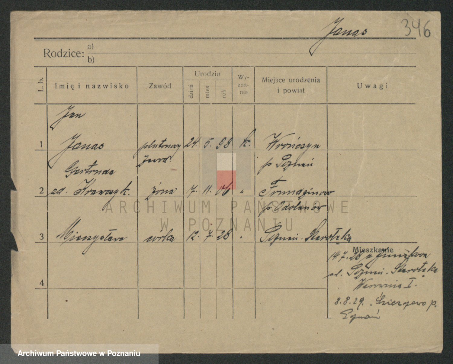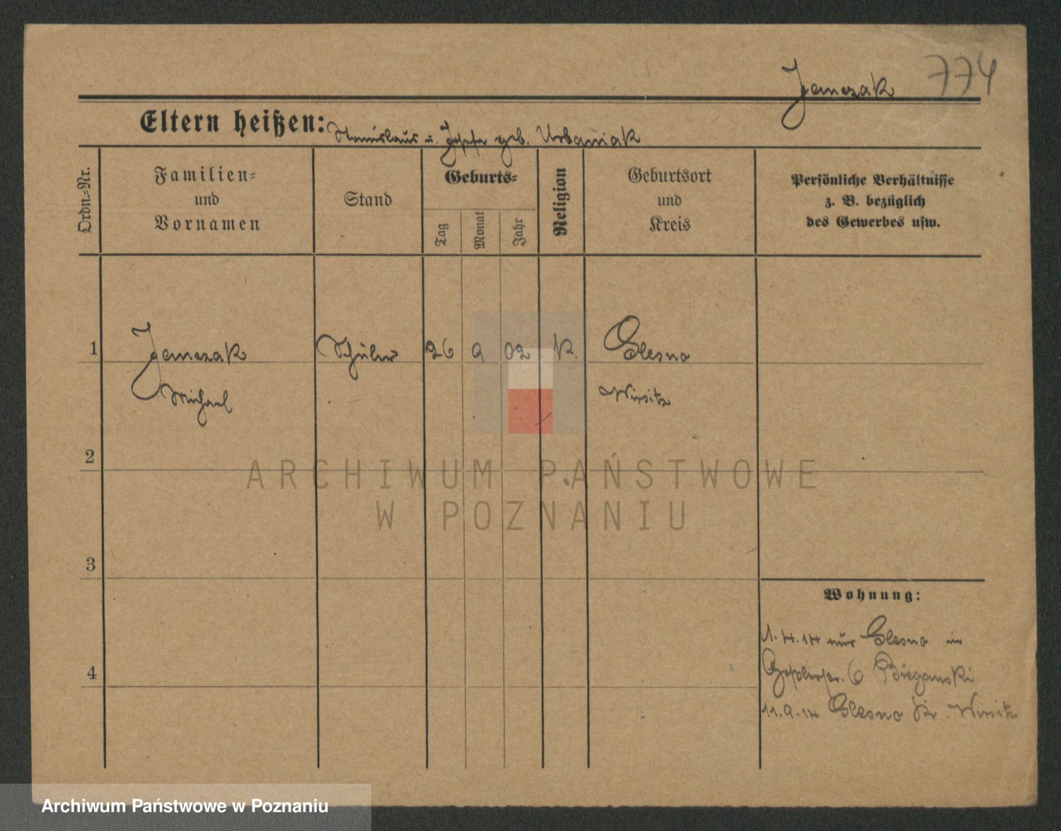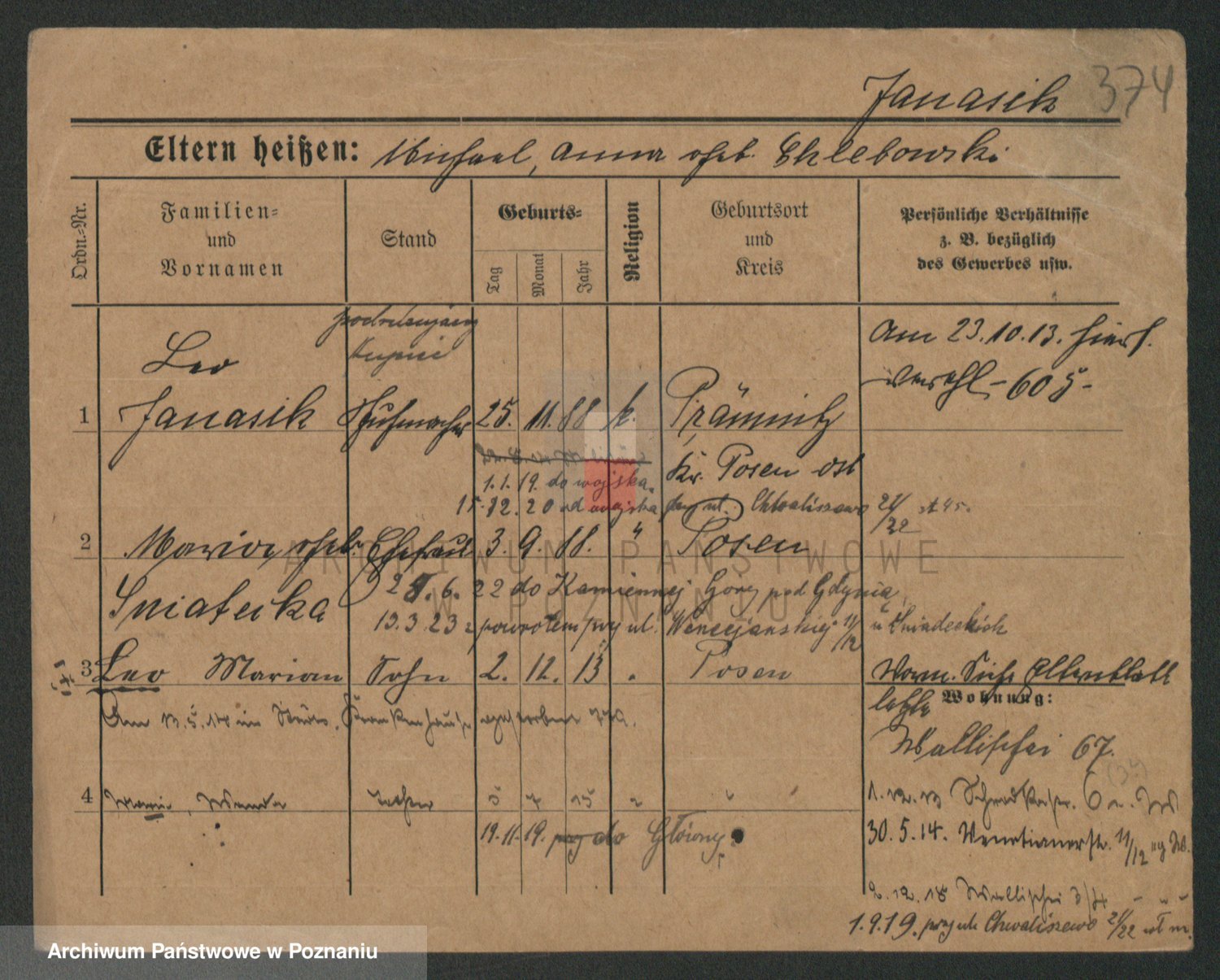 Podgląd karty osobowej dostępny jest po kliknięciu na nazwisko lub ikonkę karty. Można dokonywać powiększenia (ikony na górze) lub przechodzić między kolejnymi skanami (strzałki po bokach).