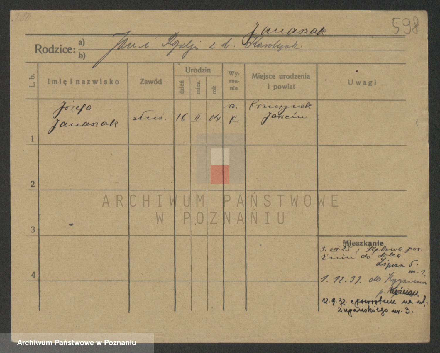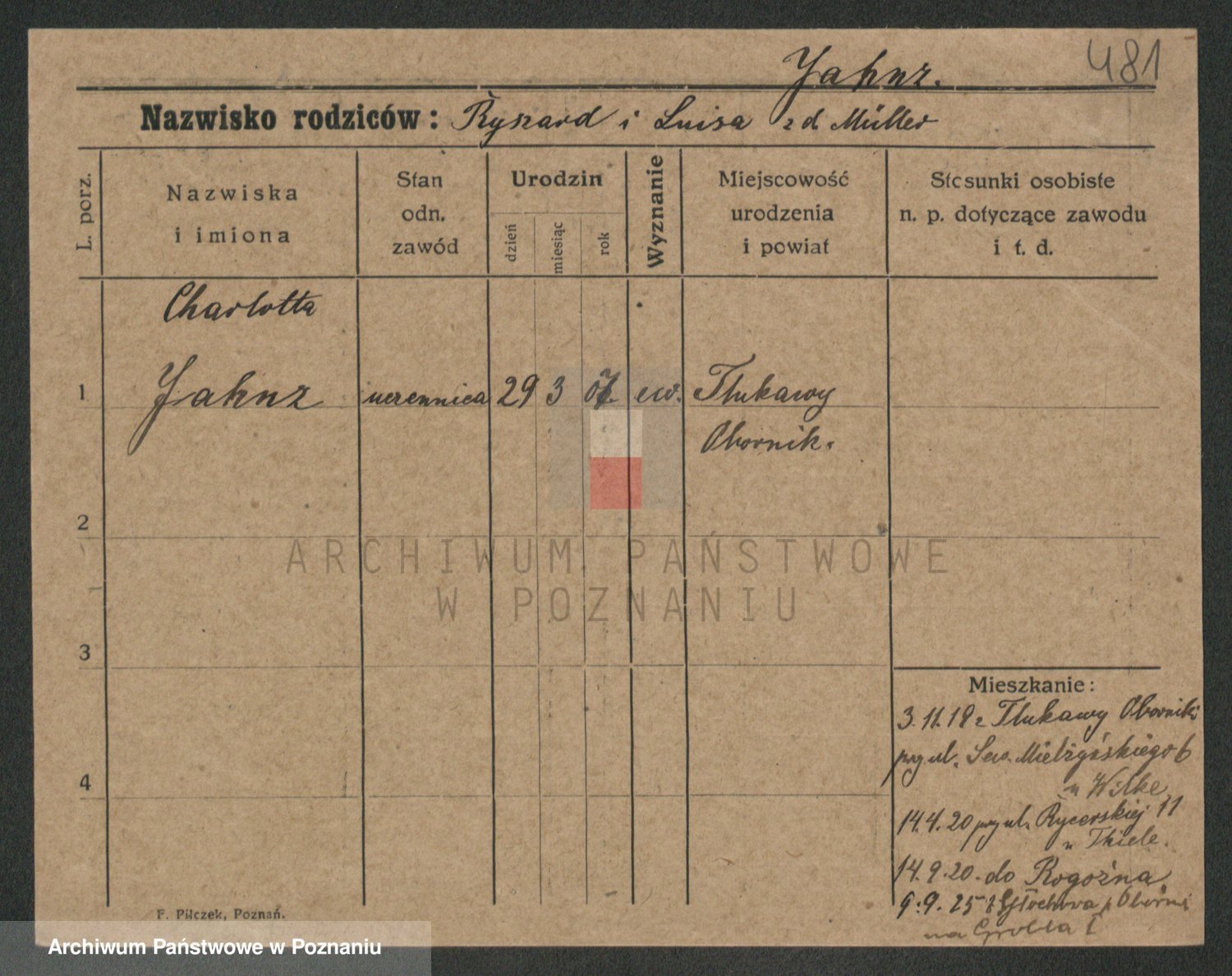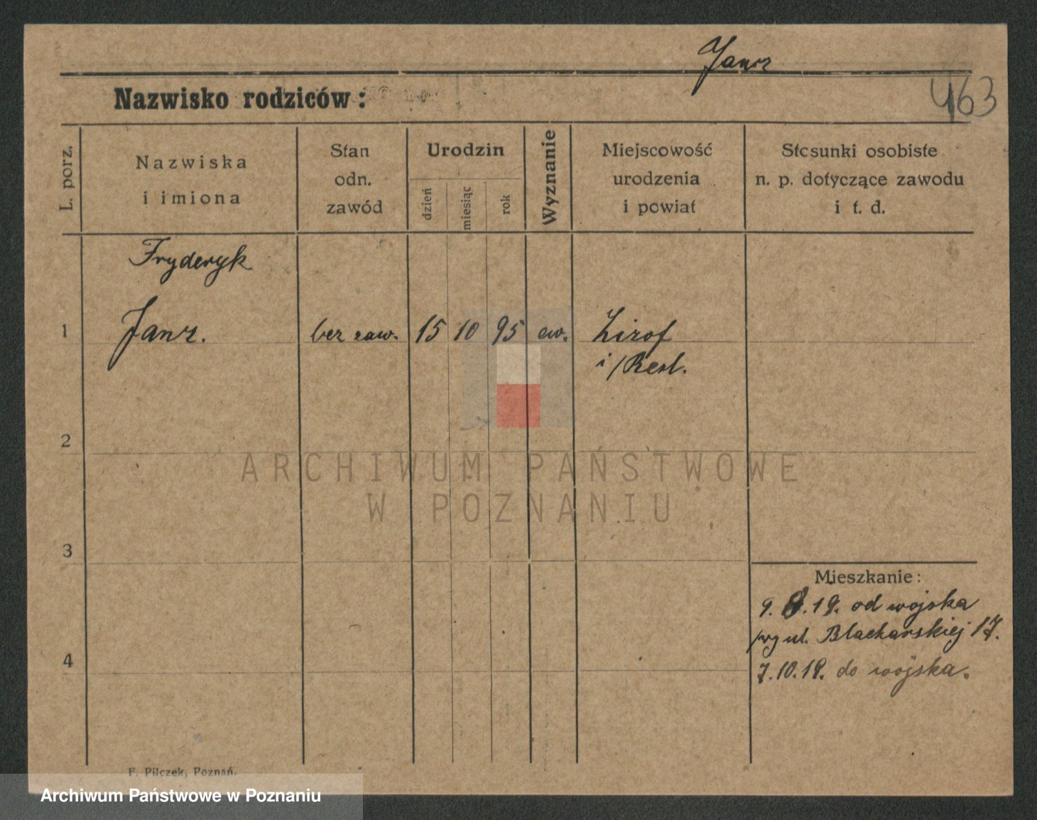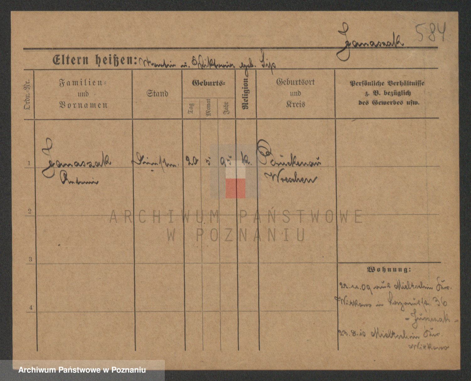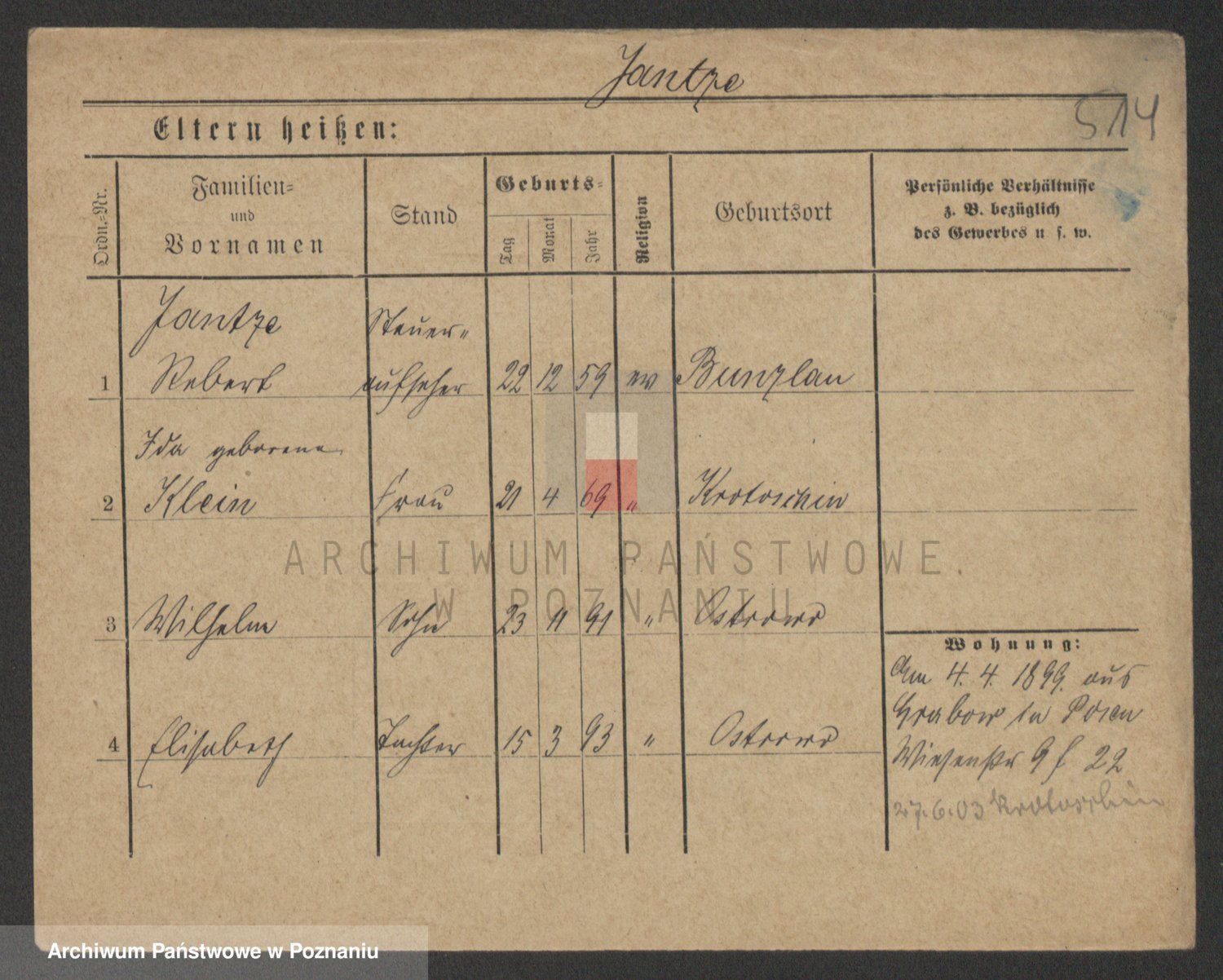 Podgląd karty osobowej dostępny jest po kliknięciu na nazwisko lub ikonkę karty. Można dokonywać powiększenia (ikony na górze) lub przechodzić między kolejnymi skanami (strzałki po bokach).