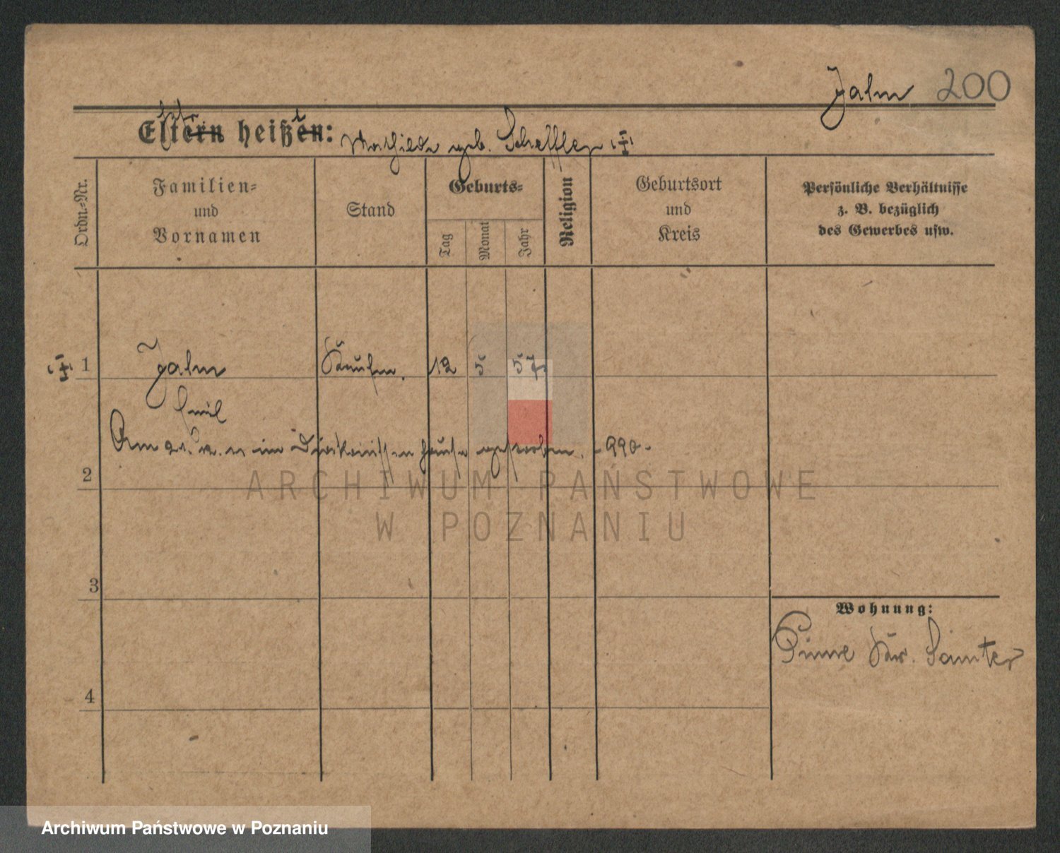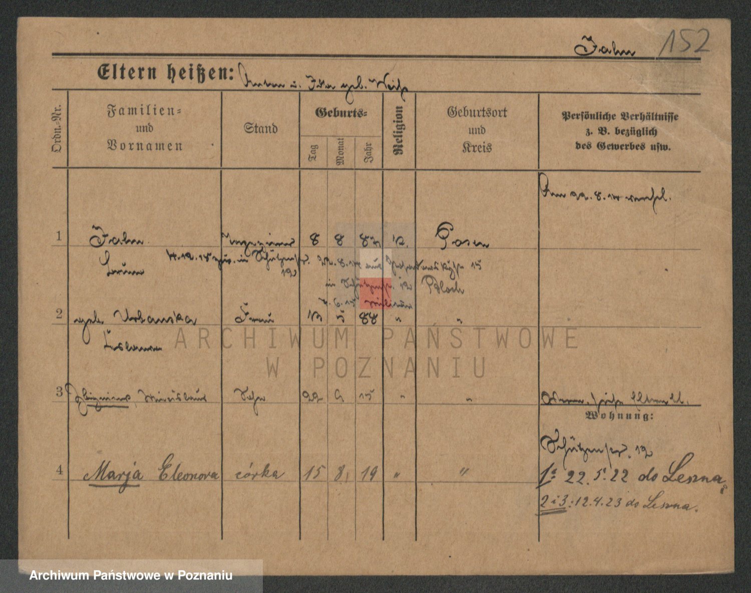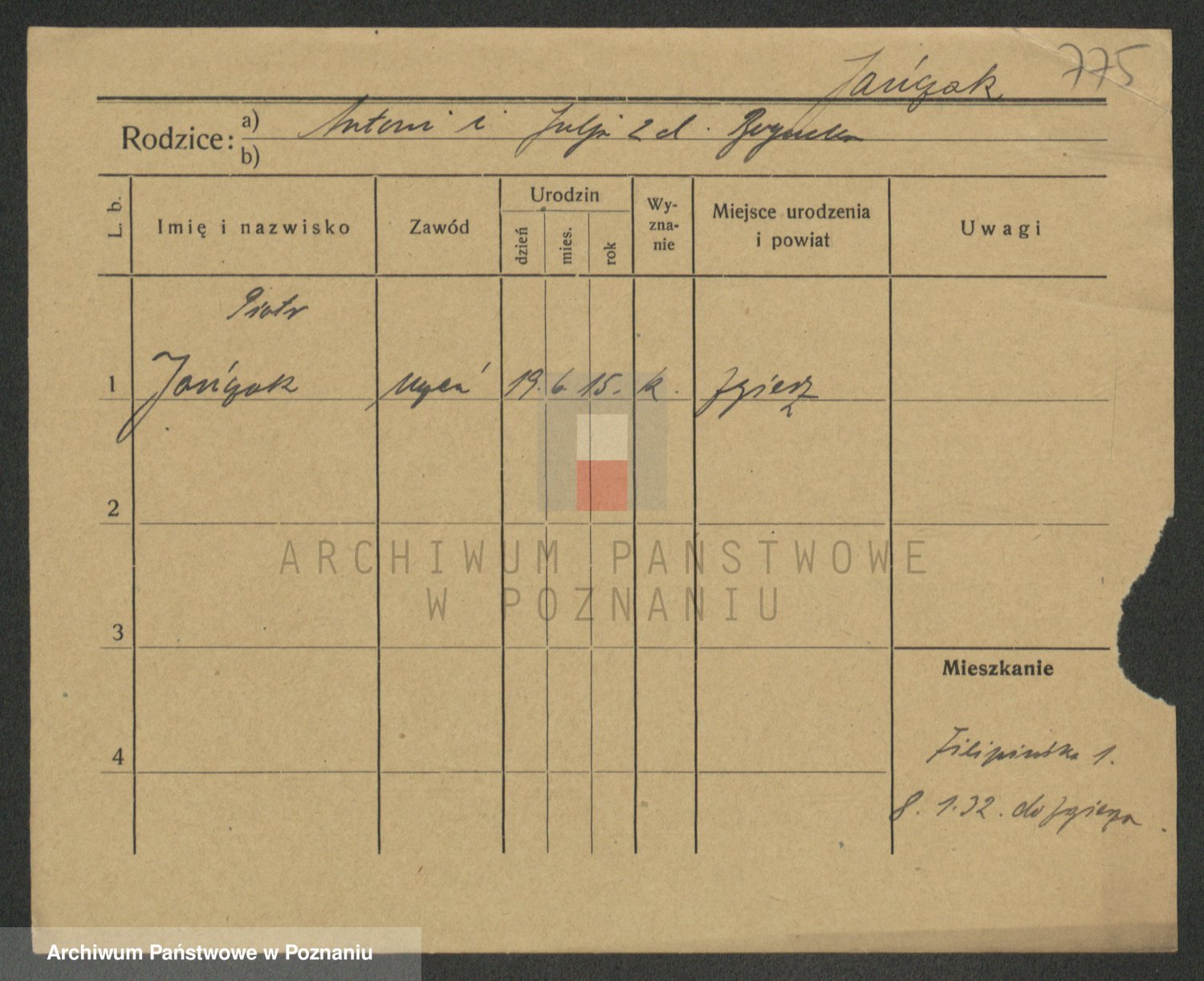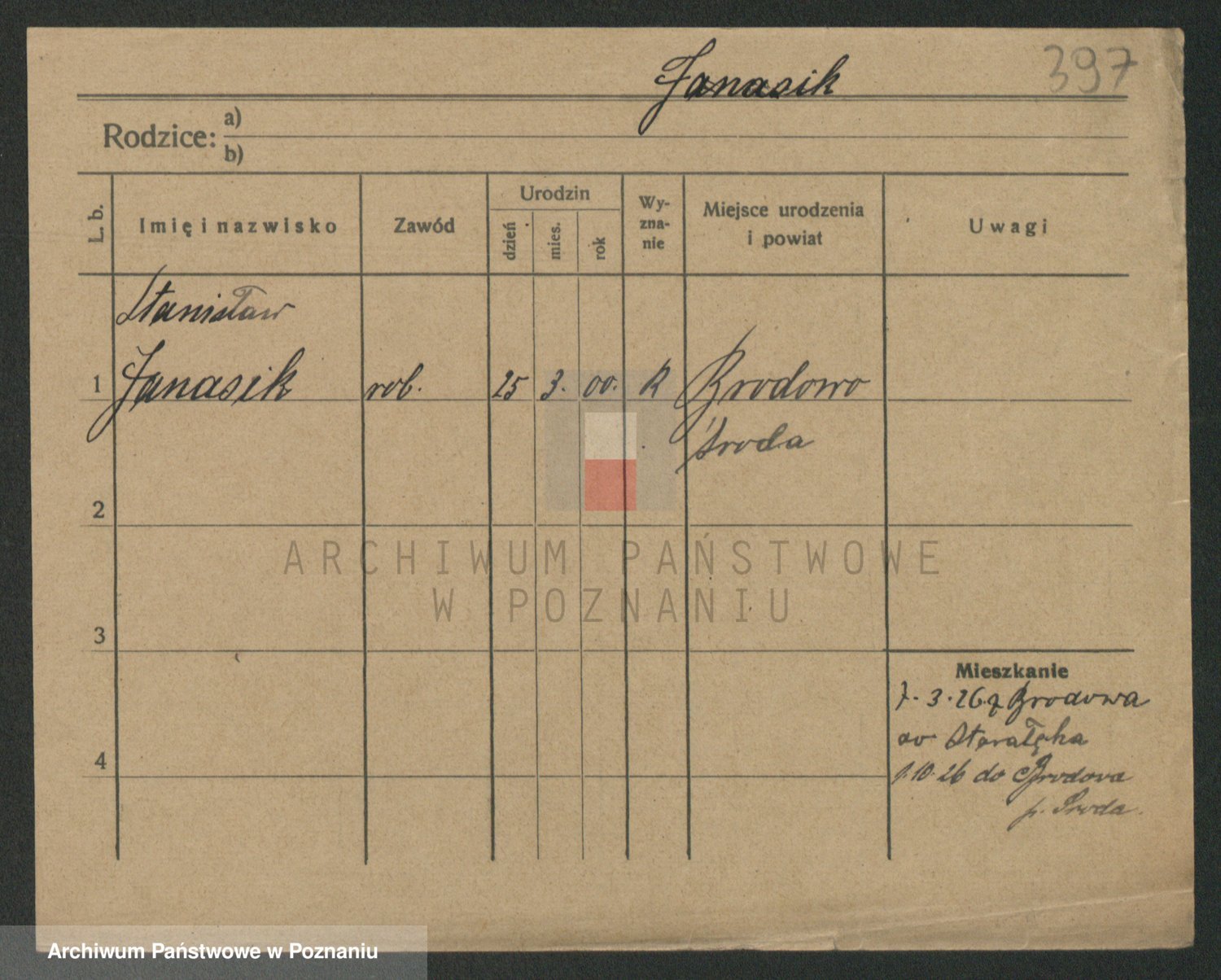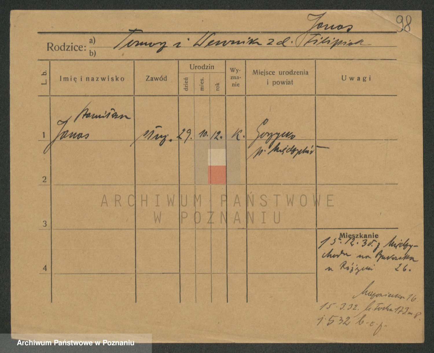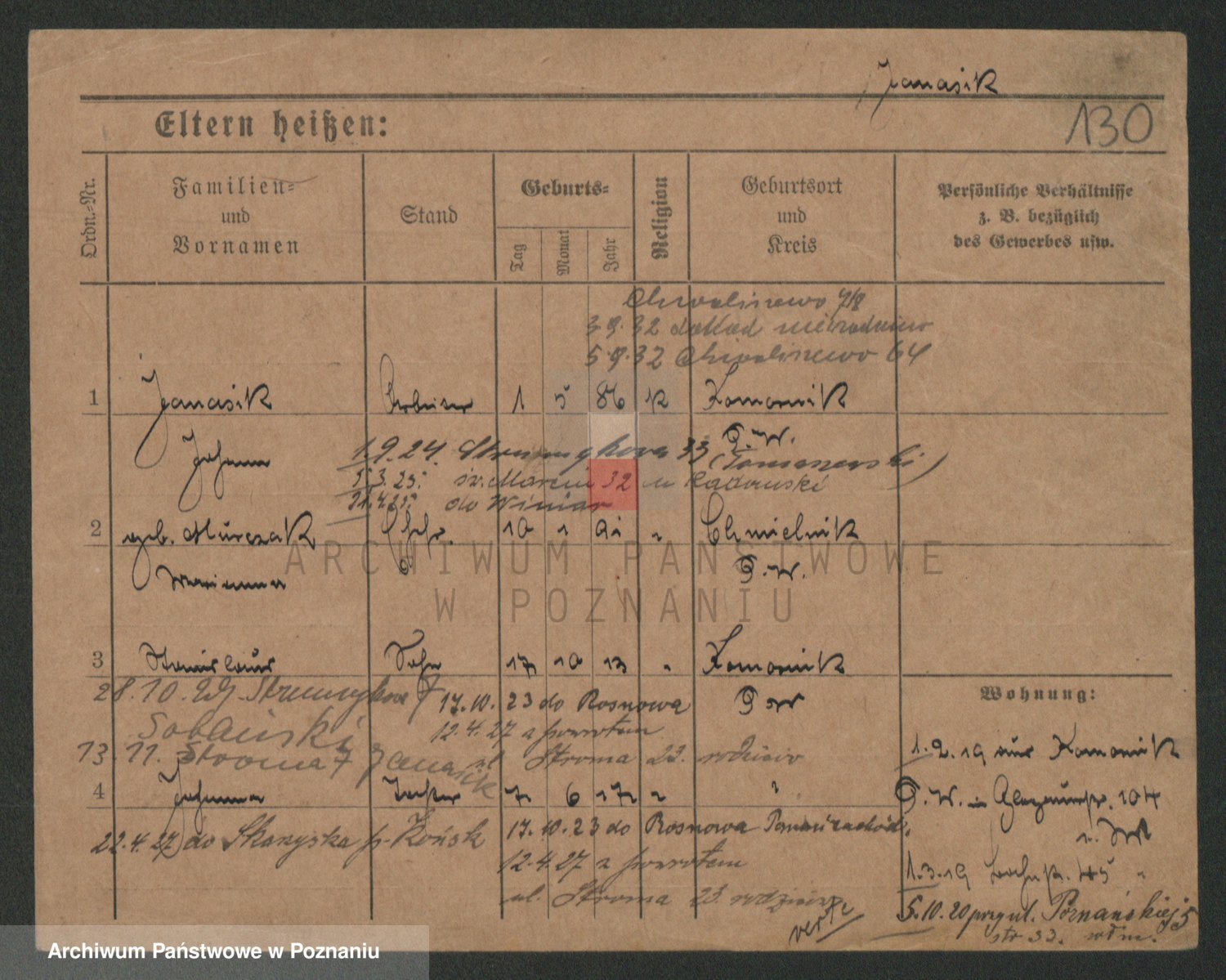 Podgląd karty osobowej dostępny jest po kliknięciu na nazwisko lub ikonkę karty. Można dokonywać powiększenia (ikony na górze) lub przechodzić między kolejnymi skanami (strzałki po bokach).