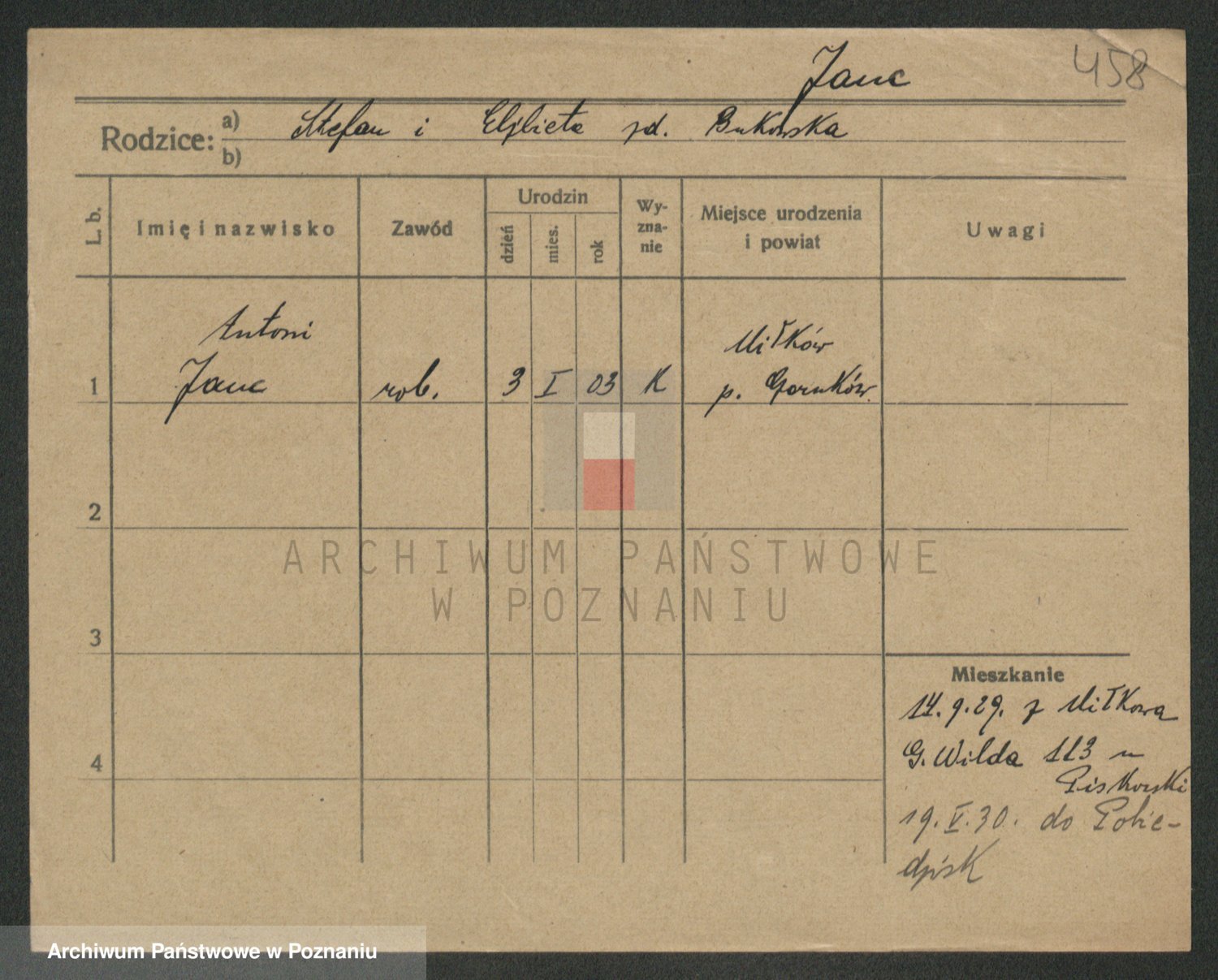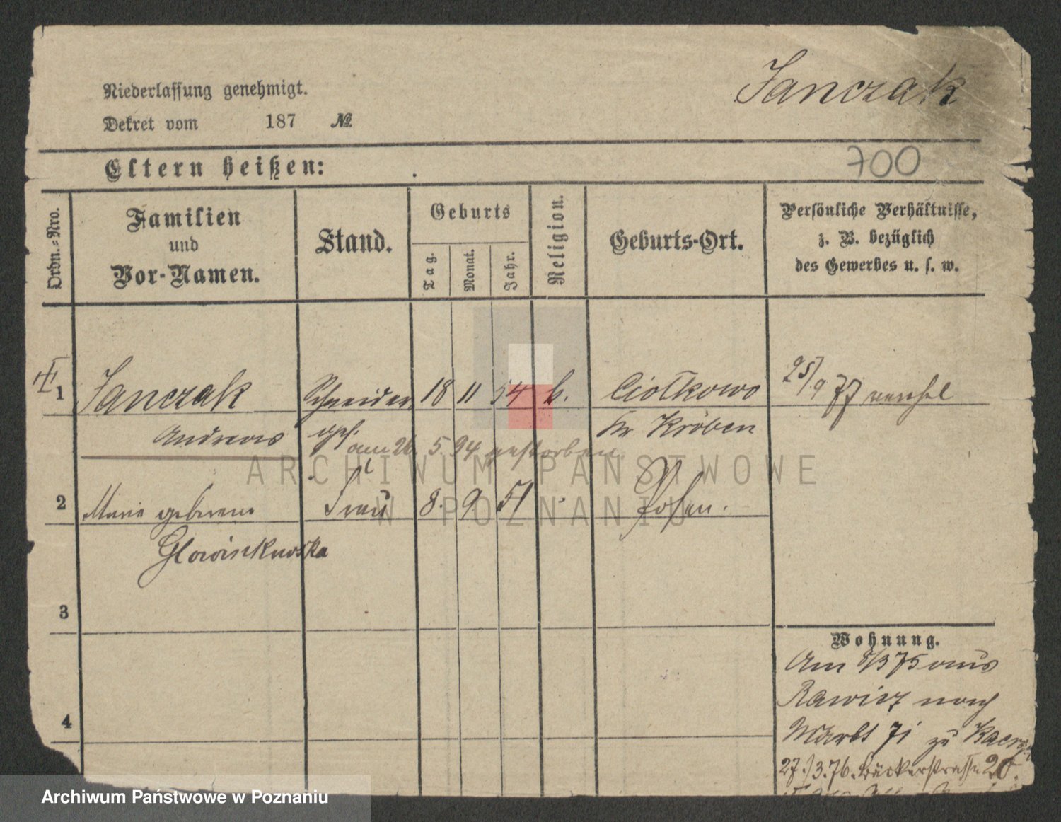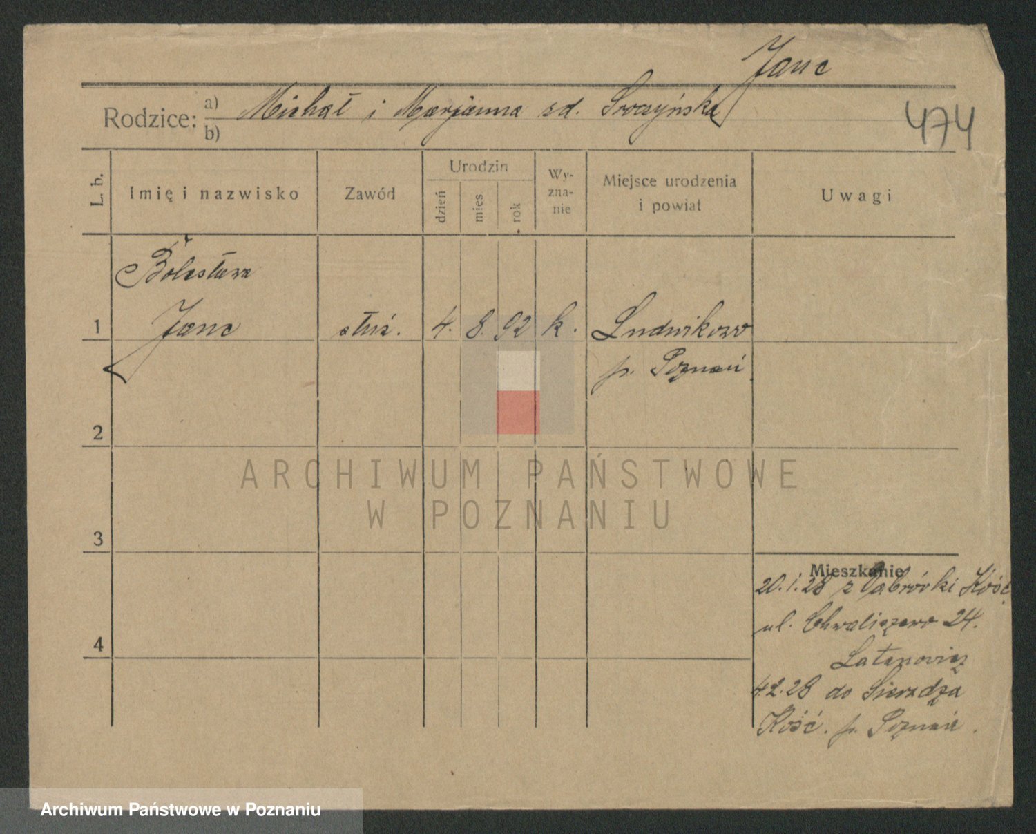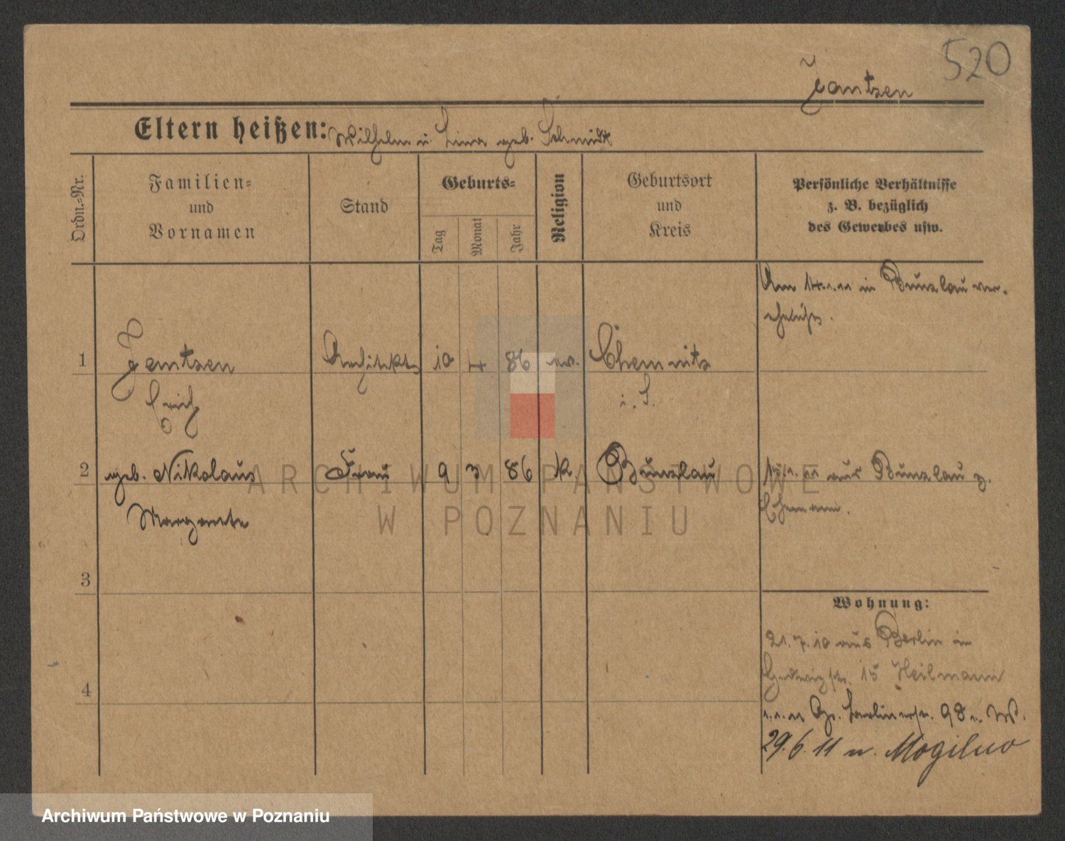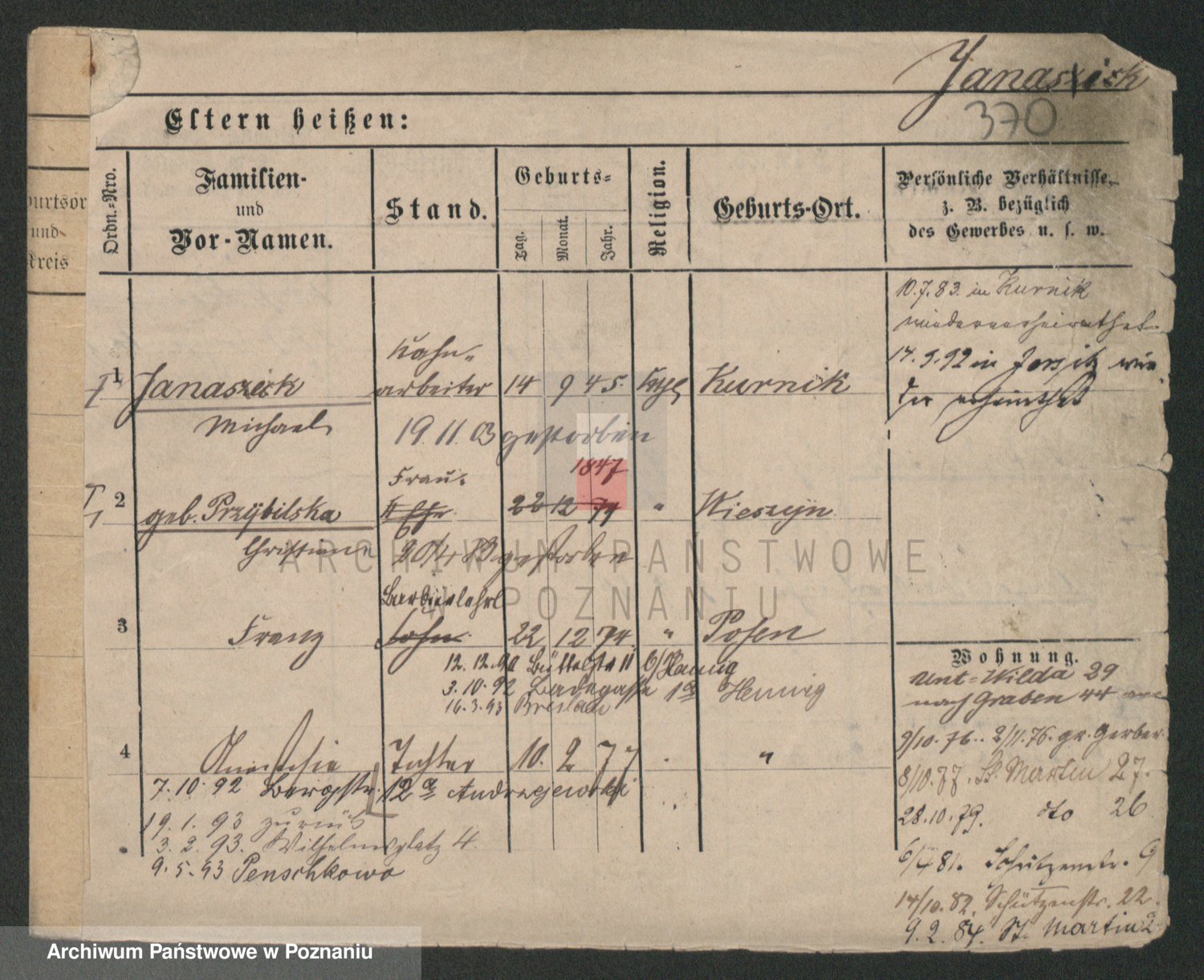 Podgląd karty osobowej dostępny jest po kliknięciu na nazwisko lub ikonkę karty. Można dokonywać powiększenia (ikony na górze) lub przechodzić między kolejnymi skanami (strzałki po bokach).