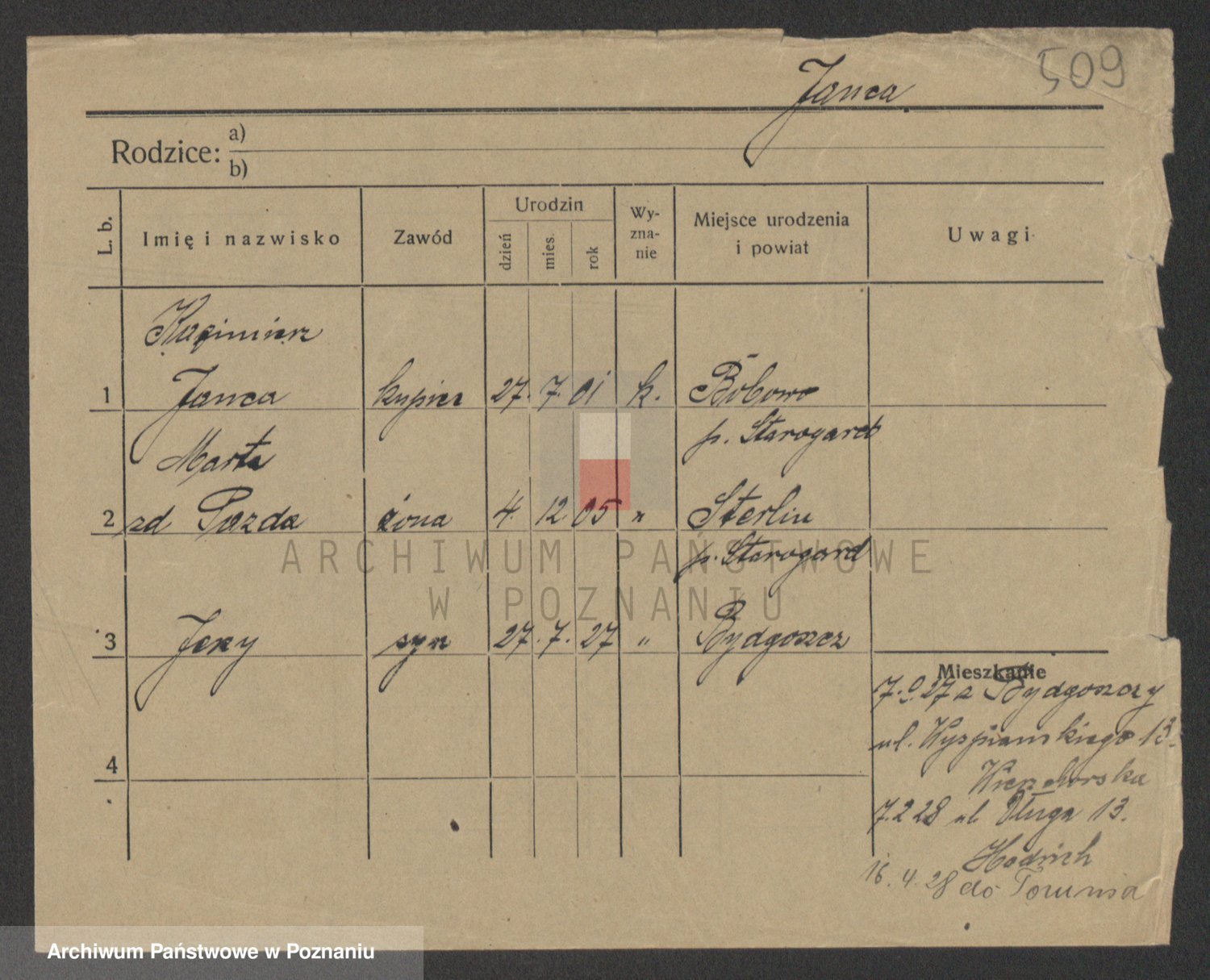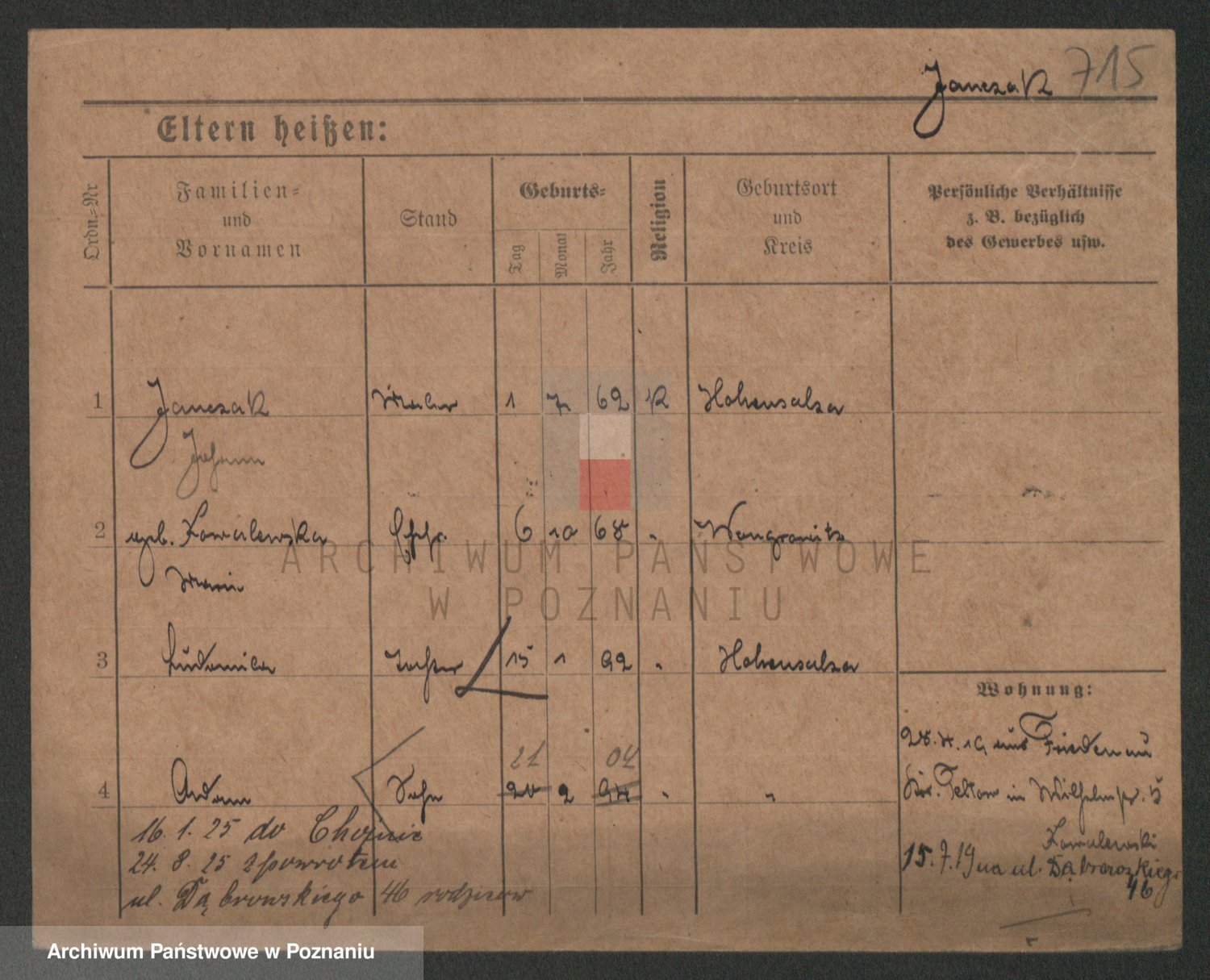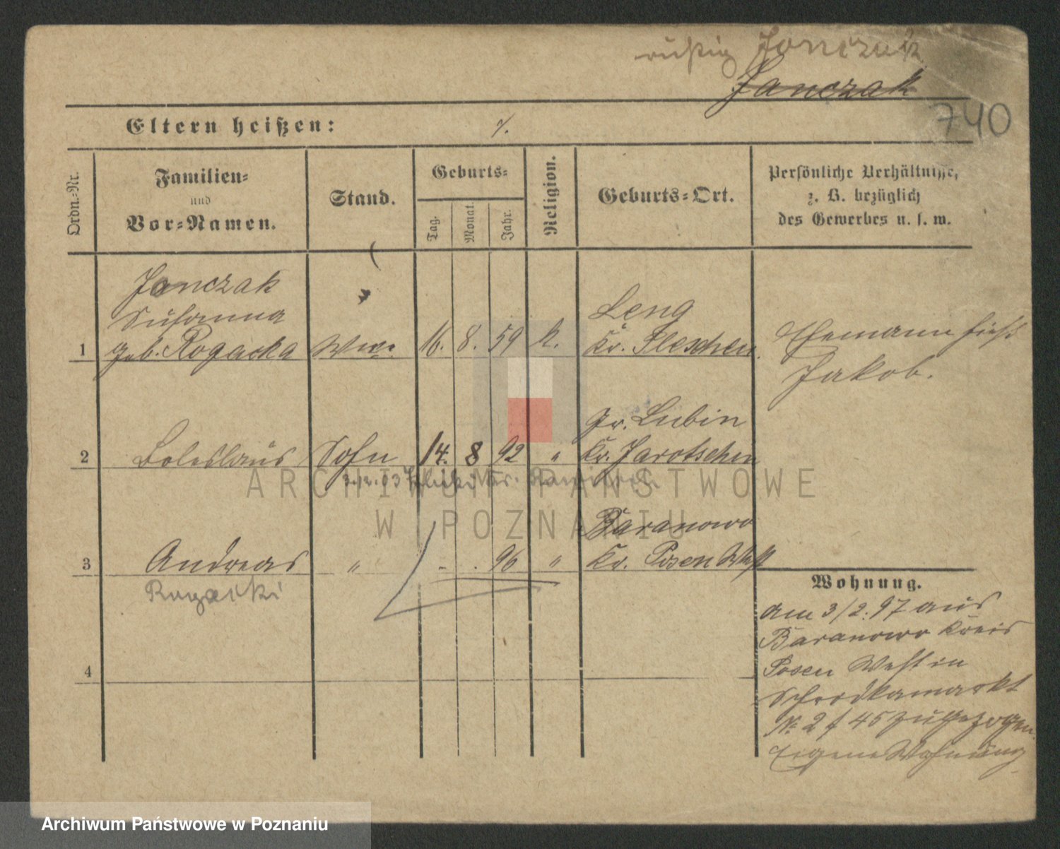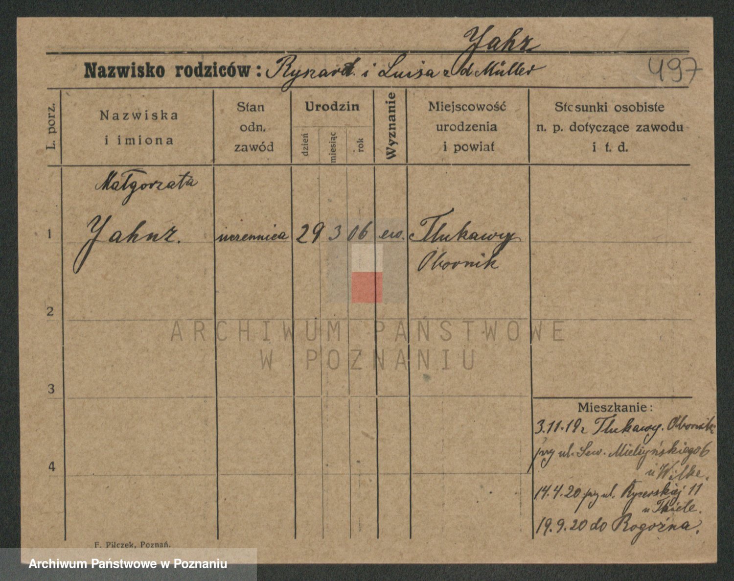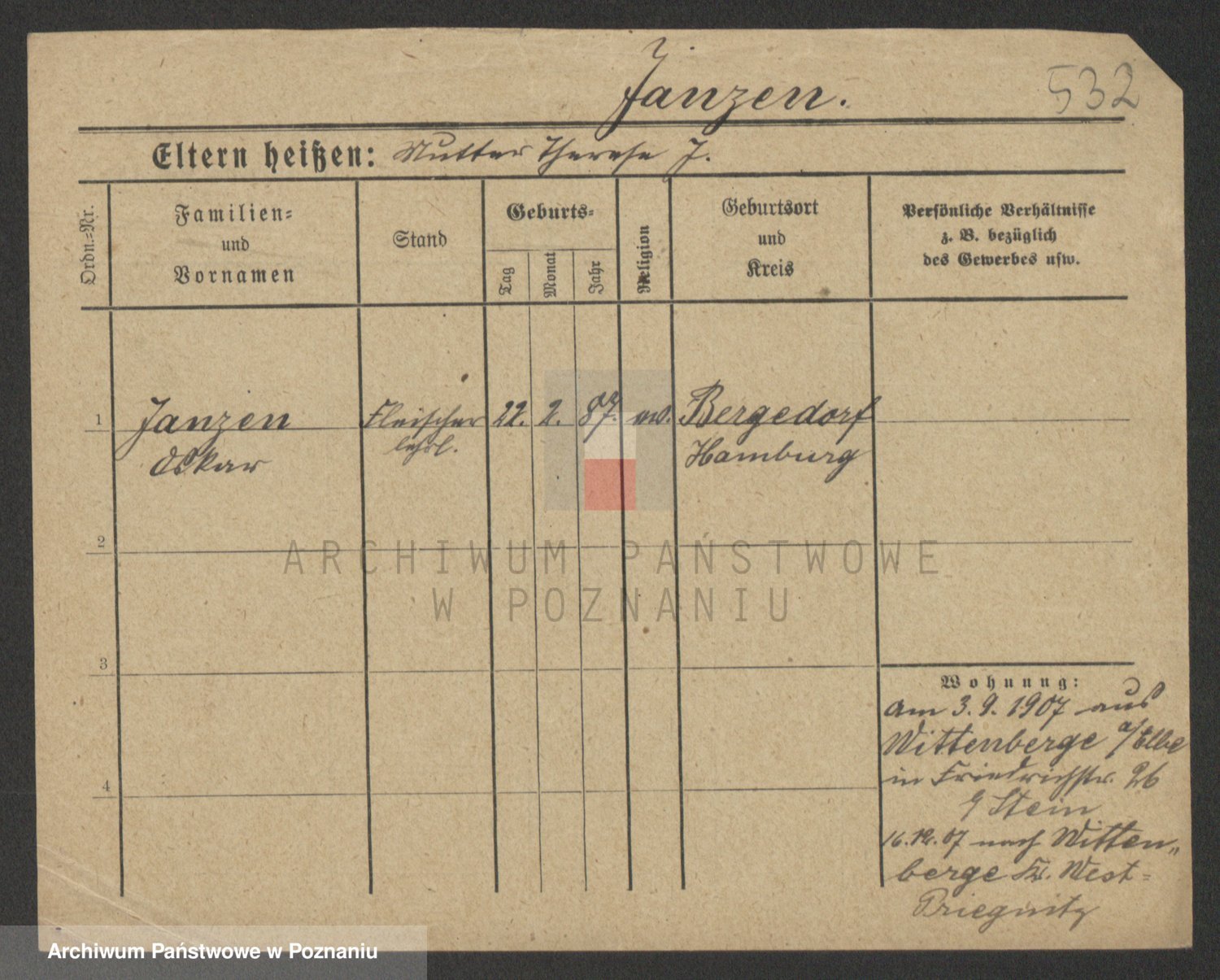 Podgląd karty osobowej dostępny jest po kliknięciu na nazwisko lub ikonkę karty. Można dokonywać powiększenia (ikony na górze) lub przechodzić między kolejnymi skanami (strzałki po bokach).