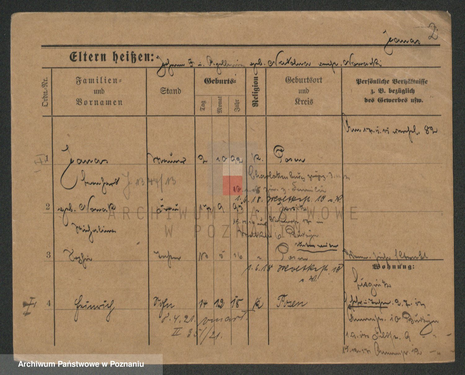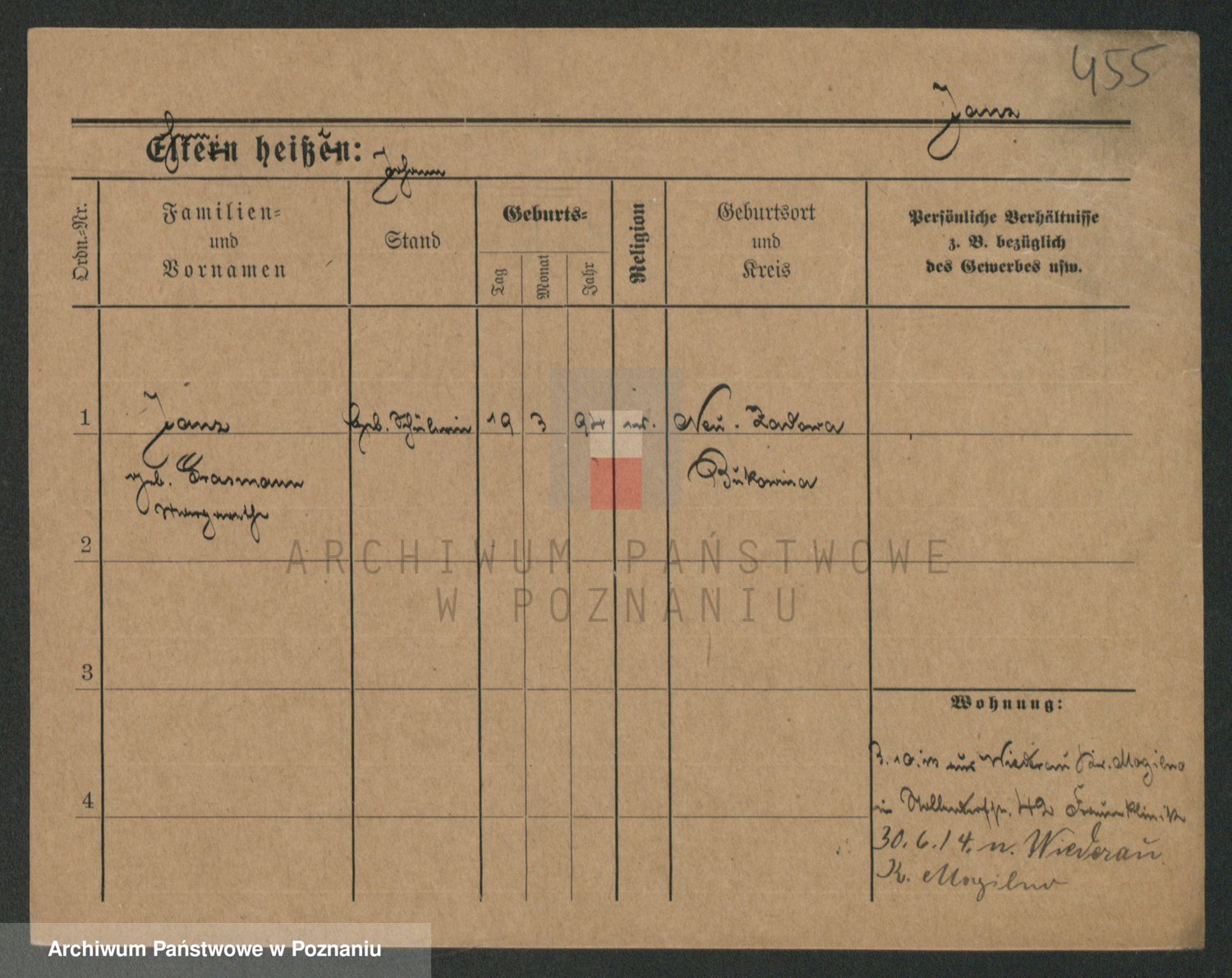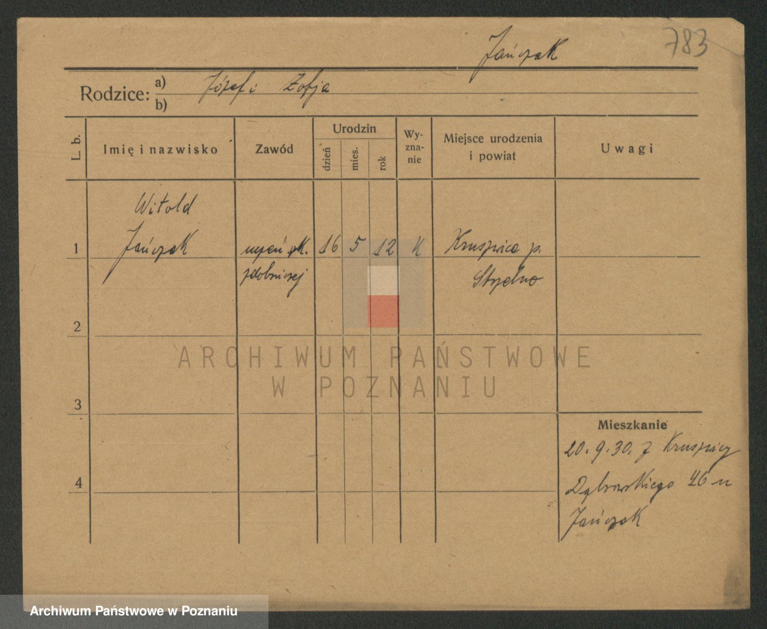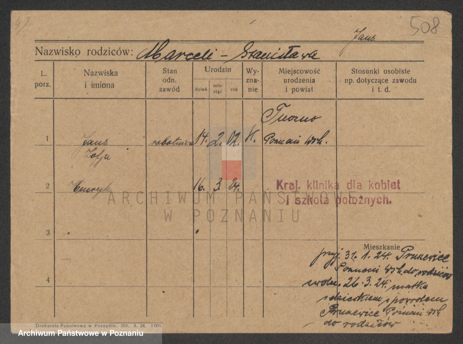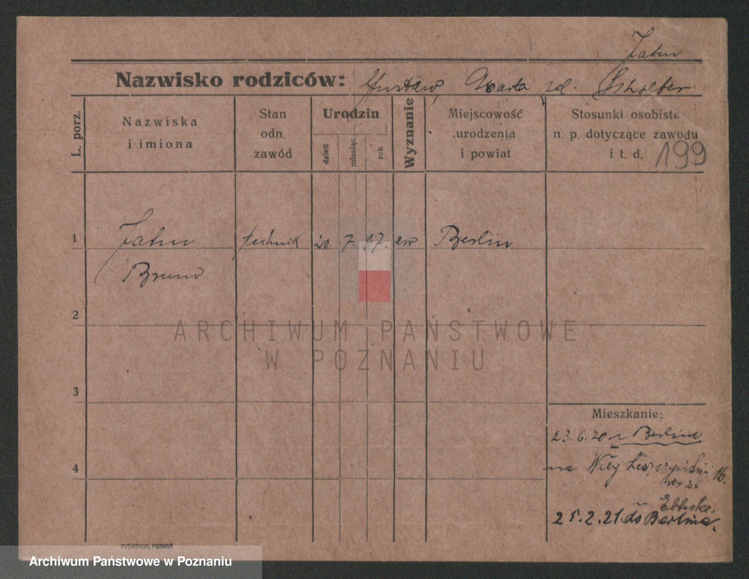 Podgląd karty osobowej dostępny jest po kliknięciu na nazwisko lub ikonkę karty. Można dokonywać powiększenia (ikony na górze) lub przechodzić między kolejnymi skanami (strzałki po bokach).