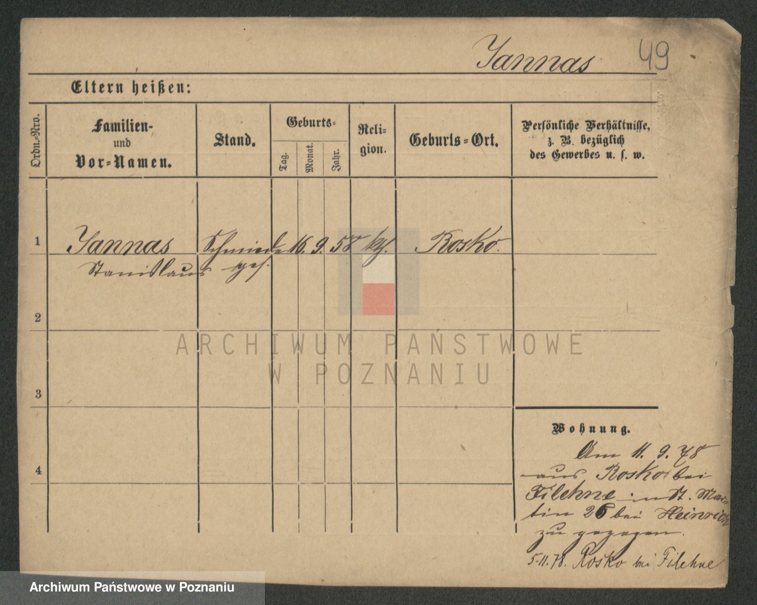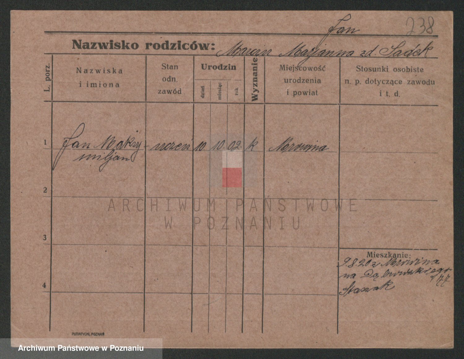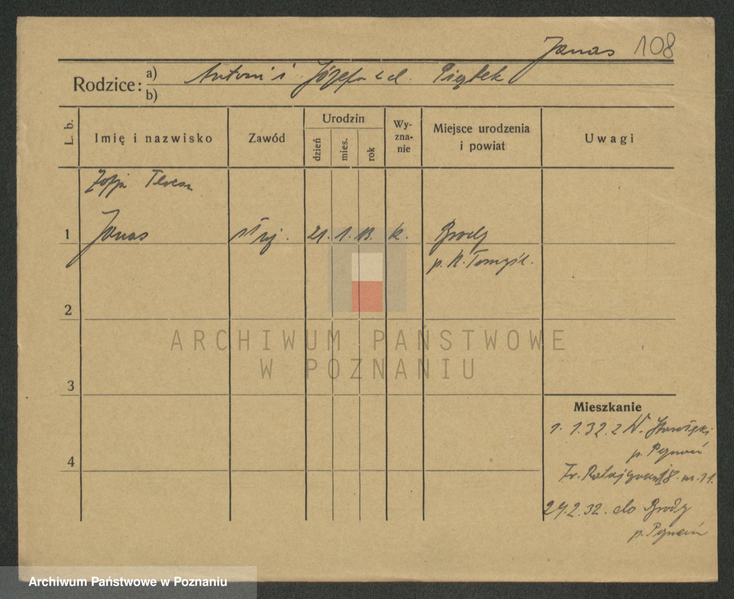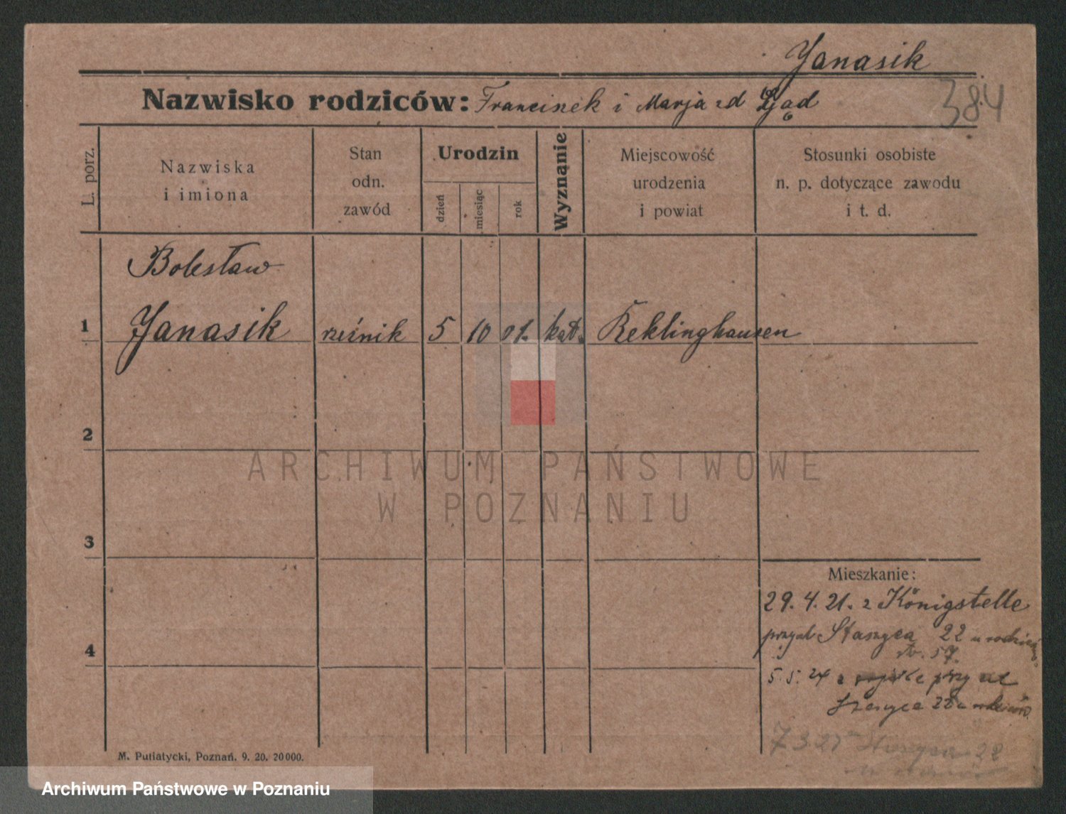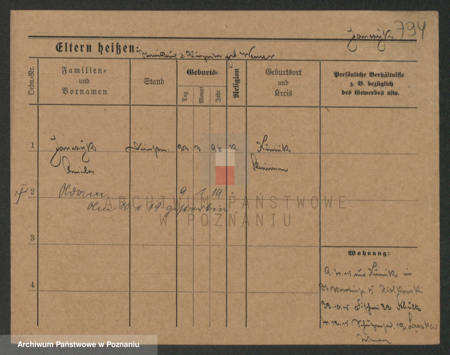 Podgląd karty osobowej dostępny jest po kliknięciu na nazwisko lub ikonkę karty. Można dokonywać powiększenia (ikony na górze) lub przechodzić między kolejnymi skanami (strzałki po bokach).
