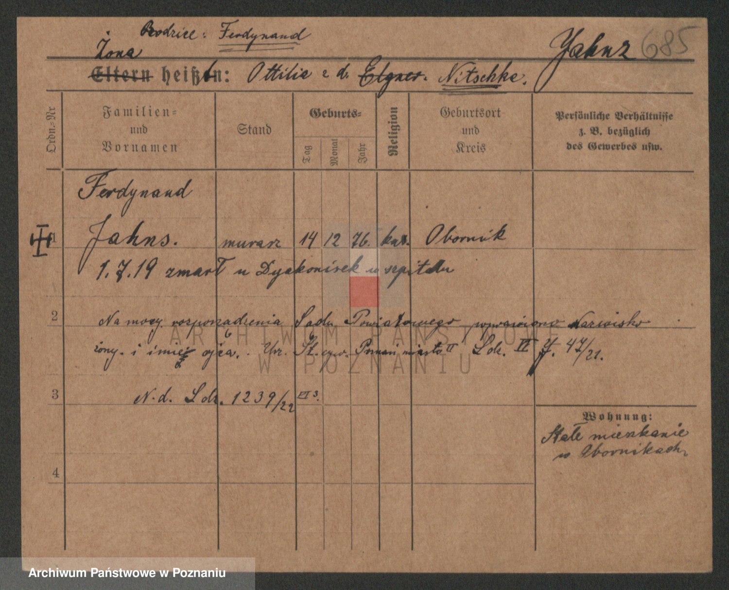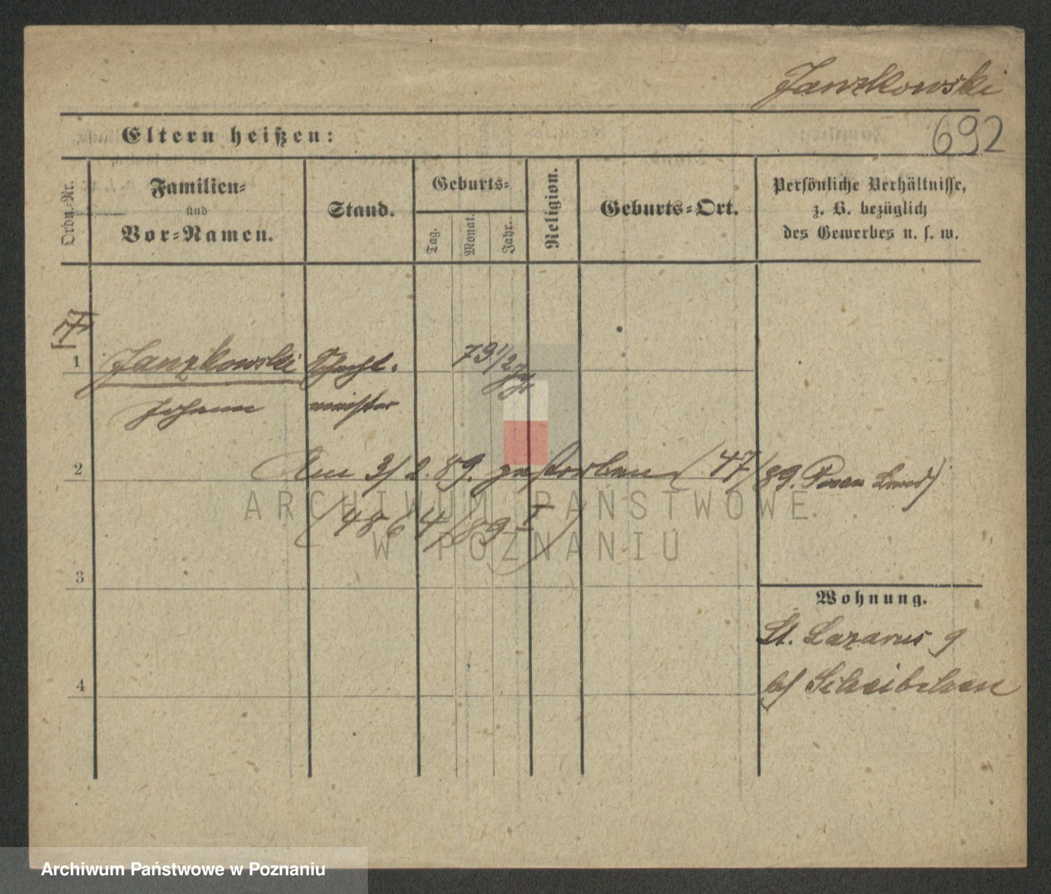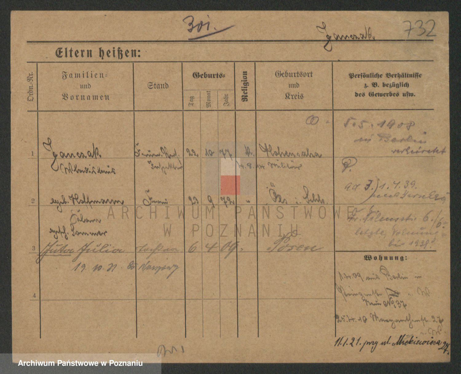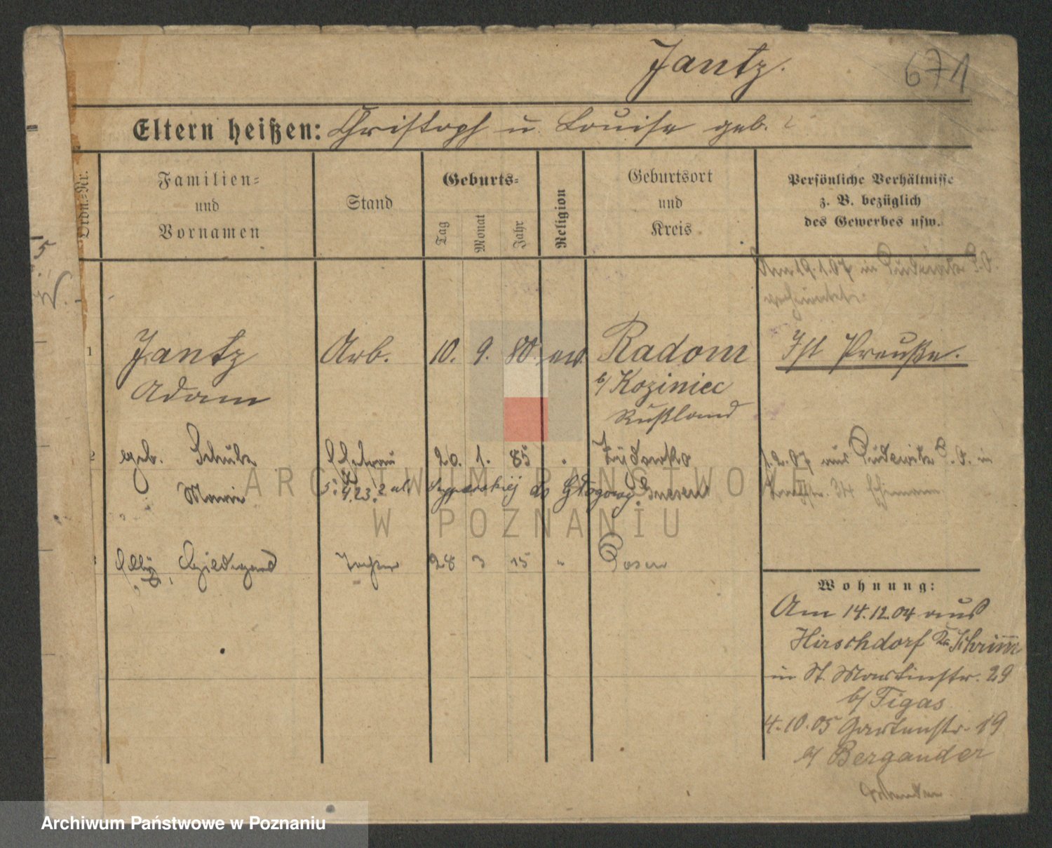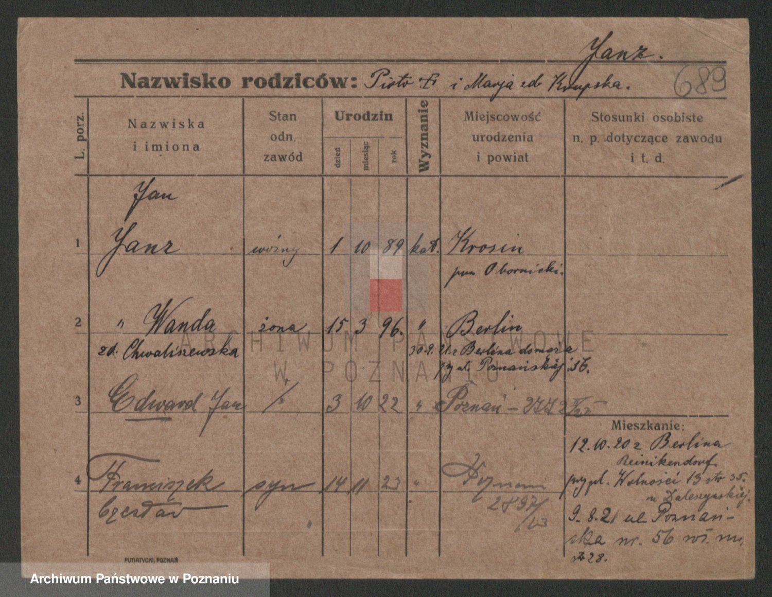 Podgląd karty osobowej dostępny jest po kliknięciu na nazwisko lub ikonkę karty. Można dokonywać powiększenia (ikony na górze) lub przechodzić między kolejnymi skanami (strzałki po bokach).