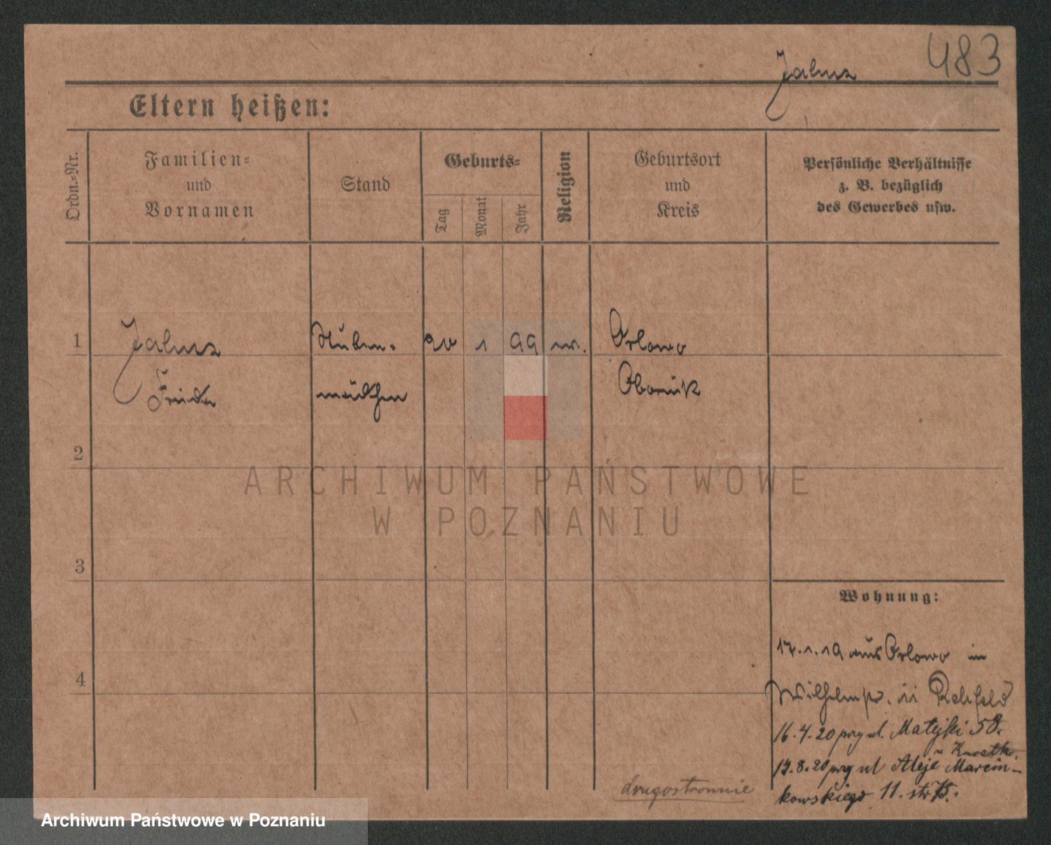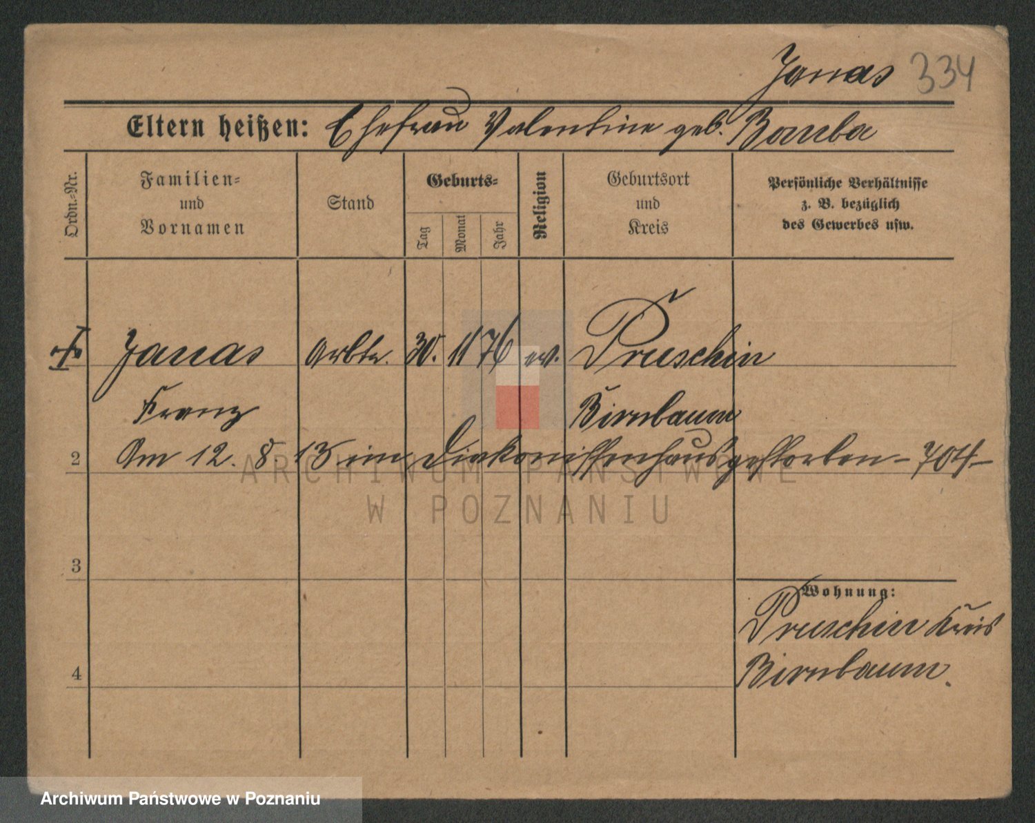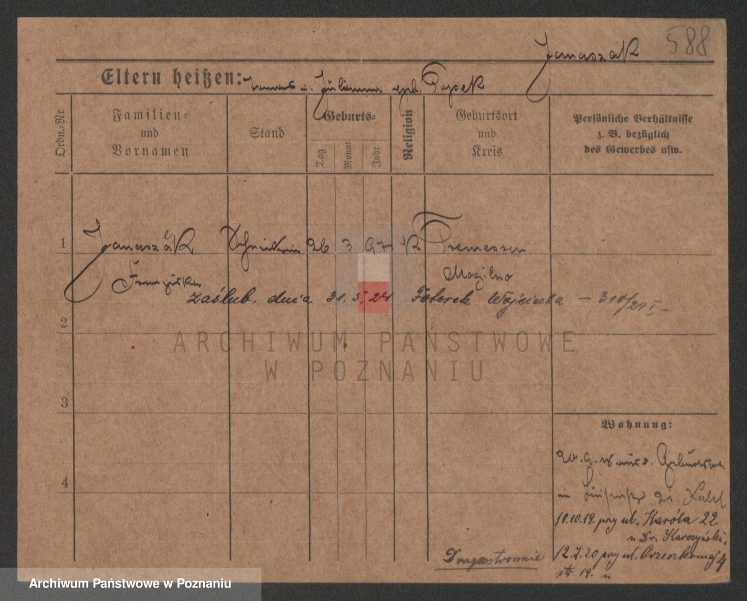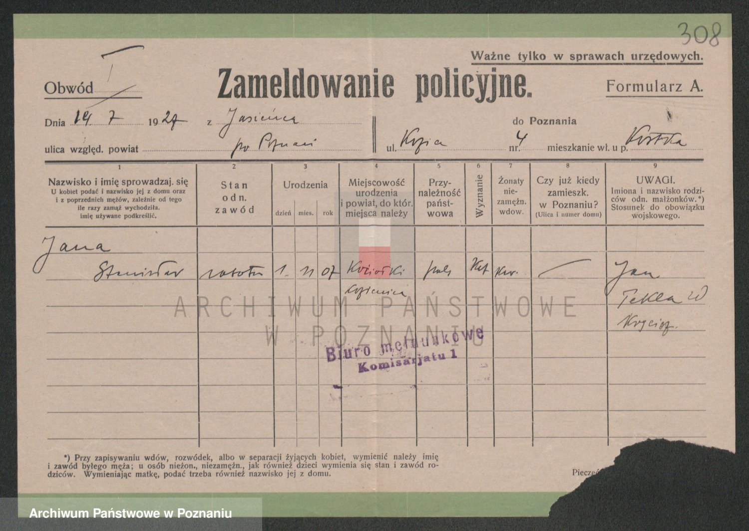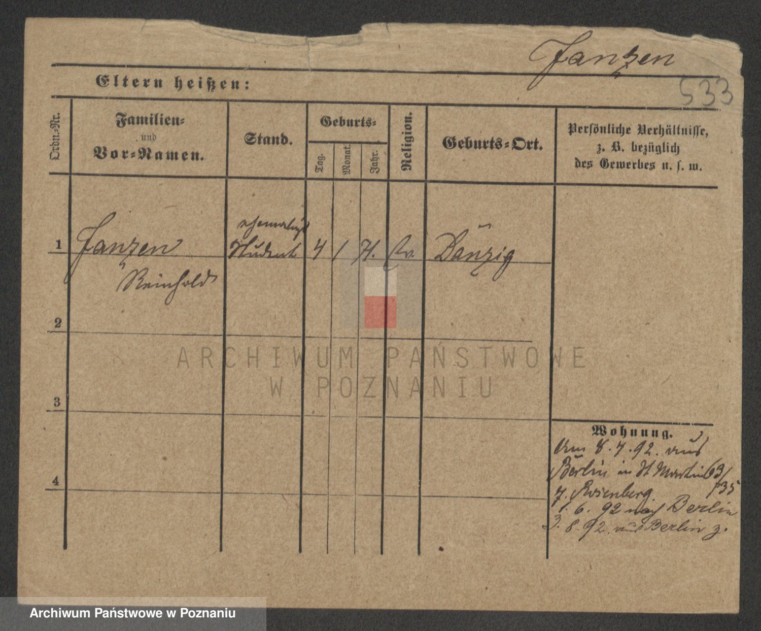 Podgląd karty osobowej dostępny jest po kliknięciu na nazwisko lub ikonkę karty. Można dokonywać powiększenia (ikony na górze) lub przechodzić między kolejnymi skanami (strzałki po bokach).