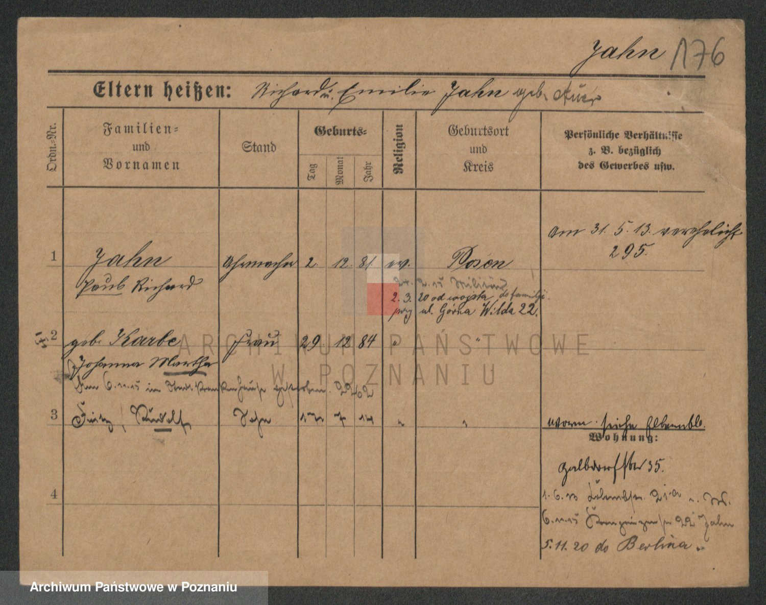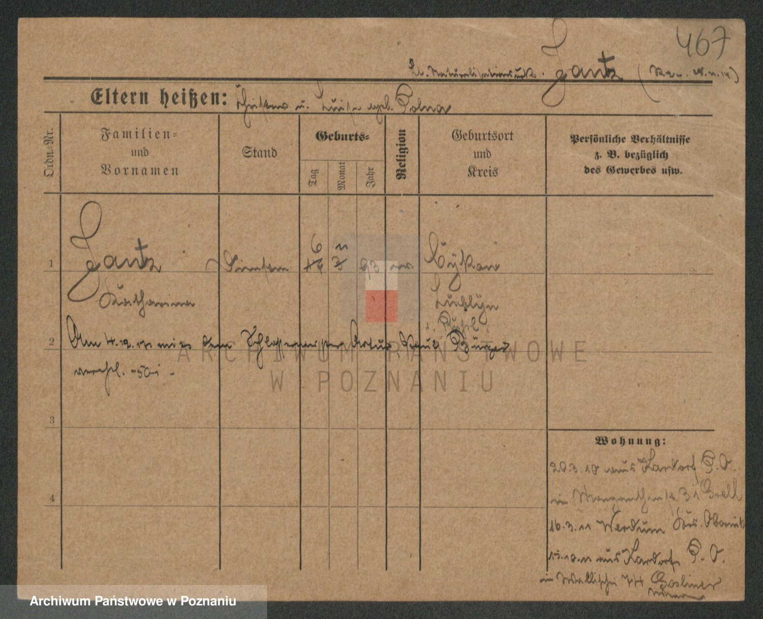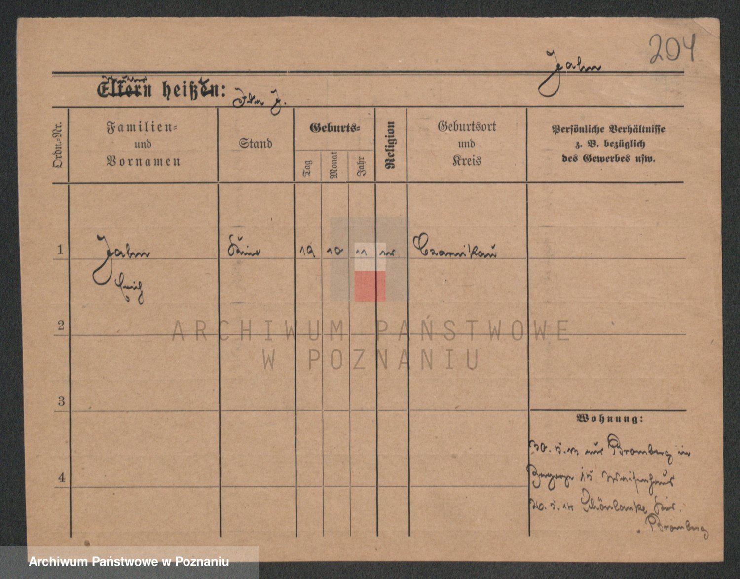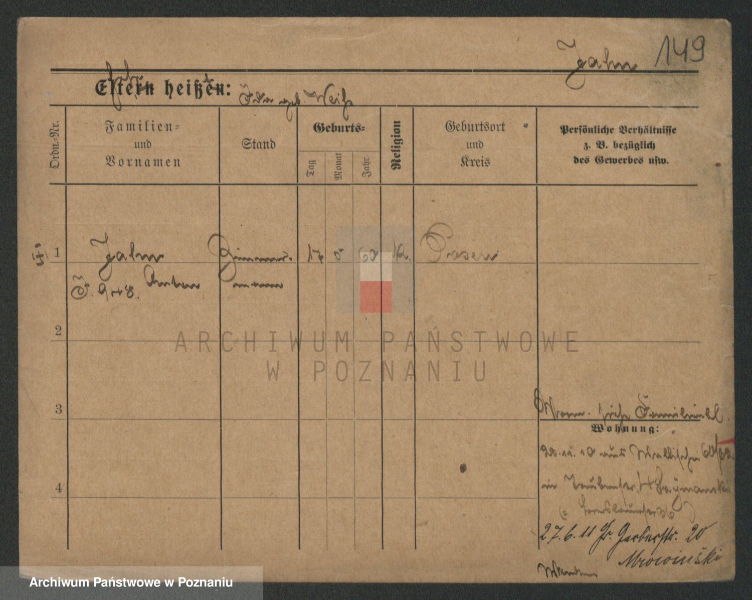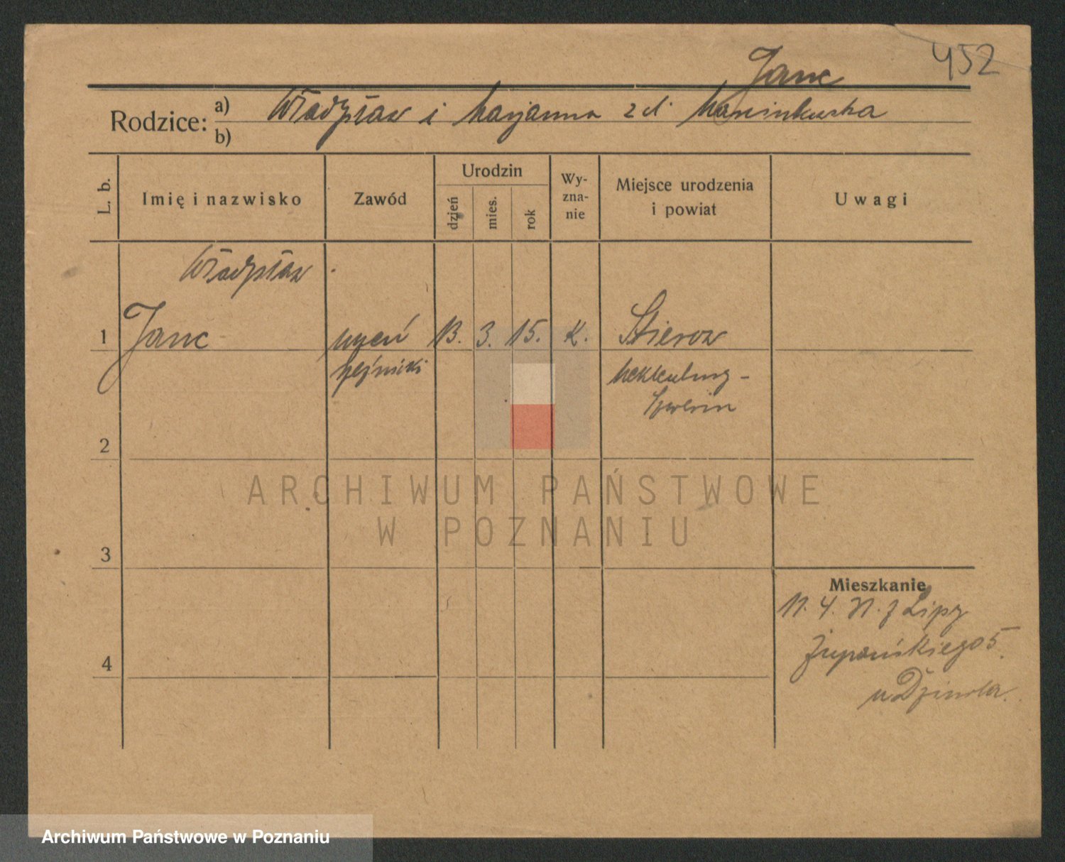 Podgląd karty osobowej dostępny jest po kliknięciu na nazwisko lub ikonkę karty. Można dokonywać powiększenia (ikony na górze) lub przechodzić między kolejnymi skanami (strzałki po bokach).