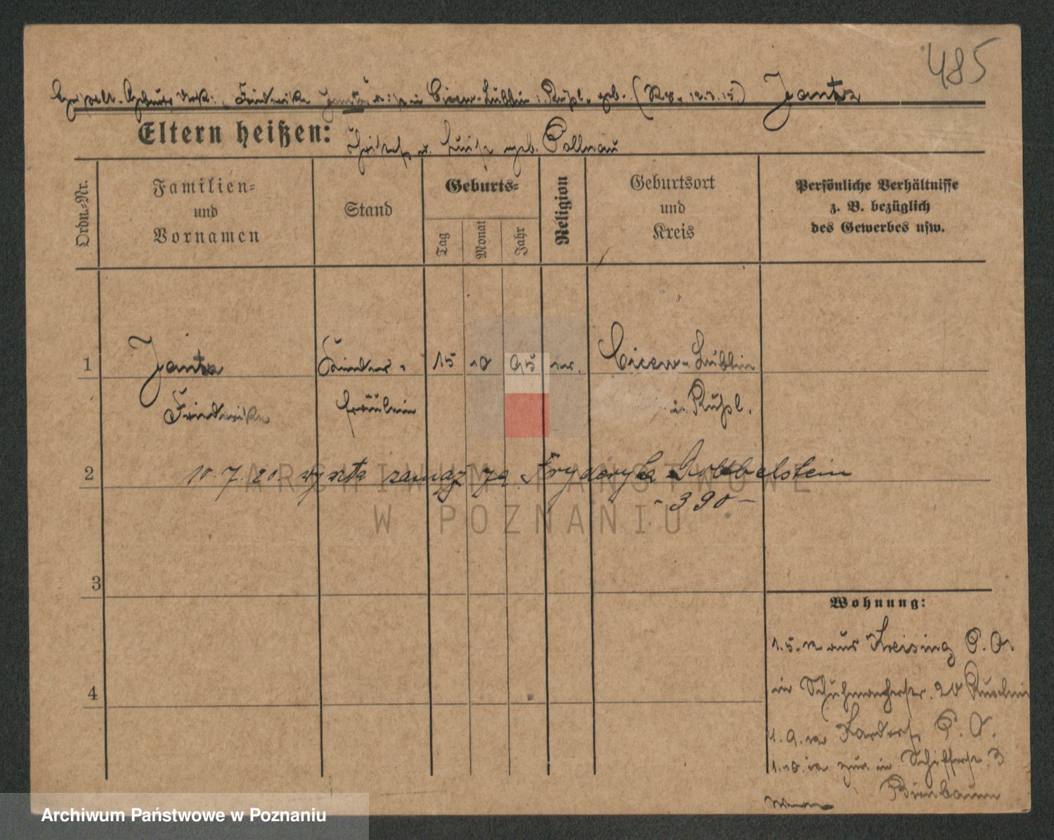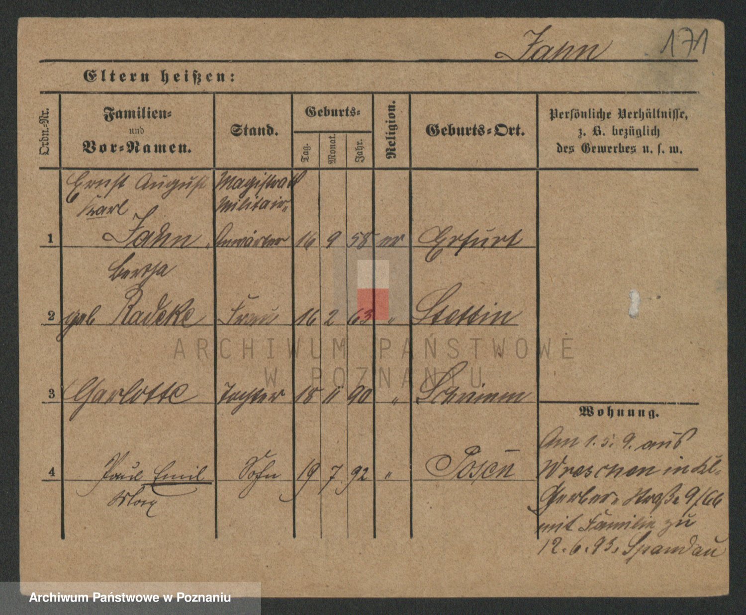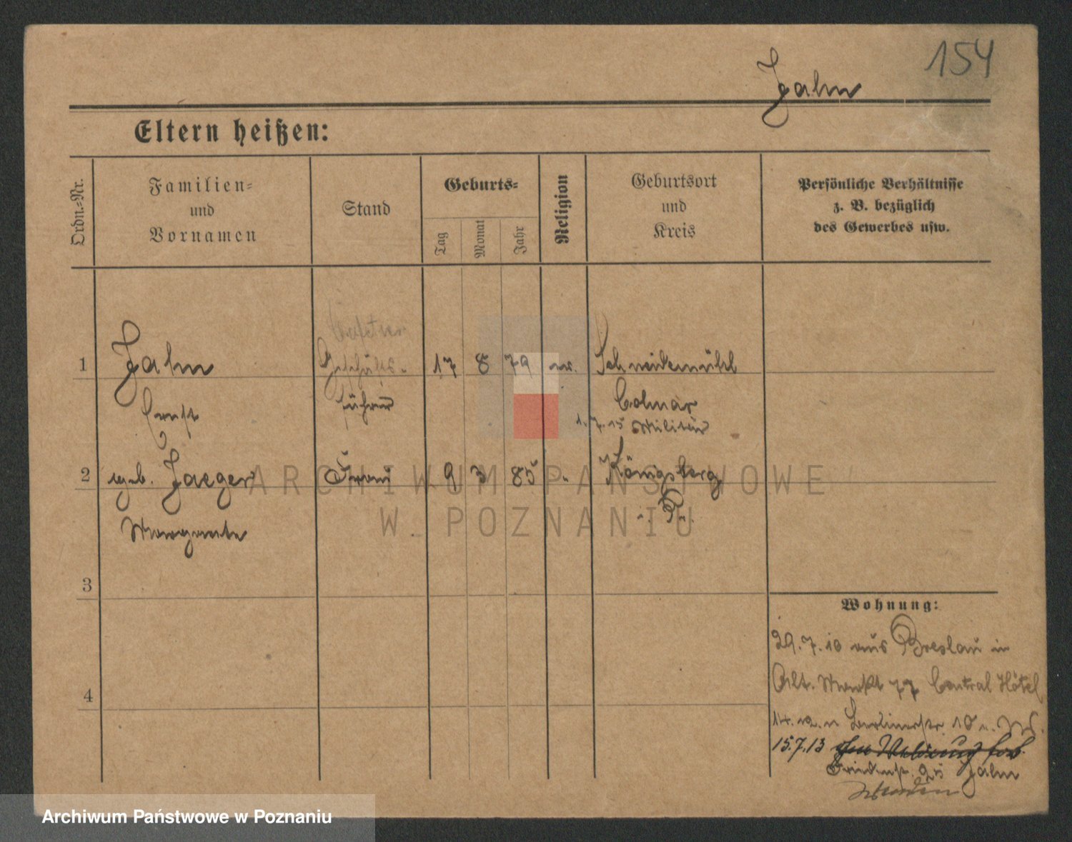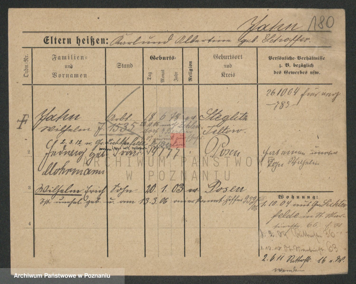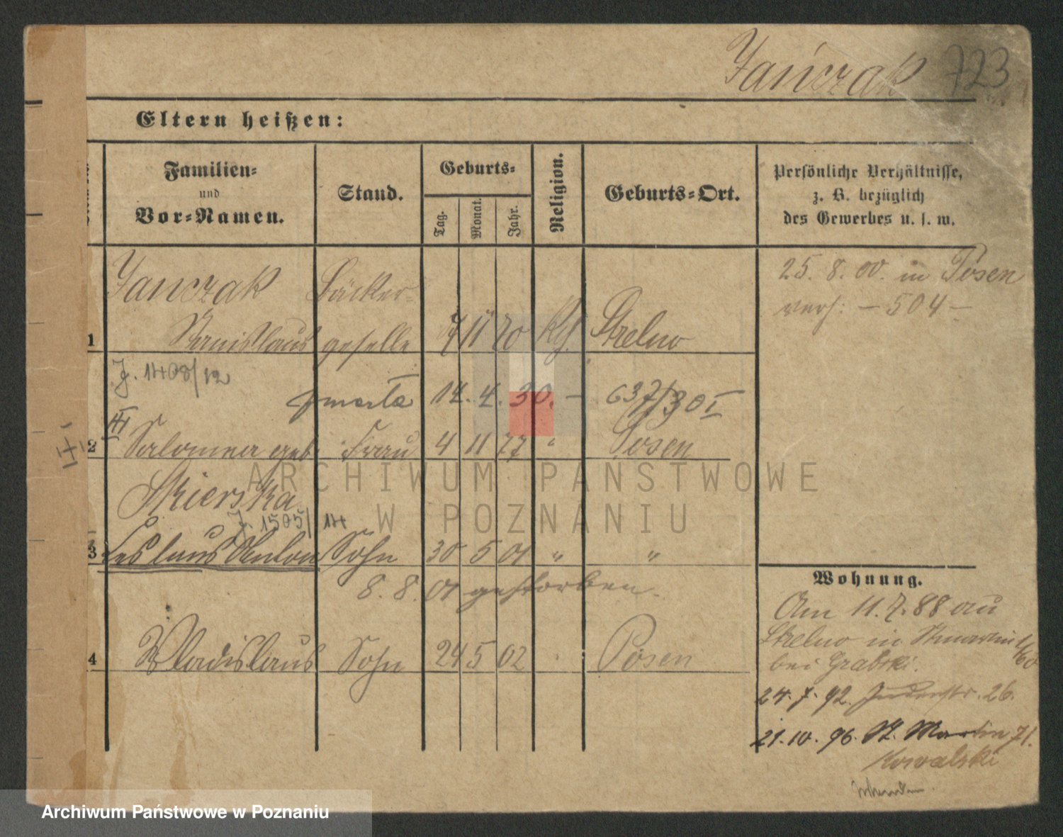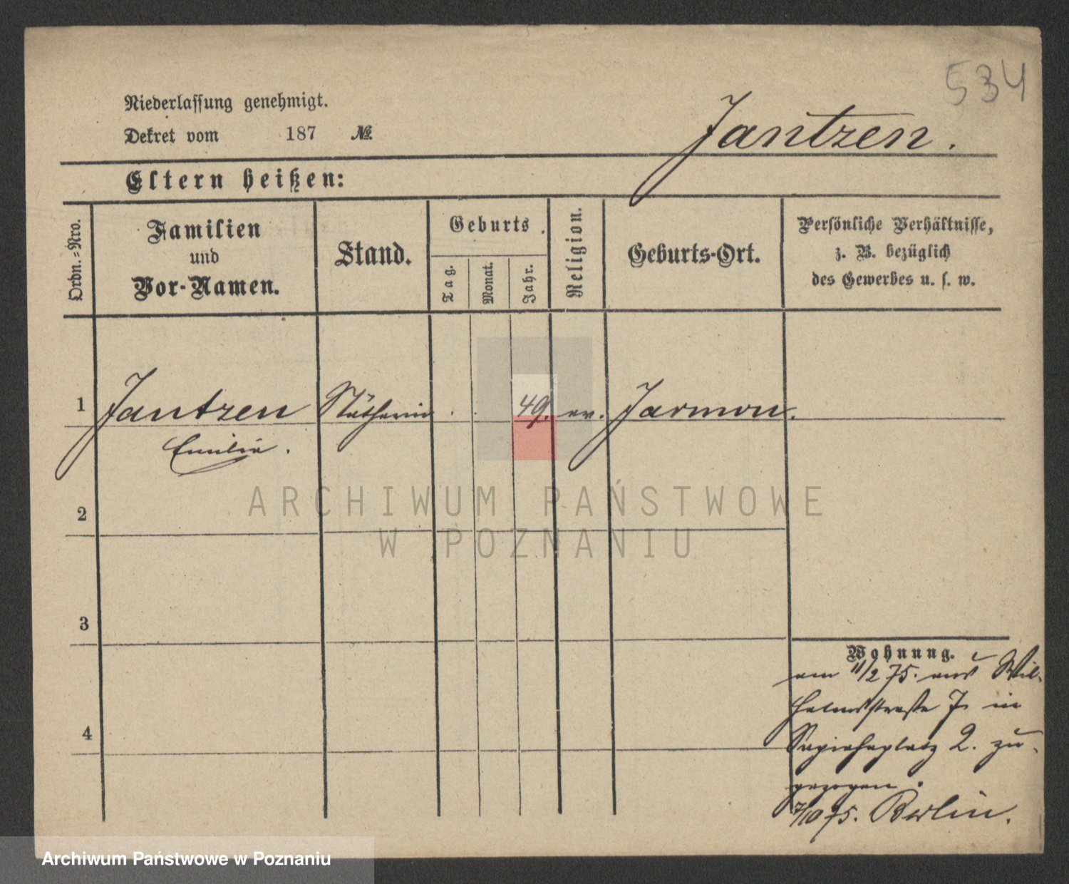 Podgląd karty osobowej dostępny jest po kliknięciu na nazwisko lub ikonkę karty. Można dokonywać powiększenia (ikony na górze) lub przechodzić między kolejnymi skanami (strzałki po bokach).
