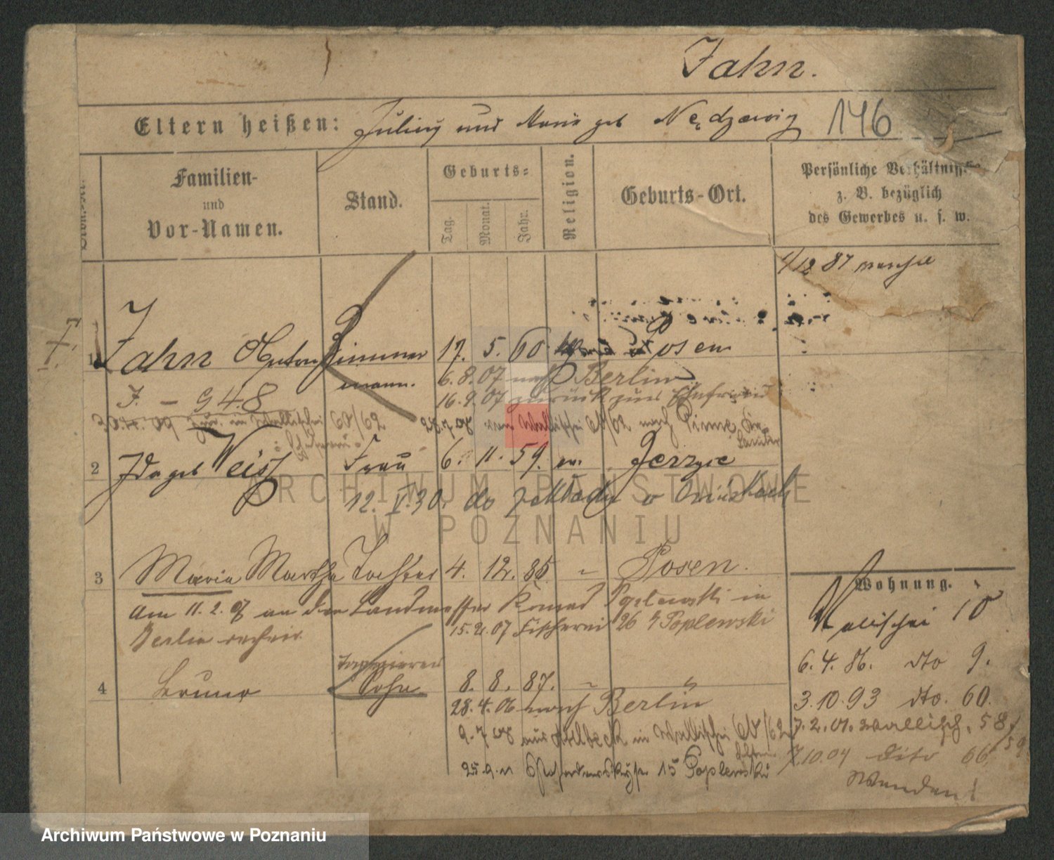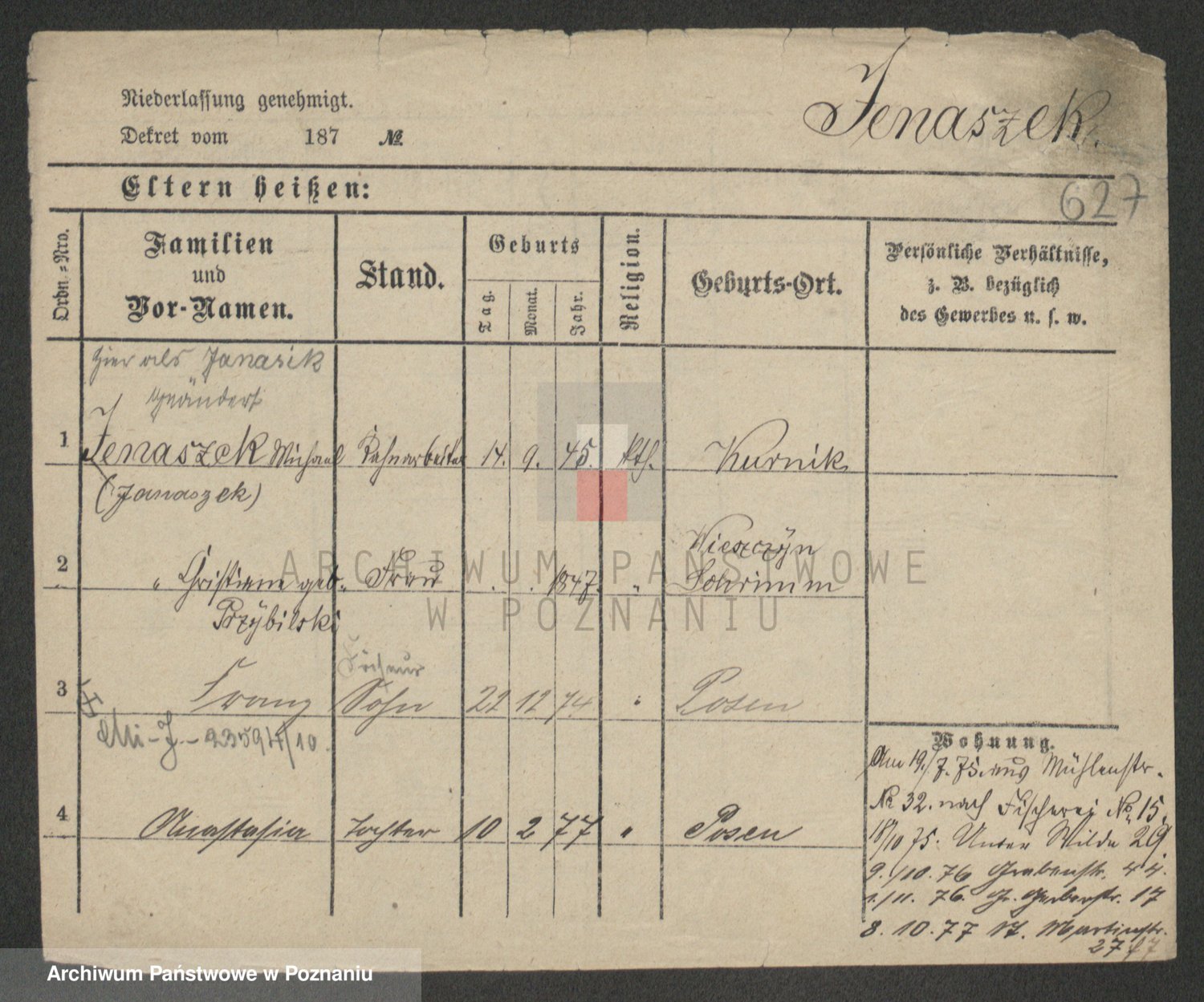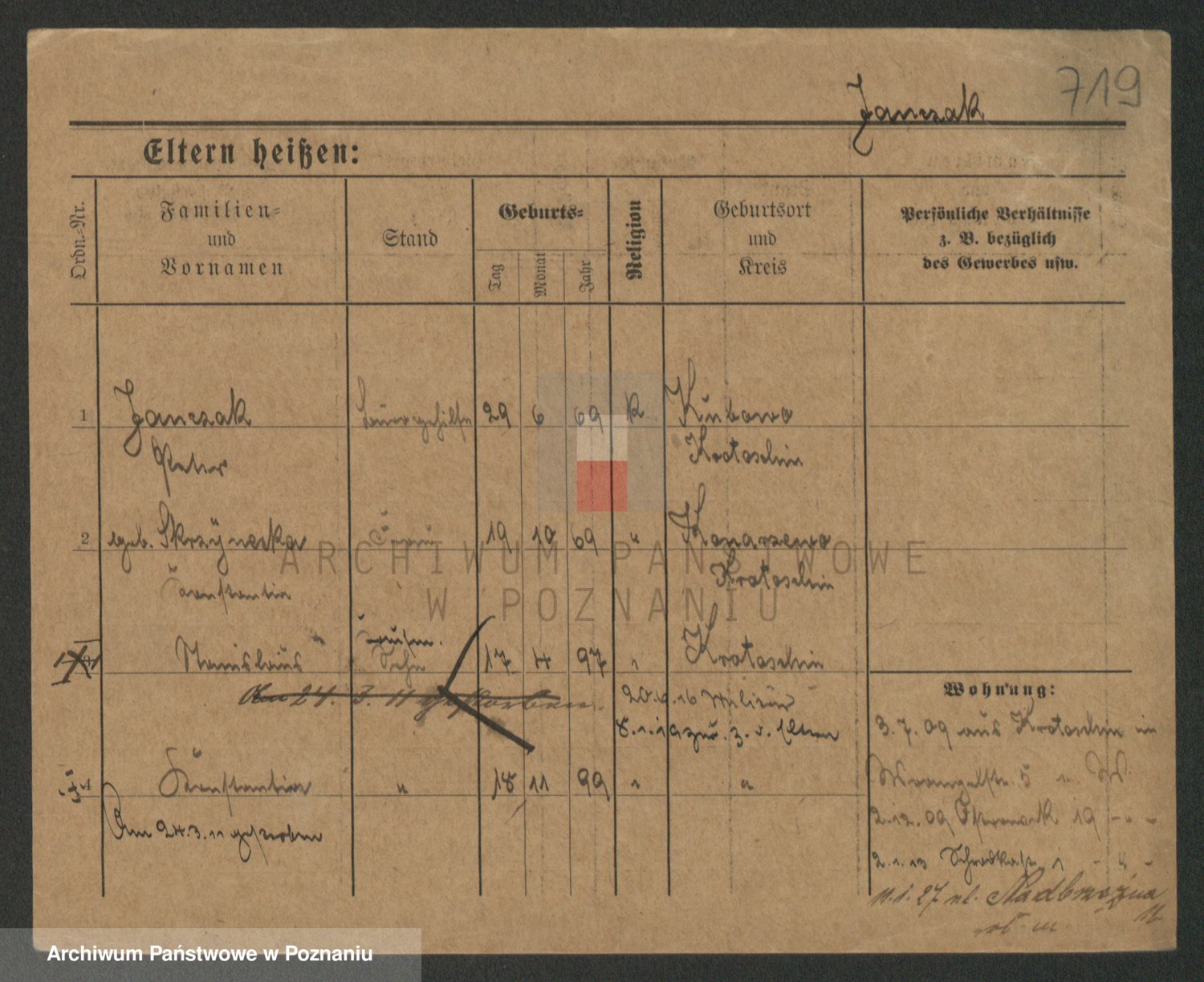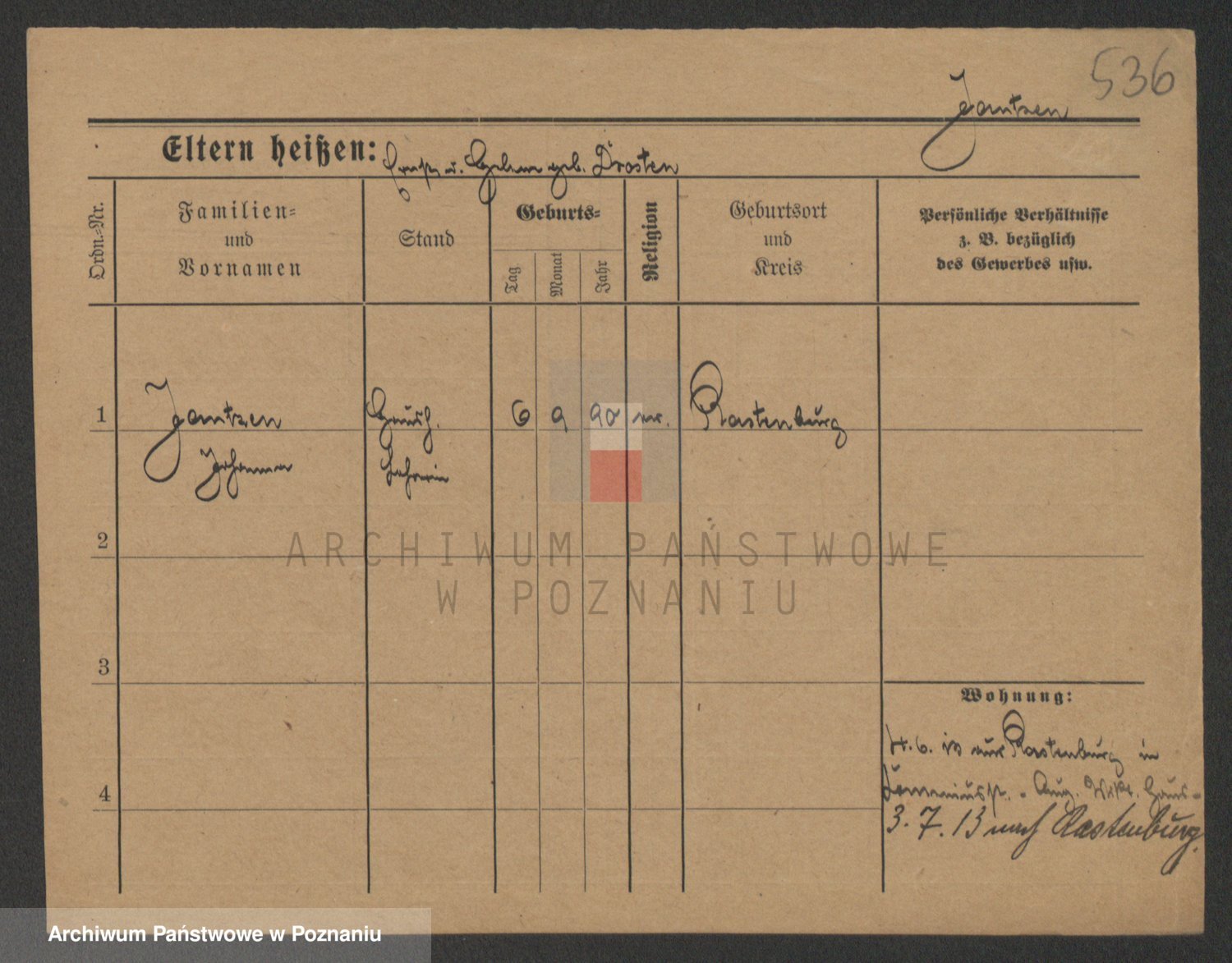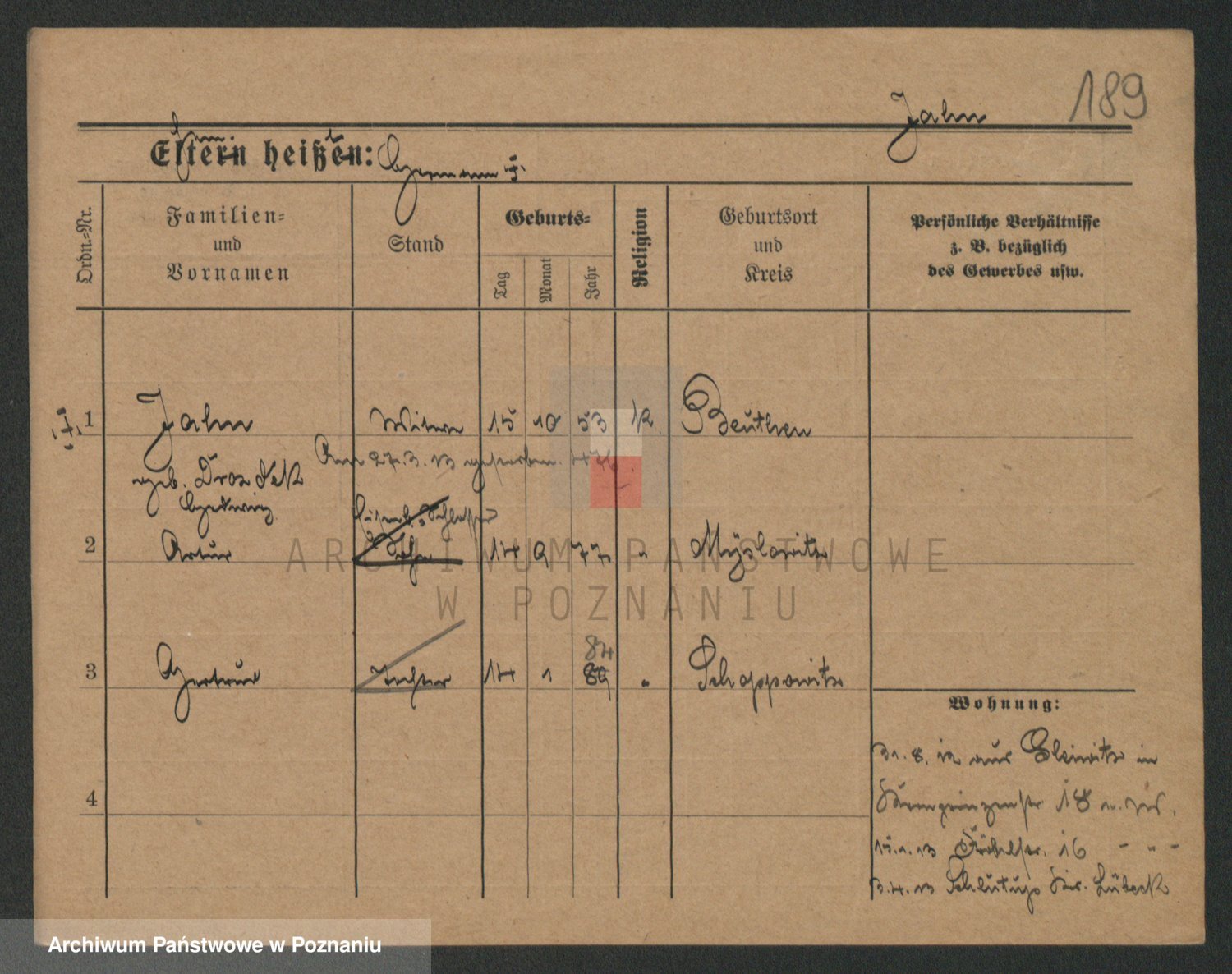 Podgląd karty osobowej dostępny jest po kliknięciu na nazwisko lub ikonkę karty. Można dokonywać powiększenia (ikony na górze) lub przechodzić między kolejnymi skanami (strzałki po bokach).