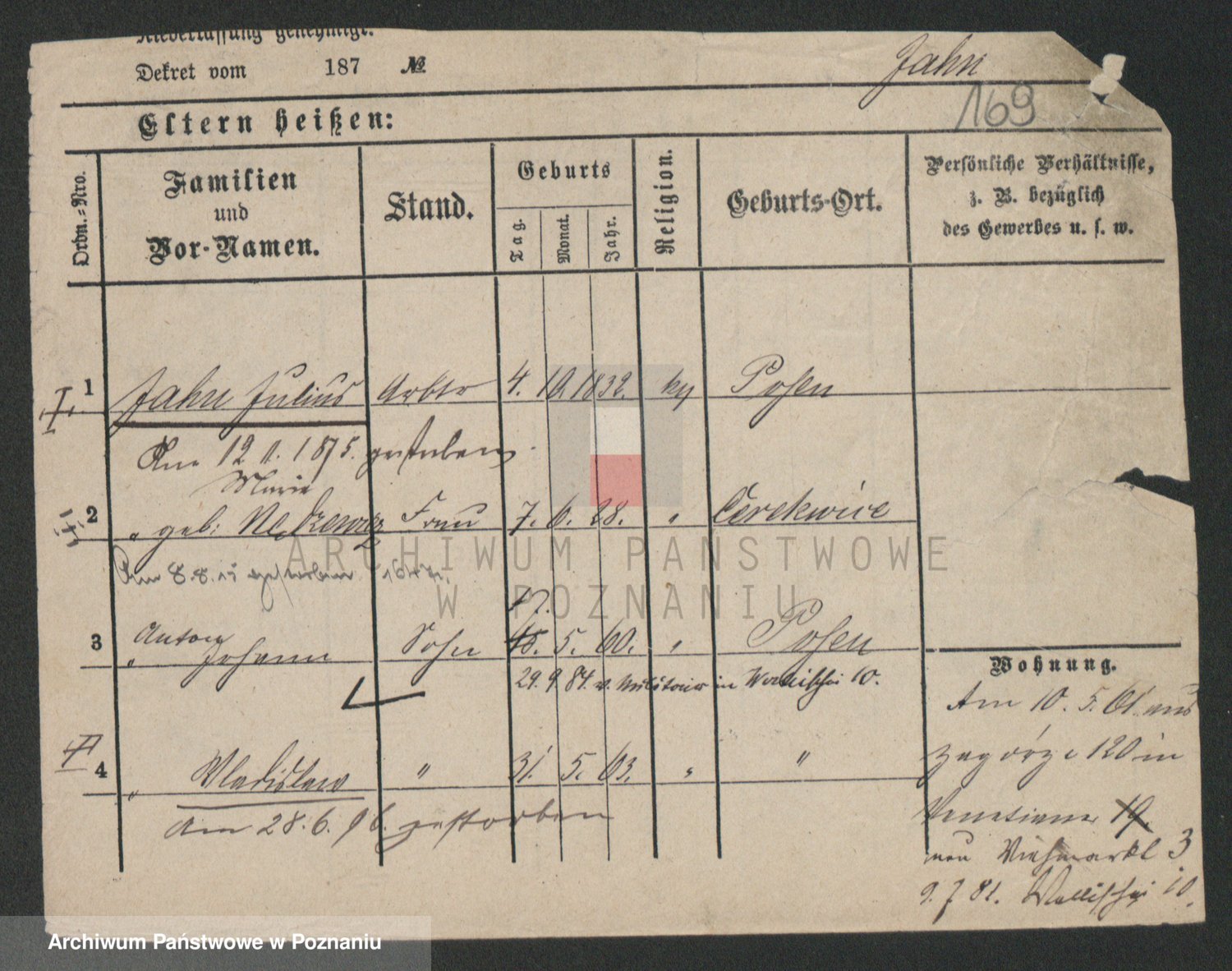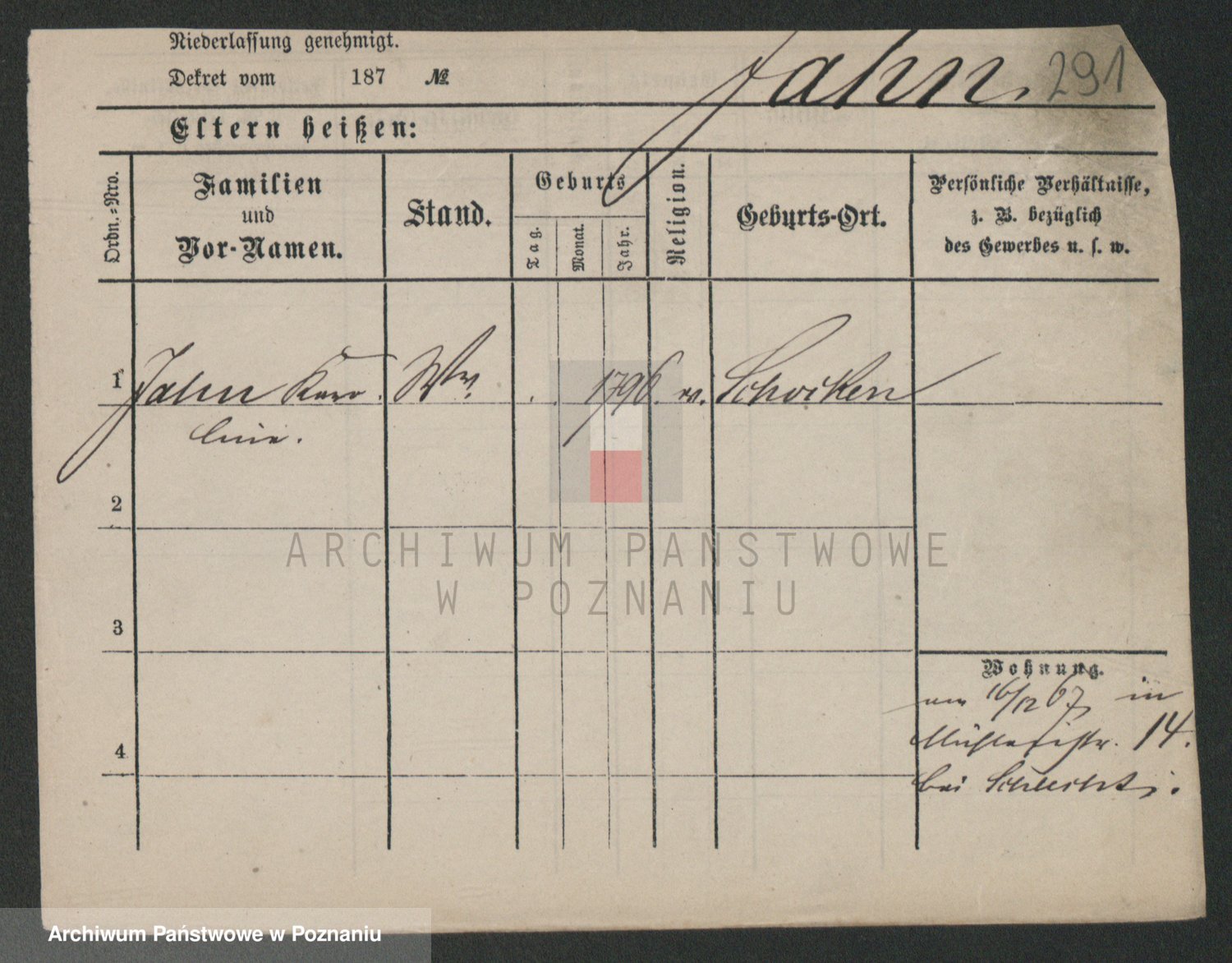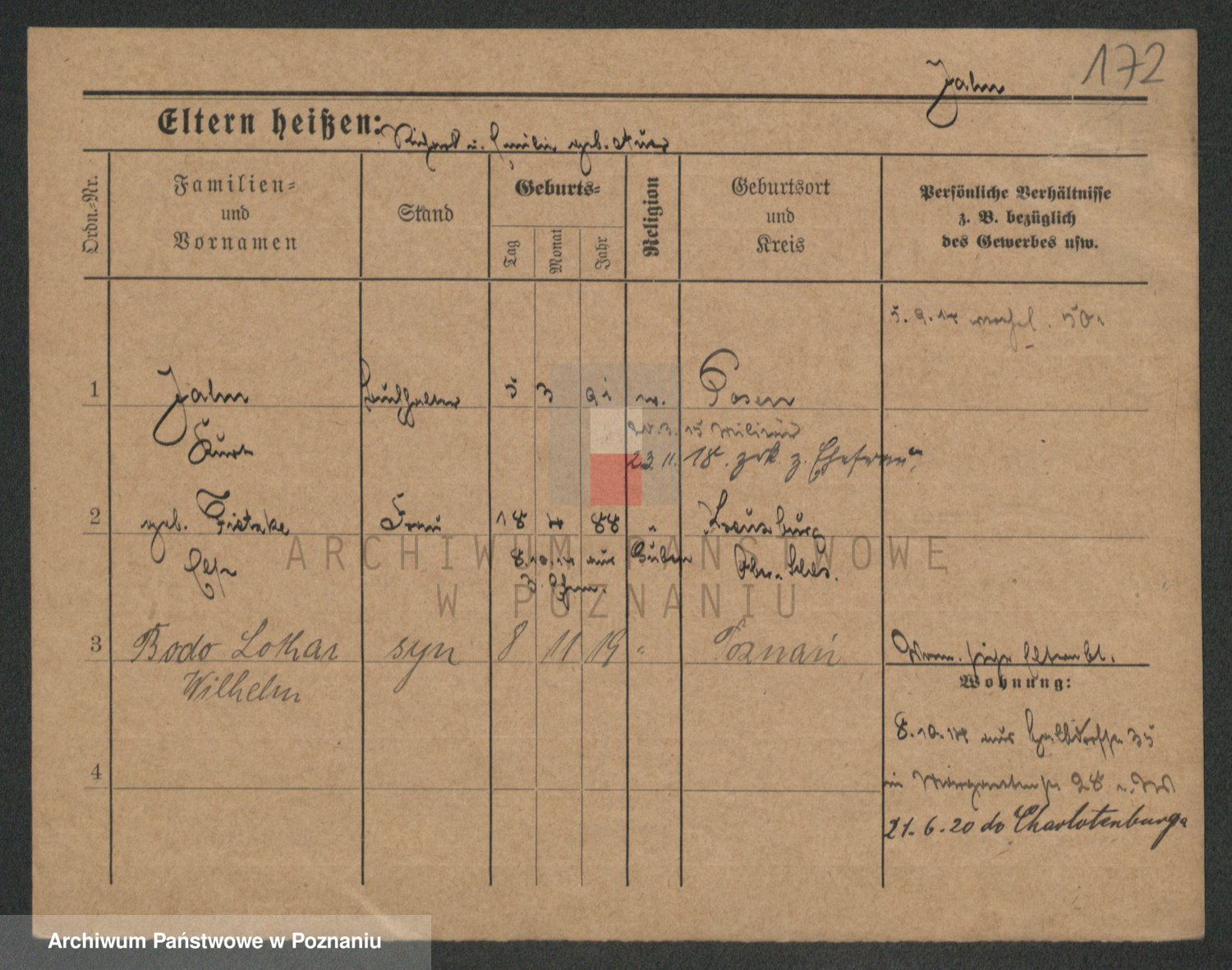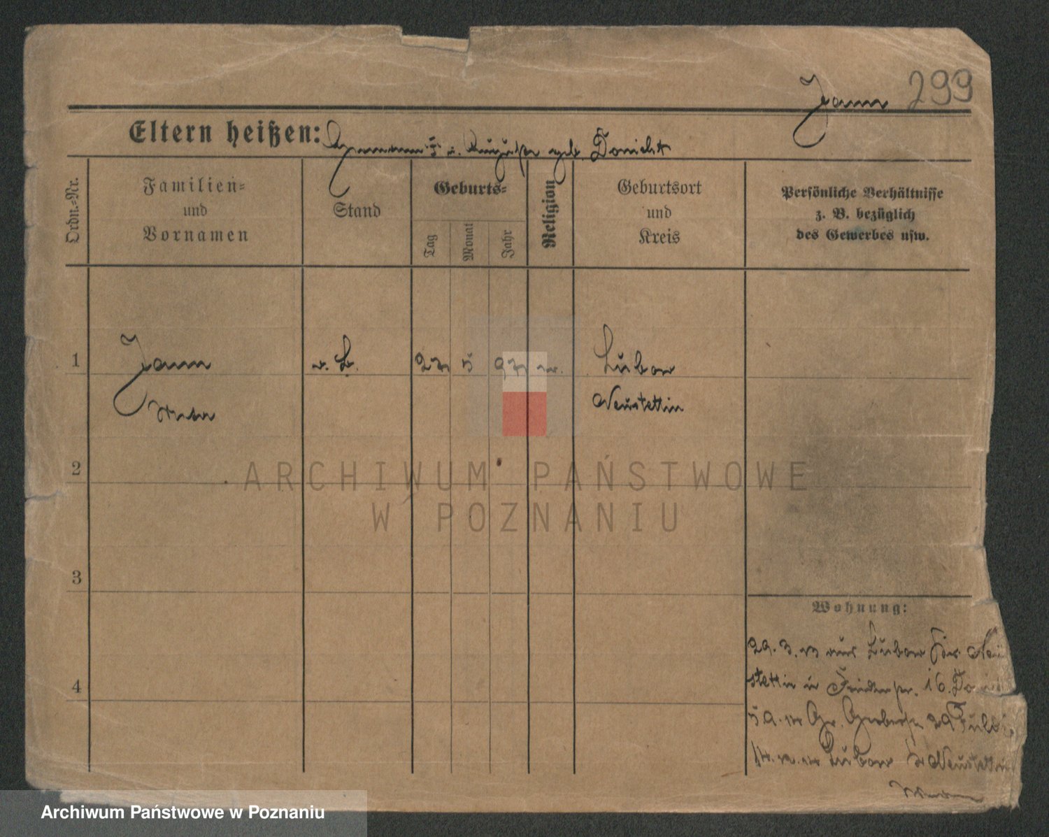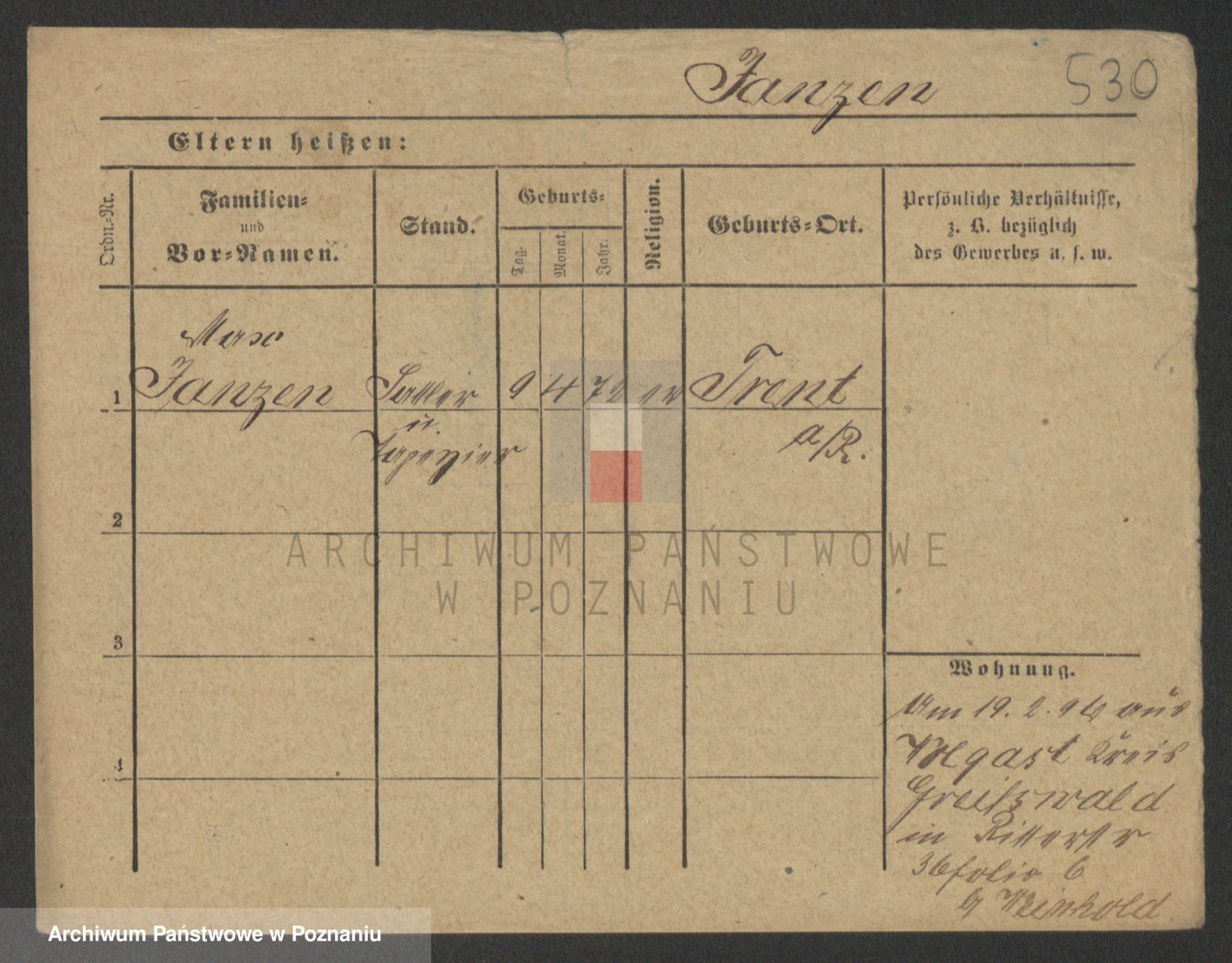 Podgląd karty osobowej dostępny jest po kliknięciu na nazwisko lub ikonkę karty. Można dokonywać powiększenia (ikony na górze) lub przechodzić między kolejnymi skanami (strzałki po bokach).
