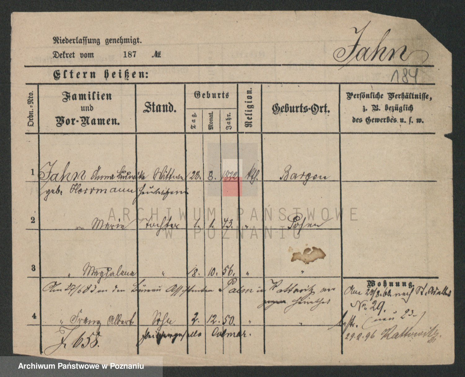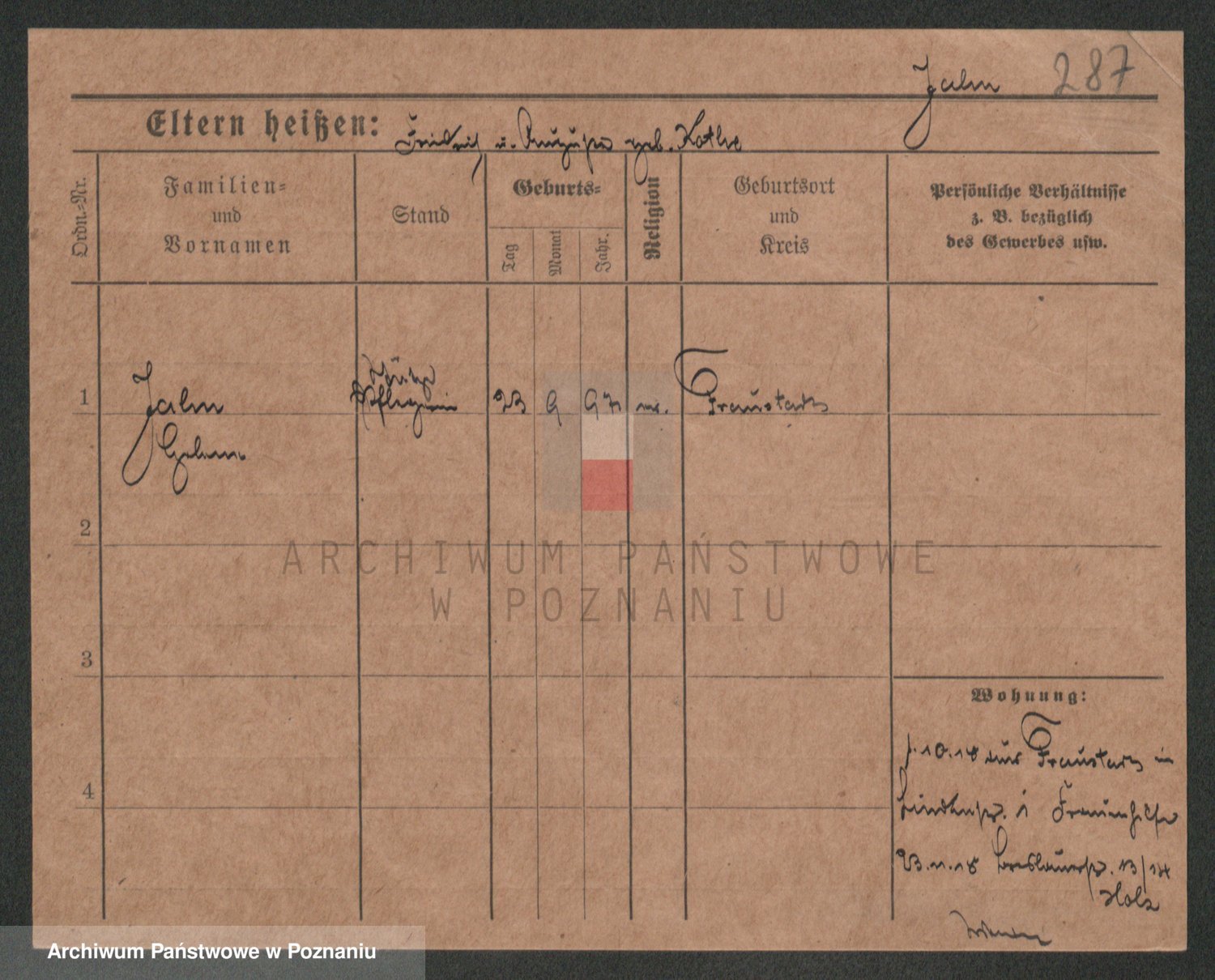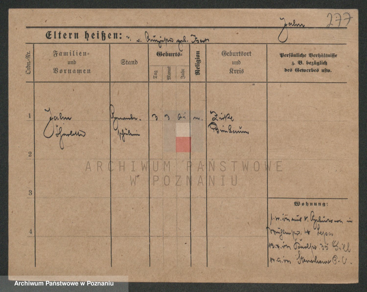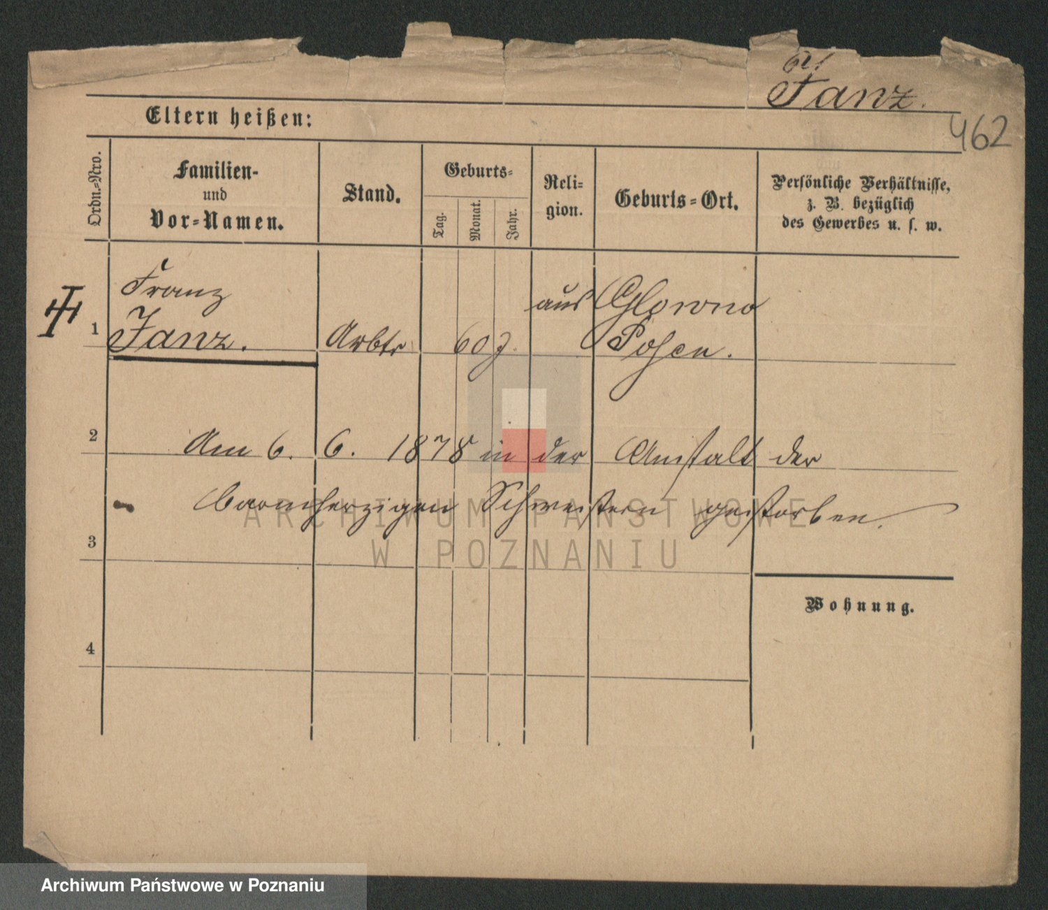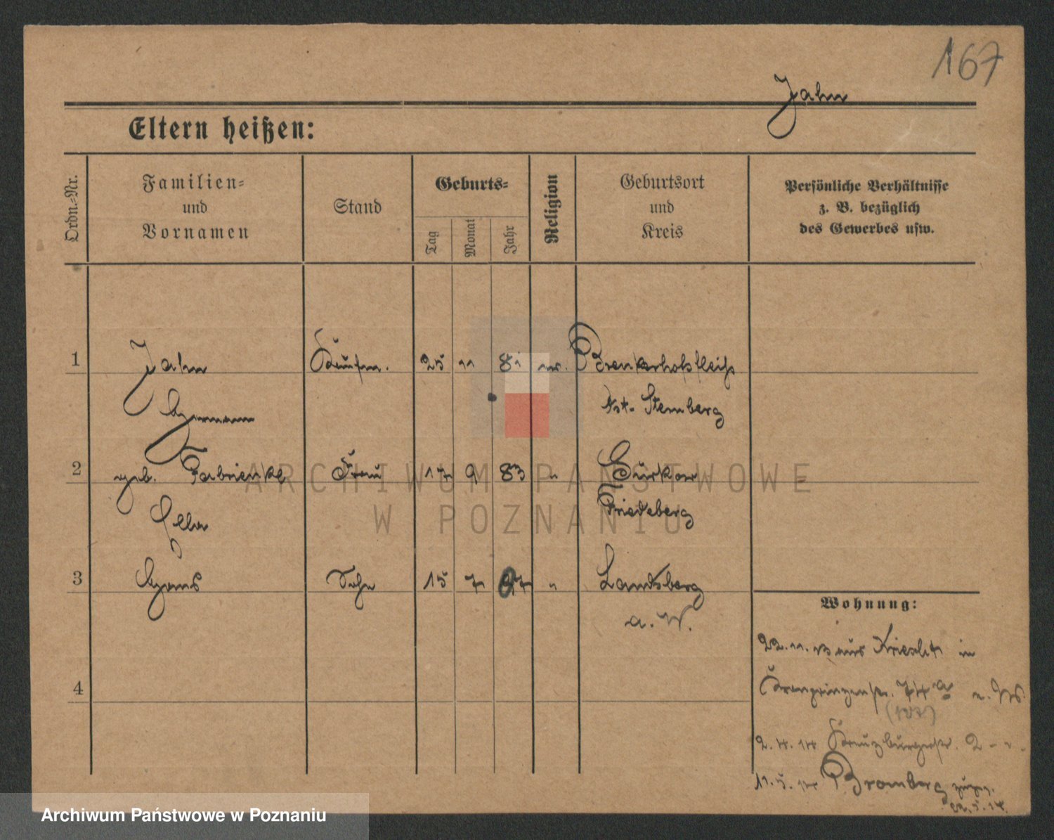 Podgląd karty osobowej dostępny jest po kliknięciu na nazwisko lub ikonkę karty. Można dokonywać powiększenia (ikony na górze) lub przechodzić między kolejnymi skanami (strzałki po bokach).