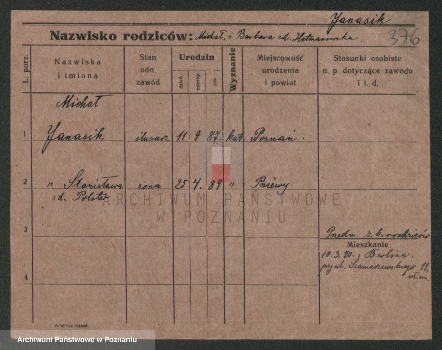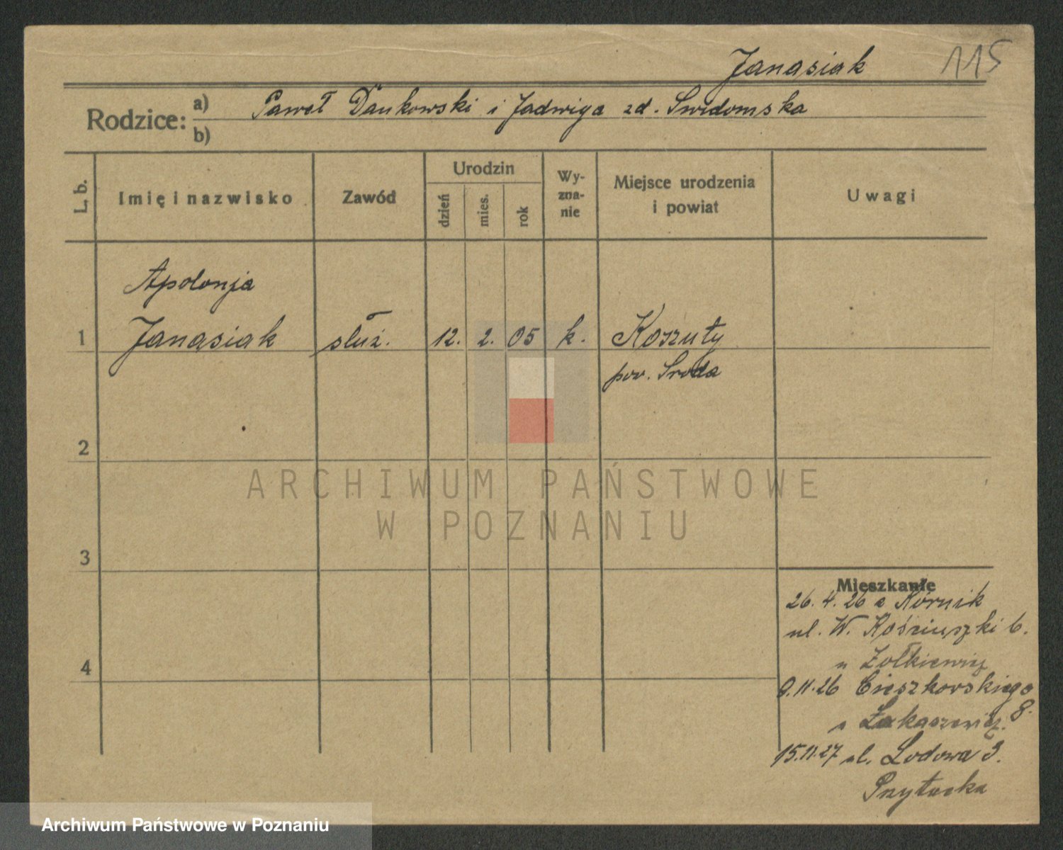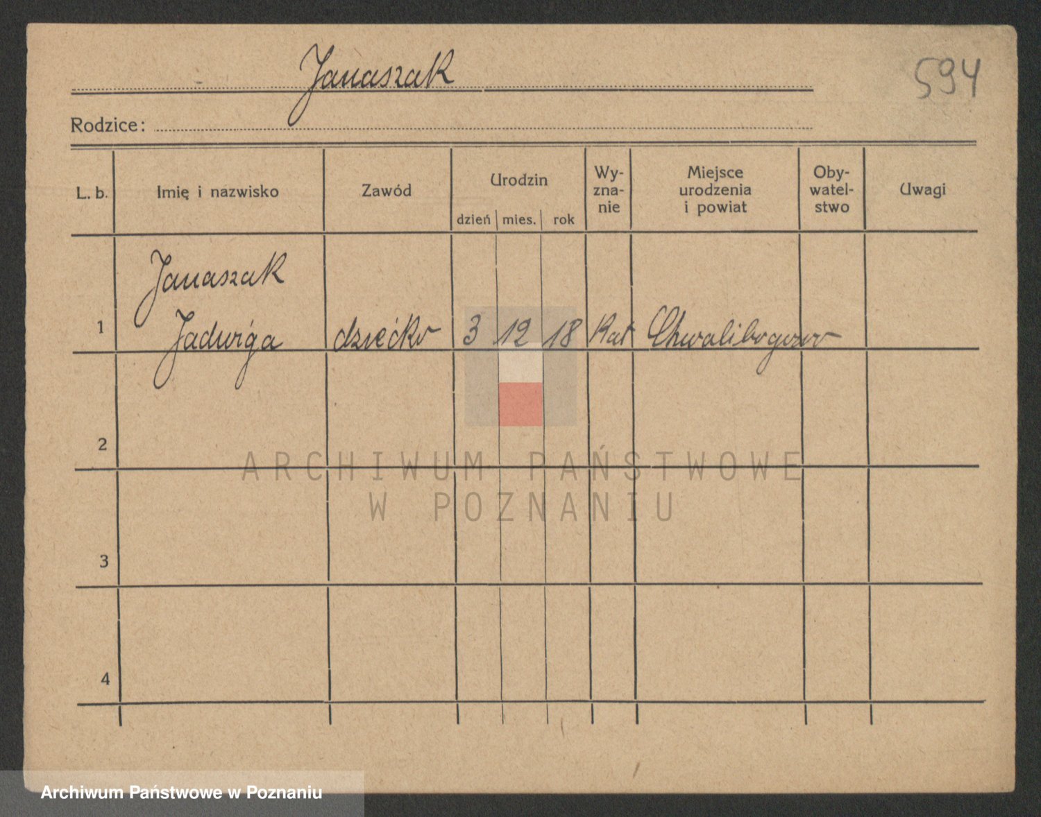 Janas z d. Porarzewska, Katarzyna