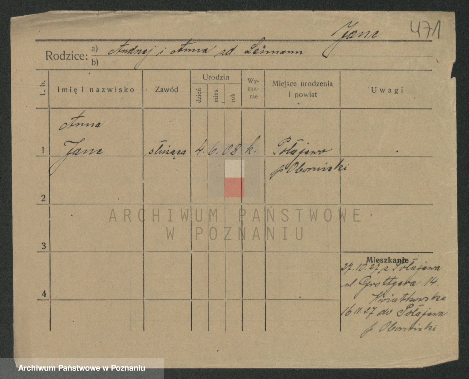 Janas z d. Lemberg, Anna