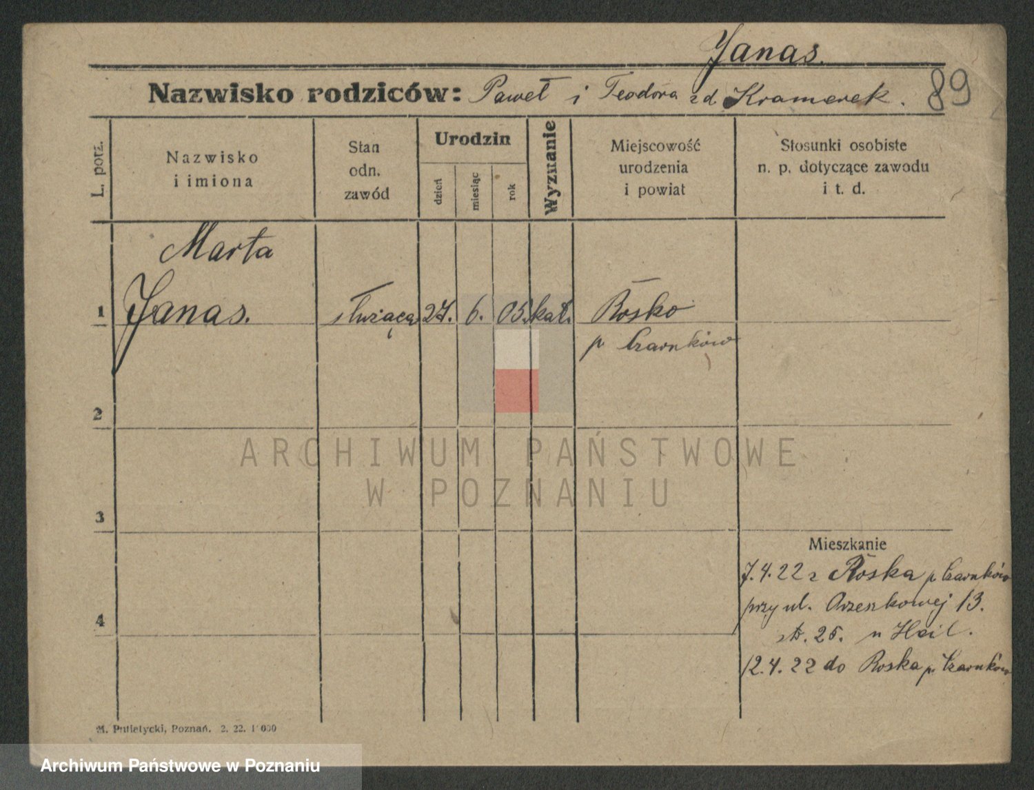 Janas z d. Adamska, Marta