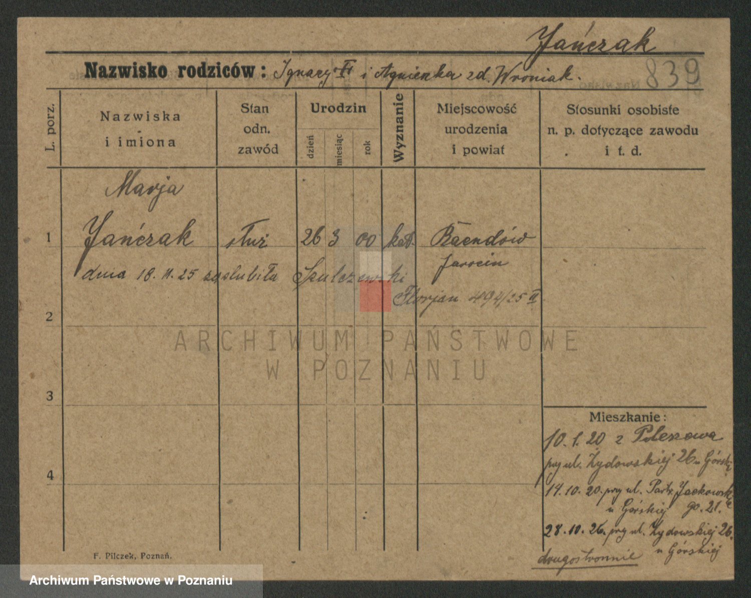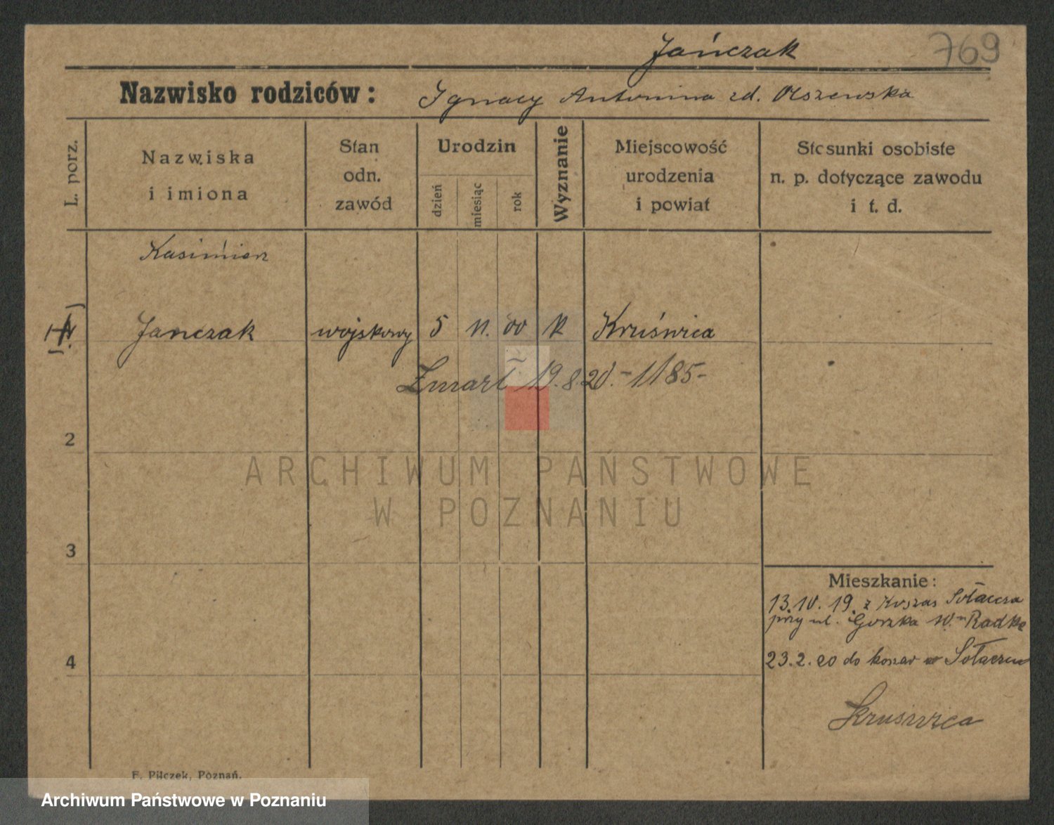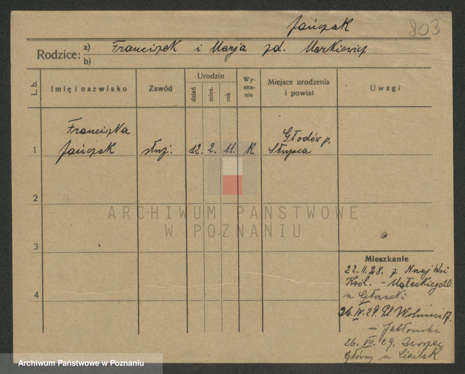 Jańczak, Franciszka