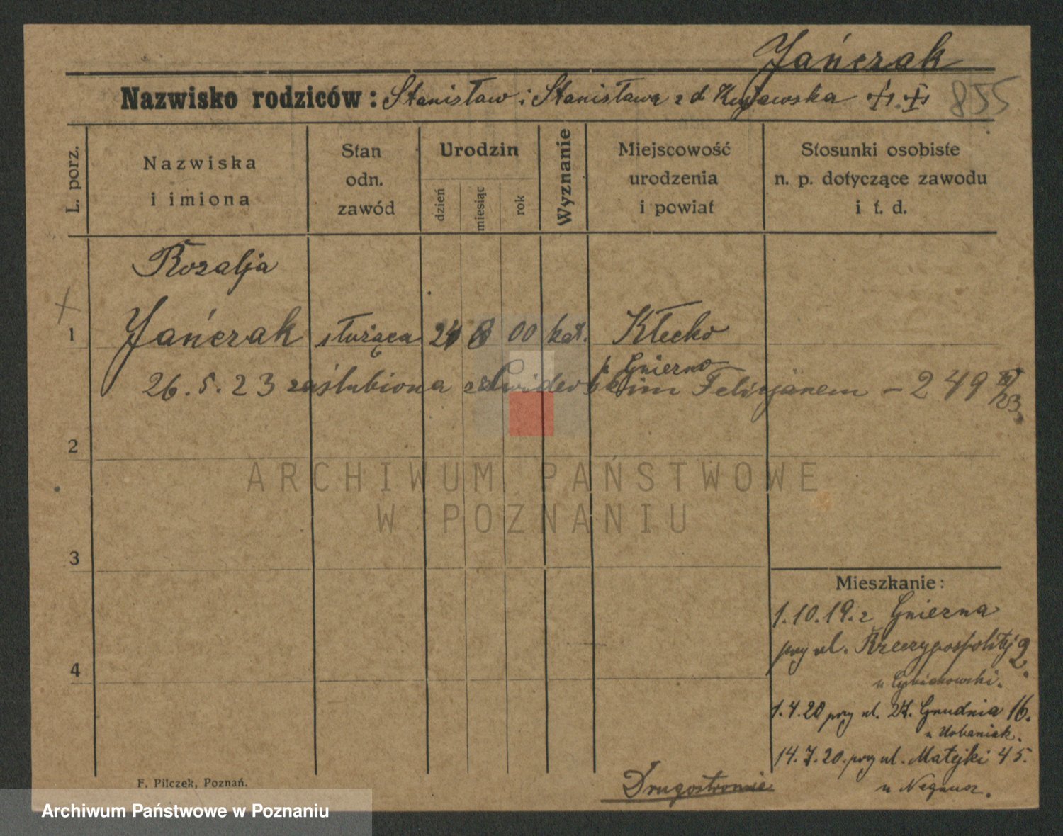 Jańczak, Rozalja