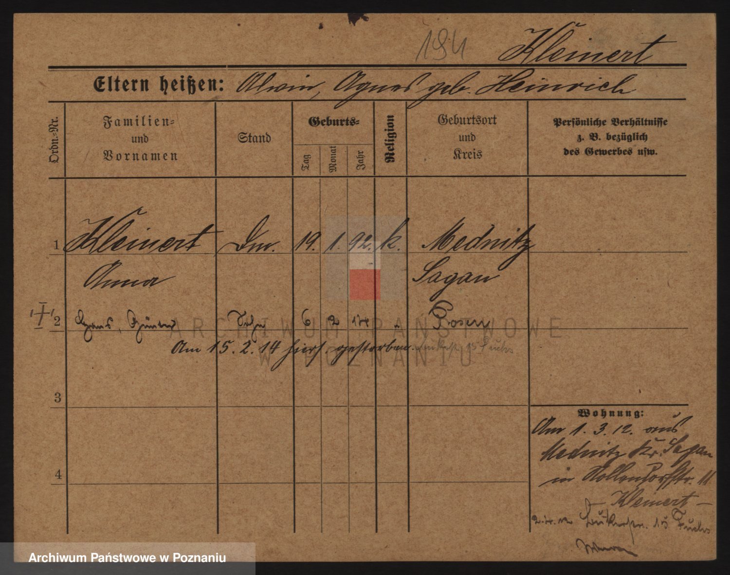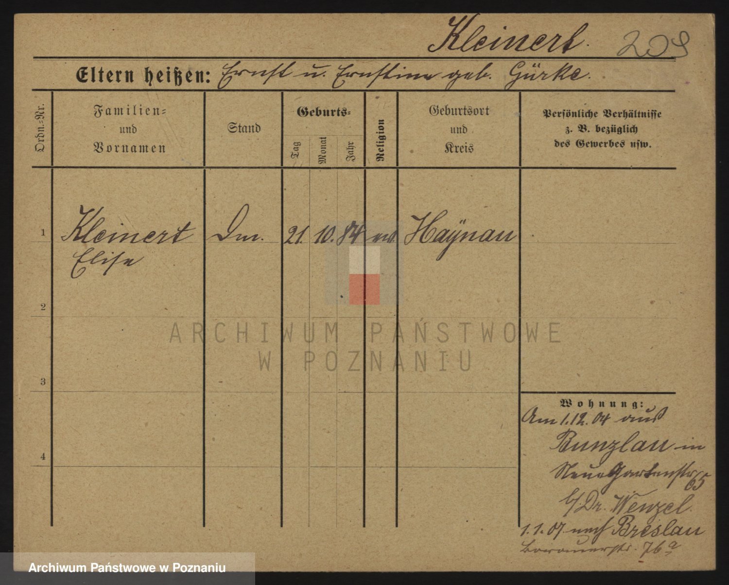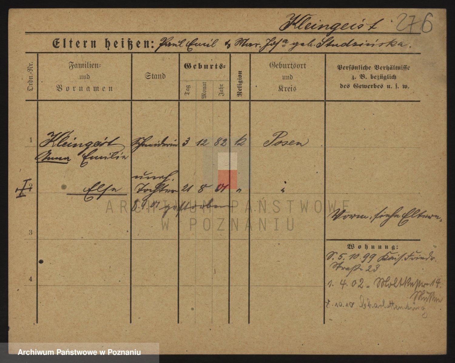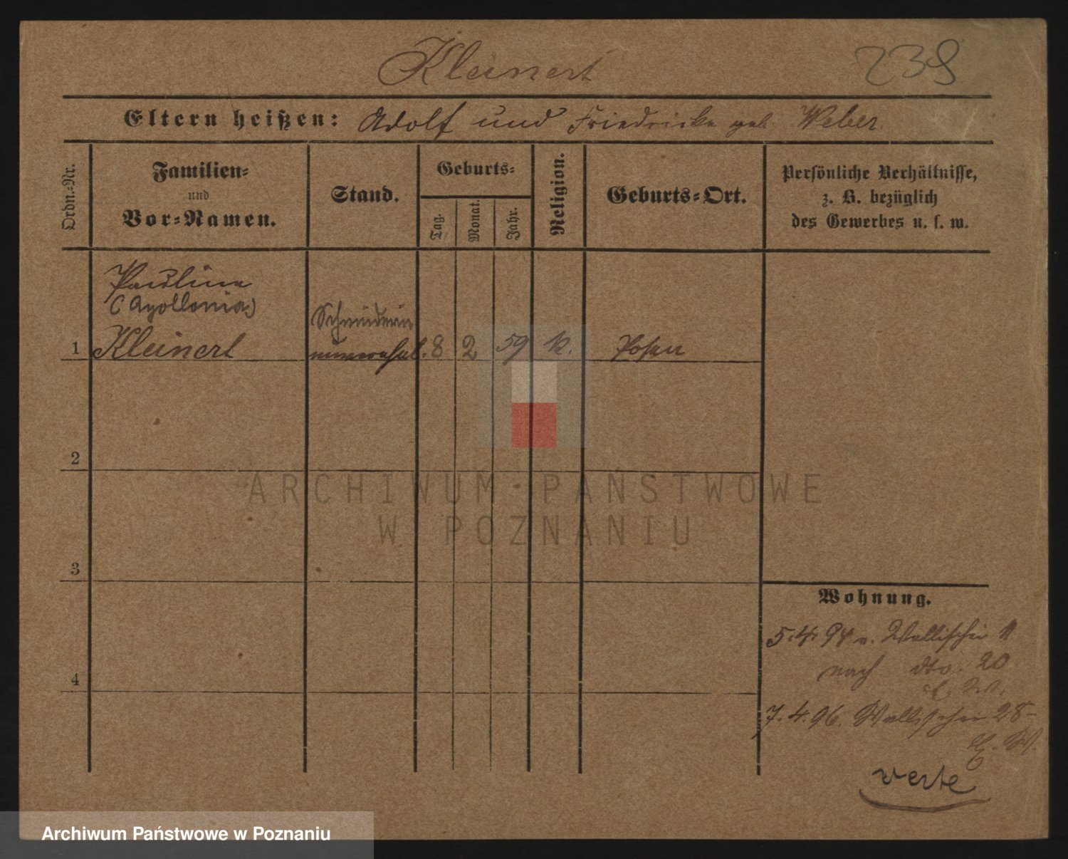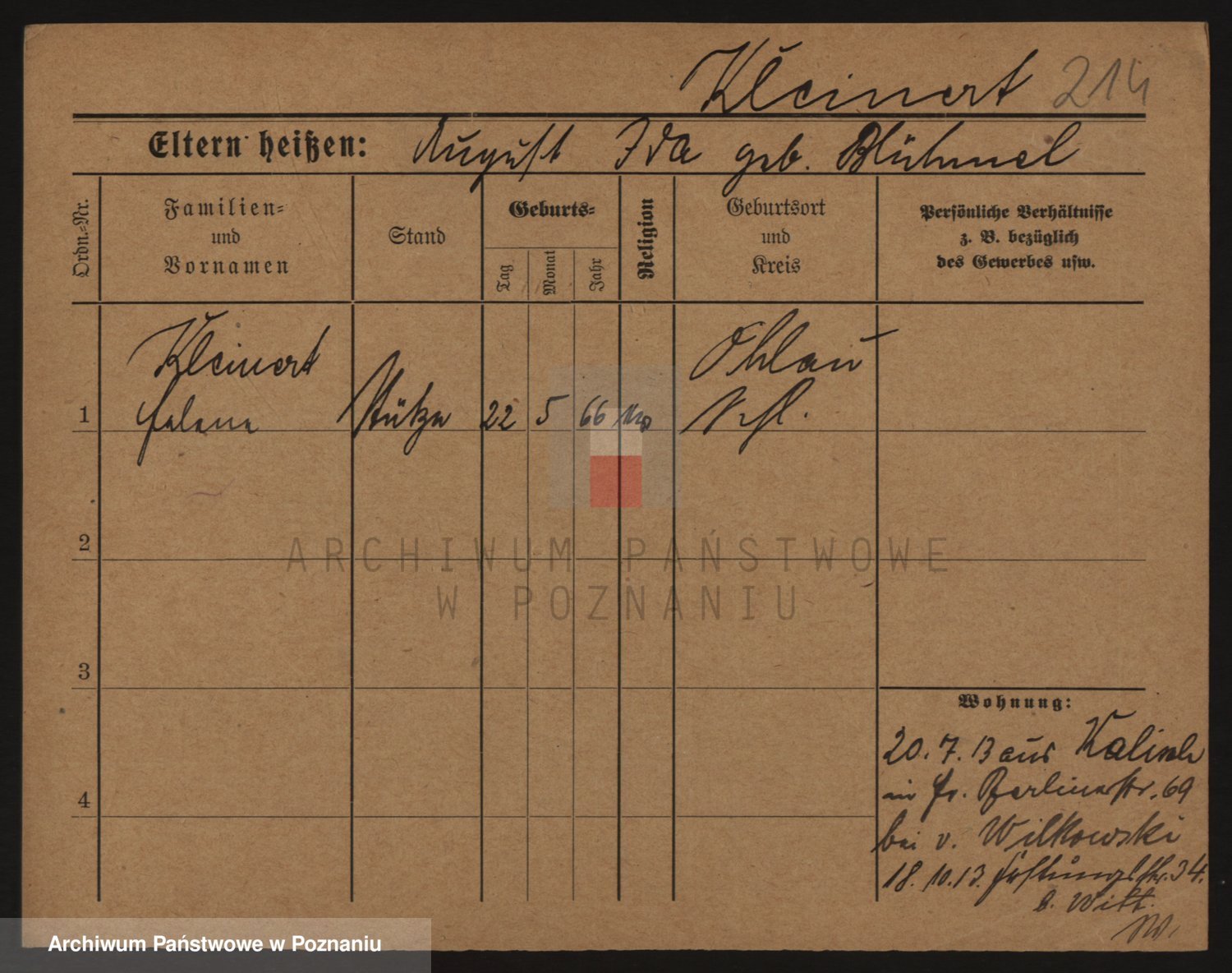 Kleiner z d. Hudzinska, Bertha