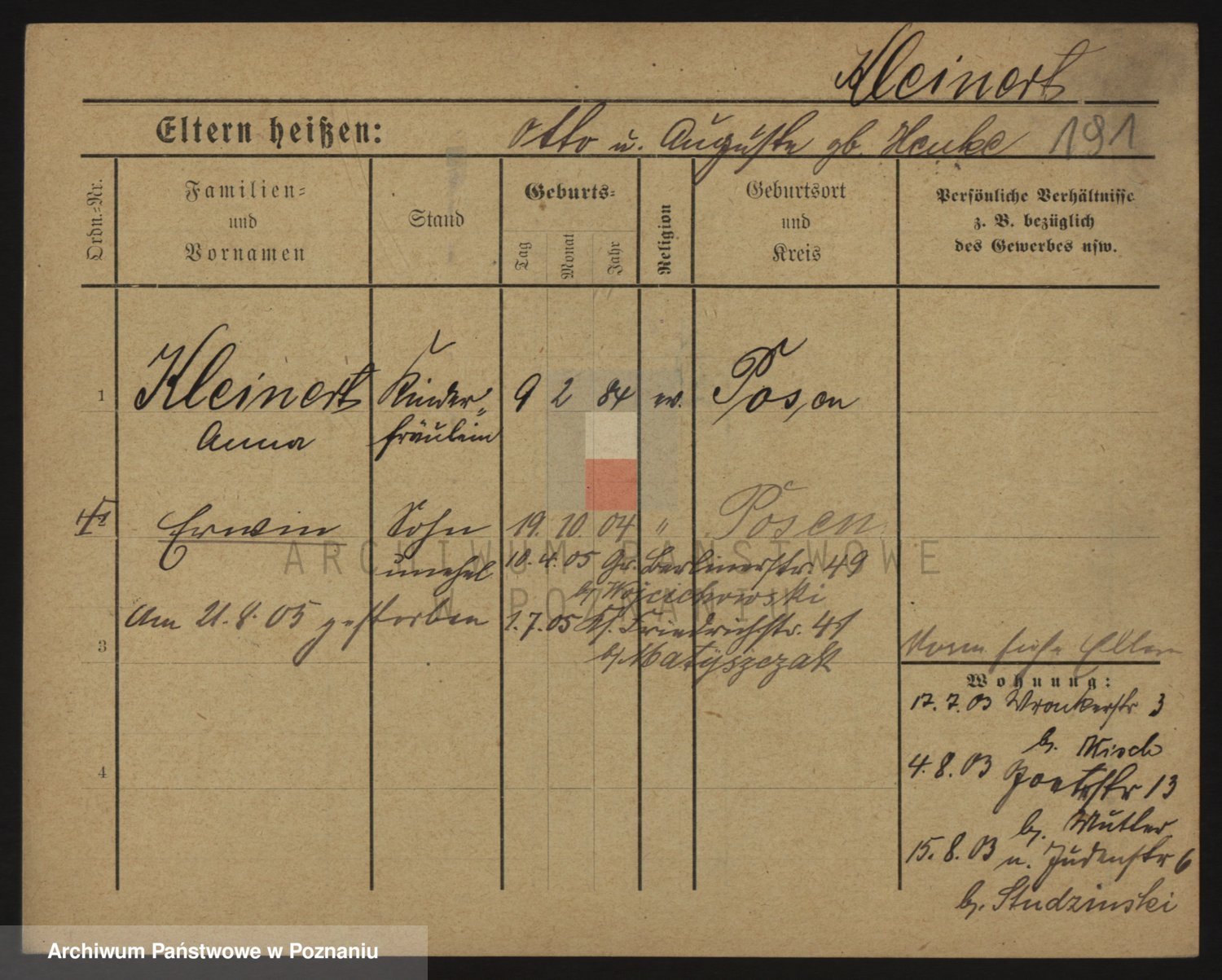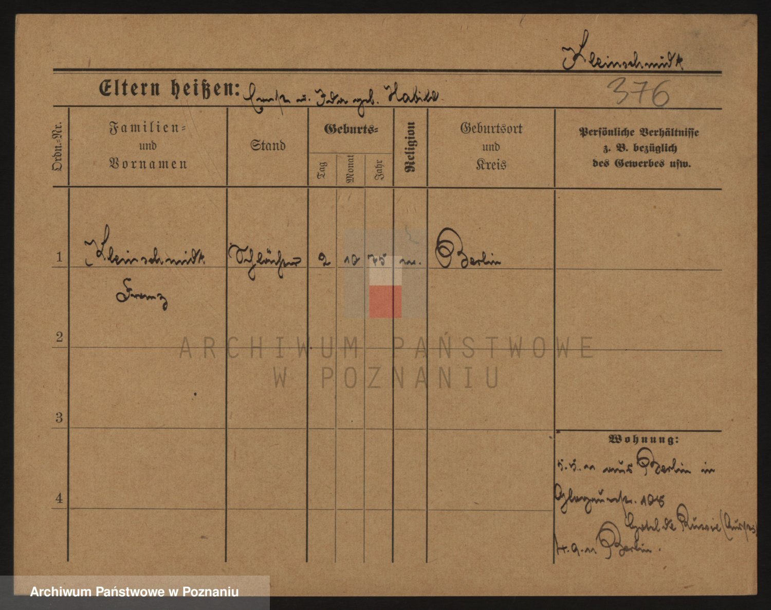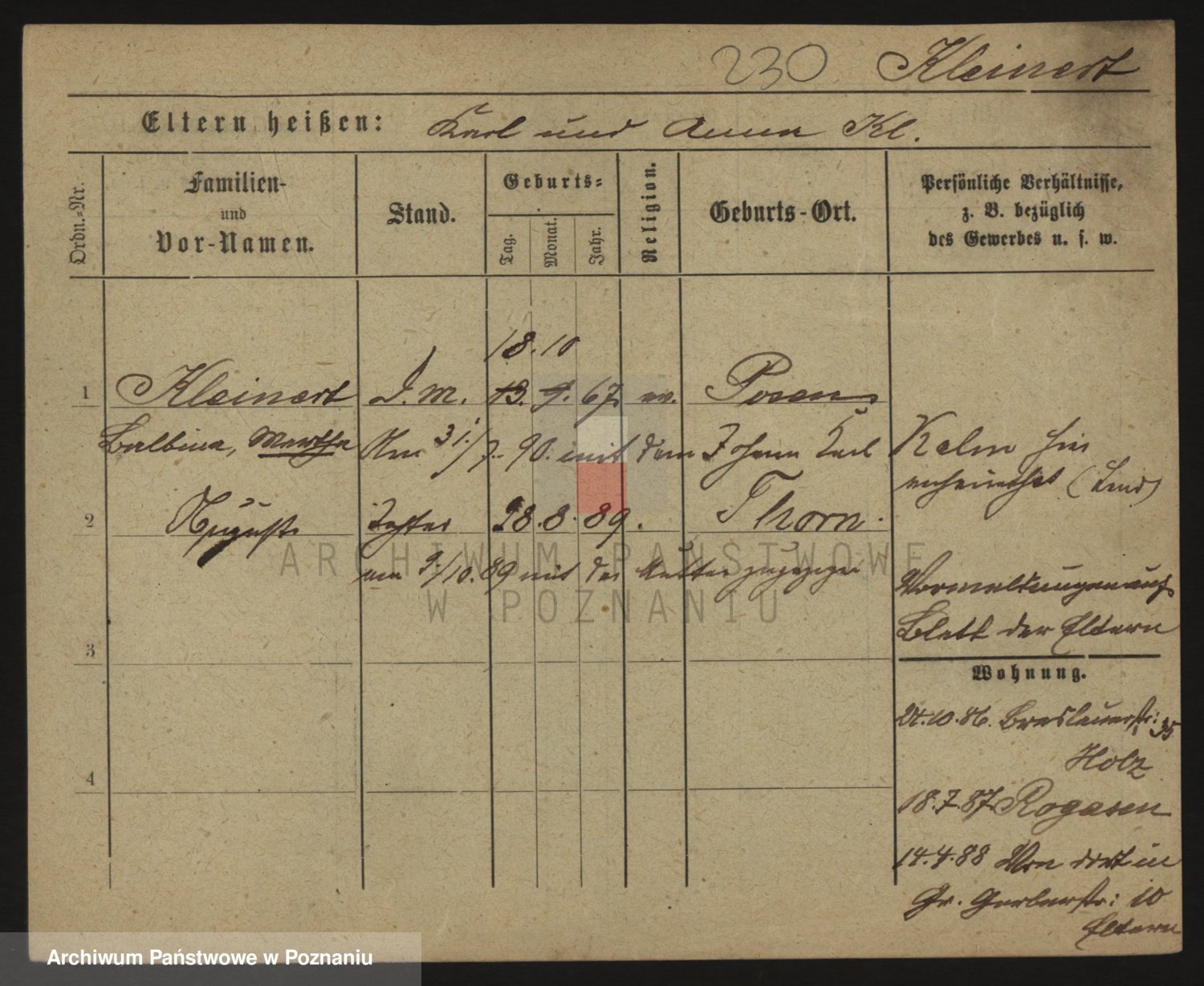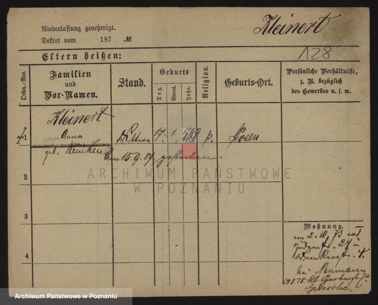 Kleiner z d. Hudzinska, Bertha