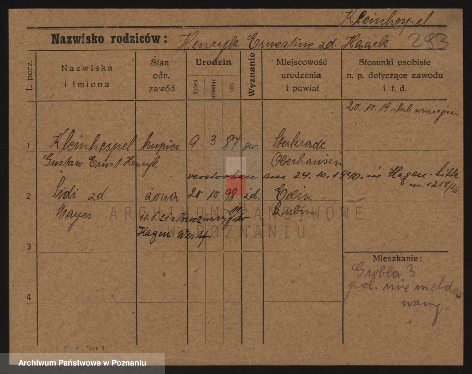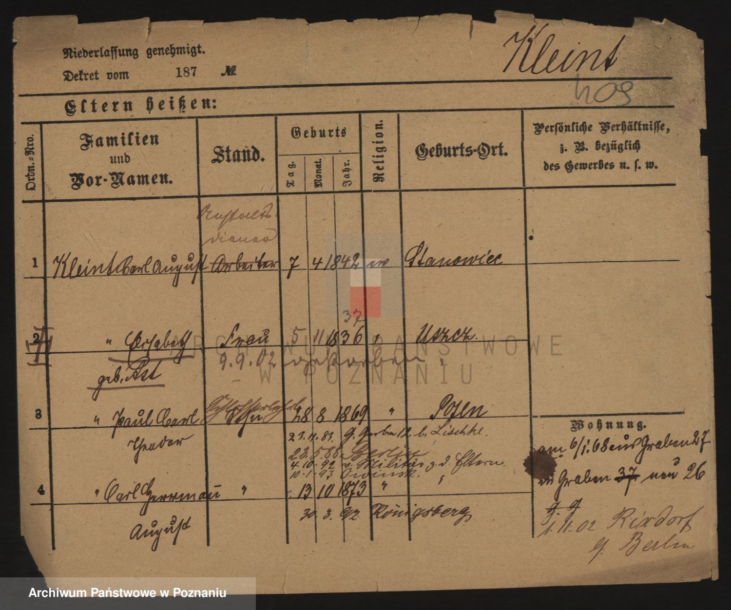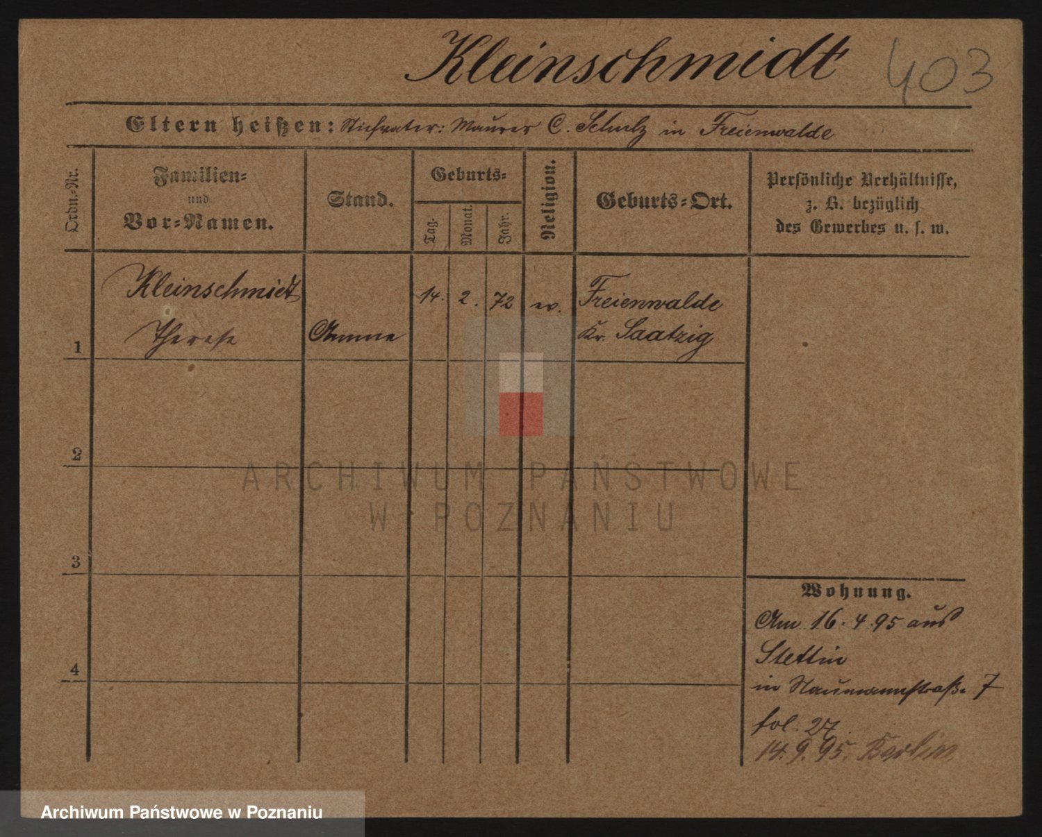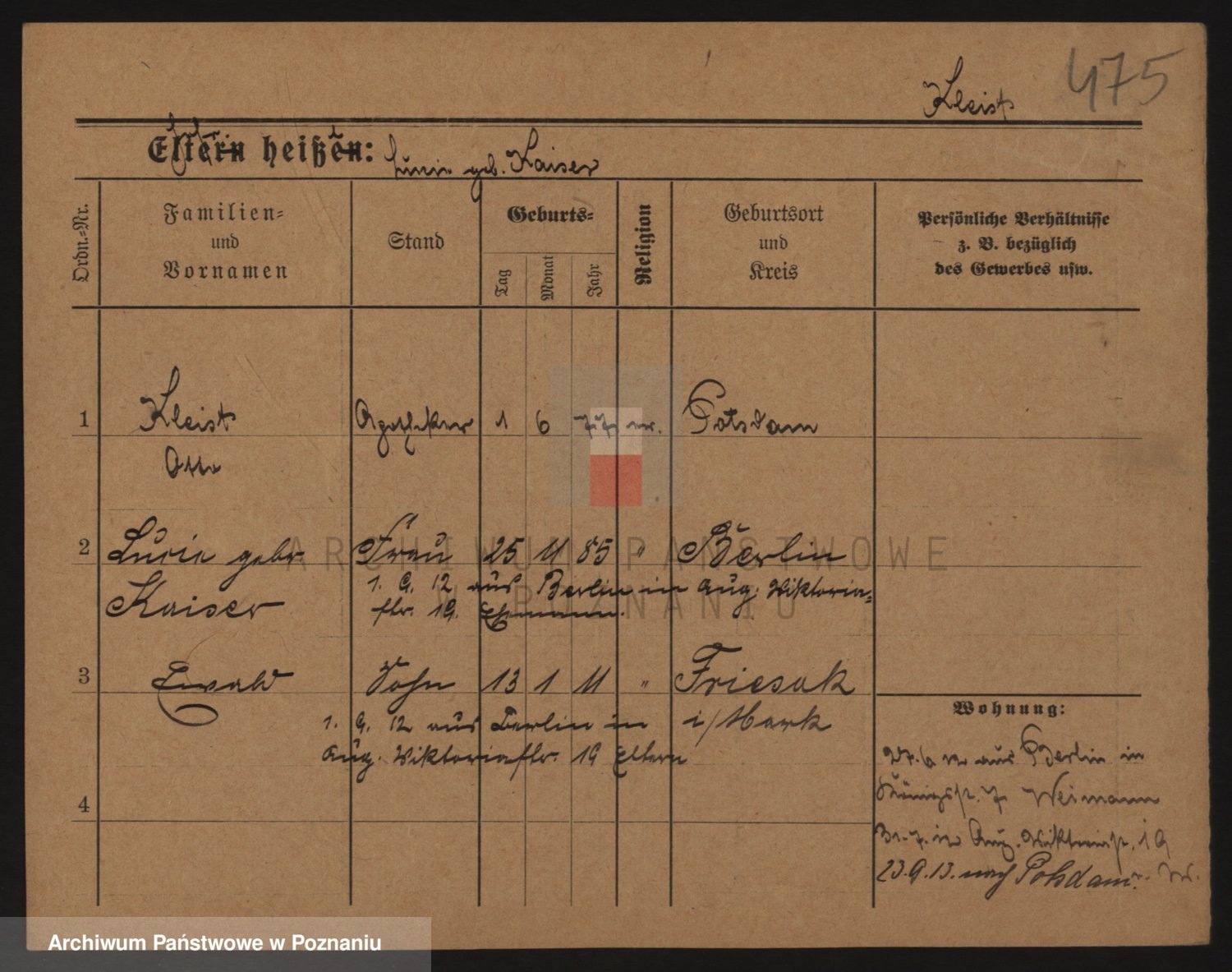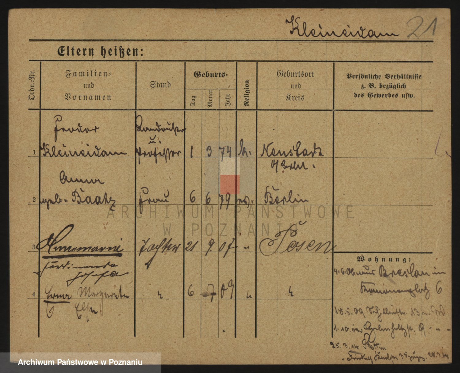 Kleiner z d. Hudzinska, Bertha