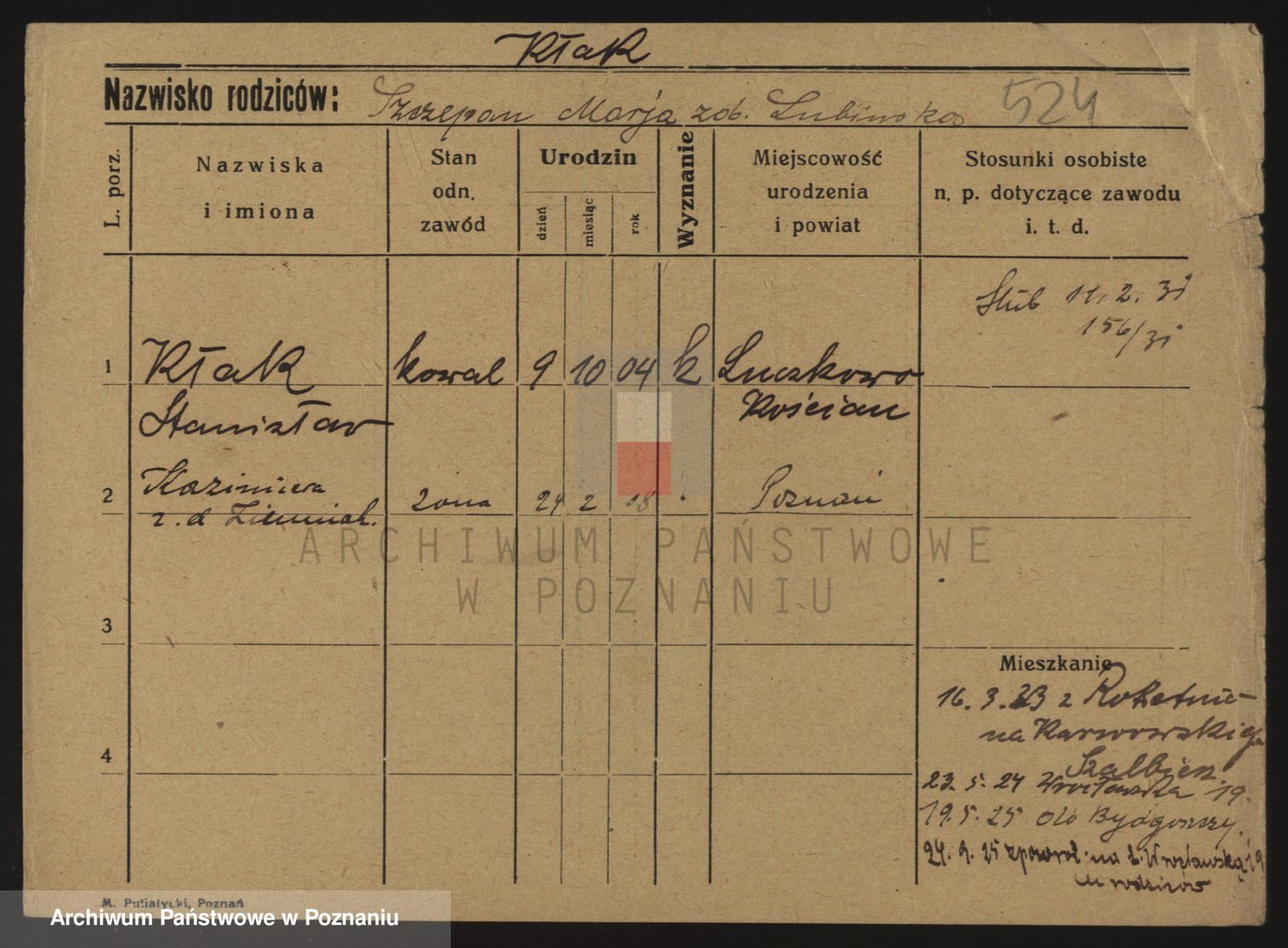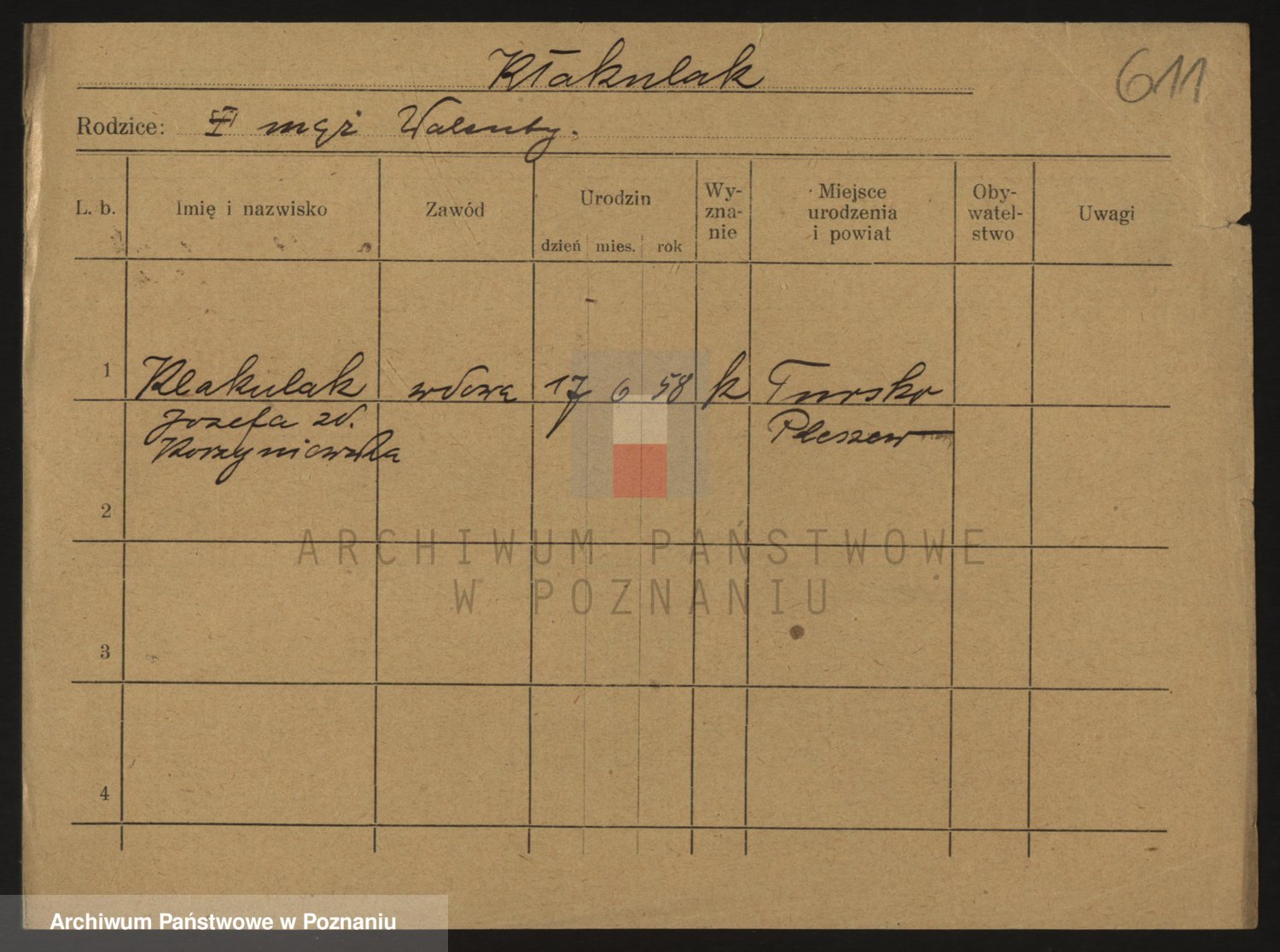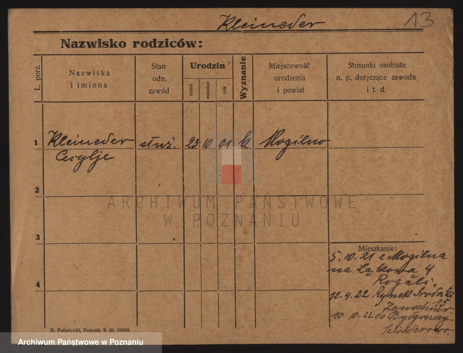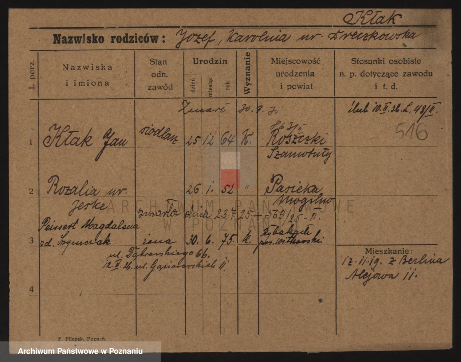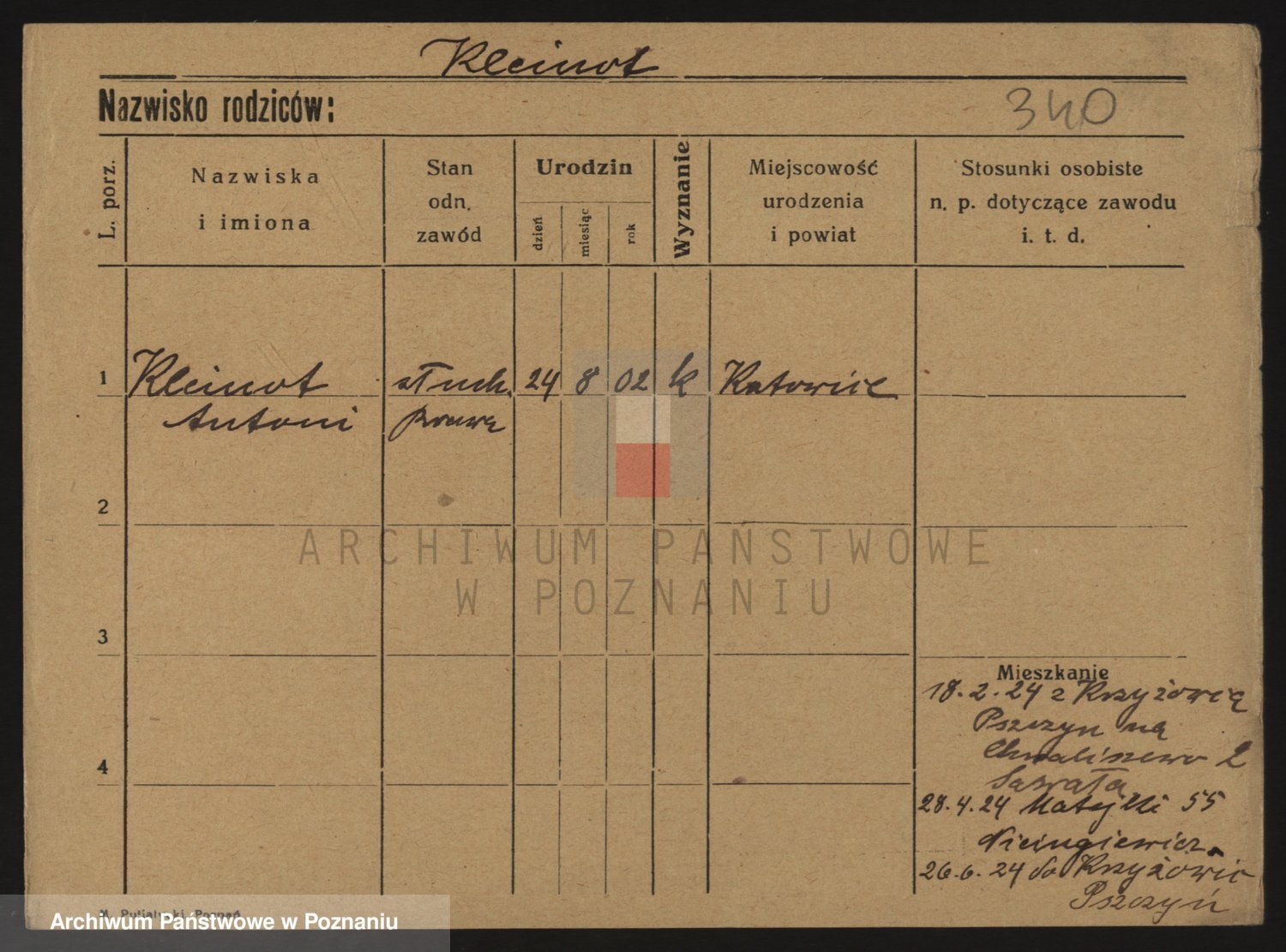 Podgląd karty osobowej dostępny jest po kliknięciu na nazwisko lub ikonkę karty. Można dokonywać powiększenia (ikony na górze) lub przechodzić między kolejnymi skanami (strzałki po bokach).