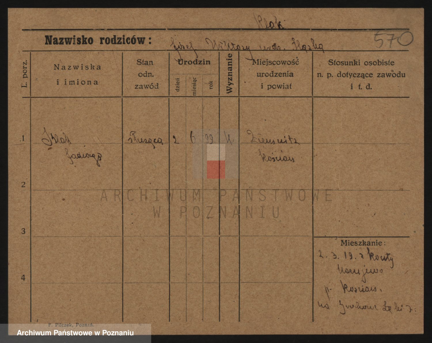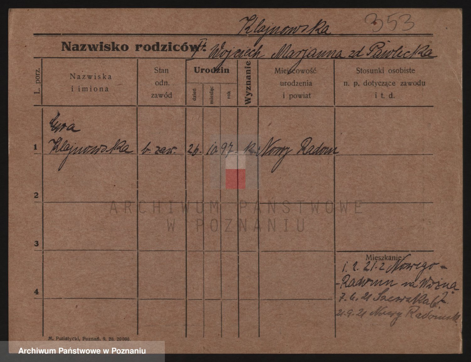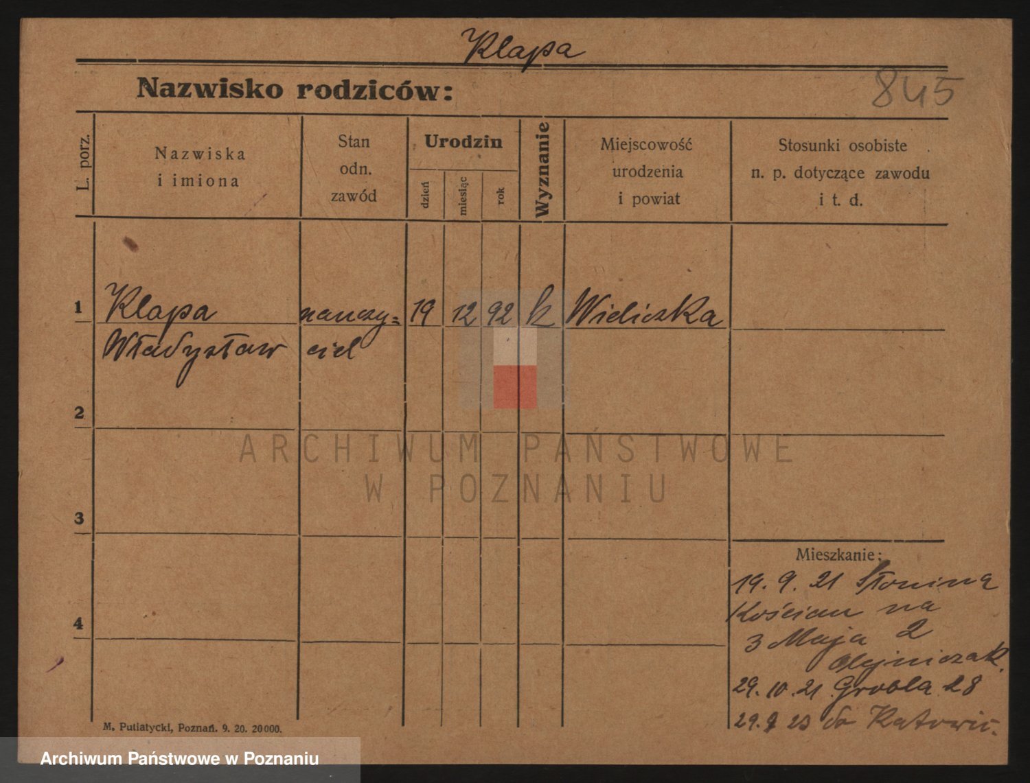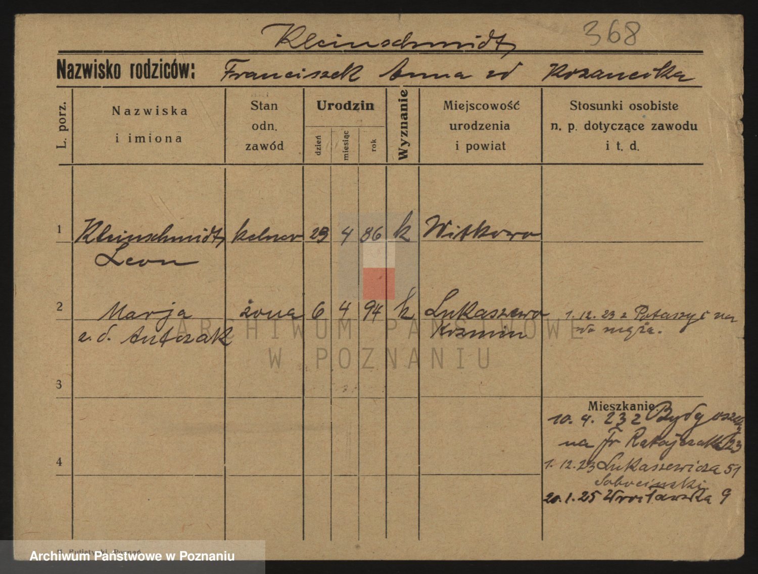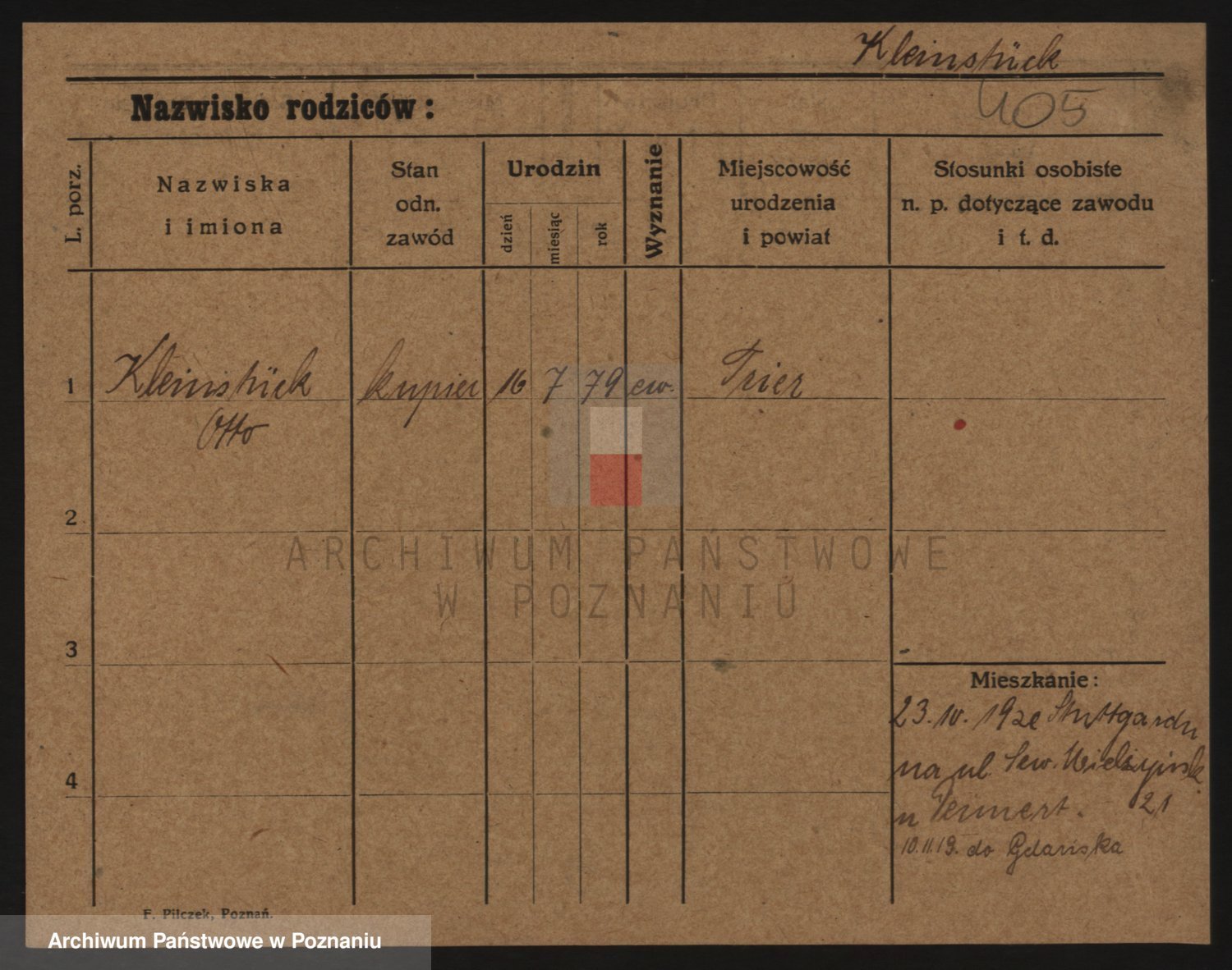 Podgląd karty osobowej dostępny jest po kliknięciu na nazwisko lub ikonkę karty. Można dokonywać powiększenia (ikony na górze) lub przechodzić między kolejnymi skanami (strzałki po bokach).