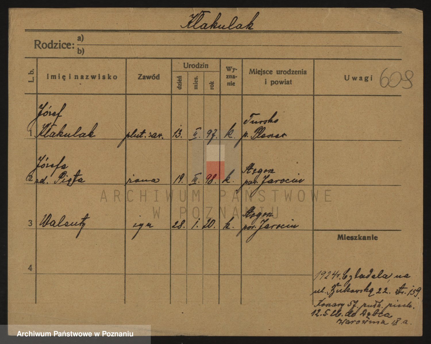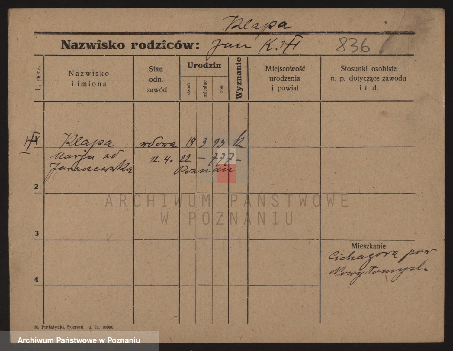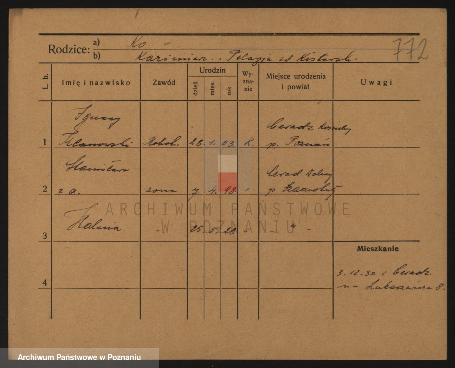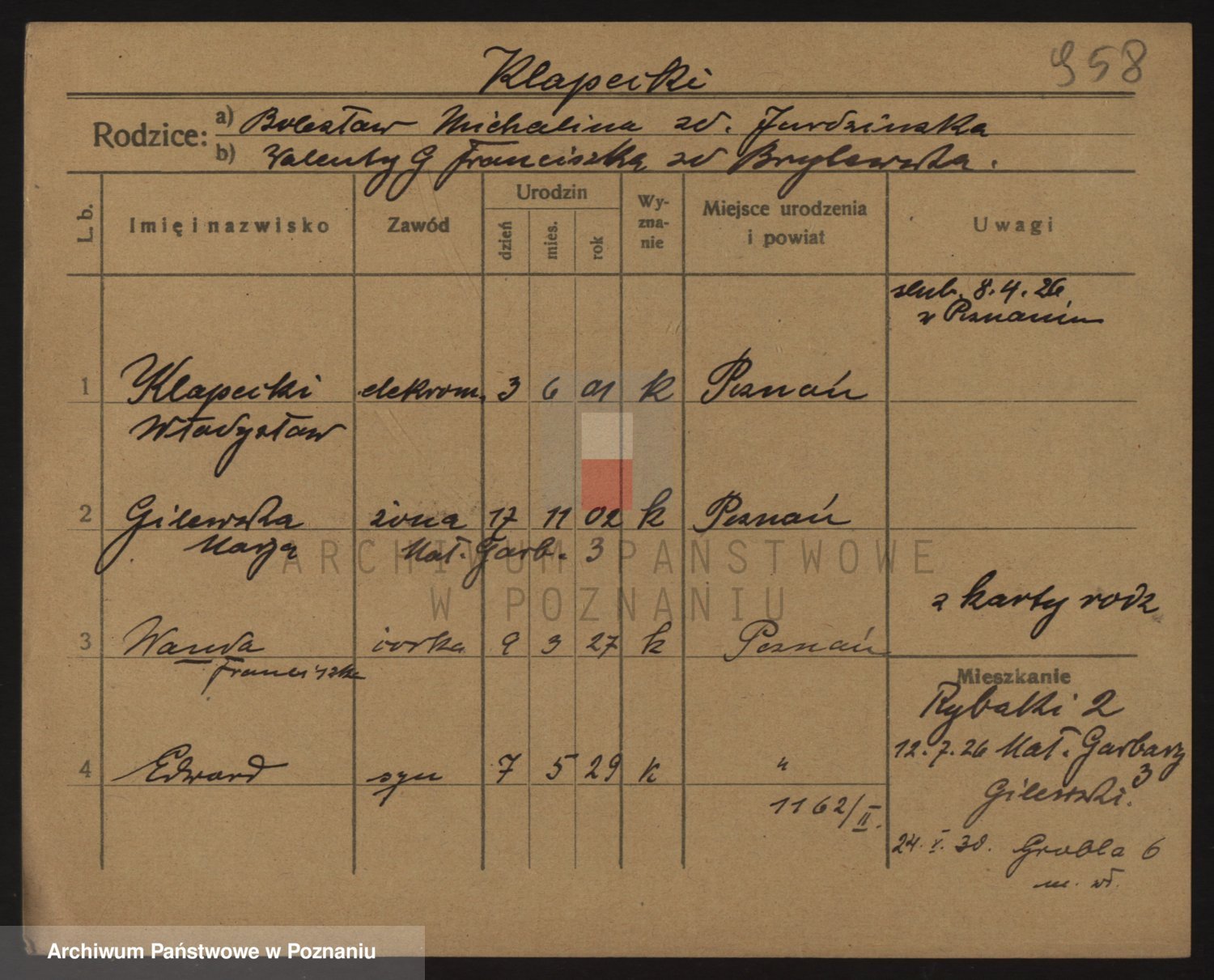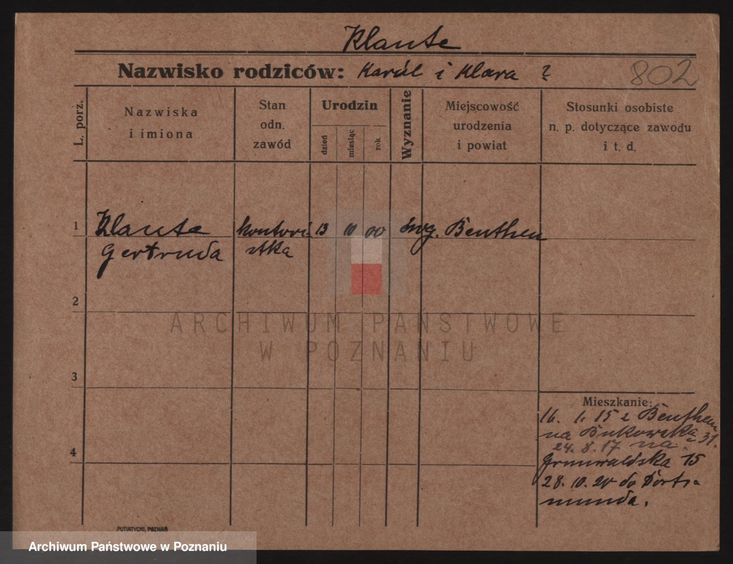 Podgląd karty osobowej dostępny jest po kliknięciu na nazwisko lub ikonkę karty. Można dokonywać powiększenia (ikony na górze) lub przechodzić między kolejnymi skanami (strzałki po bokach).