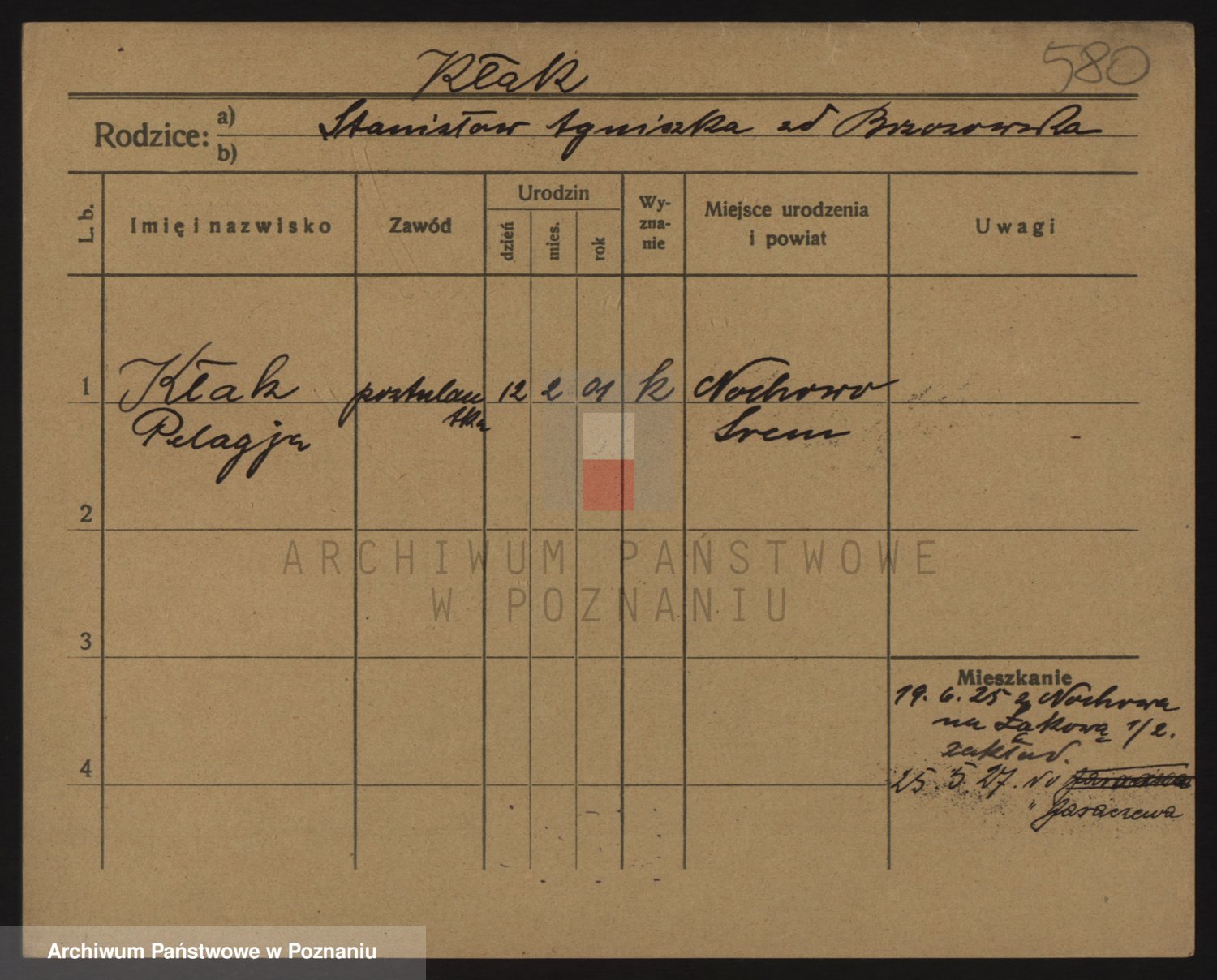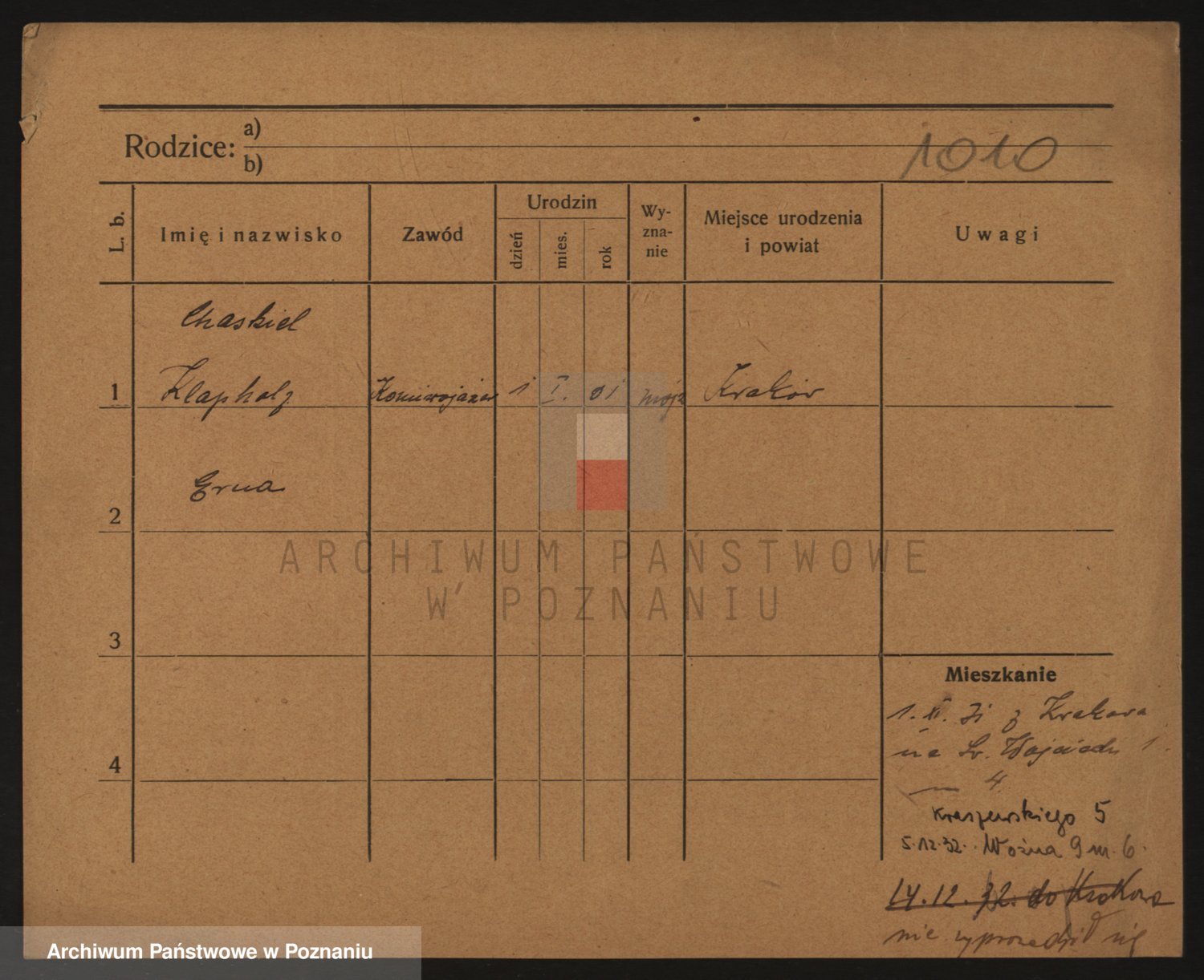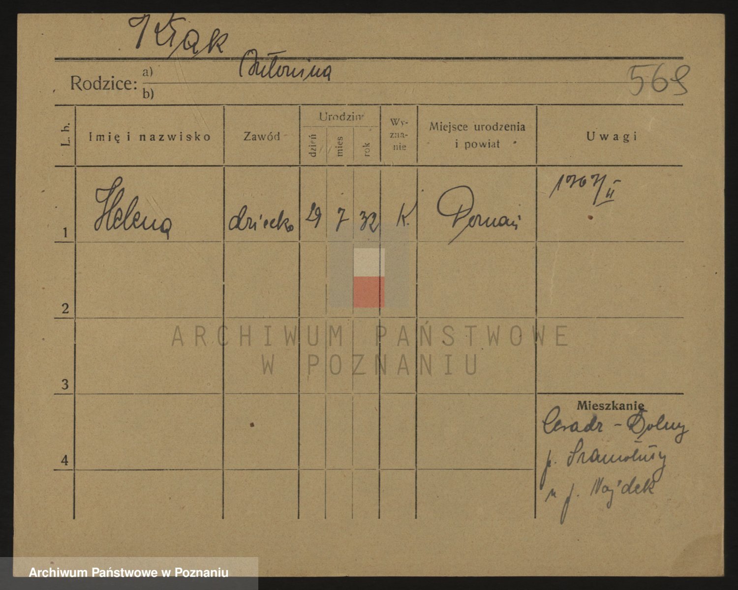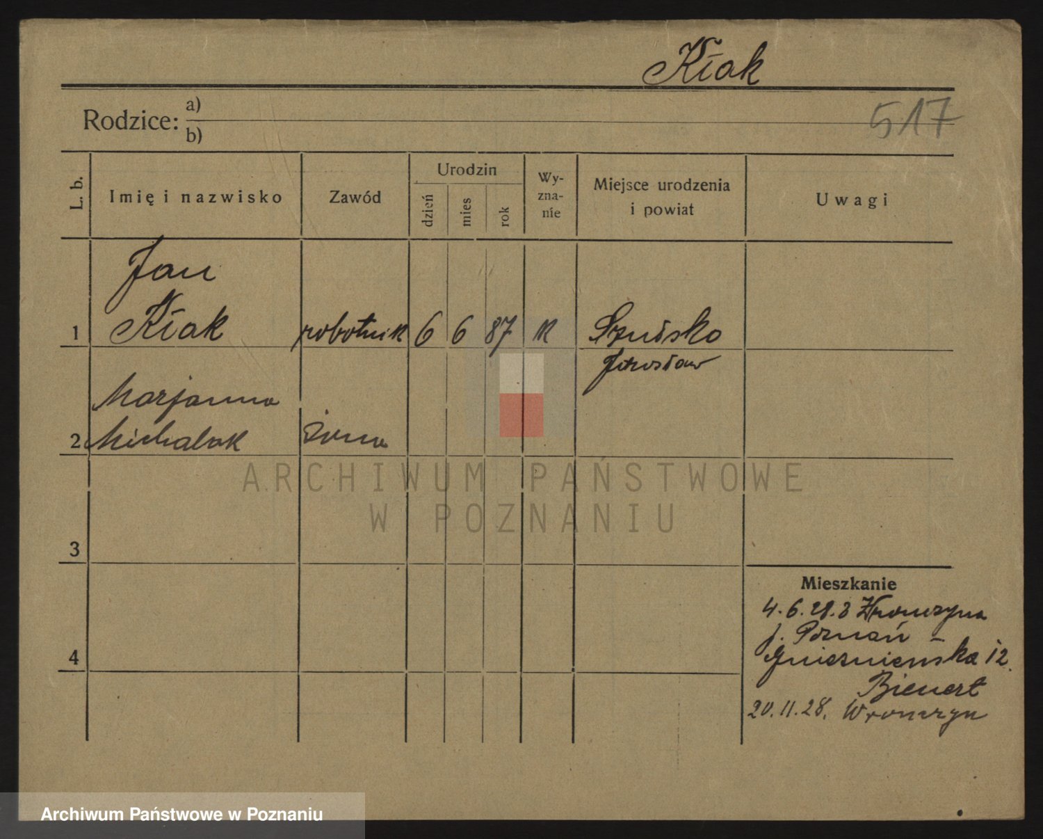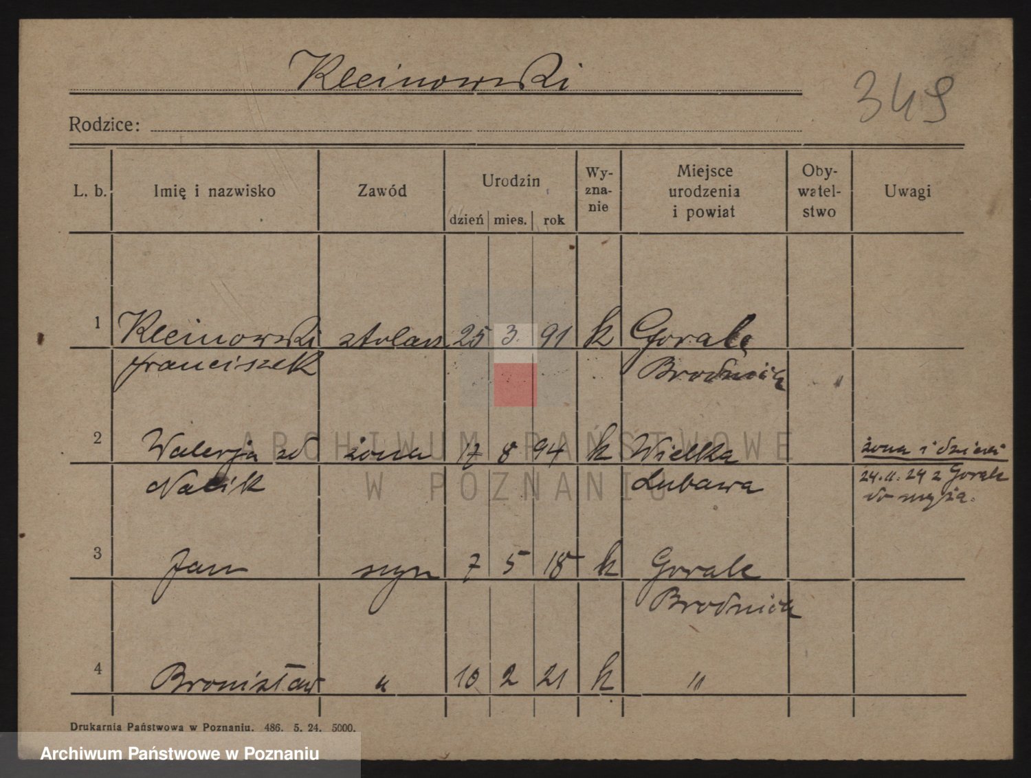 Podgląd karty osobowej dostępny jest po kliknięciu na nazwisko lub ikonkę karty. Można dokonywać powiększenia (ikony na górze) lub przechodzić między kolejnymi skanami (strzałki po bokach).