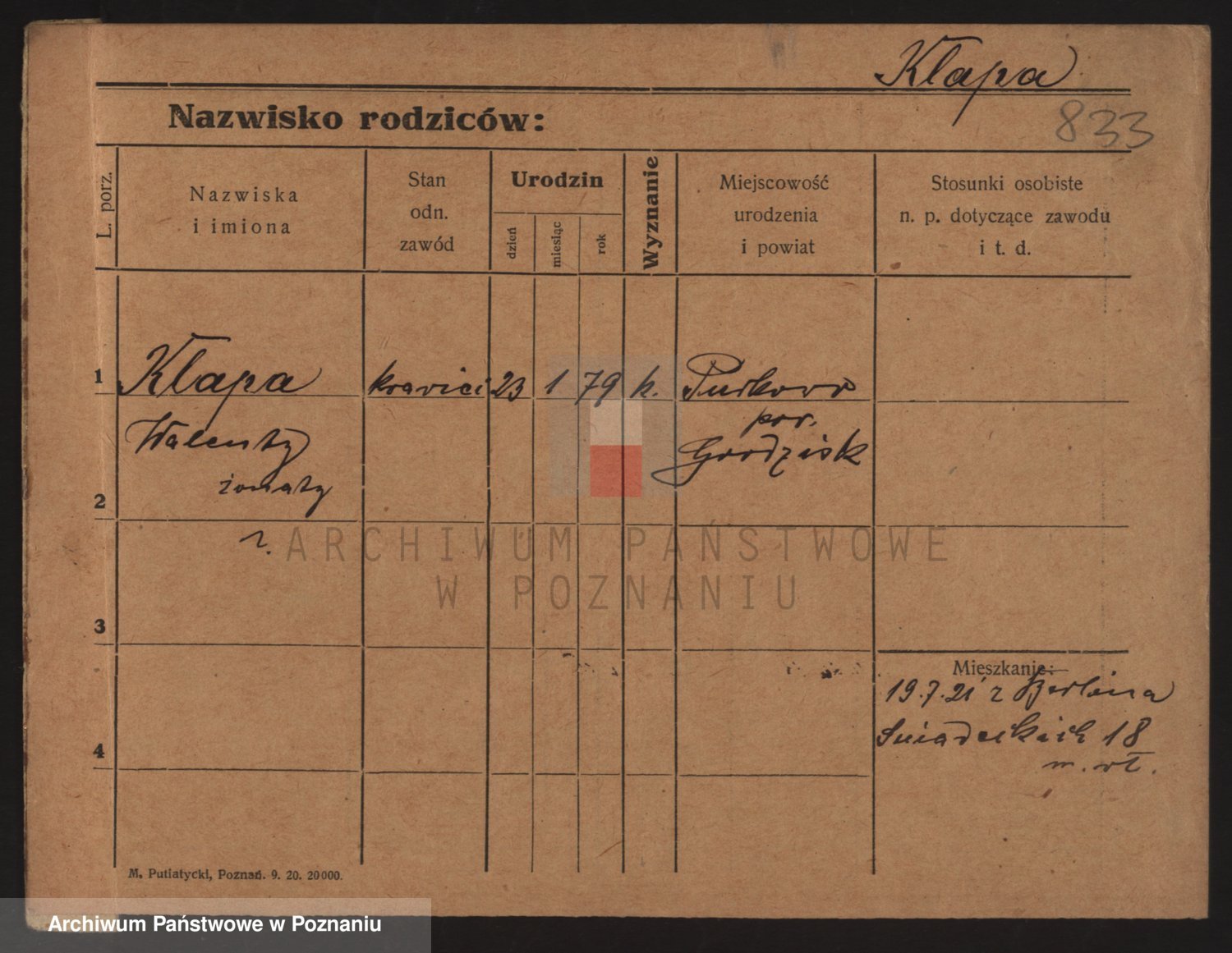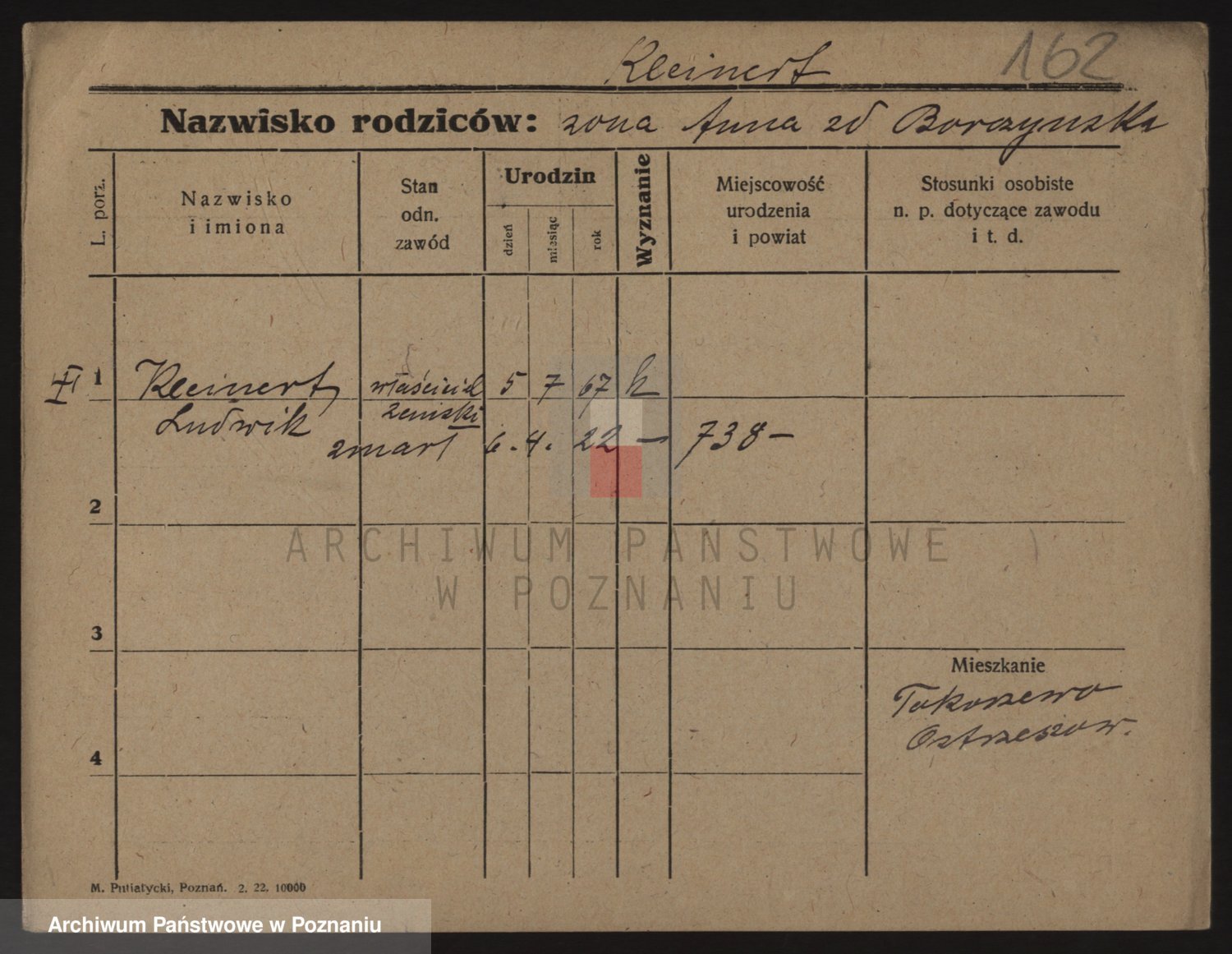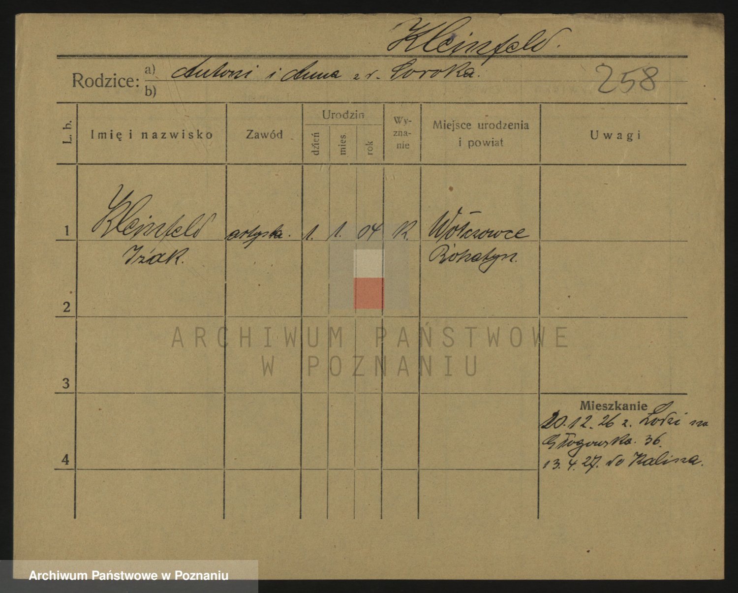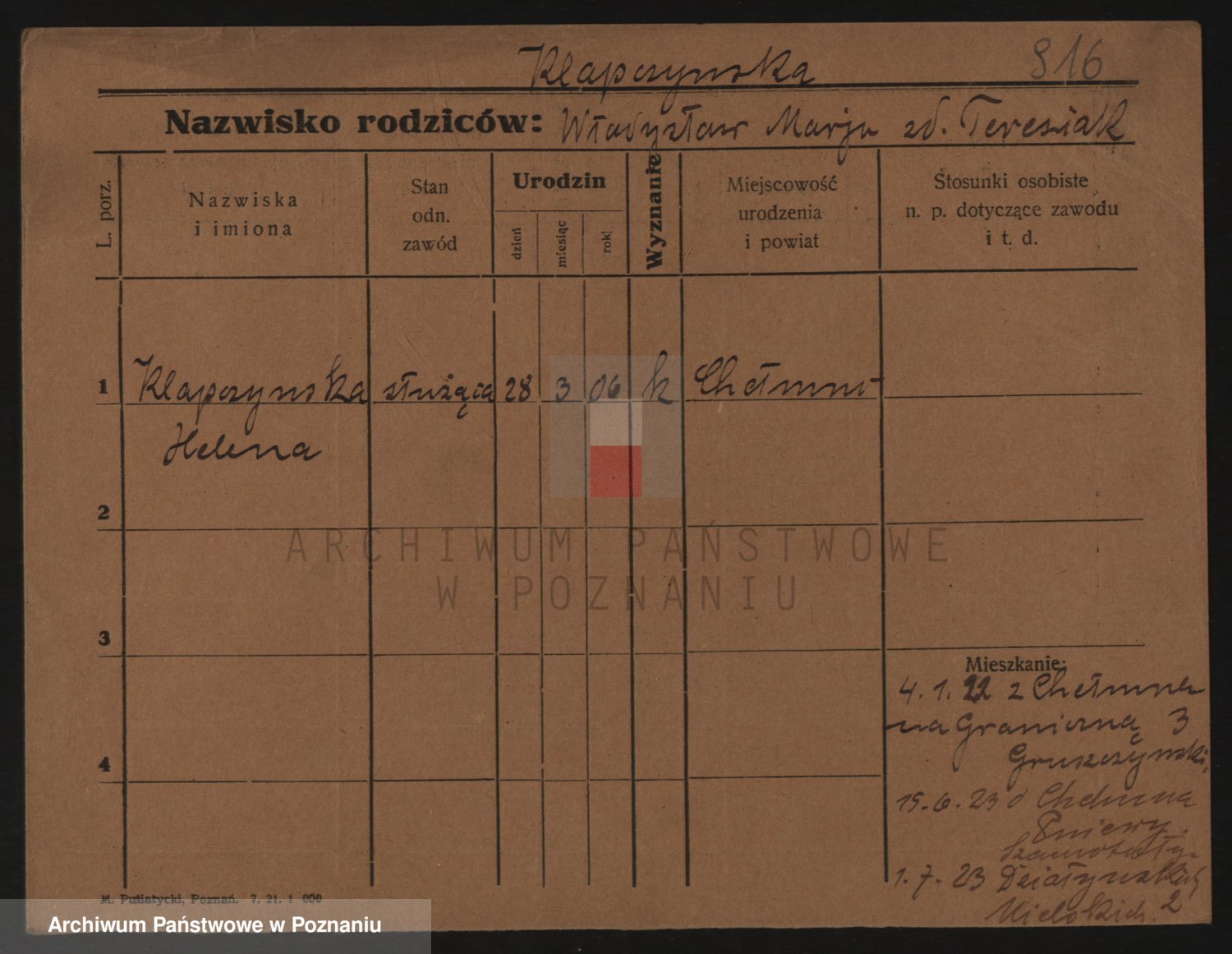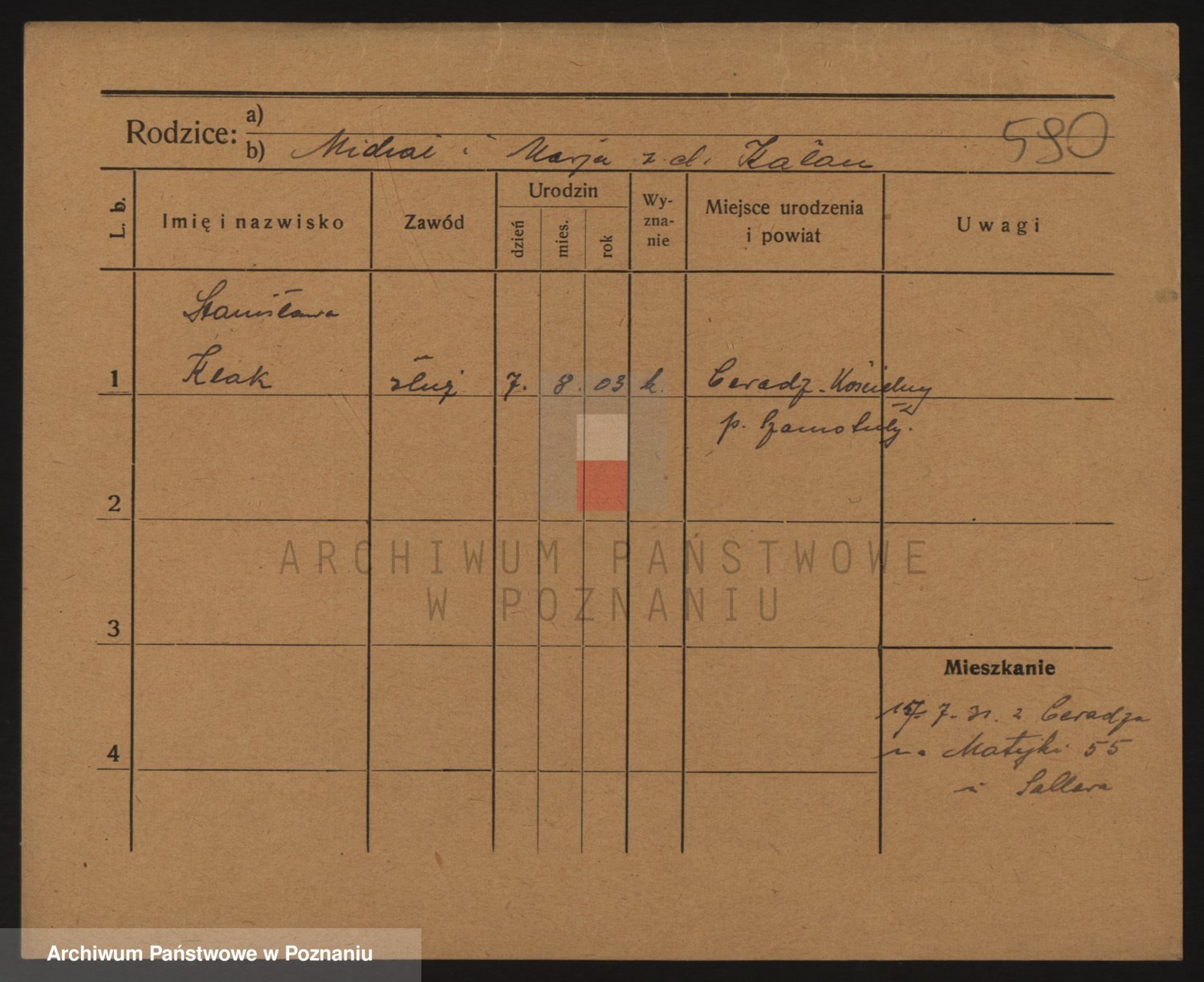 Podgląd karty osobowej dostępny jest po kliknięciu na nazwisko lub ikonkę karty. Można dokonywać powiększenia (ikony na górze) lub przechodzić między kolejnymi skanami (strzałki po bokach).