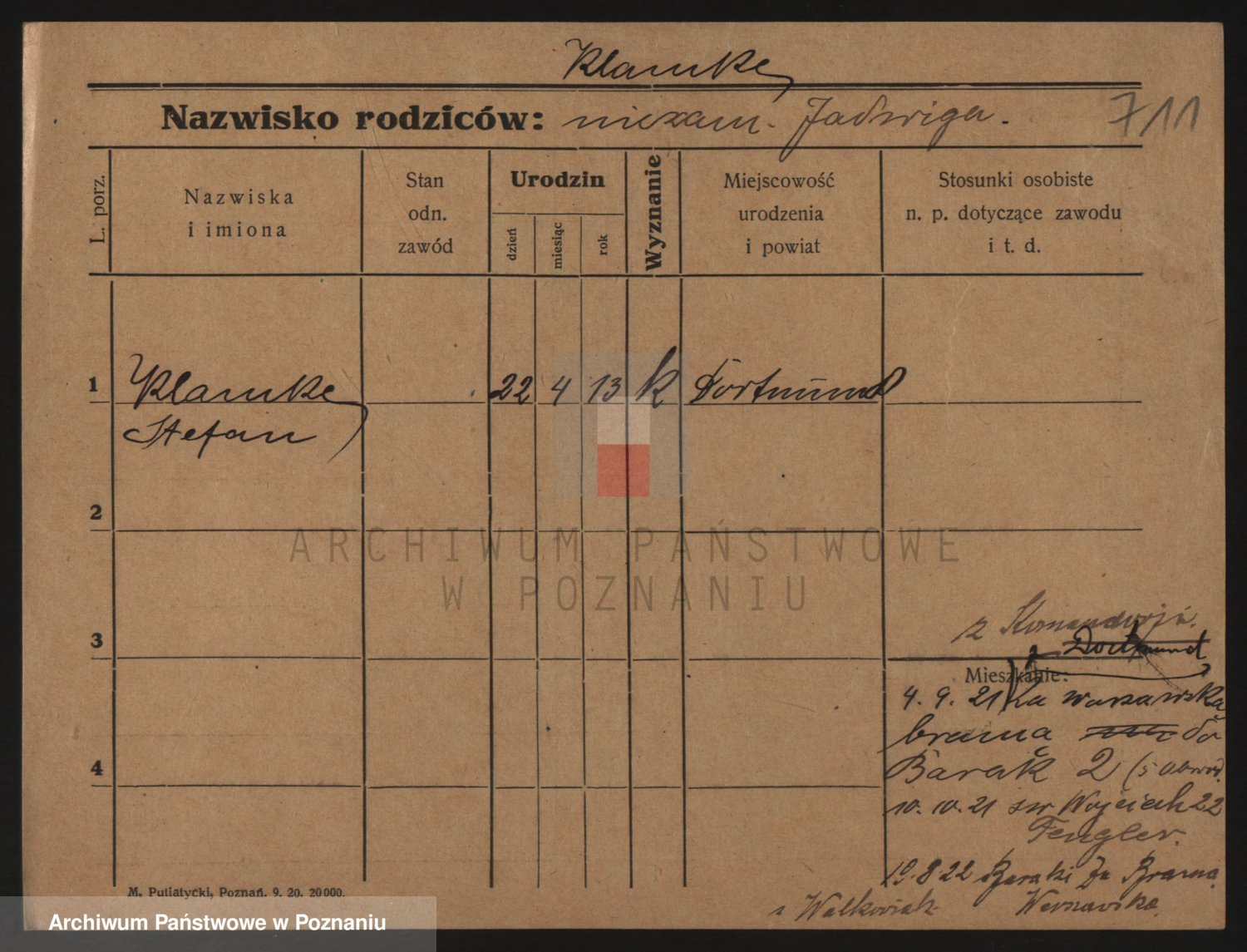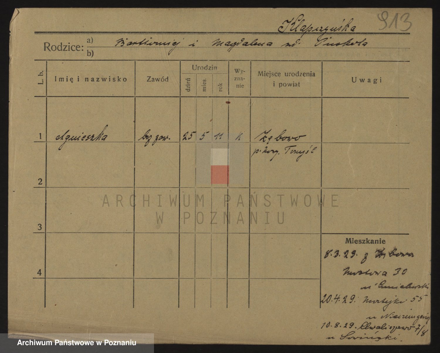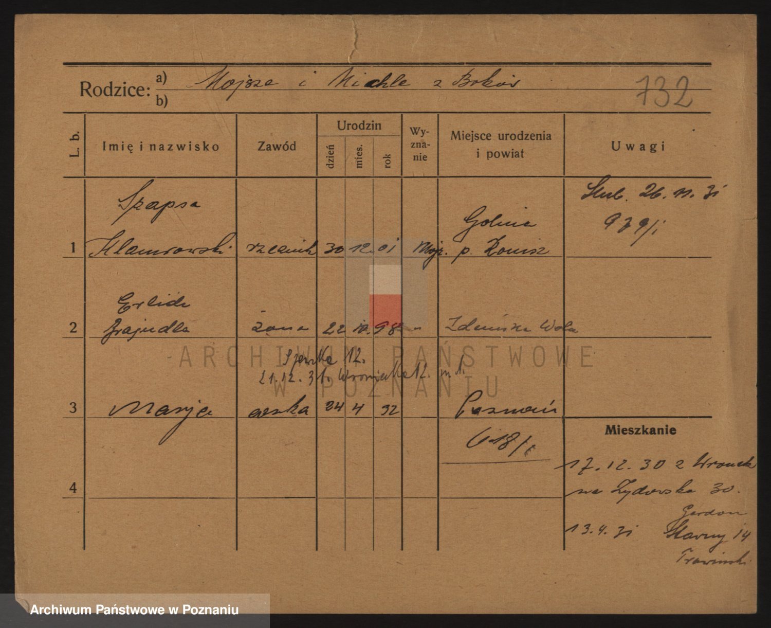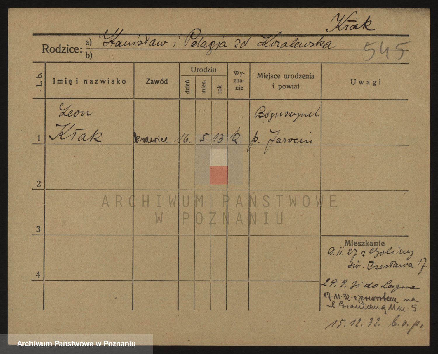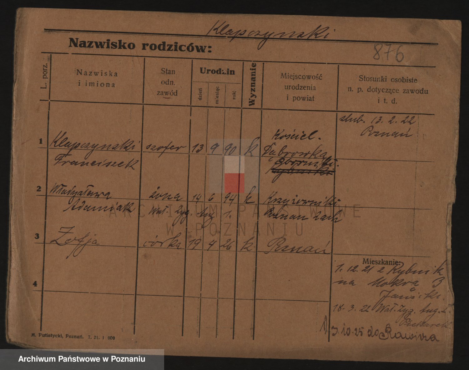 Podgląd karty osobowej dostępny jest po kliknięciu na nazwisko lub ikonkę karty. Można dokonywać powiększenia (ikony na górze) lub przechodzić między kolejnymi skanami (strzałki po bokach).