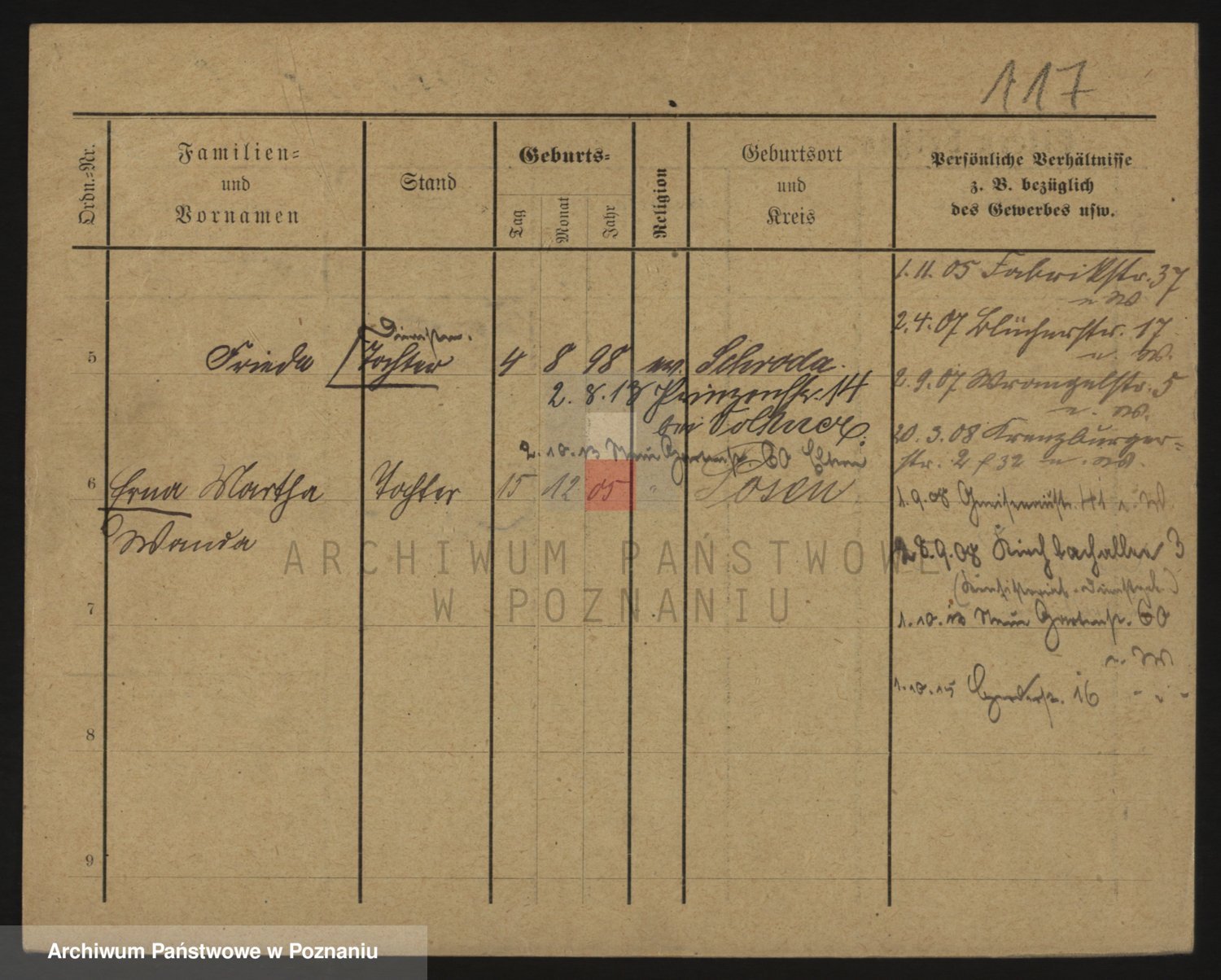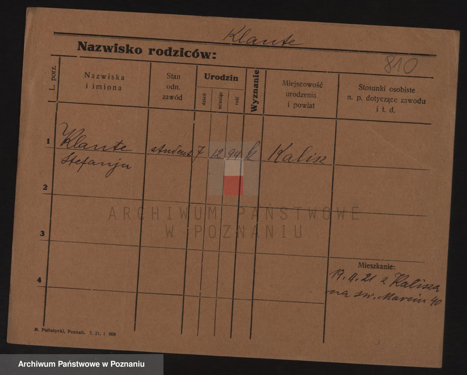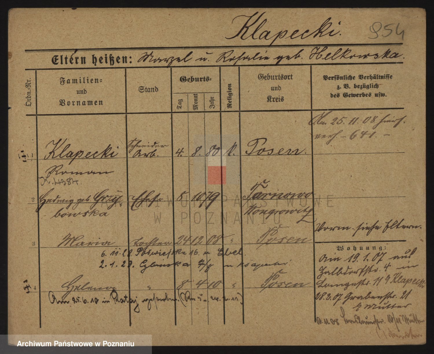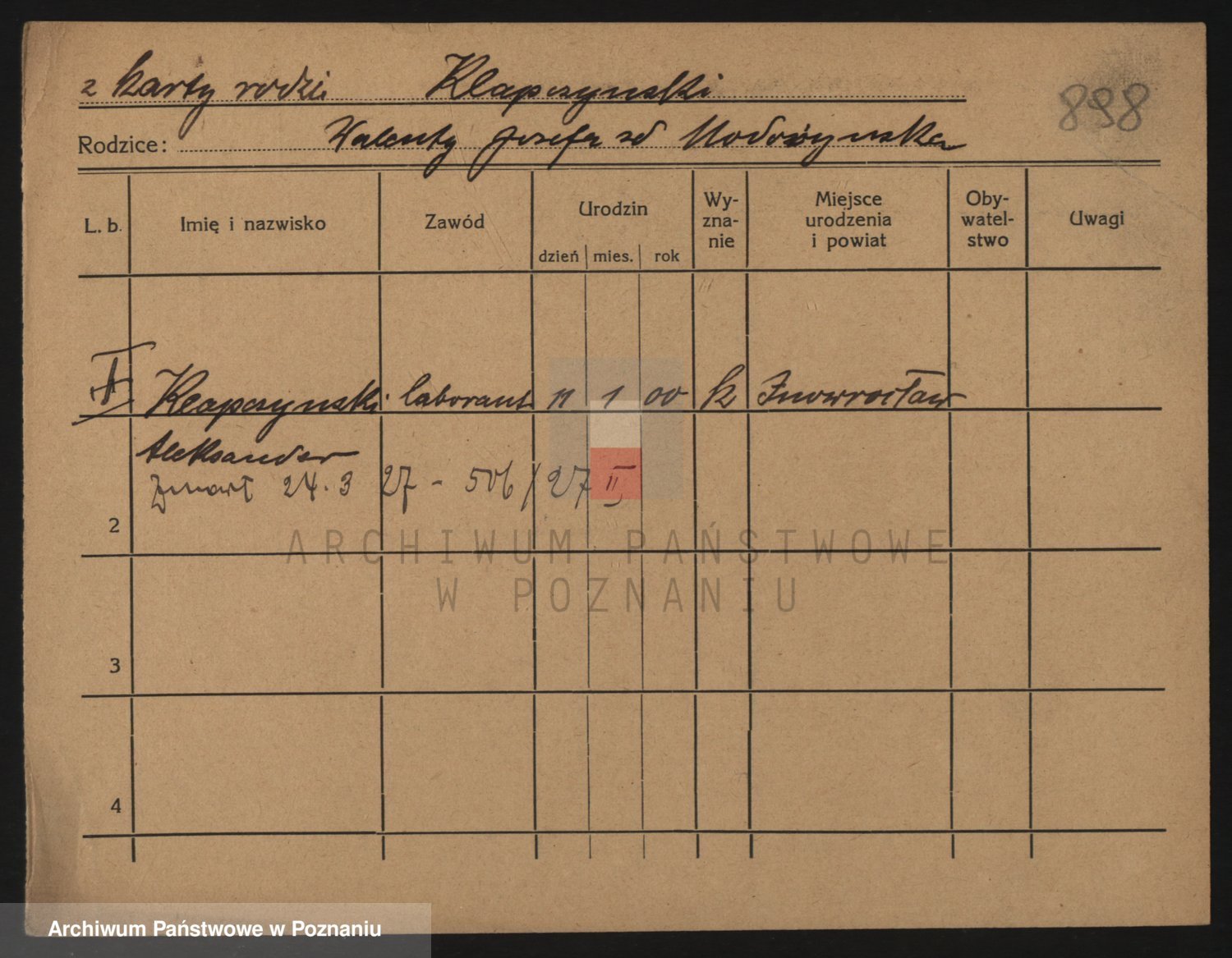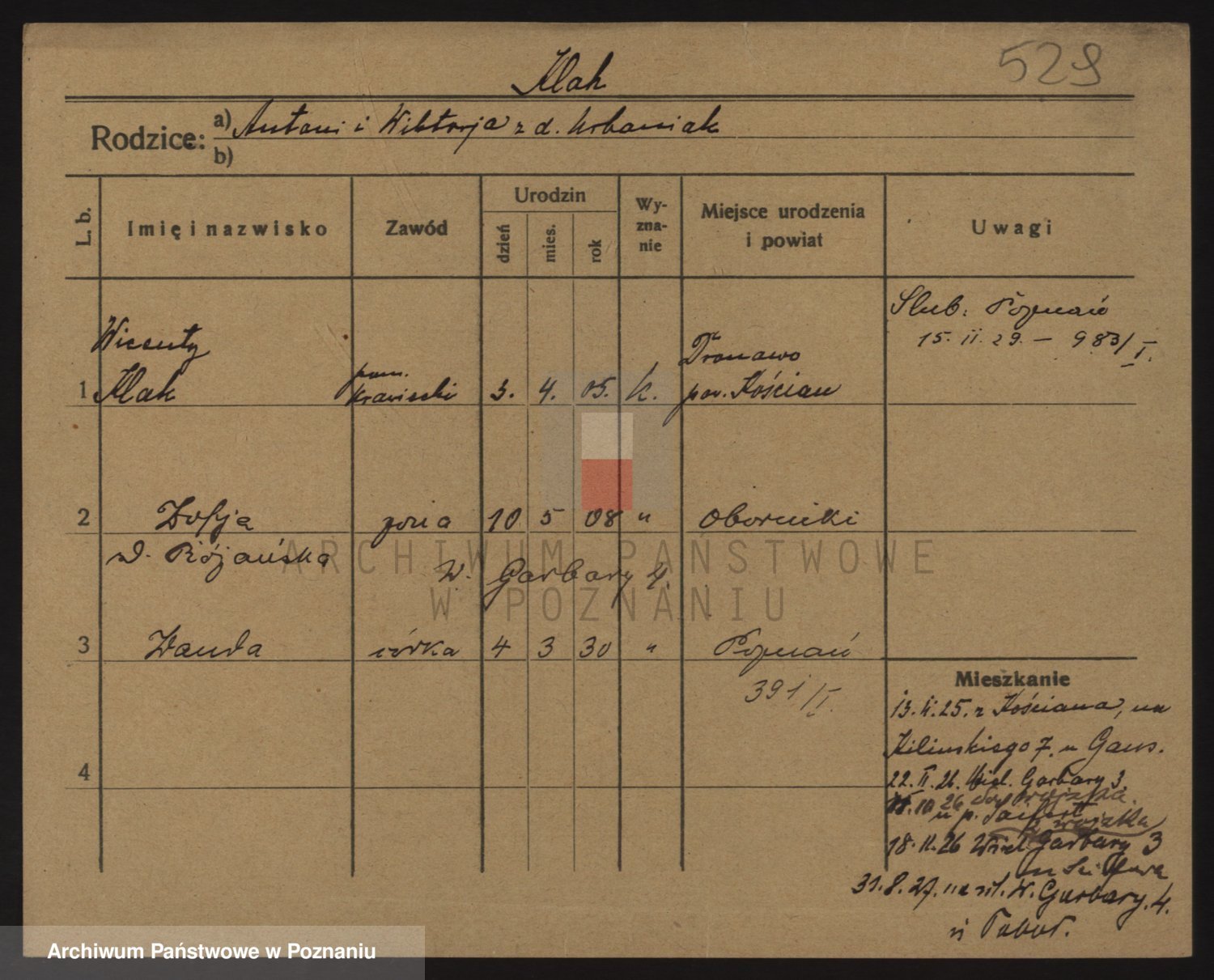 Podgląd karty osobowej dostępny jest po kliknięciu na nazwisko lub ikonkę karty. Można dokonywać powiększenia (ikony na górze) lub przechodzić między kolejnymi skanami (strzałki po bokach).