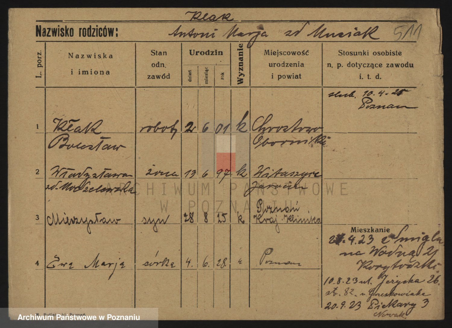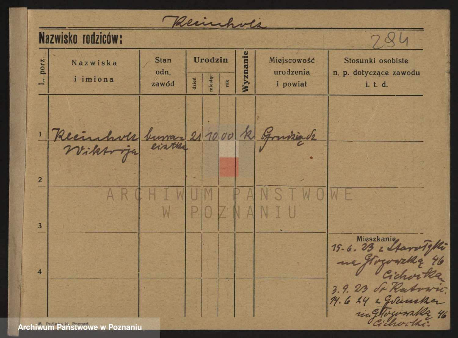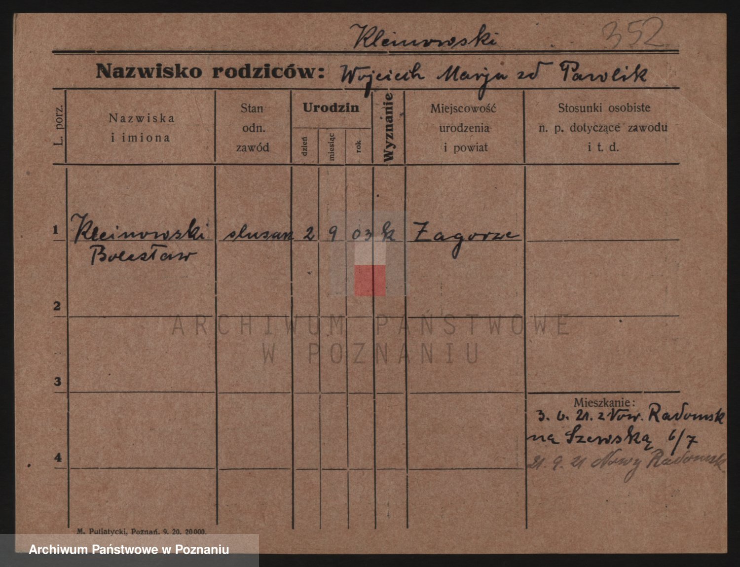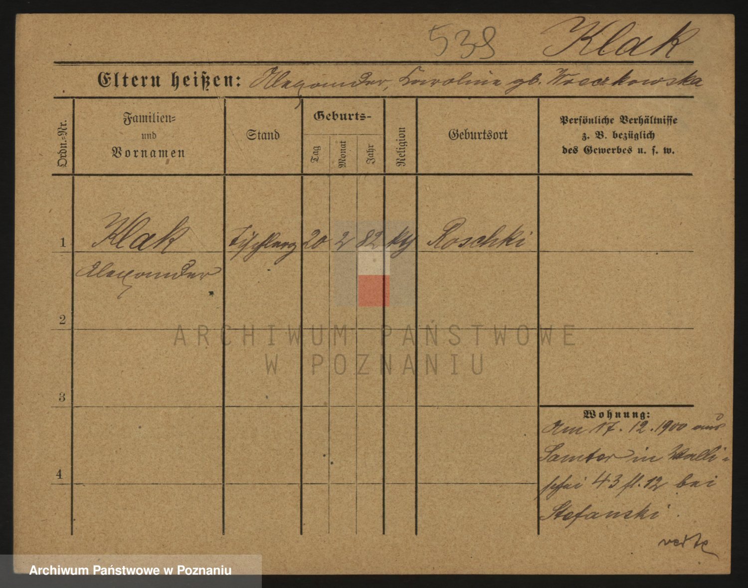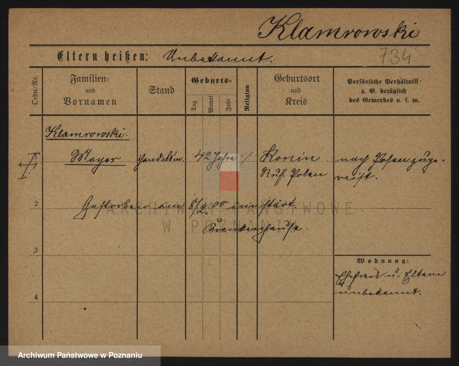 Podgląd karty osobowej dostępny jest po kliknięciu na nazwisko lub ikonkę karty. Można dokonywać powiększenia (ikony na górze) lub przechodzić między kolejnymi skanami (strzałki po bokach).