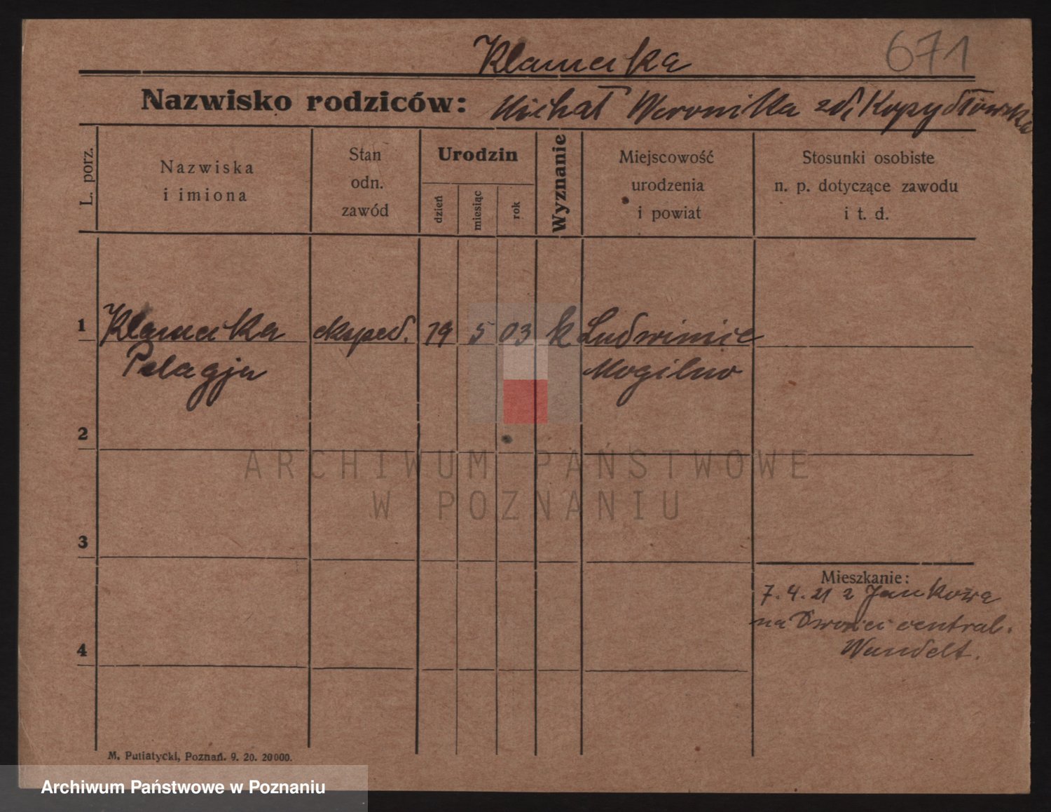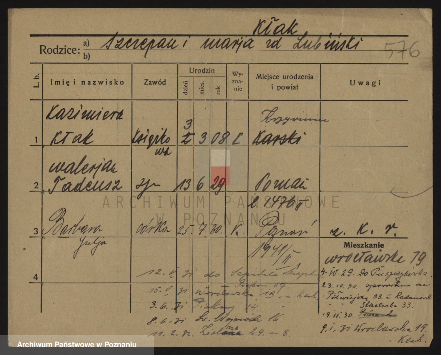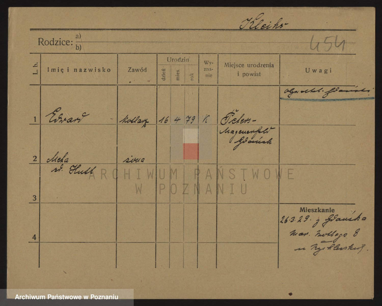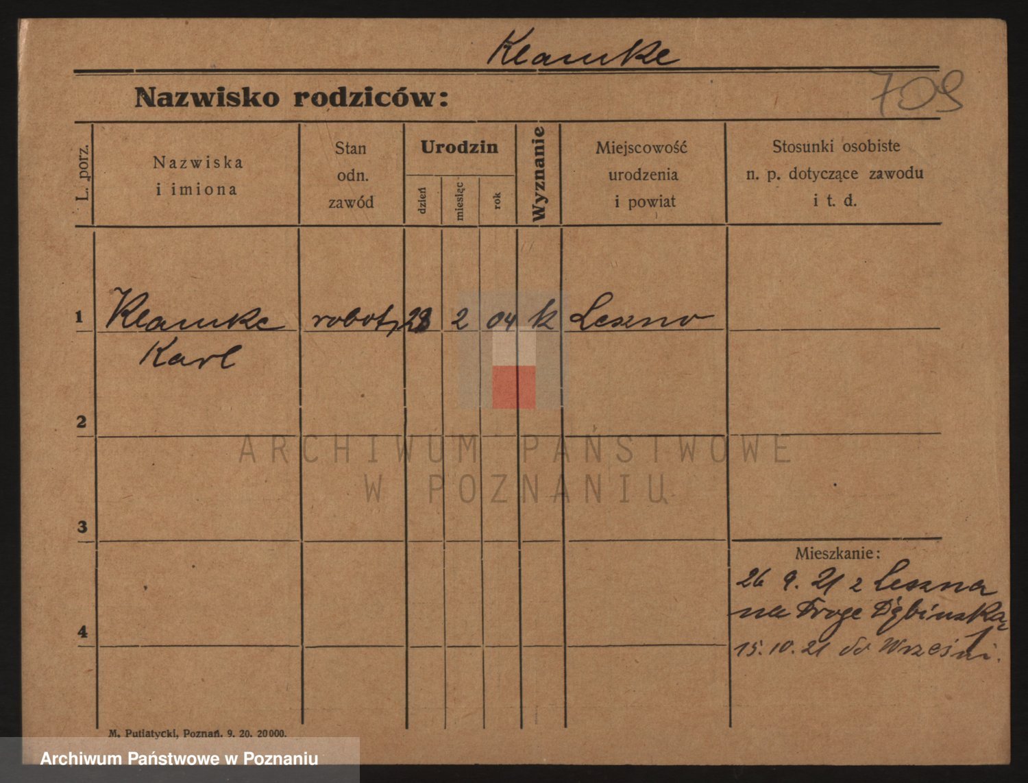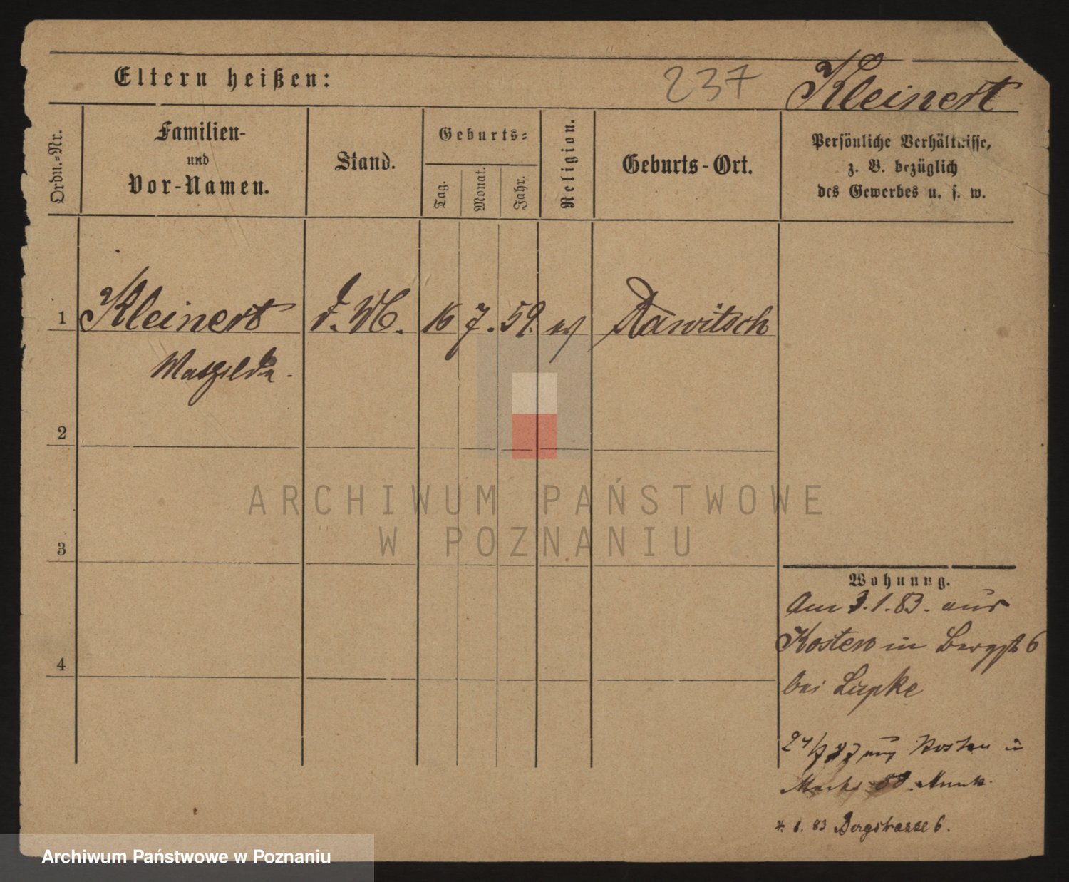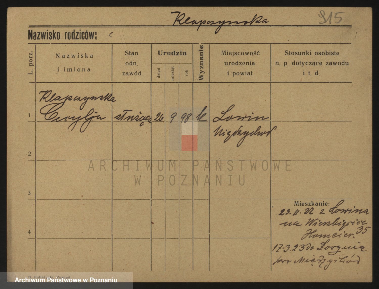 Podgląd karty osobowej dostępny jest po kliknięciu na nazwisko lub ikonkę karty. Można dokonywać powiększenia (ikony na górze) lub przechodzić między kolejnymi skanami (strzałki po bokach).