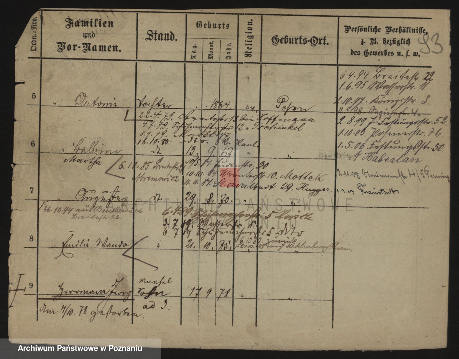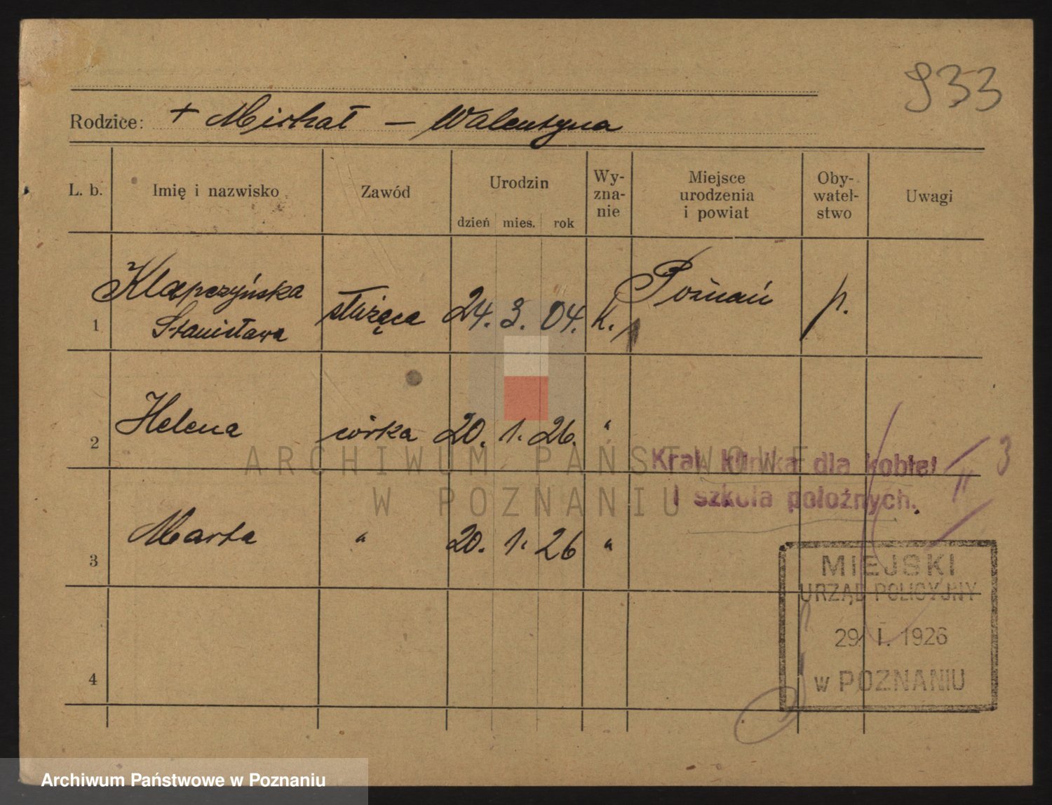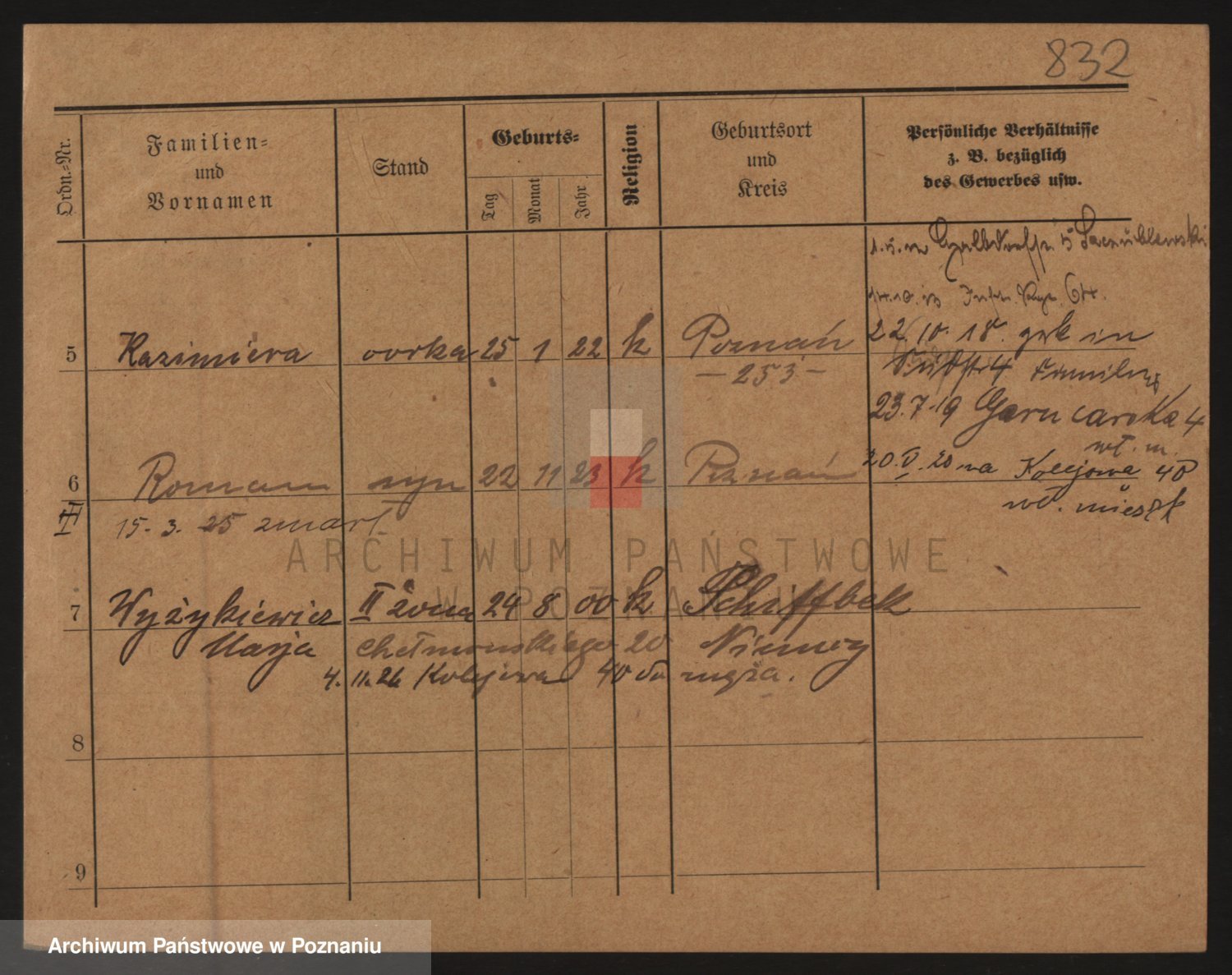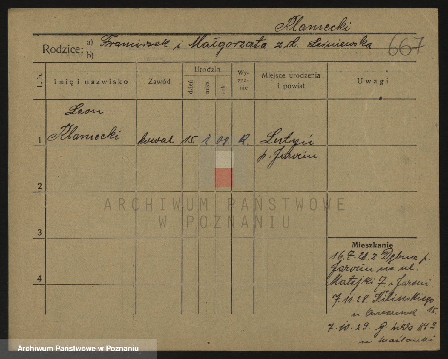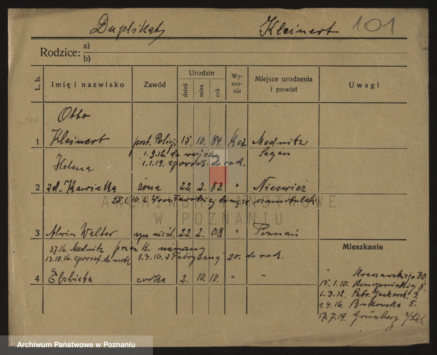 Podgląd karty osobowej dostępny jest po kliknięciu na nazwisko lub ikonkę karty. Można dokonywać powiększenia (ikony na górze) lub przechodzić między kolejnymi skanami (strzałki po bokach).