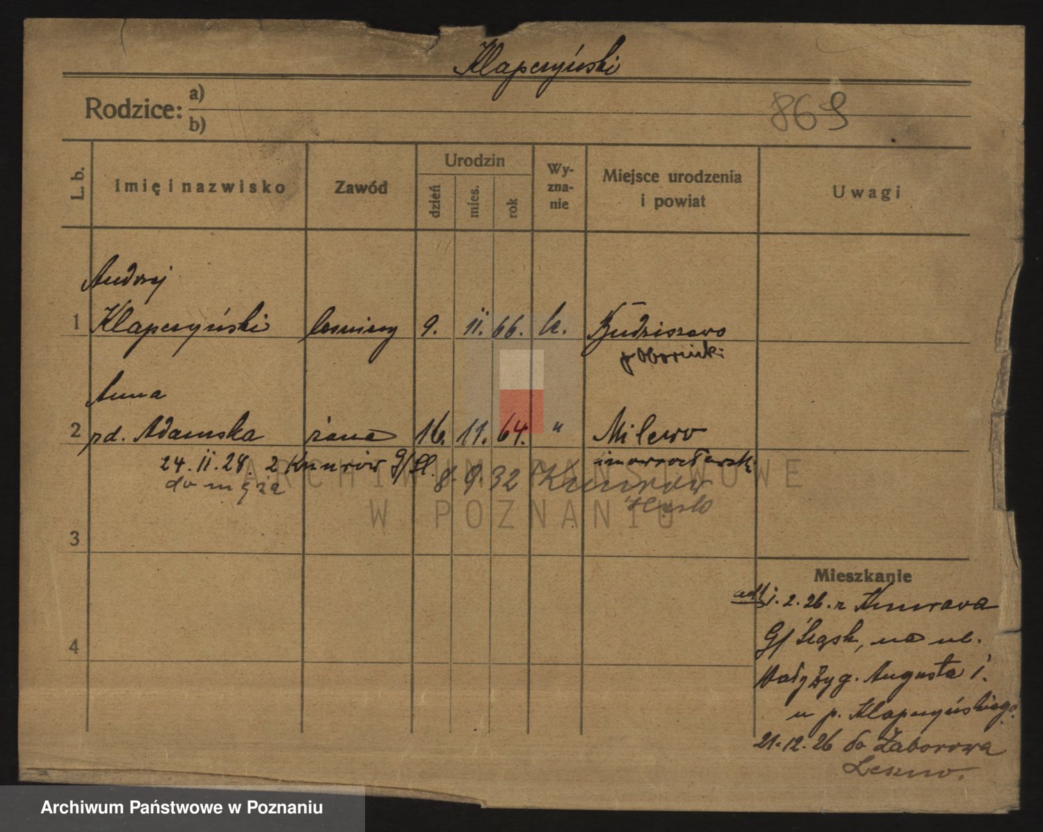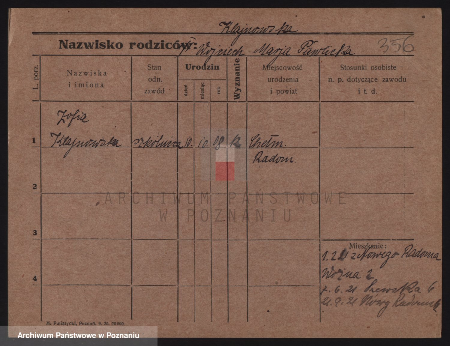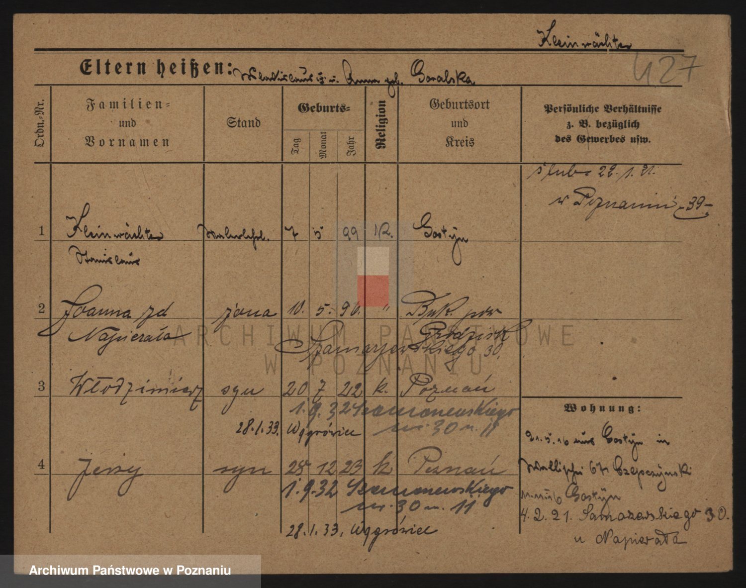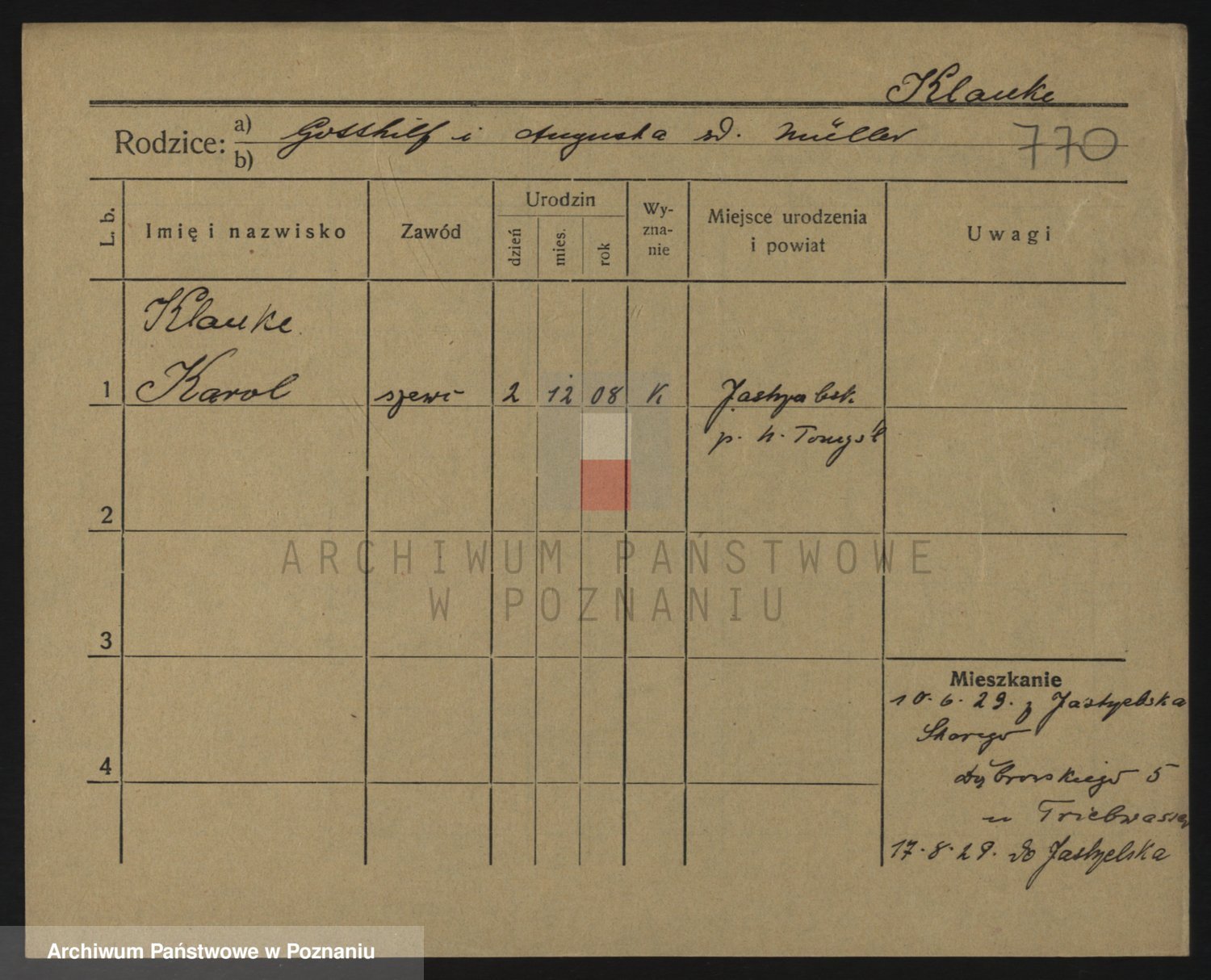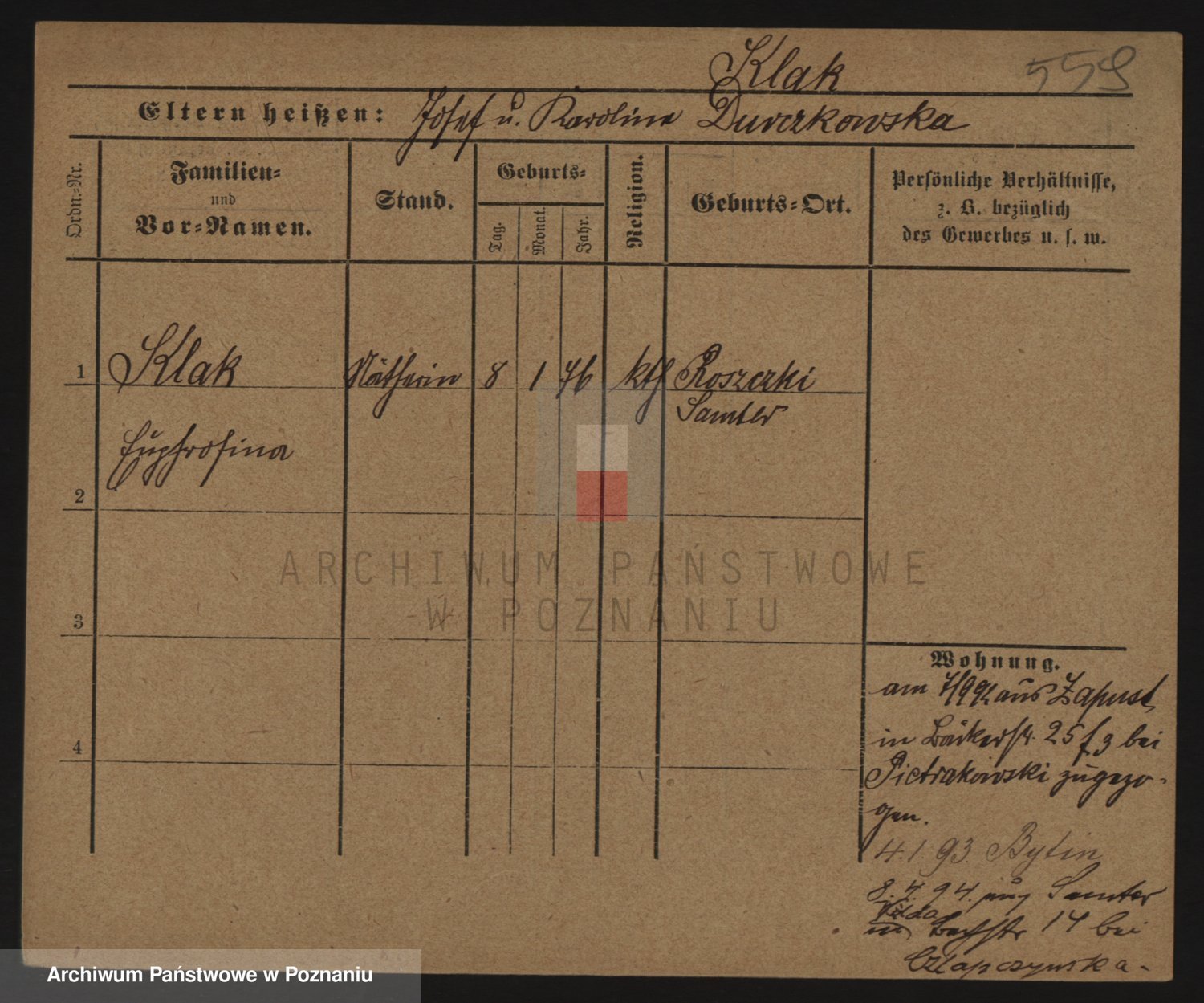 Podgląd karty osobowej dostępny jest po kliknięciu na nazwisko lub ikonkę karty. Można dokonywać powiększenia (ikony na górze) lub przechodzić między kolejnymi skanami (strzałki po bokach).