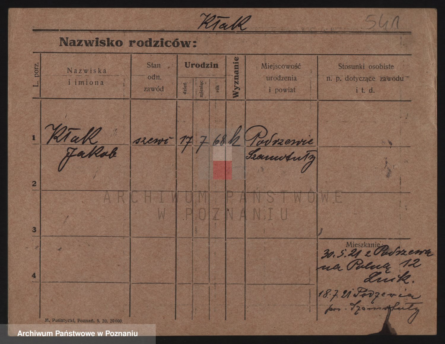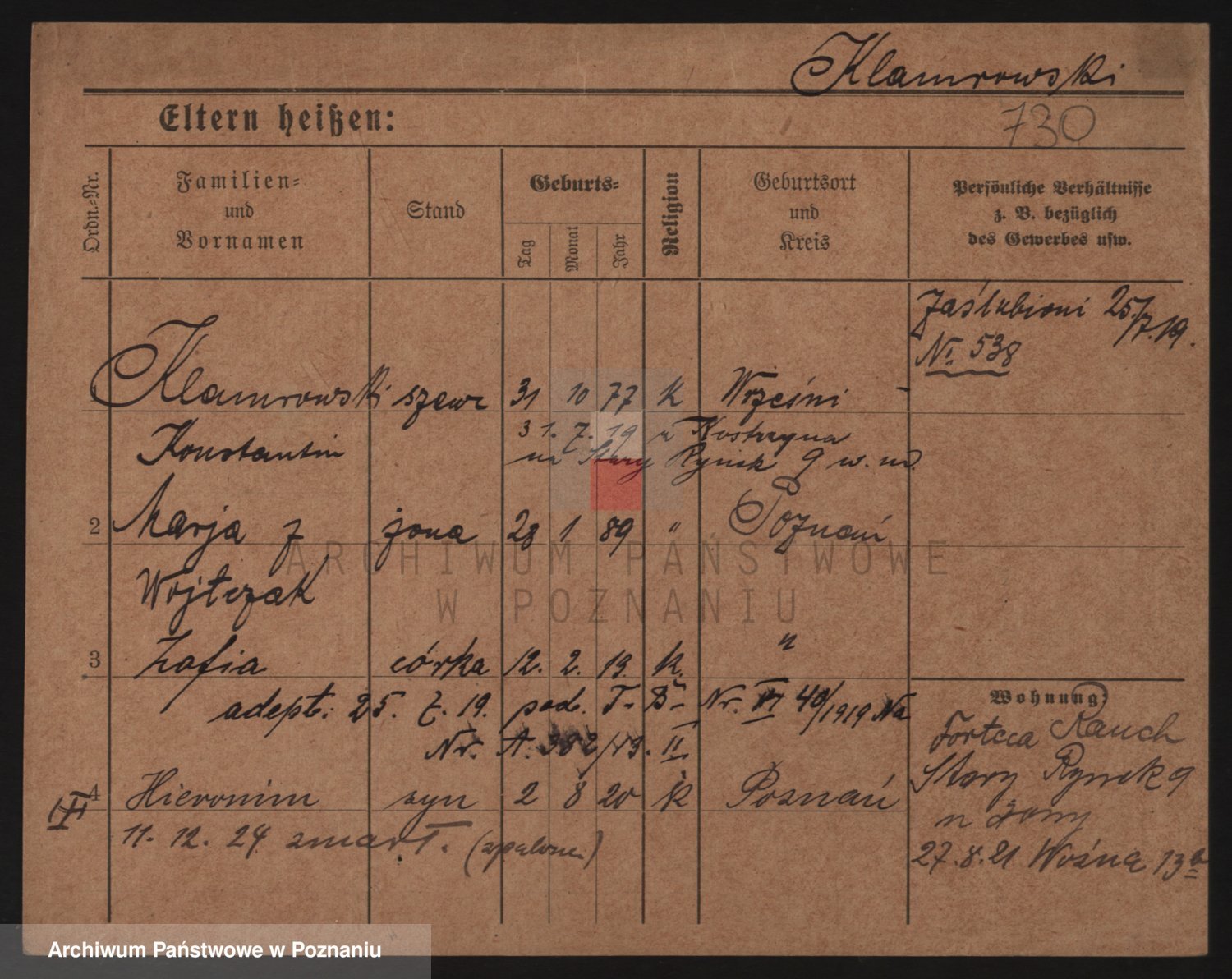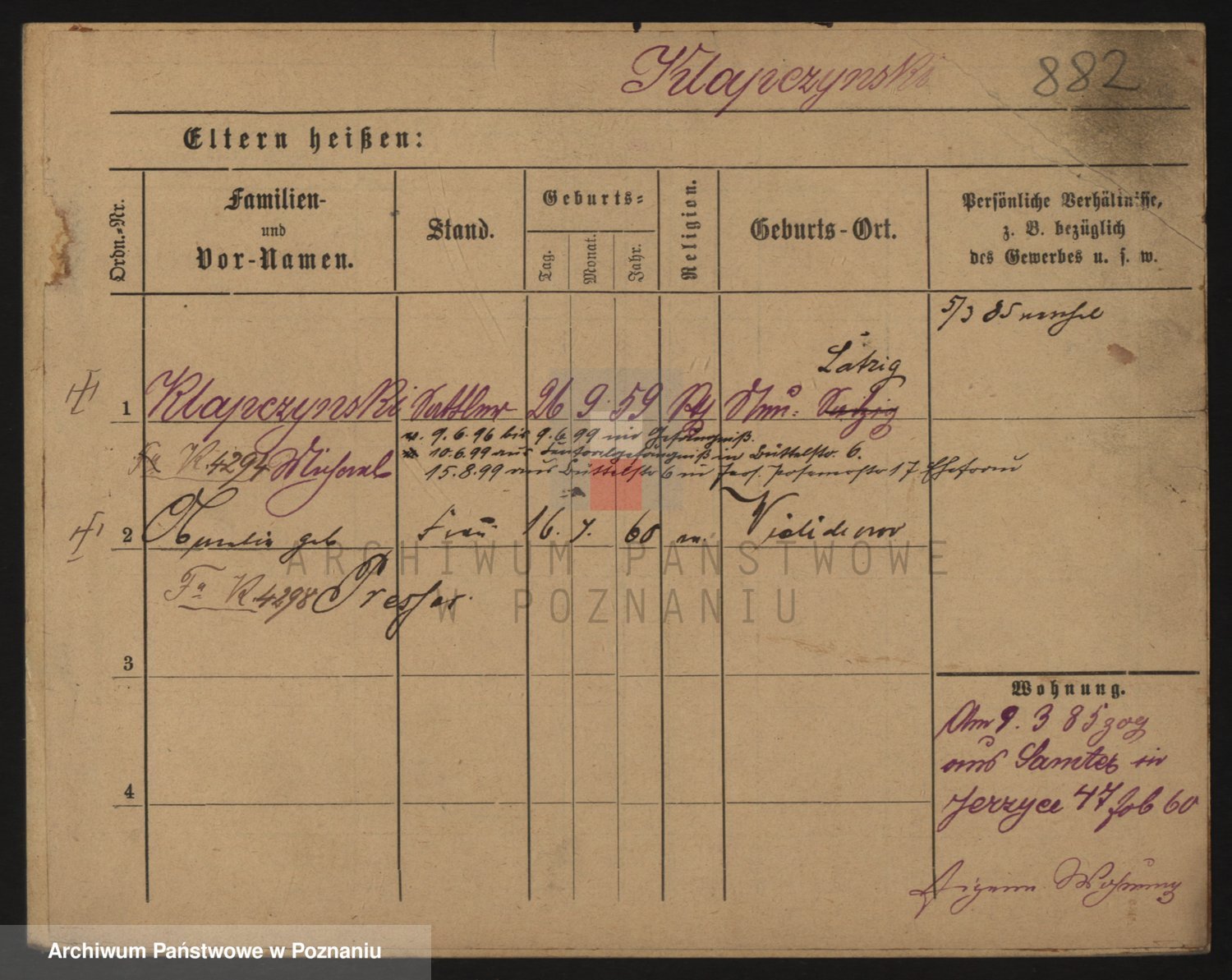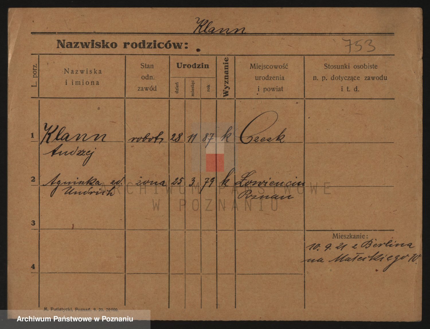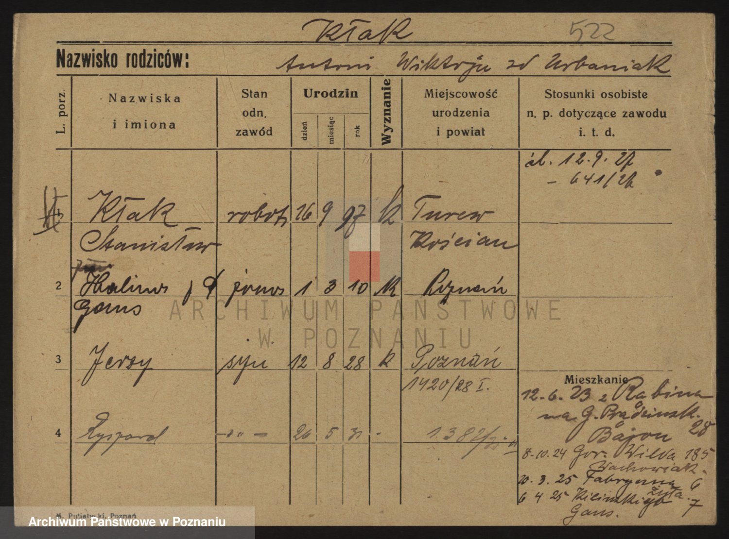 Podgląd karty osobowej dostępny jest po kliknięciu na nazwisko lub ikonkę karty. Można dokonywać powiększenia (ikony na górze) lub przechodzić między kolejnymi skanami (strzałki po bokach).