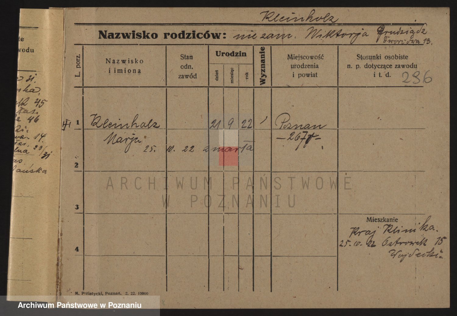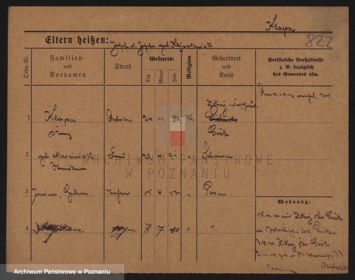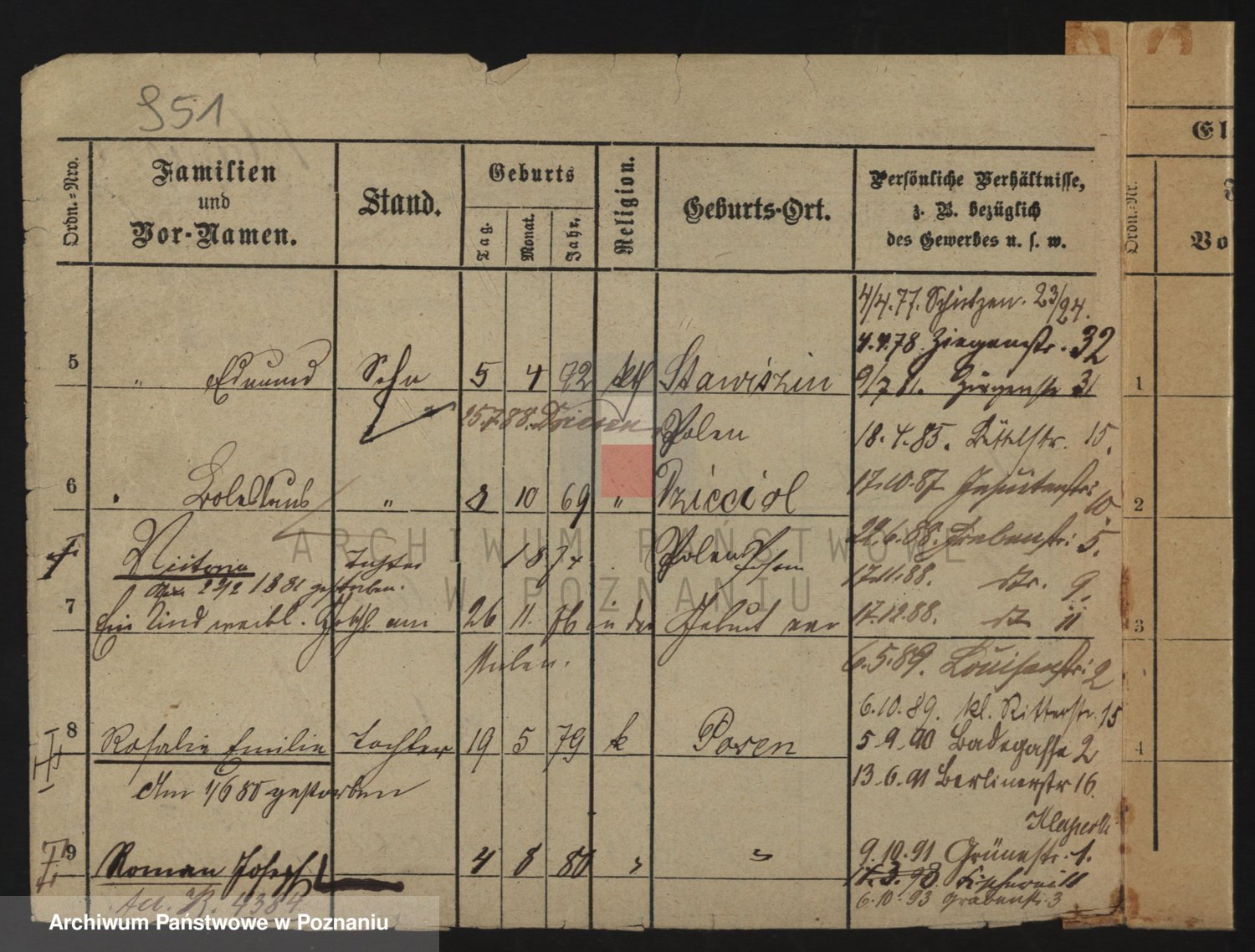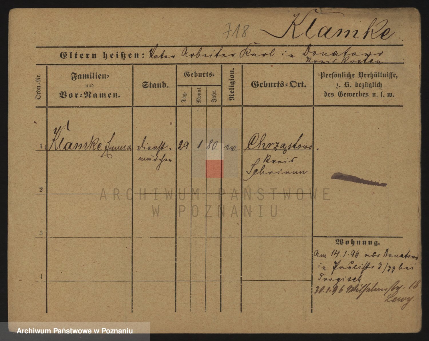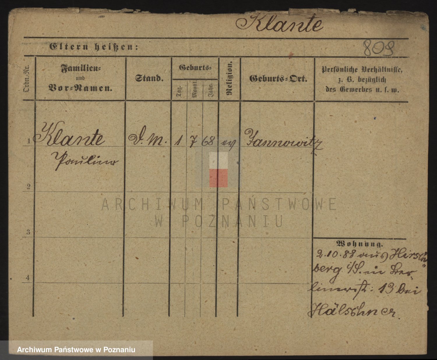 Podgląd karty osobowej dostępny jest po kliknięciu na nazwisko lub ikonkę karty. Można dokonywać powiększenia (ikony na górze) lub przechodzić między kolejnymi skanami (strzałki po bokach).