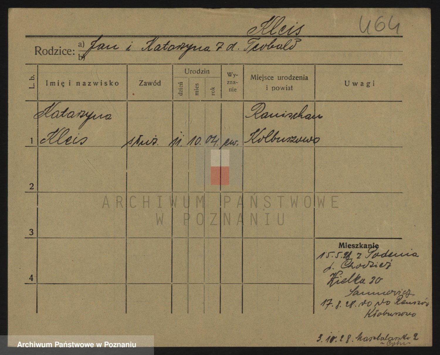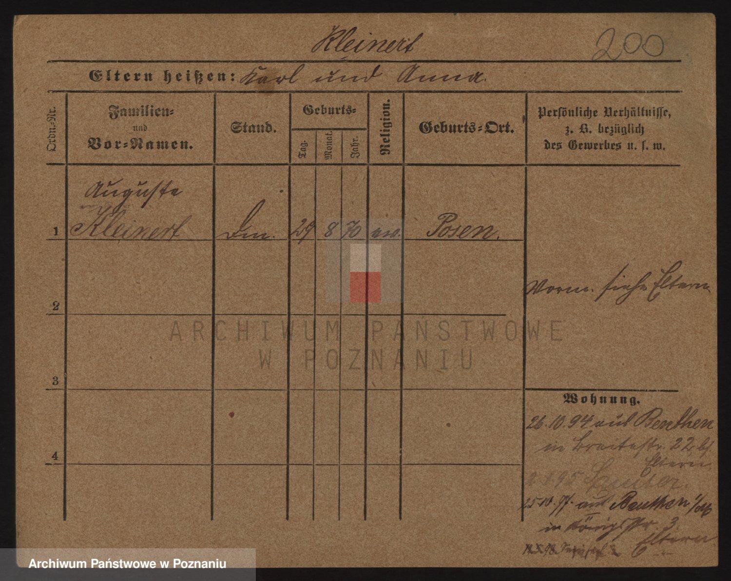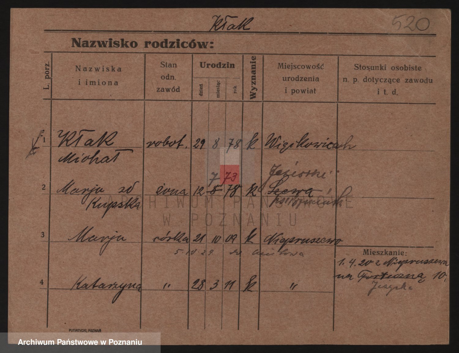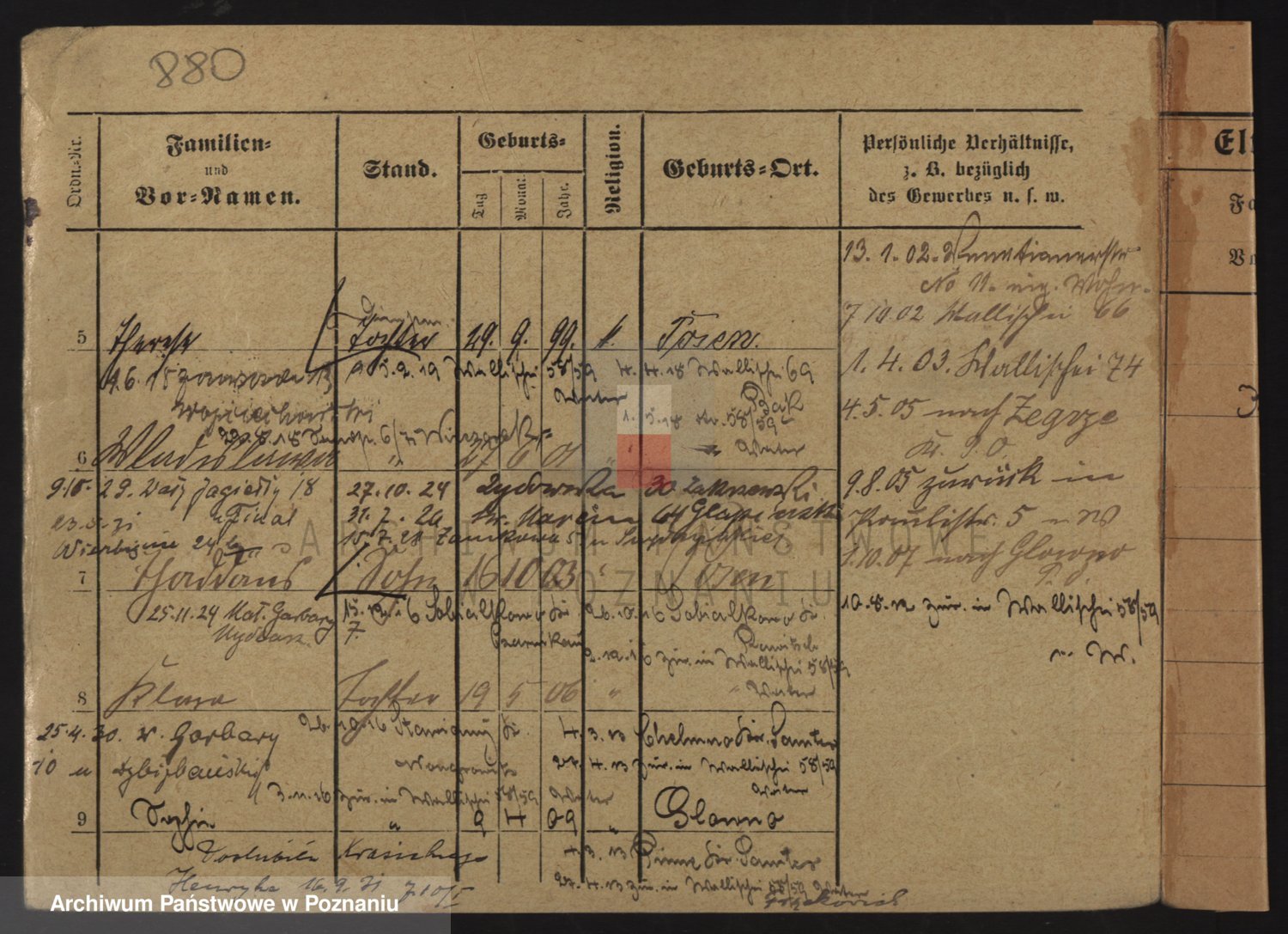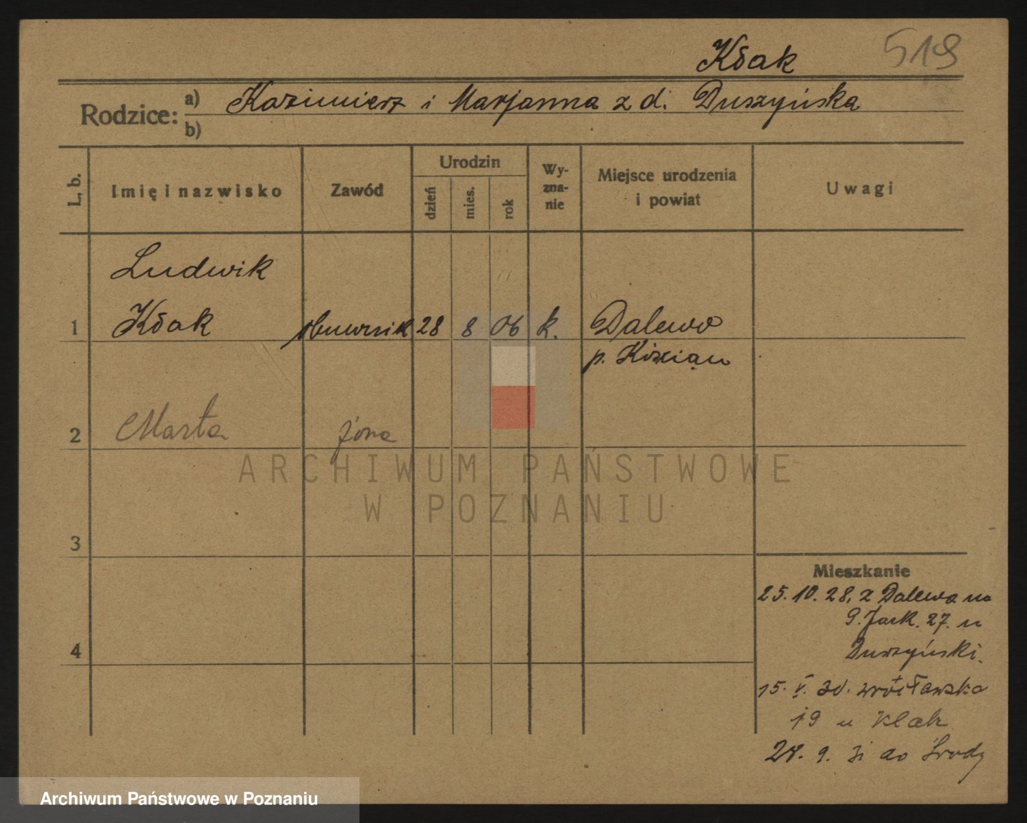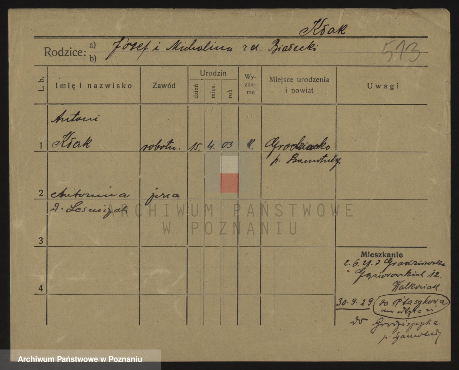 Podgląd karty osobowej dostępny jest po kliknięciu na nazwisko lub ikonkę karty. Można dokonywać powiększenia (ikony na górze) lub przechodzić między kolejnymi skanami (strzałki po bokach).
