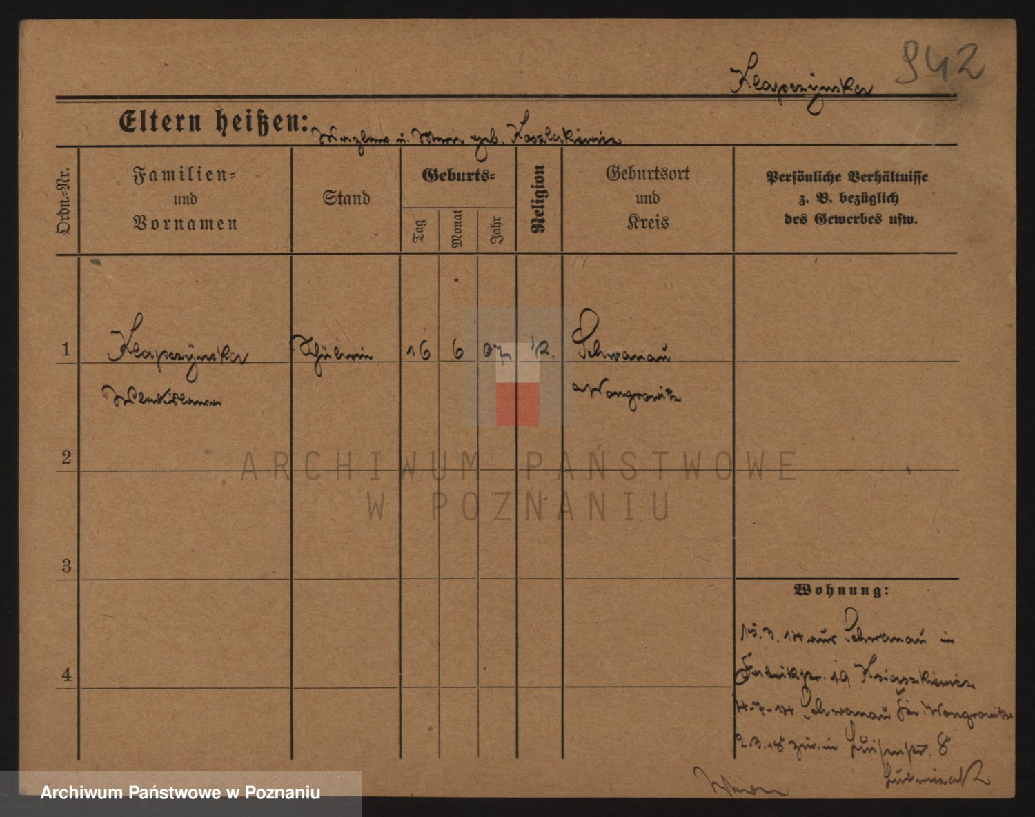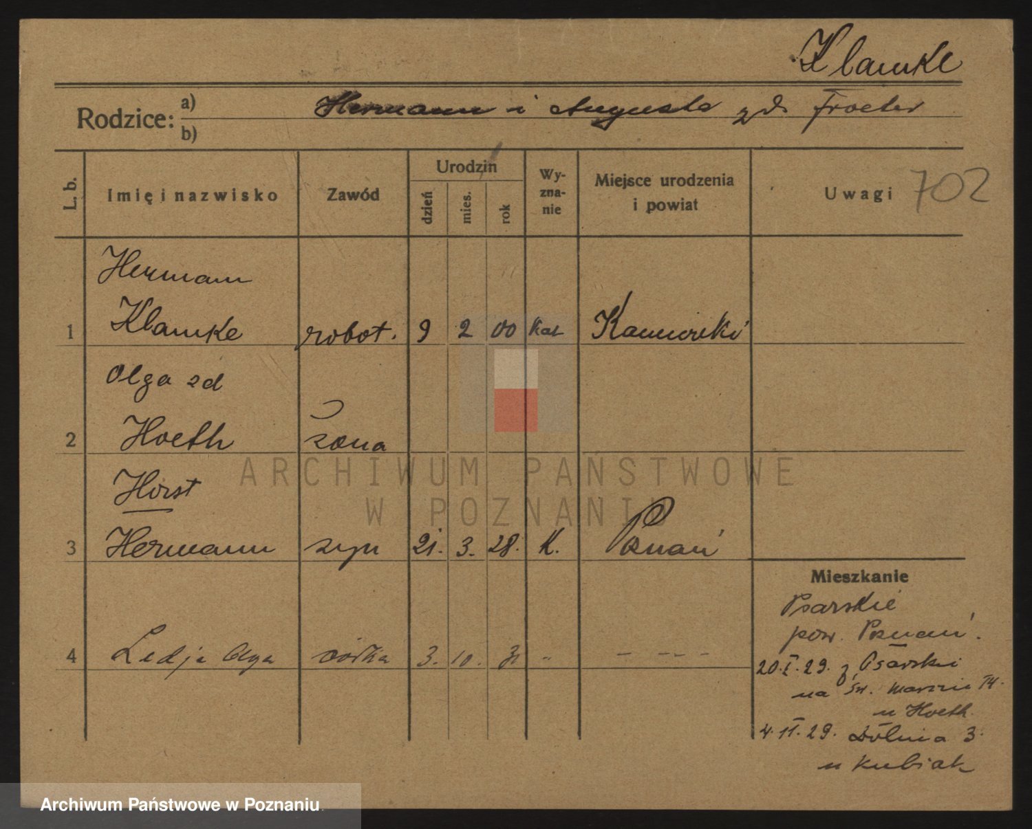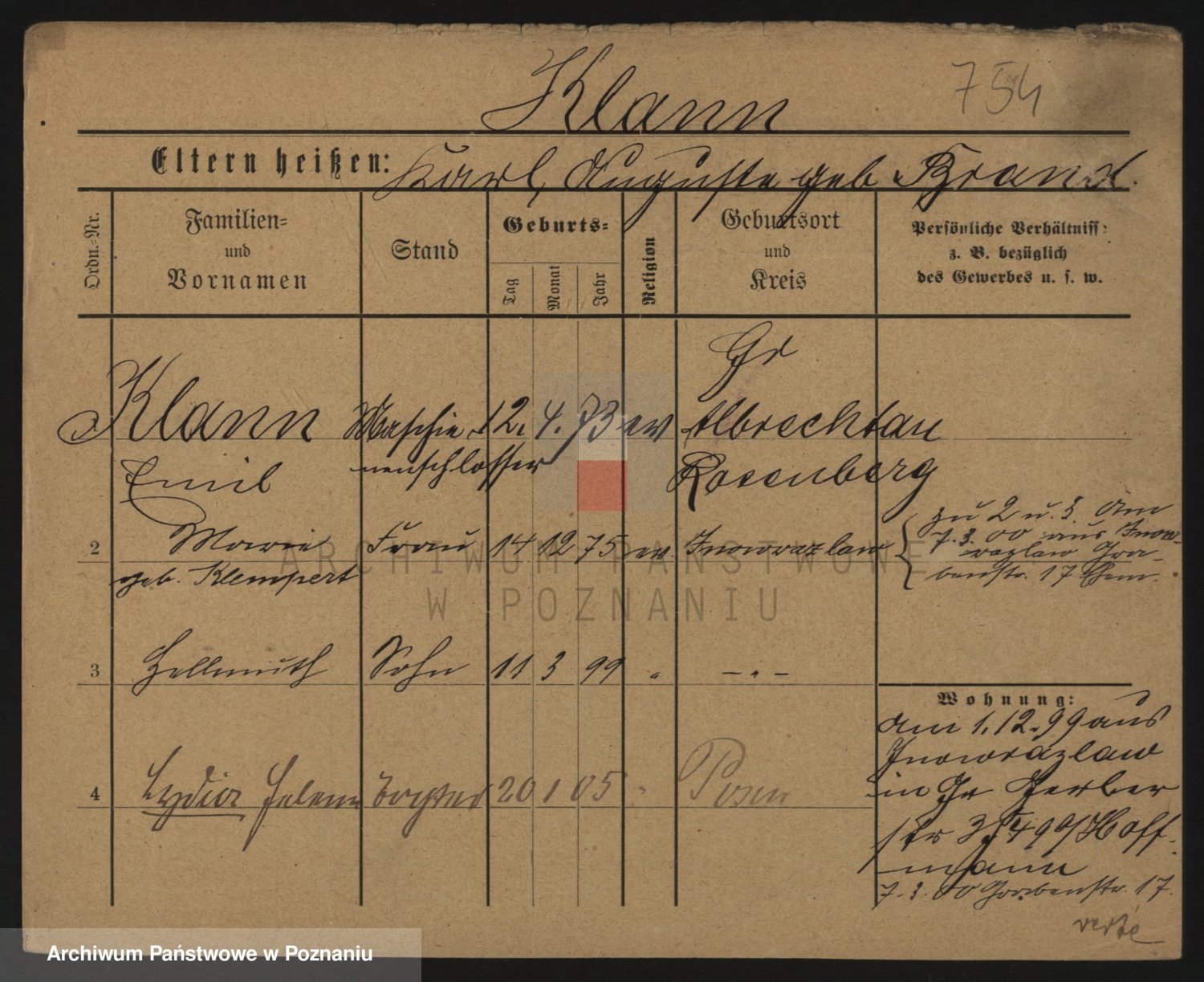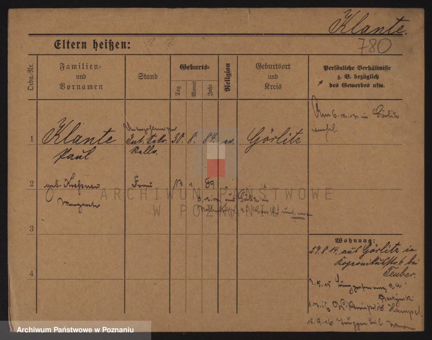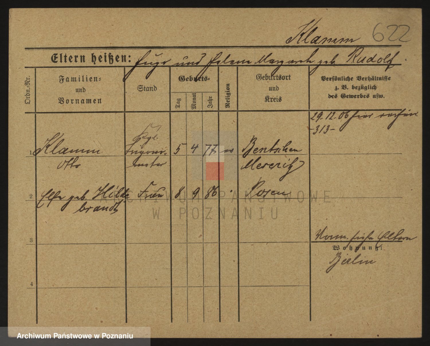 Podgląd karty osobowej dostępny jest po kliknięciu na nazwisko lub ikonkę karty. Można dokonywać powiększenia (ikony na górze) lub przechodzić między kolejnymi skanami (strzałki po bokach).