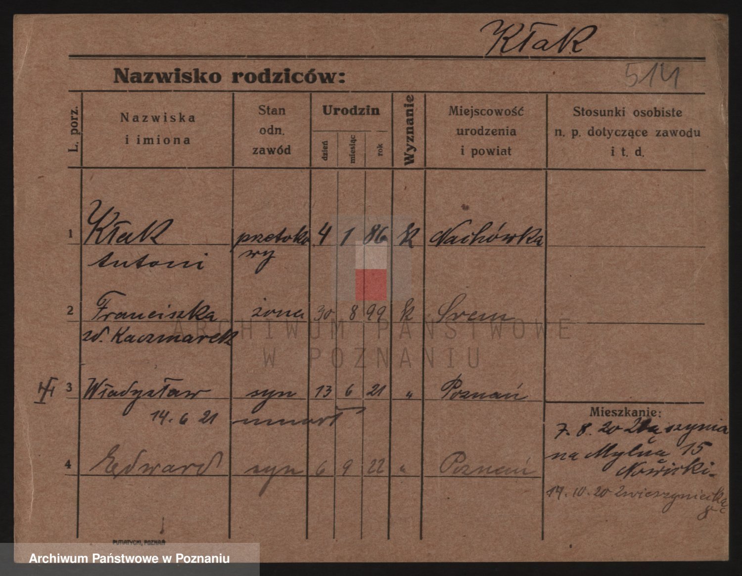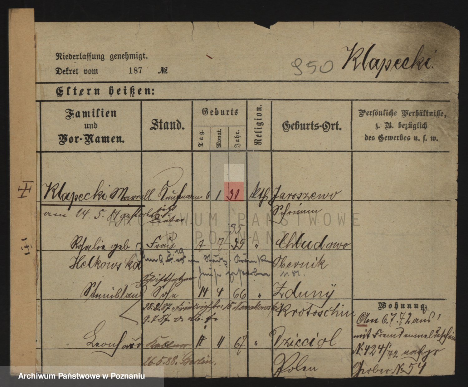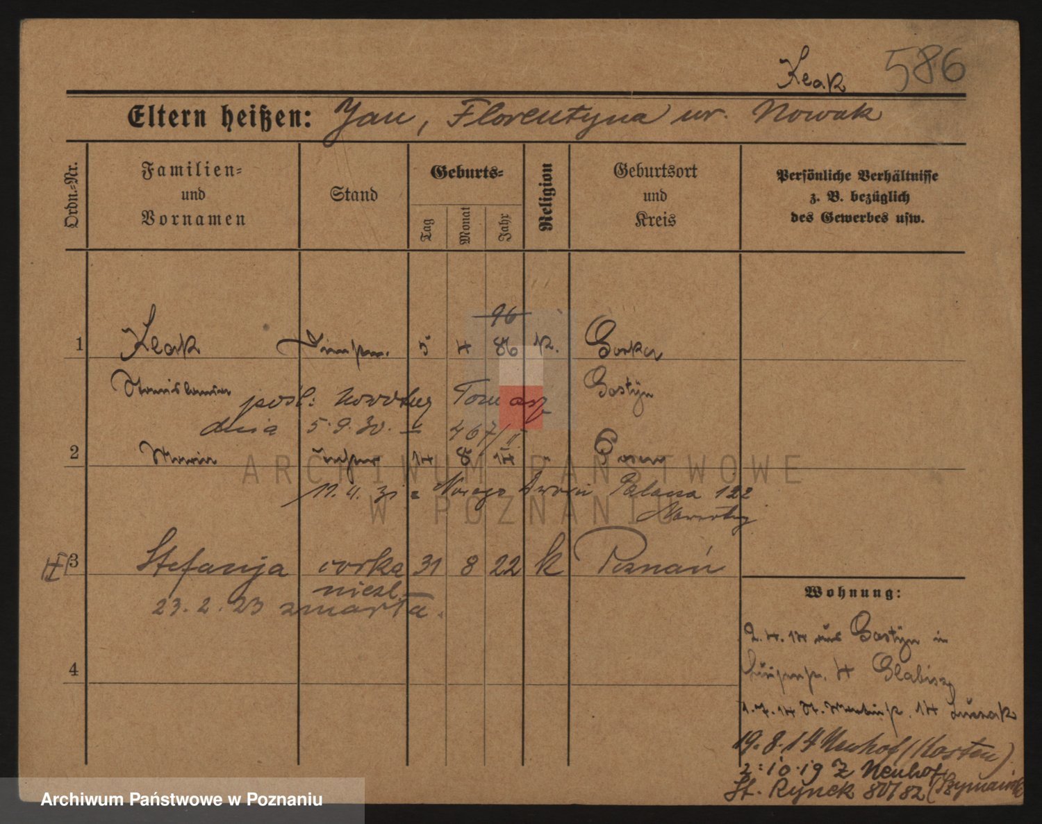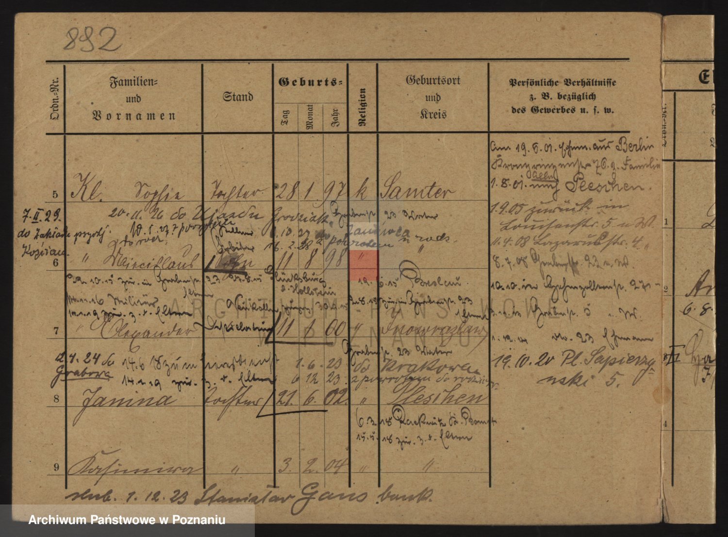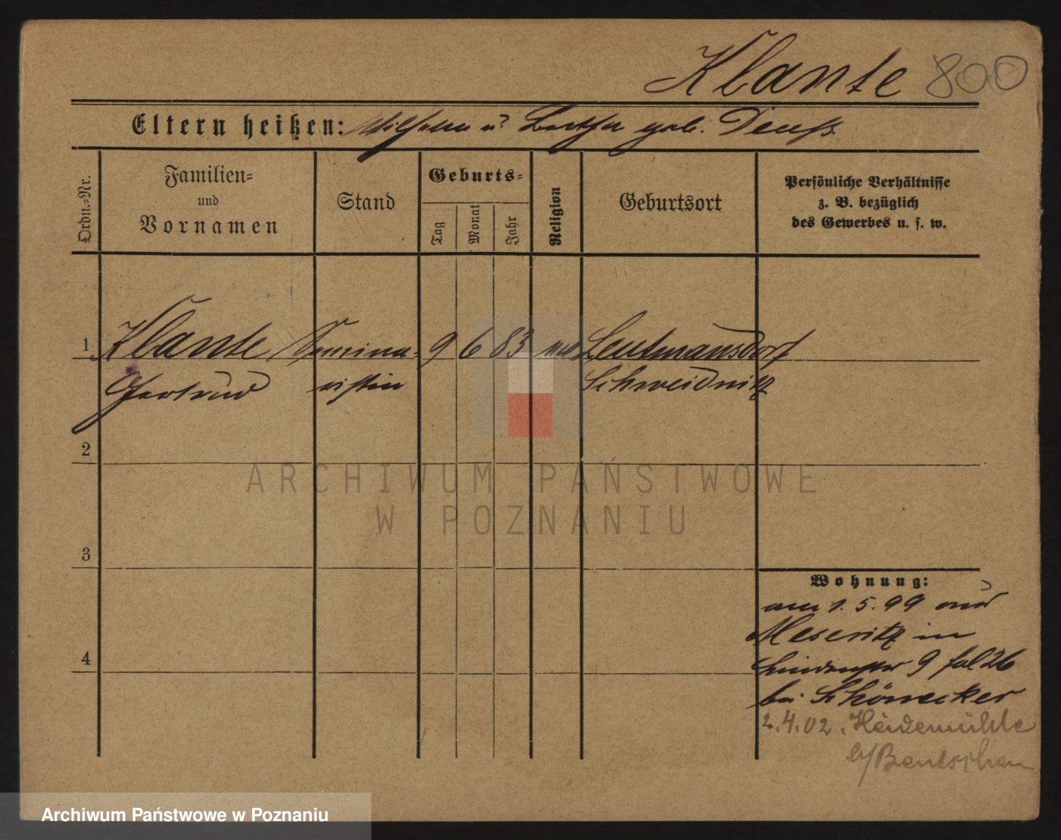 Podgląd karty osobowej dostępny jest po kliknięciu na nazwisko lub ikonkę karty. Można dokonywać powiększenia (ikony na górze) lub przechodzić między kolejnymi skanami (strzałki po bokach).