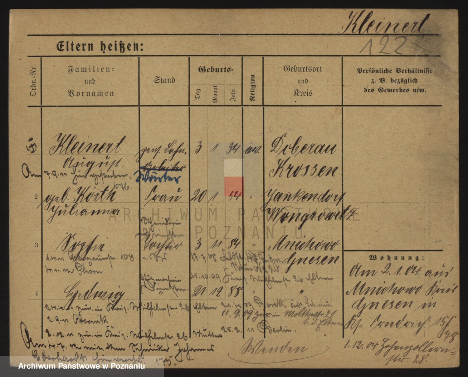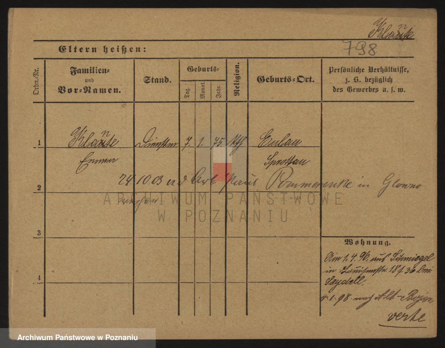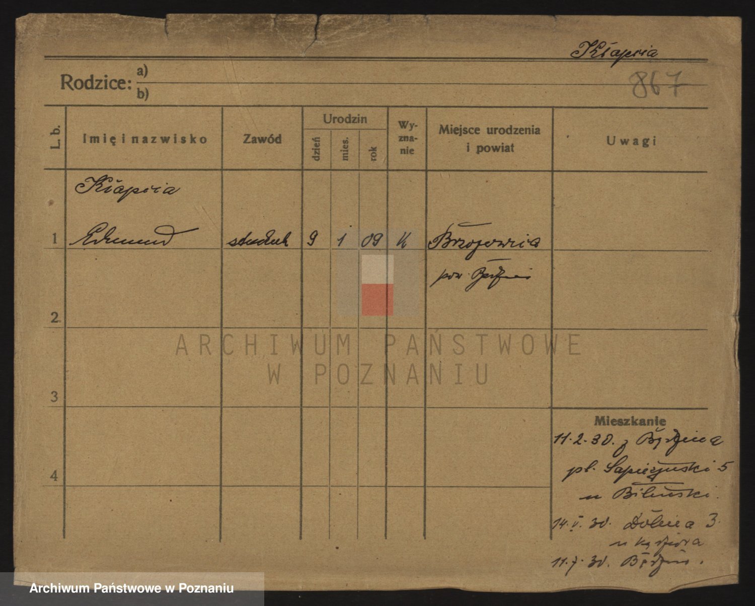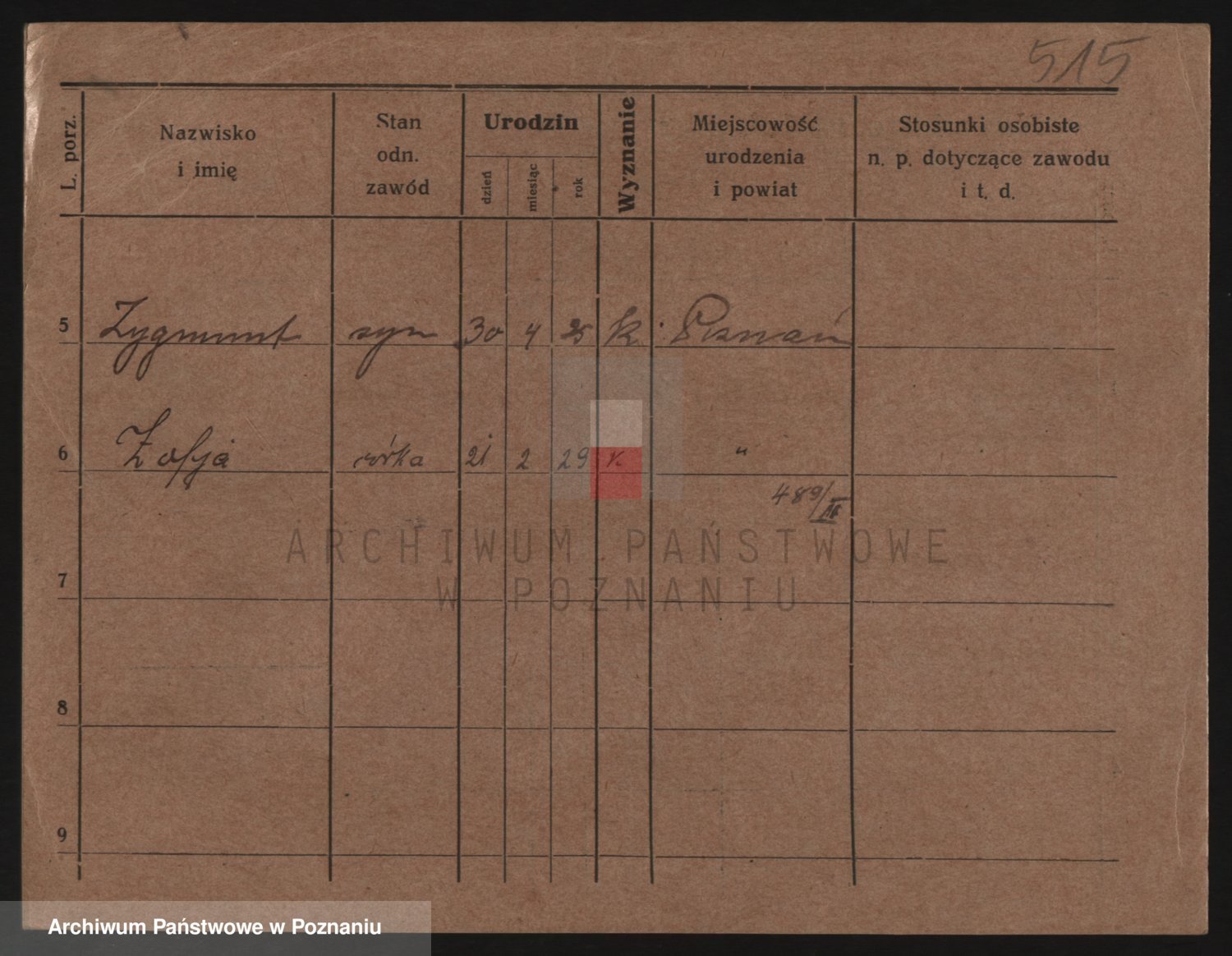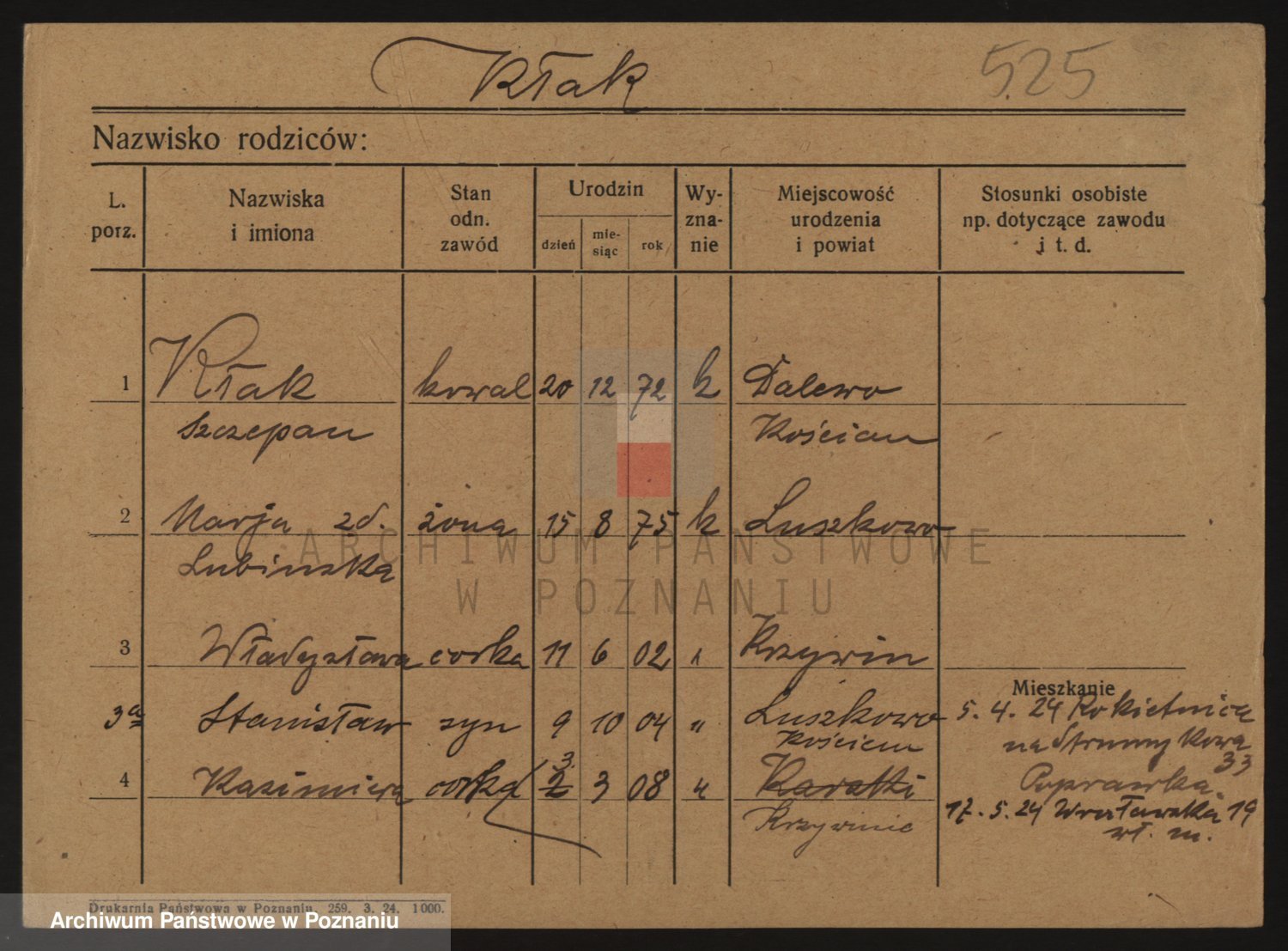 Podgląd karty osobowej dostępny jest po kliknięciu na nazwisko lub ikonkę karty. Można dokonywać powiększenia (ikony na górze) lub przechodzić między kolejnymi skanami (strzałki po bokach).