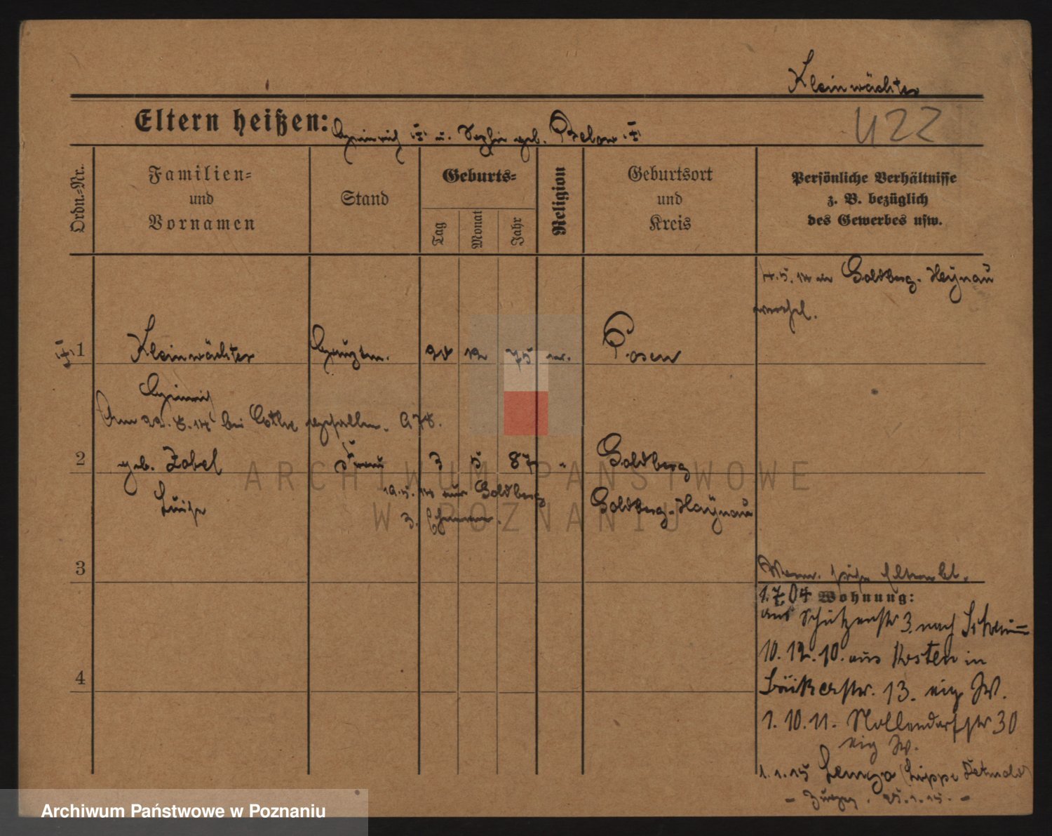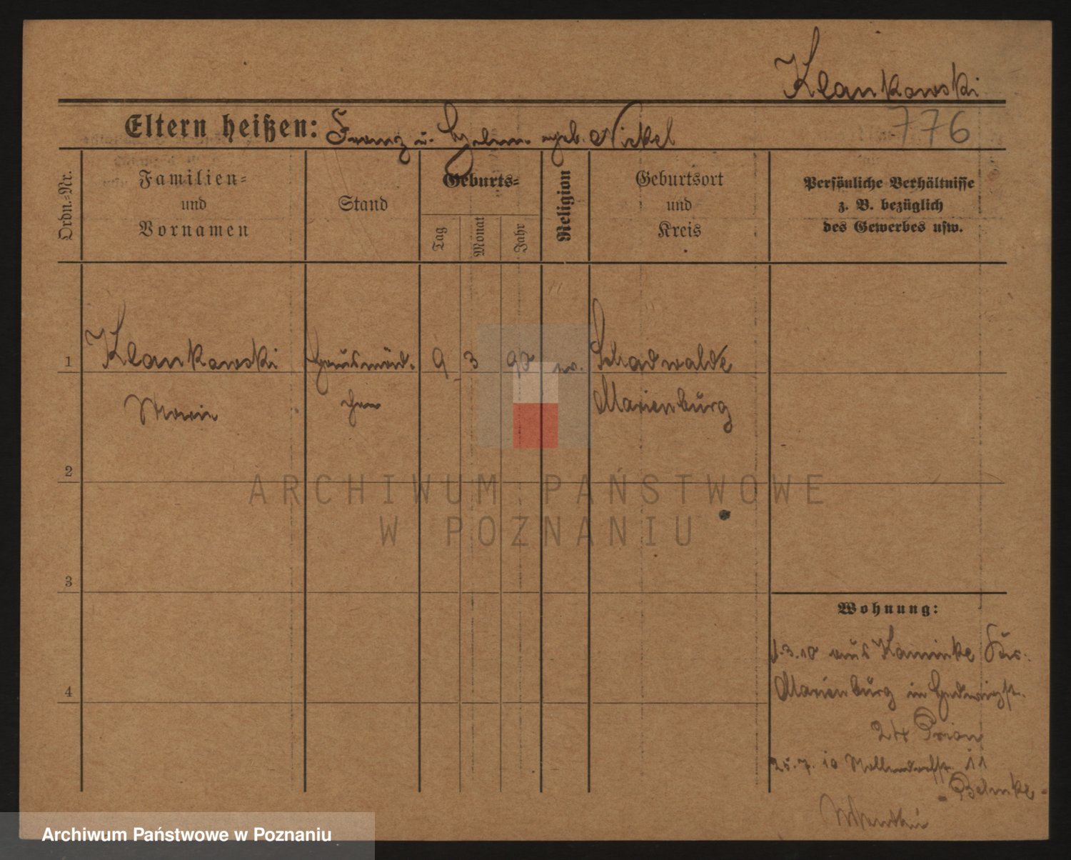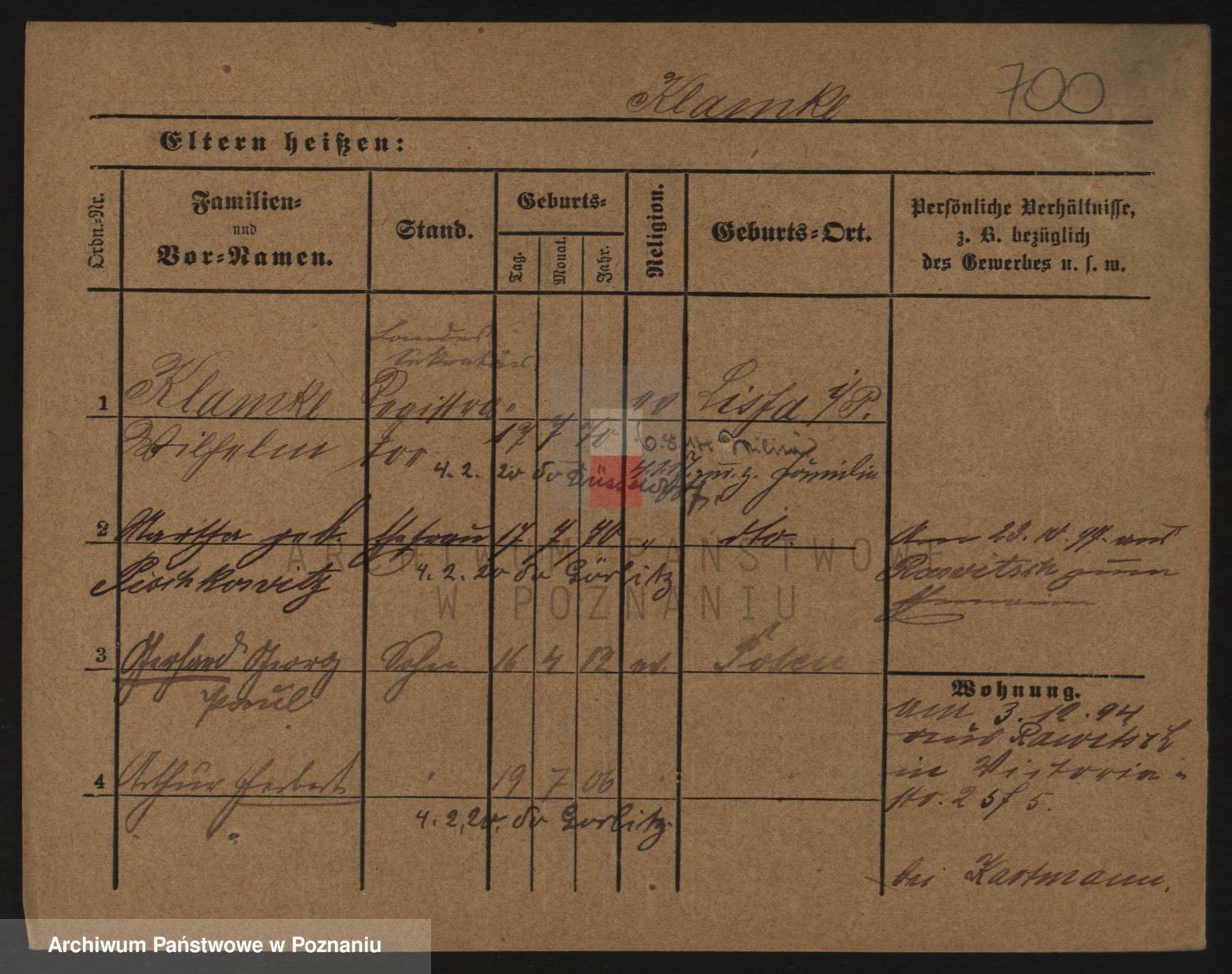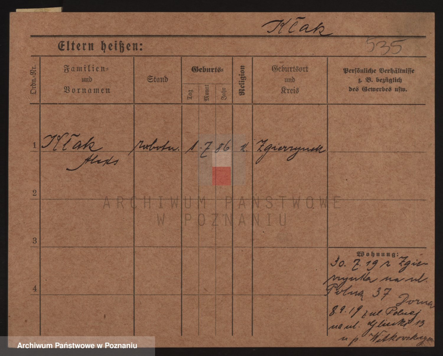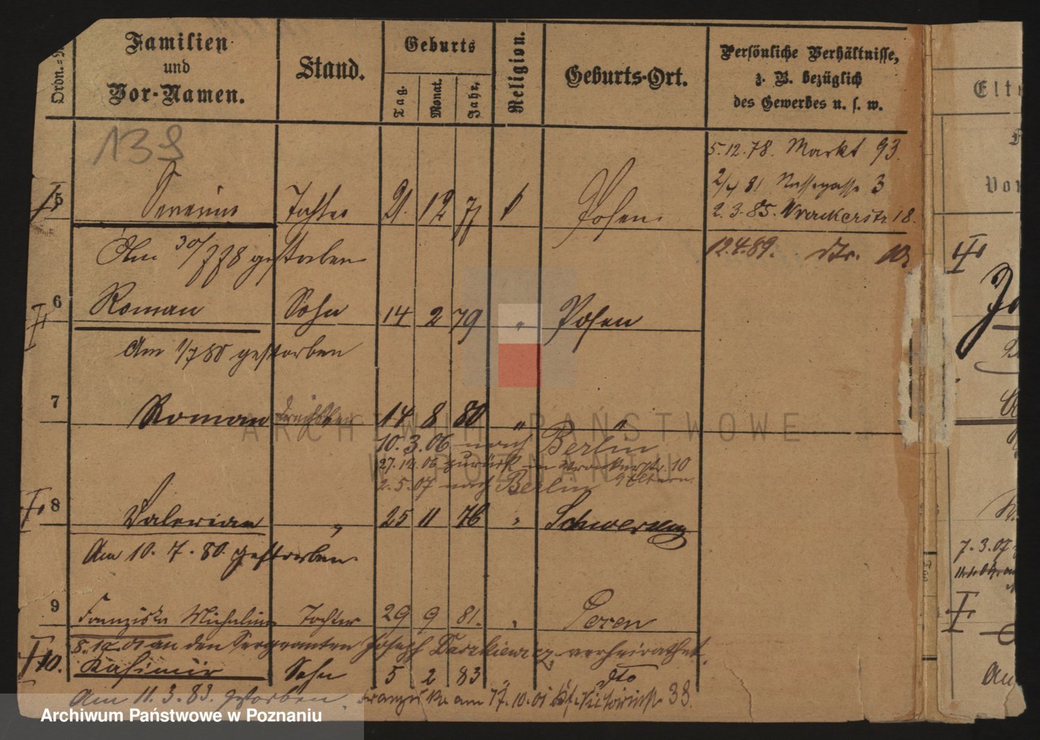 Podgląd karty osobowej dostępny jest po kliknięciu na nazwisko lub ikonkę karty. Można dokonywać powiększenia (ikony na górze) lub przechodzić między kolejnymi skanami (strzałki po bokach).