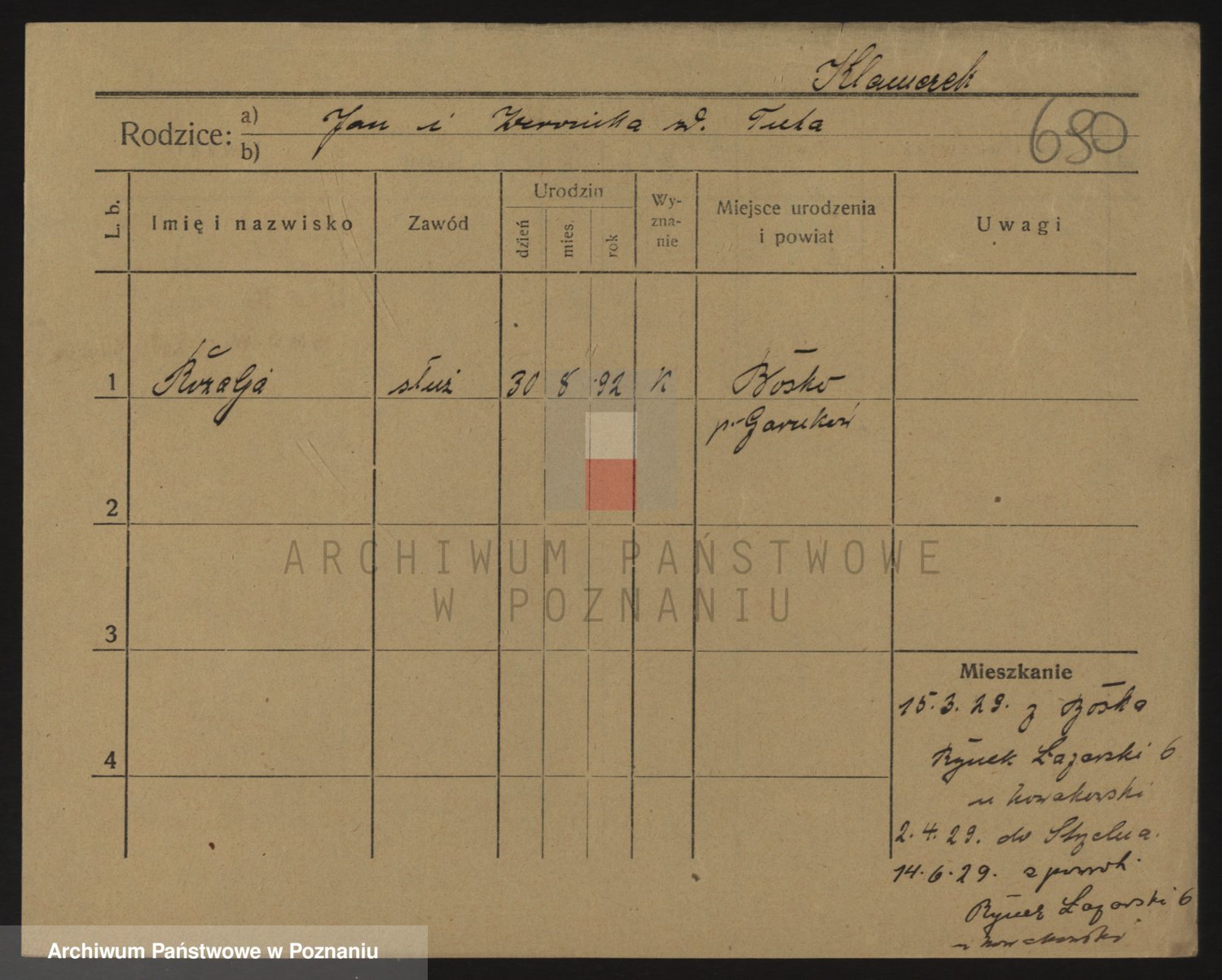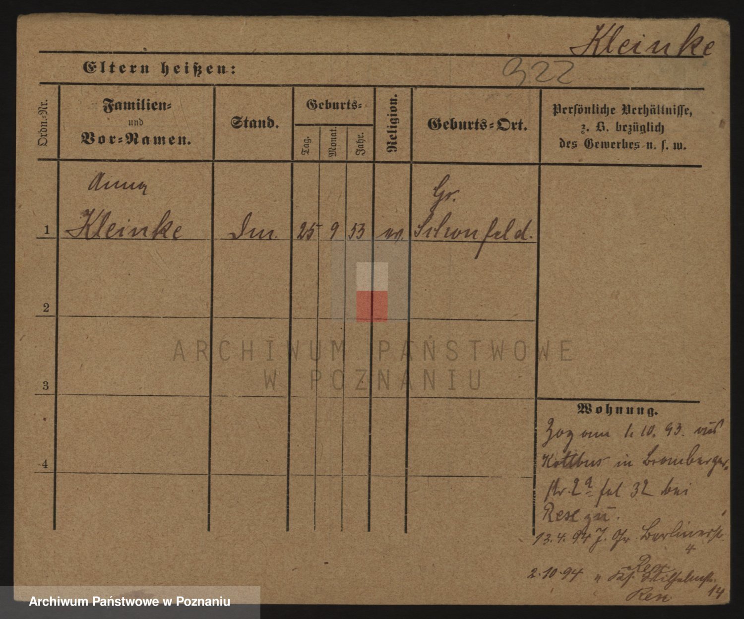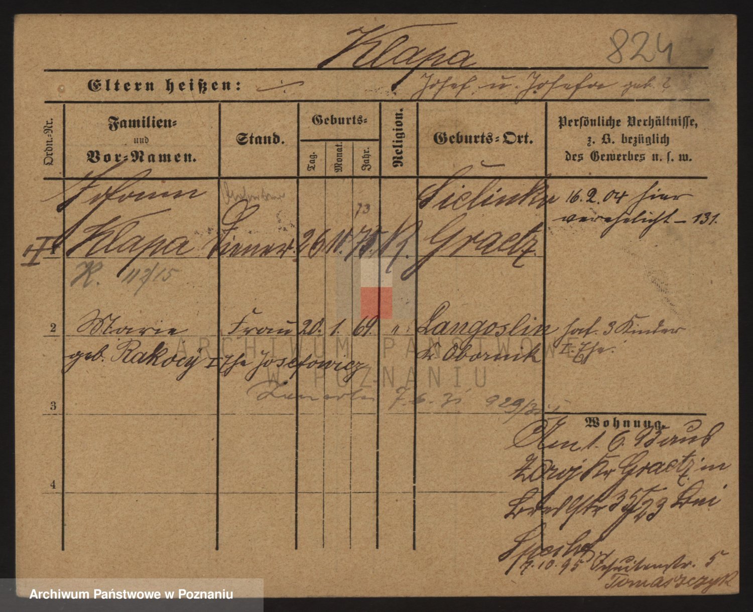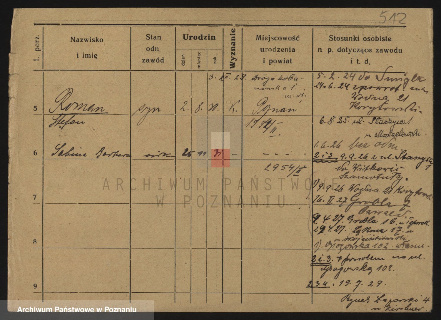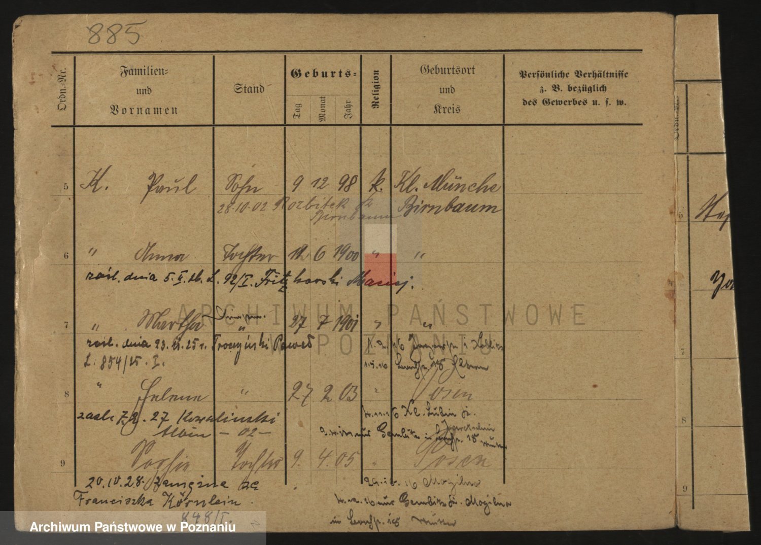 Podgląd karty osobowej dostępny jest po kliknięciu na nazwisko lub ikonkę karty. Można dokonywać powiększenia (ikony na górze) lub przechodzić między kolejnymi skanami (strzałki po bokach).