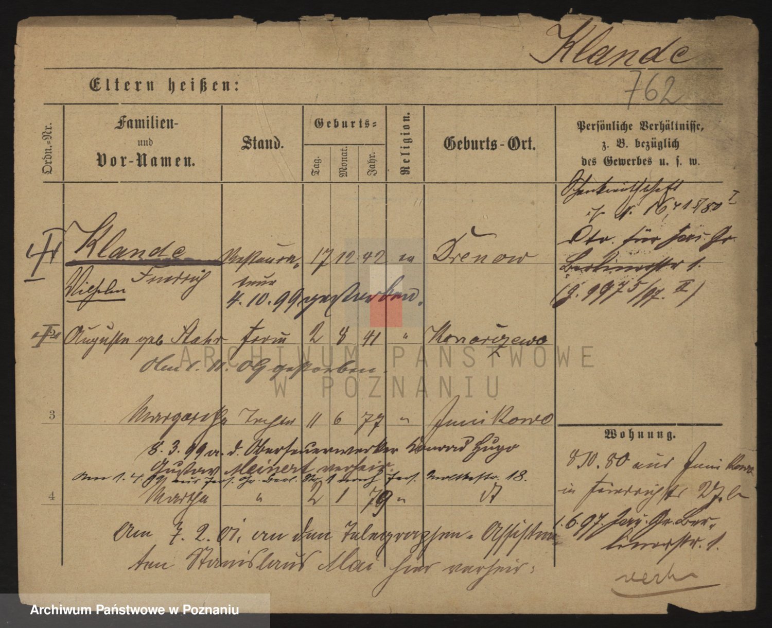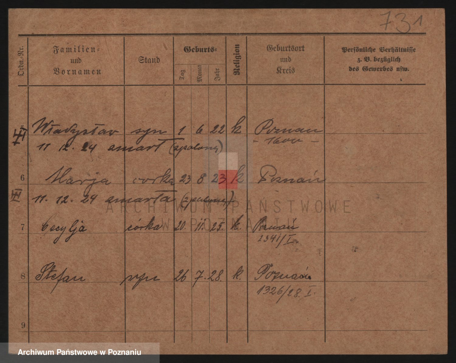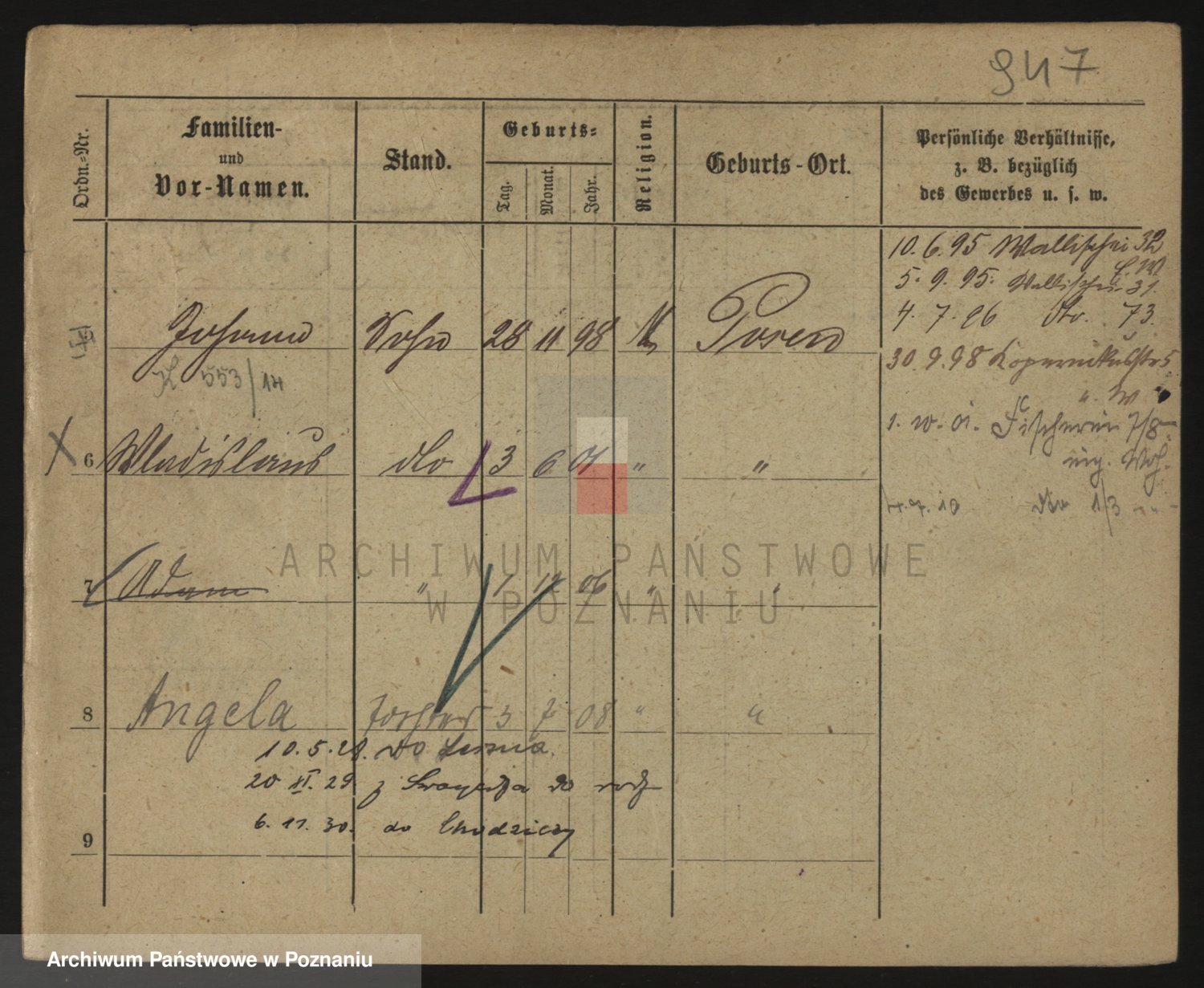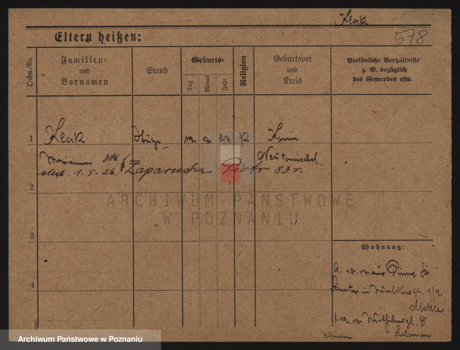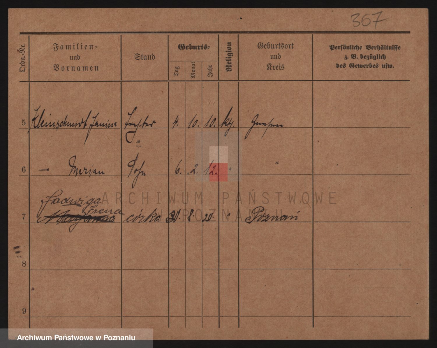 Podgląd karty osobowej dostępny jest po kliknięciu na nazwisko lub ikonkę karty. Można dokonywać powiększenia (ikony na górze) lub przechodzić między kolejnymi skanami (strzałki po bokach).